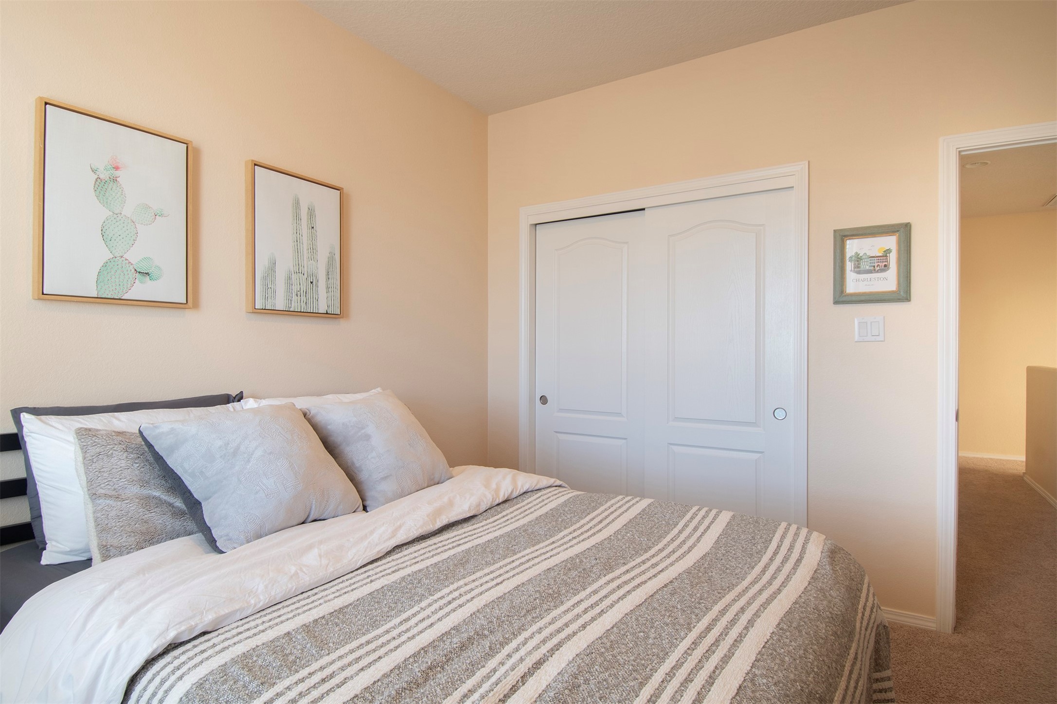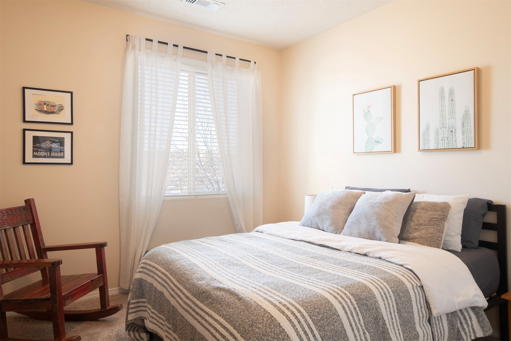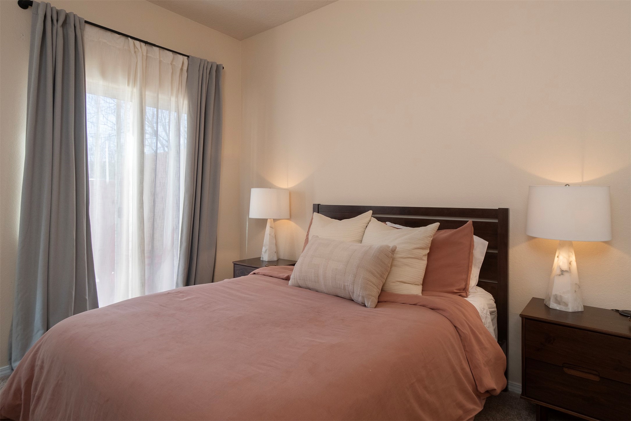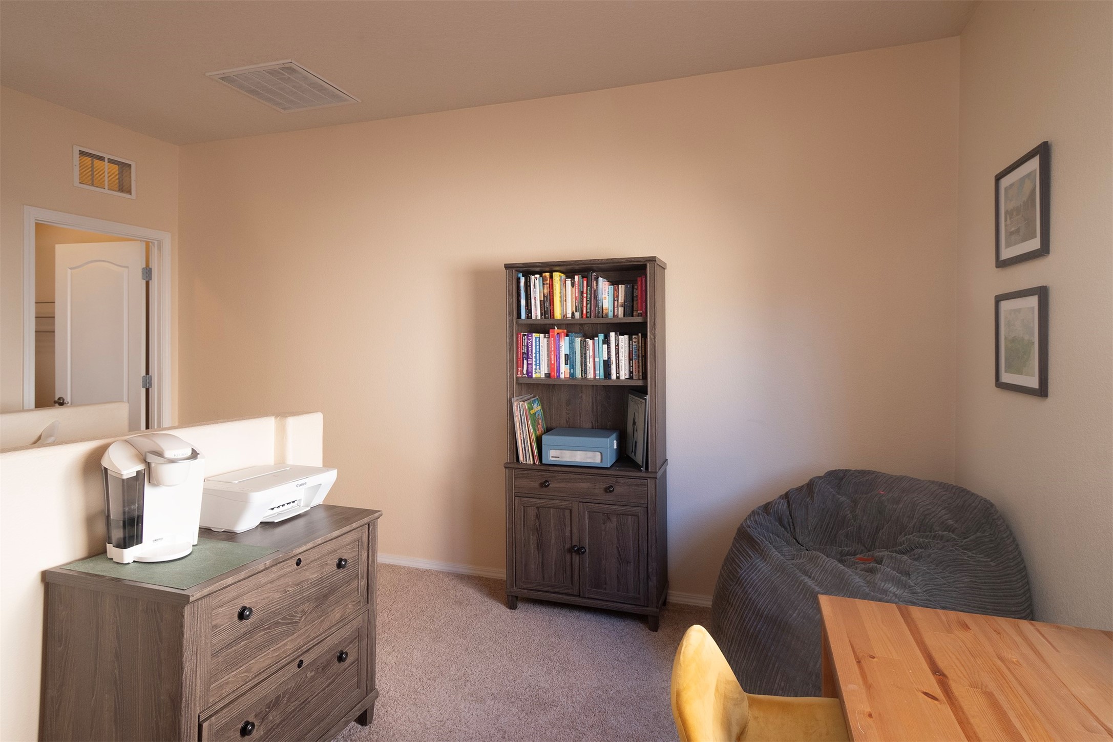 RANCHOS SANTOS MEDITERRANEAN MODERN. Modern Living in Ranchos Santos Condos of Santa Fe. This Spanish Mediterranean style 2 Bed, 2 Bath, 2 Car garage condo has a convenient and beautiful lifestyle with nearby conveniences to grocery stores, restaurants, and shopping centers. This move-in ready two floor plan features with 18' ceilings in the Living Room that give an elevated and airy feel to the whole space. Great kitchen with modern appliances, wood cabinetry, matte black hardware, solid countertops. Open floor-plan with a first floor Bedroom Suite with private, enclosed patio, en-suite bath with separate shower, soaking tub and walk-in-closet. Upstairs is a second bedroom, full bath, laundry room and a fantastic open loft. The large loft space is ideal for home office, flex and remote workers space, - ideal for office, yoga workout area, or second living area. The garage offers great space for storage. Features include refrigerated air conditioning, 2 car direct entry garage, solid surface kitchen countertops, upgraded cabinets, Dish Washer, and Range, microwave, tile flooring, ceiling fan. Built in 2009 by Centex Homes.