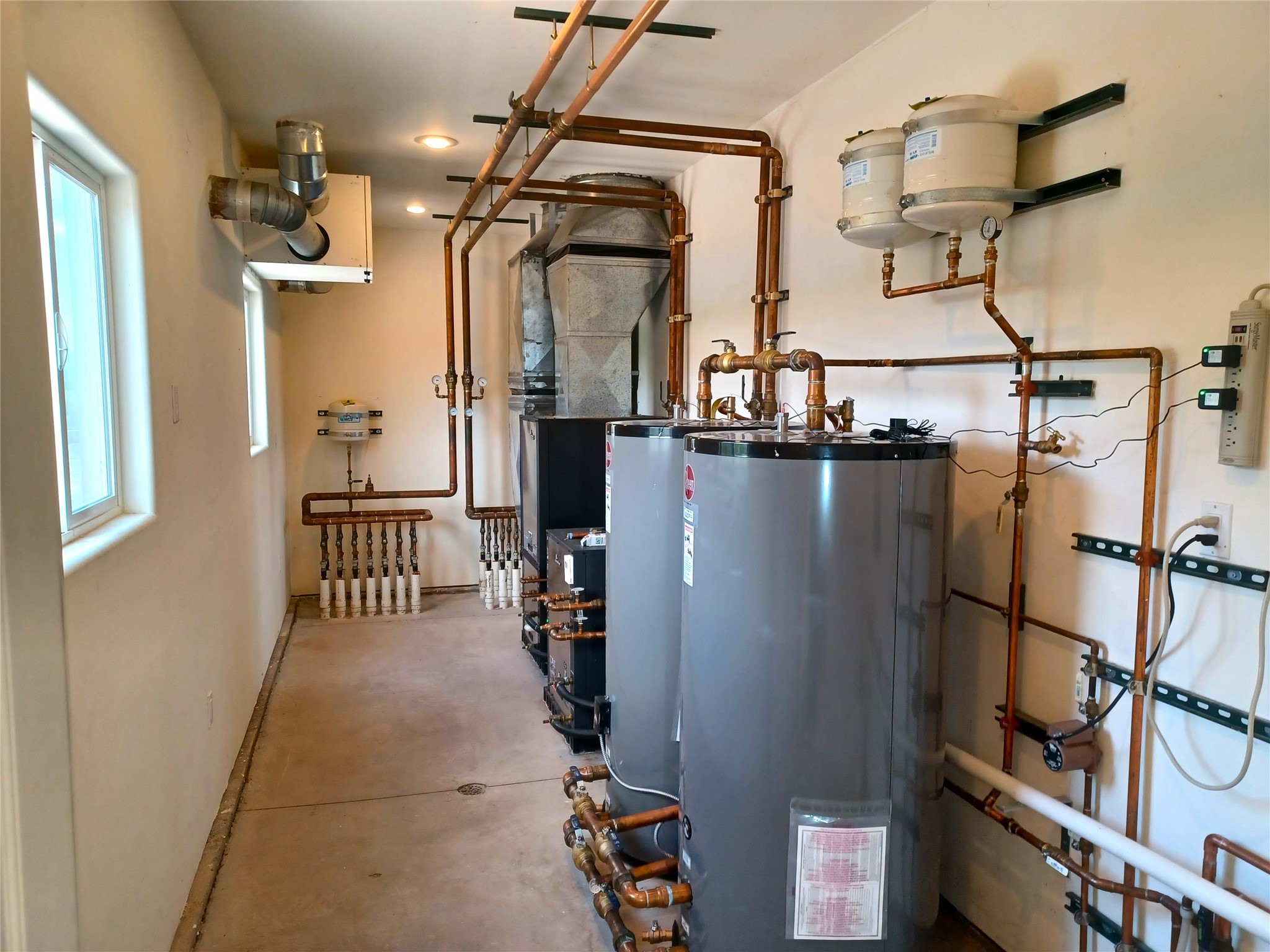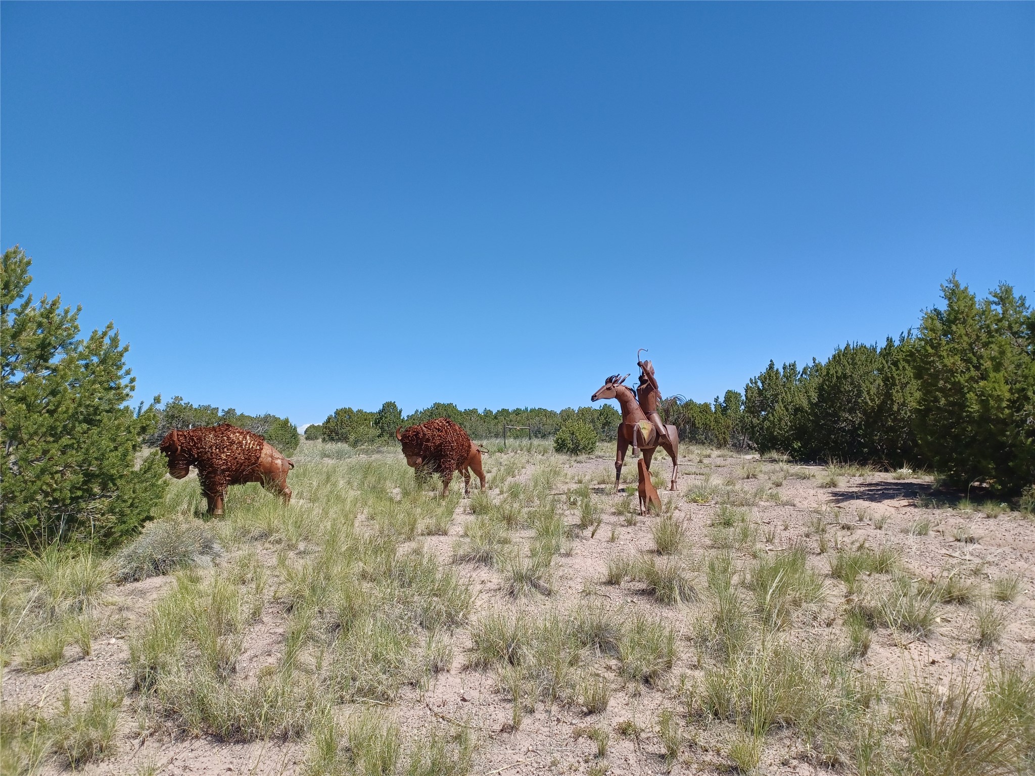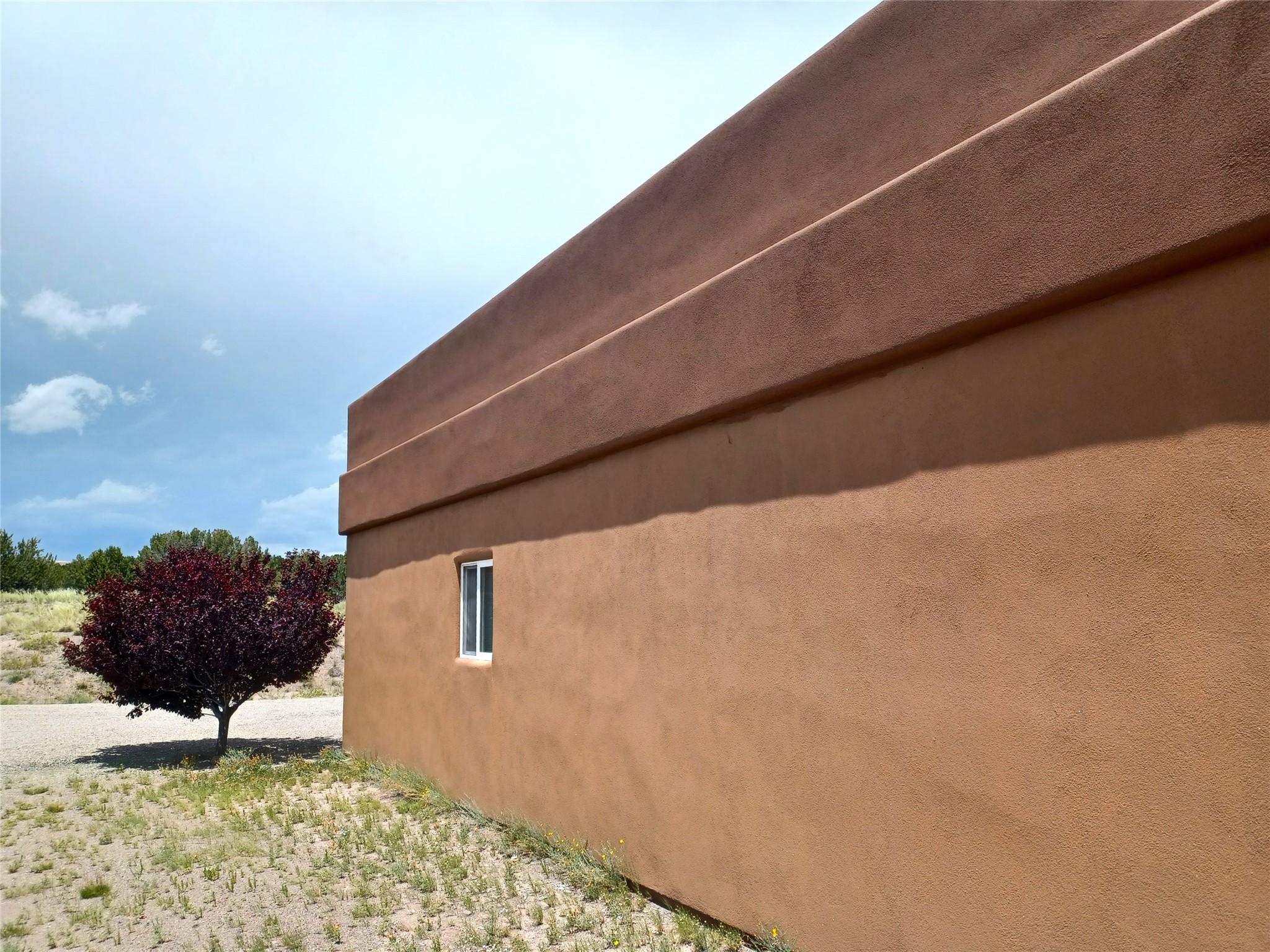Welcome to the exceptional property located at 64 Coyote Trail in Santa Fe County. Situated on over 20 acres, this distinguished luxury home represents a meticulously planned and executed estate, achieving complete independence from fossil fuels. The residence features a contemporary geothermal system for heating and cooling, effectively replacing propane and natural gas, alongside a substantial solar photovoltaic array that not only powers the home but also contributes energy back to the grid. The property maintains a connection to PNM to ensure continued electric service. Furthermore, a private well and septic system enhance this home's self-sufficiency, resulting in remarkably low operating costs throughout the year. The residence encompasses 3,619 square feet and includes three bedrooms and three bathrooms. The master suite is particularly noteworthy, featuring two separate, luxurious ensuite bathrooms on opposing sides, all wheelchair accessible as the rest of the home. Additional interior features include classic eurpoean design touches, a wood burning fireplace and a formal dining room. The property also boasts a generous 1,786 square foot temperature controlled garage, suitable for 6 + vehicles or to use as a workshop. Constructed with superior quality on a concrete slab, this remarkable home reflects uncompromising standards. I invite you to schedule a private viewing of this unique property at your earliest convenience. Please be advised that showing times are limited, and the listing Broker is required to be present for all appointments. There is not a for sale sign on the street and the gate remains locked except for confirmed showings.