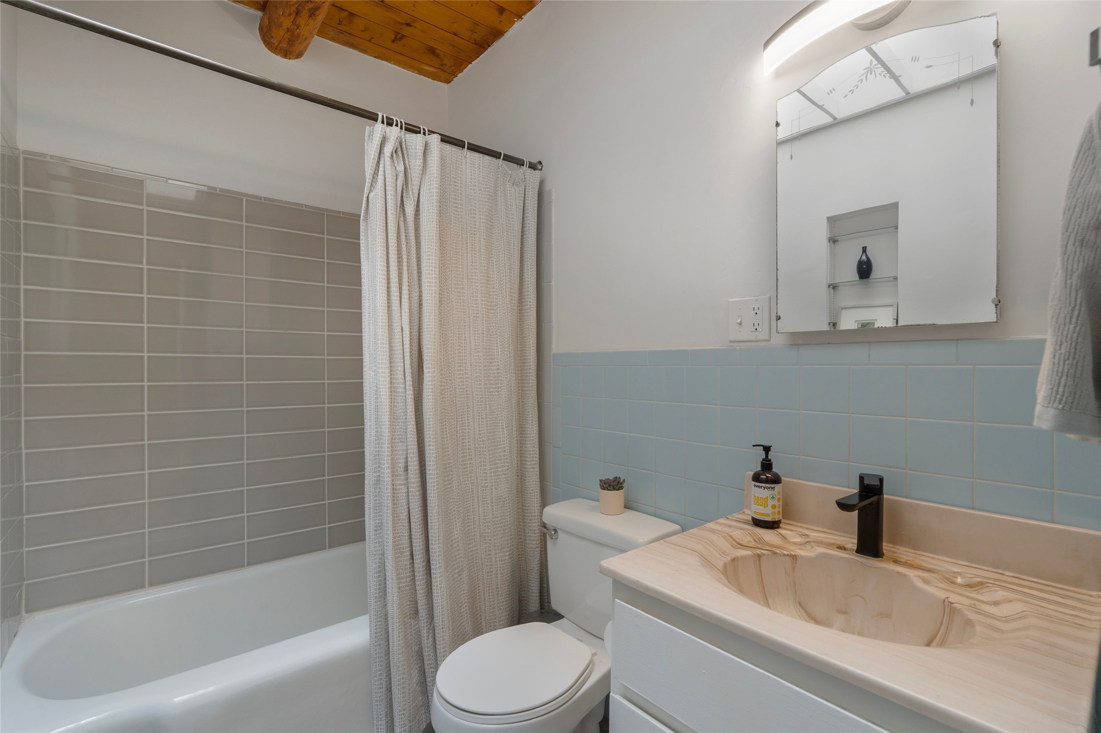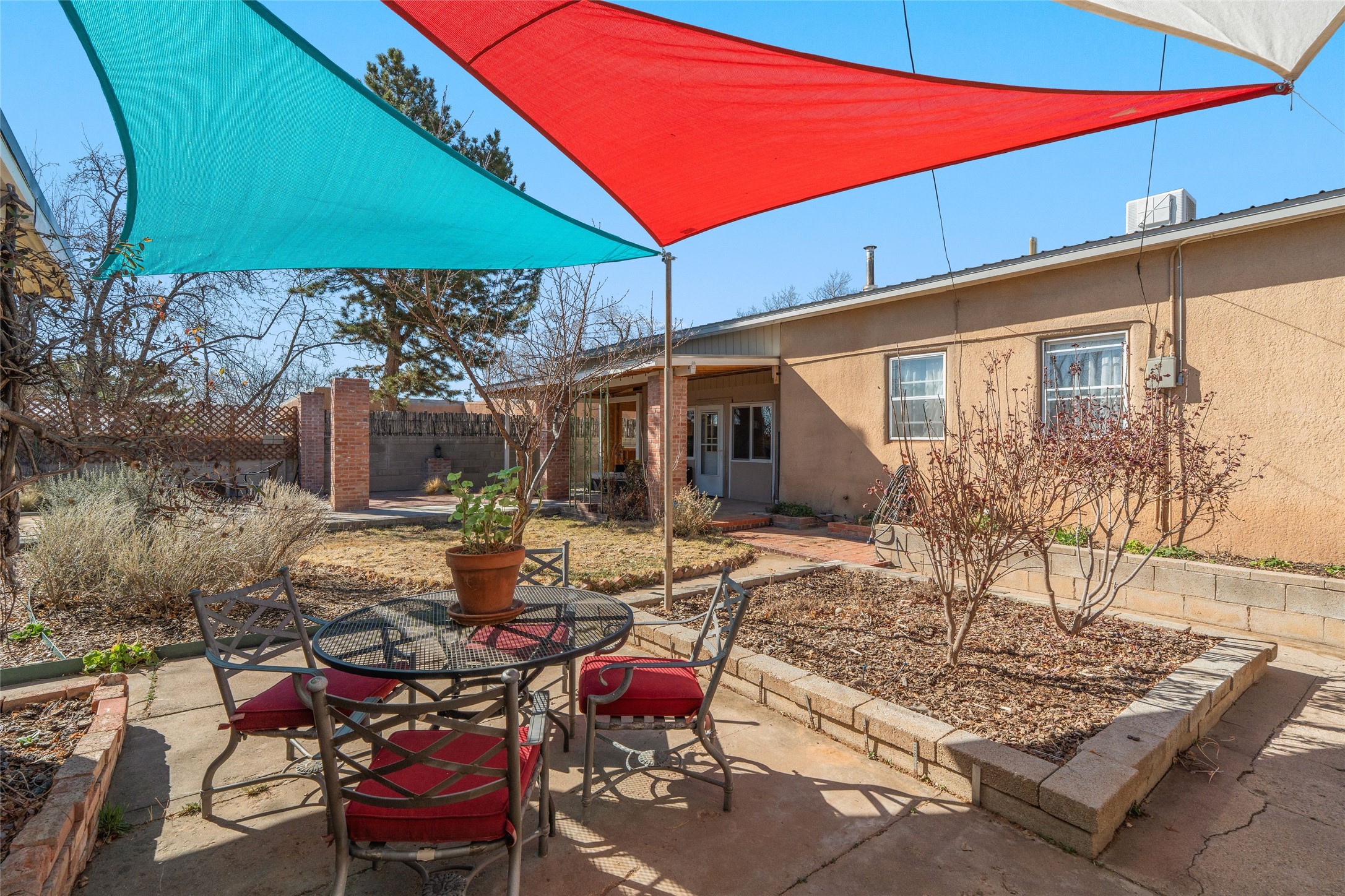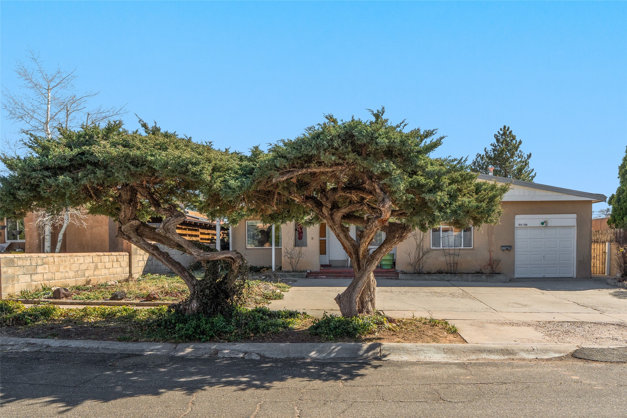 Located in the sought-after Casa Alegre neighborhood, this classic Stamm-built home blends authentic Santa Fe charm with comfortable living. Featuring vigas, a kiva fireplace, original doors, and hardwood floors, the home showcases the timeless character these mid-century properties are known for.Built in 1955, the property offers three bedrooms and two bathrooms, plus a bonus room addition that provides flexible space for a family room, office, or studio. With 1,659 square feet of living space, the home sits on a quiet street in one of Santa Fe's most desirable and convenient locations.The inviting dining area flows seamlessly from the living room into the mid-century kitchen and bonus room, creating a functional and welcoming layout. Enjoy outdoor living on the covered front porch or the covered back patio, perfect for relaxing or entertaining.Outdoor enthusiasts will appreciate the easy access to Frenchy's Field, the River Trail, Ashbaugh Park, the Acequia Trail, and Gregory Lopez Park, all just moments away, while shops and restaurants are only a short drive.Additional features include a storage shed with electricity, ideal for a workshop, studio, or extra storage. An attached one-car garage adds convenience and functionality.Recent upgrades include a new forced-air heating system installed in 2026, an evaporative cooler installed in 2021, remodeled bathrooms, a newer washer and dryer, and a newer hot water heater. The landscaping is supported by drip irrigation for easy maintenance.Schedule your private showing today and experience the charm and location of this Casa Alegre gem.