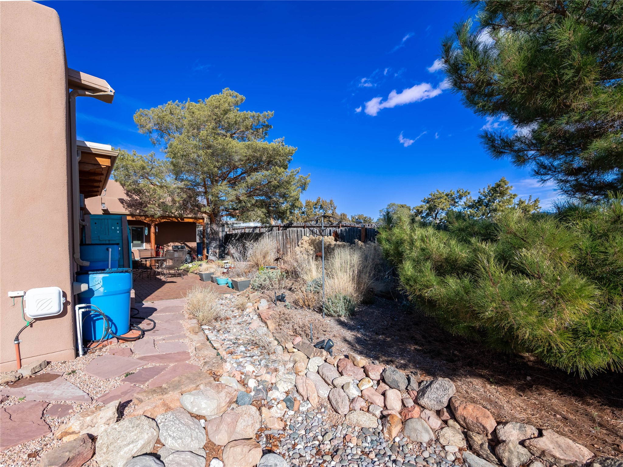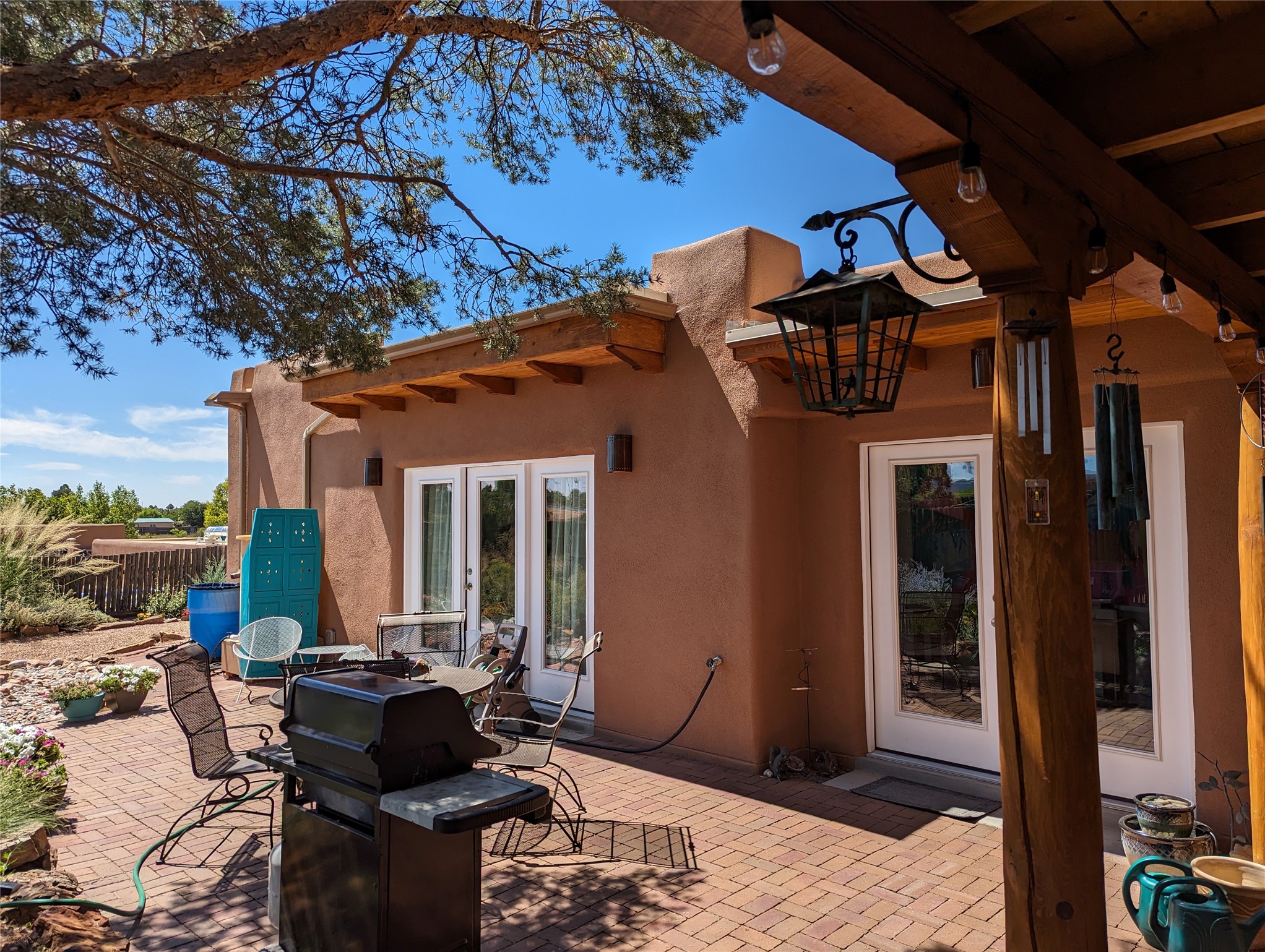 Tucked into the heart of Los Chamisos, this inviting single-level Pueblo-style residence offers a refined balance of classic Santa Fe charm and thoughtful modern updates. Designed for ease and comfort, the home unfolds across approximately 1,589 square feet, creating a warm, flexible environment well-suited for both everyday living and quiet retreat.A 2022 addition significantly expanded the home, introducing generous living space filled with natural light--perfect for a home office, creative studio, or relaxed second living area. Throughout the home, clean lines and purposeful updates create a calm, cohesive aesthetic that feels both grounded and contemporary.The kitchen and dining areas flow comfortably for daily life and casual entertaining, complemented by updated cabinetry and finishes. Efficient mini-split heating and cooling systems provide year-round comfort, while newer windows and doors enhance light, insulation, and indoor-outdoor connection. Bedrooms are well proportioned and private, offering restful spaces with updated flooring and thoughtful storage.Outdoors, a landscaped backyard with patio pavers creates a welcoming extension of the living space--ideal for morning coffee, evening gatherings, or simply enjoying Santa Fe's high-desert light. The setting feels private yet connected, with a low-maintenance lot that supports a relaxed, lock-and-leave lifestyle.Located just minutes from shopping, dining, medical services, and downtown Santa Fe, Los Chamisos is prized for its in-town convenience and neighborhood feel. With modest HOA dues and a history of careful maintenance and improvement, this home presents an exceptional opportunity to enjoy comfortable, authentic Santa Fe living in a highly desirable location.