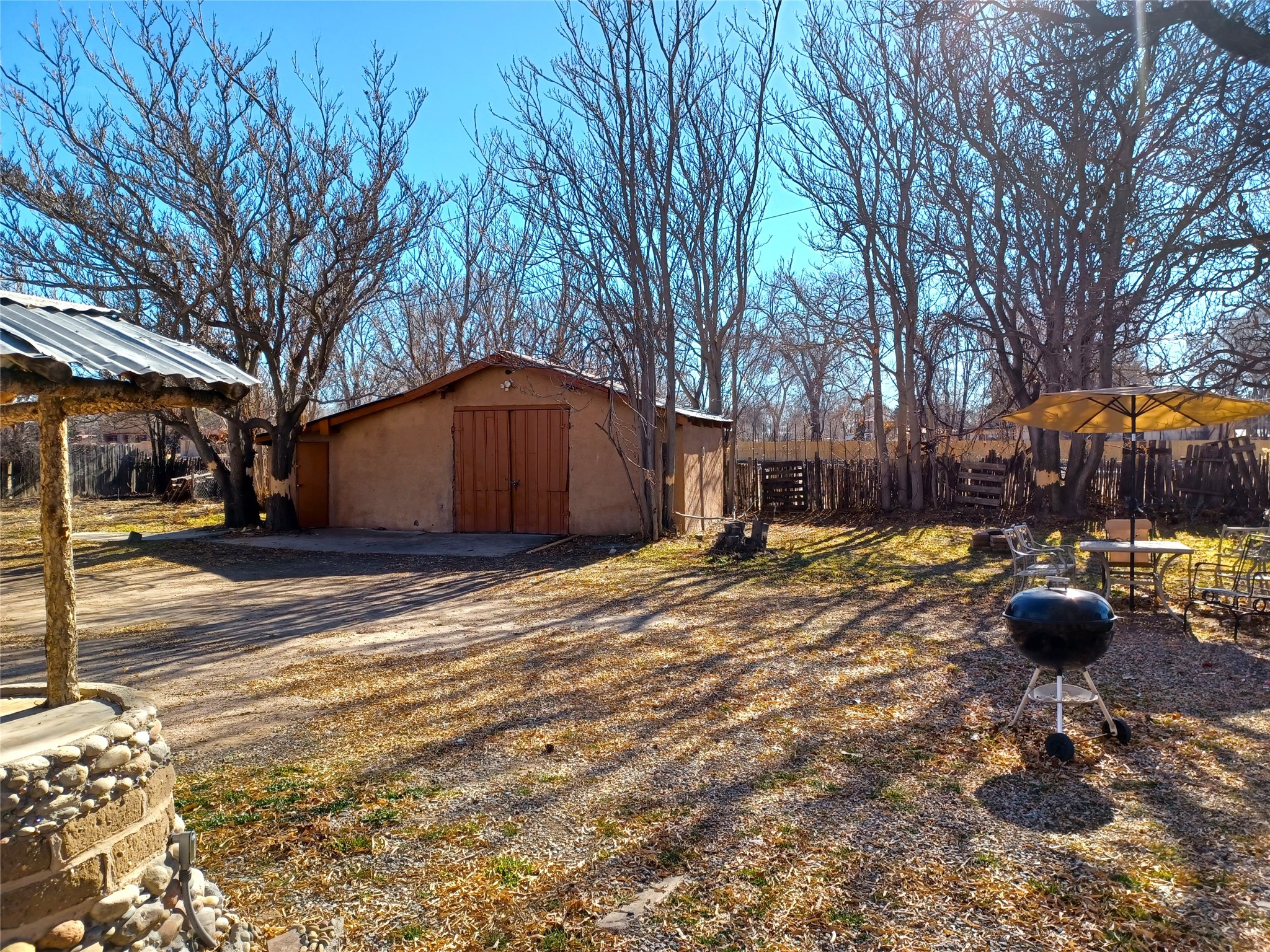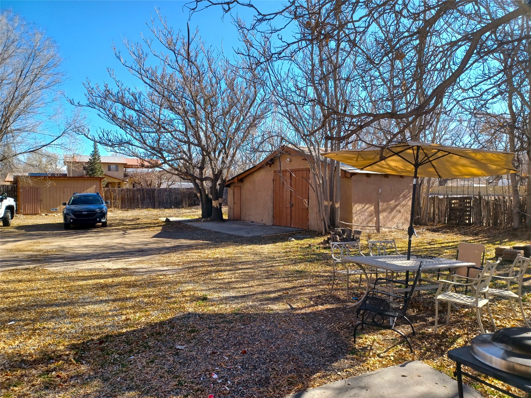 Welcome to "Casa de Guadalupe," a charming vintage adobe sanctuary nestled on half an acre in the verdant landscape of San Pedro in Espaola, NM. This unique 1,984-square-foot home offers a perfect blend of old-world character and modern convenience, featuring two bedrooms, a full bath, and an additional studio ideal for creative pursuits or a home-based business.The interior boasts a vibrant aesthetic feelwith colorful finishes that complement original 1920s oak floors, Mexican tile, exposed beams, and intricate nichos. Outside, the property is graced by a majestic globe willow, mature landscaping, fertile garden spaces, and inviting courtyards. Privacy is ensured by traditional adobe walls and latilla fencing, all secured behind a gated entry.The generous lot also includes a rustic workshop/barn and an additional storage building, catering to artists, writers, gardeners, and boutique farmers. Residents will enjoy scenic commutes to Santa Fe, Los Alamos, and Ojo Caliente Mineral Springs Resort & Spa, with the world-renowned Buffalo Thunder Casino and the Black Mesa Golf Club located just minutes away. Experience the charm and potential of this lovingly updated home in person.Schedule a showing today!