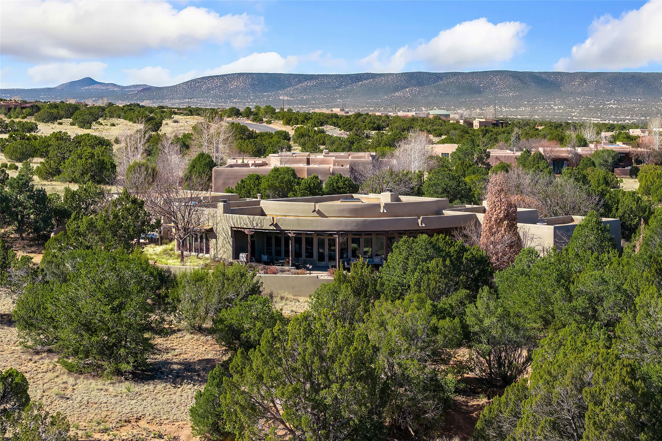 Welcome to 19 Falling Star, wherehigh desert luxury and sophistication is celebrated with this reimagined estate, where the quintessential Santa Fe lifestyle is realized through a seamless blend of soft contemporary design and Pueblo Revival elegance. Positioned at the end of a private cul-de-sac, this exceptional home offers an elevated living experience which excites with front row stunning views of the Sangre De Cristo and Jemez Mountain. Located within the famed communityofLas Campanas, this beautifully updated home impressesin scale with an intimate feel. The dramatic great room--characterized by architectural vigas, a centered fireplace, grand proportions, and a curve wall of view windows--serves as both a sophisticated art gallery and a tranquil retreat. The spacious chef's kitchen and grand dining area cater to the art of gracious entertaining, complete with high end appliances and a massive walk-in pantry. The owner's suite offers the ultimate luxury experience withprivate access to both the east sunrise patio and enclosed west gardens, a cozy kiva fireplace with a seating area, dual walk-in closets and a glamorous spa-like bath. Adjacent to the owner's suite is an ideal media room, grand office or guest bedroom with western, sunset views. Located off the main entrance is a generous, ensuite bedroom with a well-appointed full bath. An additional bonus room located off the main living area, offers a ideal over-flow guest room or exercise room option complete with an adjacent bathBeyond the interior, the home transitions into the ultimate outdoor retreat; a gated front courtyard with a granite water feature provides a serene arrival, while the expansive west portal frames thelegendary sunsets and mountain vistas. Complete with a versatile studio/workshop, this move-in-ready estate with new stucco in 2025, captures the soul of the Southwest with a modern, sophisticated edge.