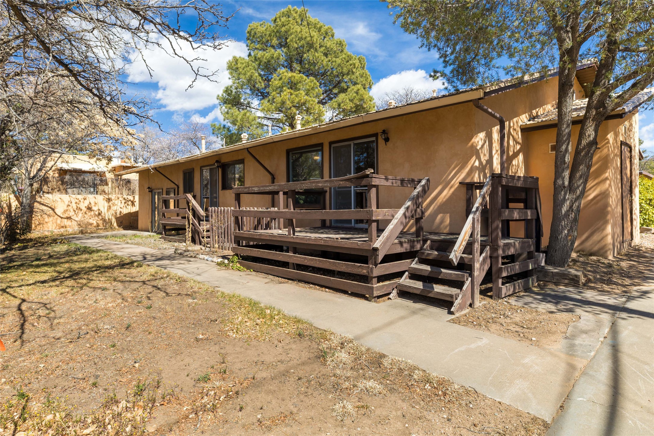 Experience the lifestyle of Downtown Santa Fe at Plaza Del Monte, a gated community located within one of the Southwest's most iconic destinations, just minutes from the historic Santa Fe Plaza. This rare offering presents a compelling opportunity for investors, second-home owners, and adventure travelers alike, with the added benefit of allowable short-term rentals. The community offers a unique and peaceful setting with nearby access to open space, hiking and biking trails, and outdoor recreation, while remaining close to Santa Fe's celebrated galleries, restaurants, and cultural landmarks. A rare chance to own in a community that blends lifestyle, location, and strong investment potential. A versatile duplex opportunity with strong investment potential. This property offers flexibility for investors seeking rental income, a multi-generational living option, or a Santa Fe retreat with built-in income potential. Each side offers a 2-bedroom, 2-bath layout, allowing the property to function as a full 4-bedroom, 4-bath residence, a dual long-term rental, or an ideal live-in investment with income from the second unit. The total living space is 2,192 square feet, with Unit A at 1,059 square feet and Unit B at 1,133 square feet. The floor plan is enhanced by pitched roofs, living rooms with large windows that bring in abundant natural light, and high ceilings that create an open, airy feel--features that appeal to both tenants and owners alike. The private backyard, bordered by mature trees, adds valuable outdoor living space and privacy.