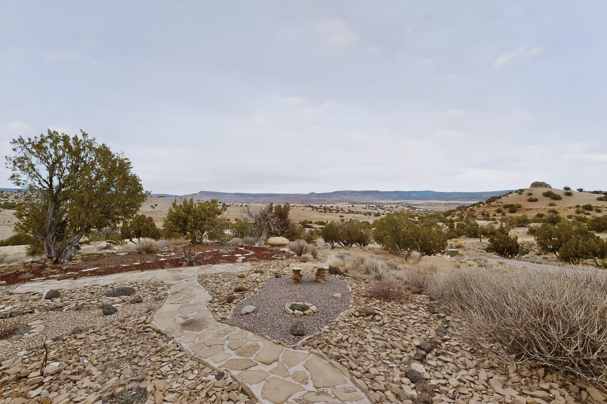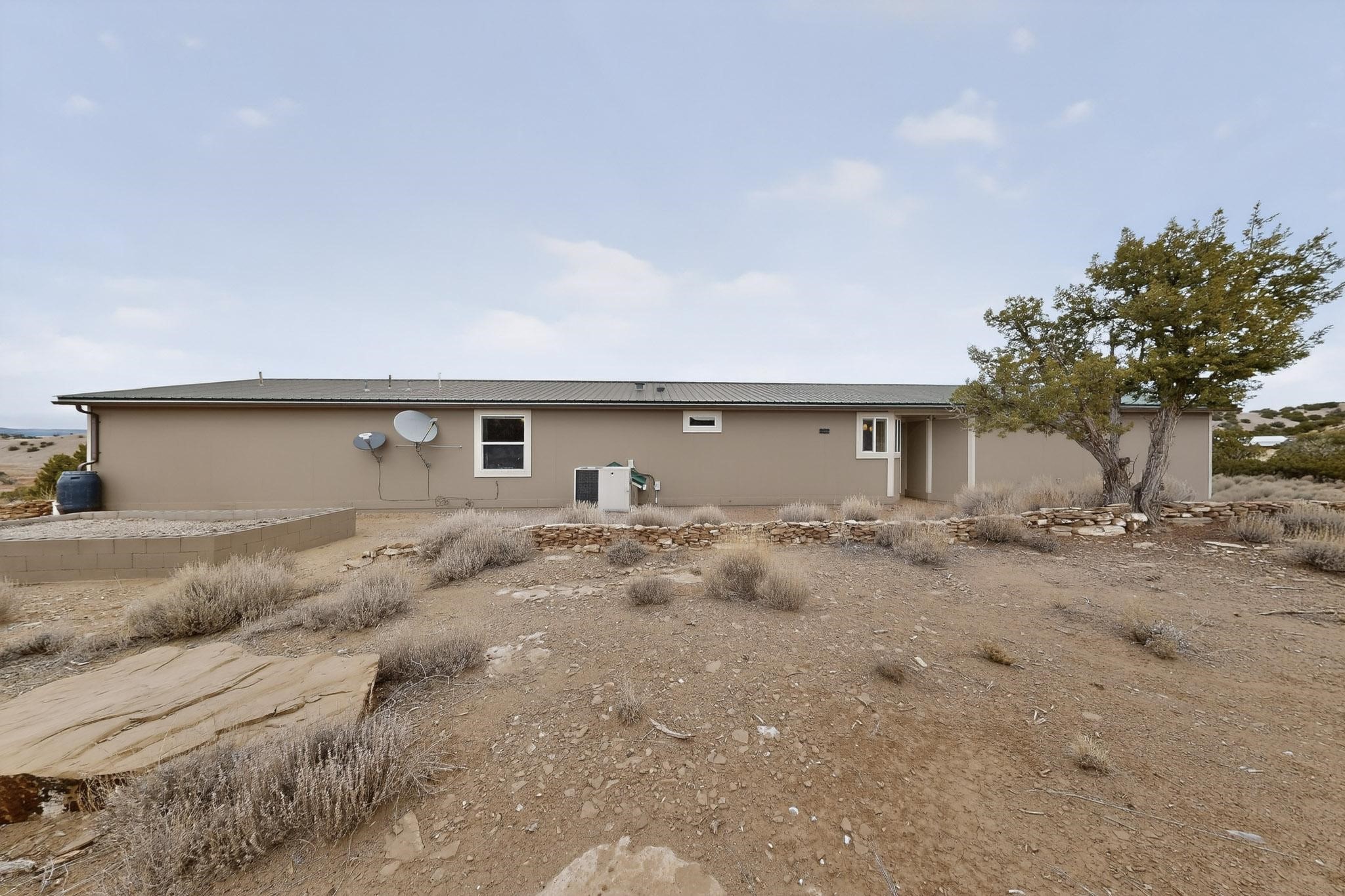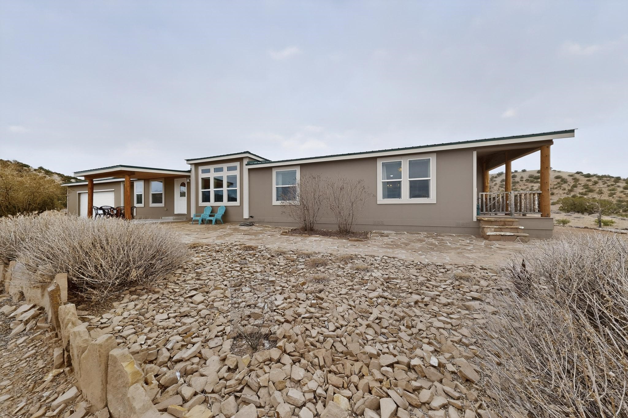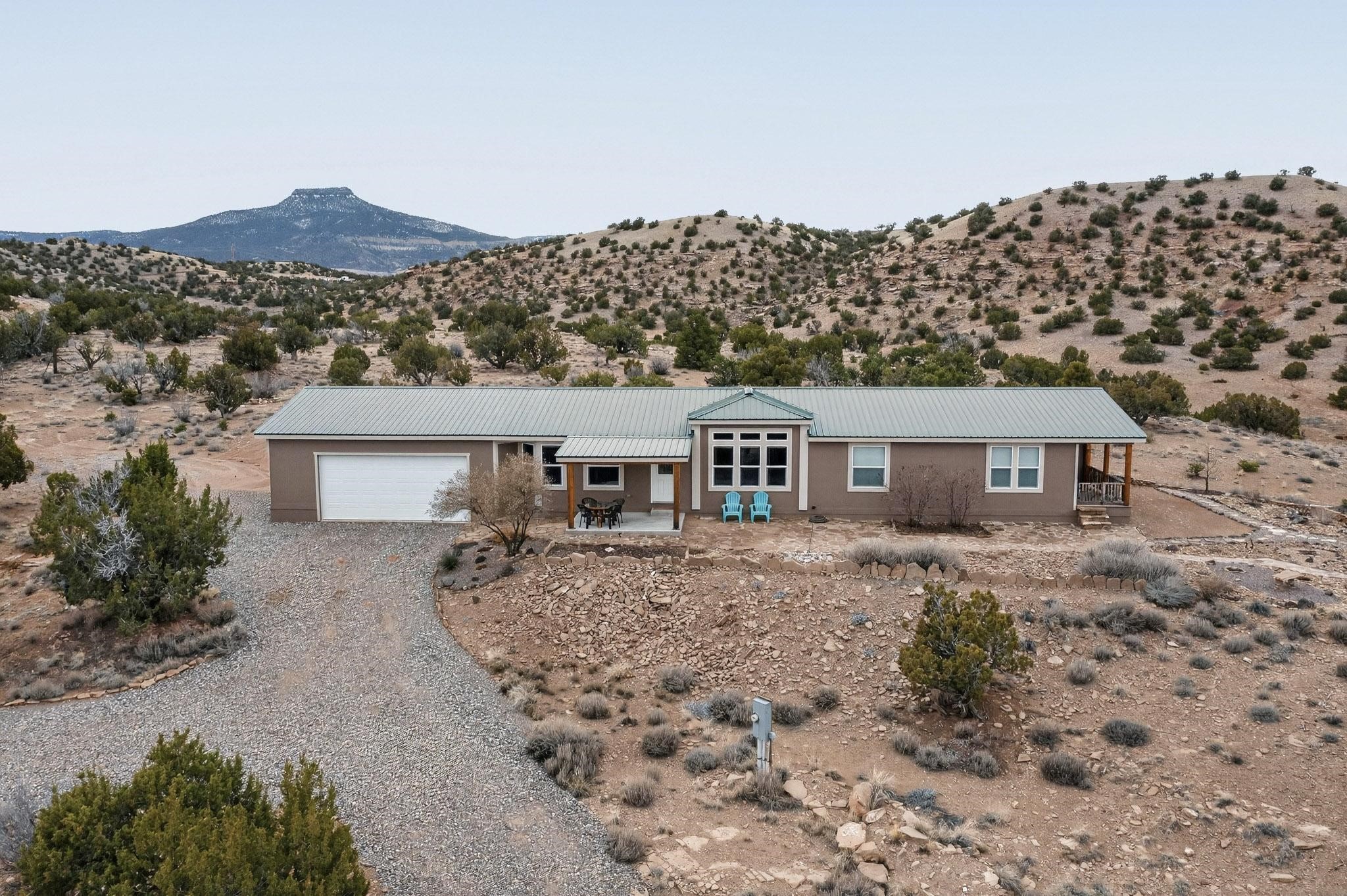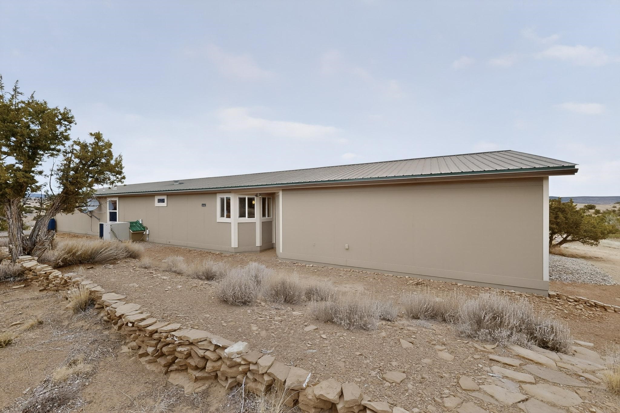 Discover unparalleled tranquility and magnificent scenery at this exceptional 9.43-acre property, offering quiet privacy and stunning lake and mountain vistas. This meticulously maintained acreage has about 3.5acres fenced, providing a secure and serene environment for the perfect New Mexico lifestyle. The full-featured, spacious 2,010 sq. ft. home is designed for comfortable living and practical functionality. Storage is ample, including an oversized laundry room and an impressive 30 ft. by 30 ft. garage. The heart of the home is the spacious, user-friendly kitchen, a culinary delight boasting high-quality finishes, a Bosch dishwasher, and a central island complete with a second sink and a convenient eating bar. The master suite is a true sanctuary, featuring its own private covered porch--an ideal spot for morning coffee or quiet reflection. The large ensuite bath is a luxurious space with a beautifully tiled walk-in shower and an expansive, huge closet. The second bedroom offers the same stunning views as the master and includes its own generous walk-in closet. A flexible office space features elegant built-in cabinetry and holds the potential to easily serve as a comfortable third bedroom. Throughout the home, you will find high-end architectural details and finishes, including soaring vaulted ceilings, solid stem walls, rich hickory cabinets, graceful arched doorways, and durable berber carpets. Allow yourself to be completely enchanted by the legendary sunrises and sunsets that grace this part of New Mexico, painting the sky with unforgettable colors. We invite you to experience this property in full detail. Read the narrative under the first two photos. Please watch the comprehensive 3D VIDEO and the SHOWCASE VIDEO to fully appreciate the unique beauty and quality of this extraordinary lake-view retreat.