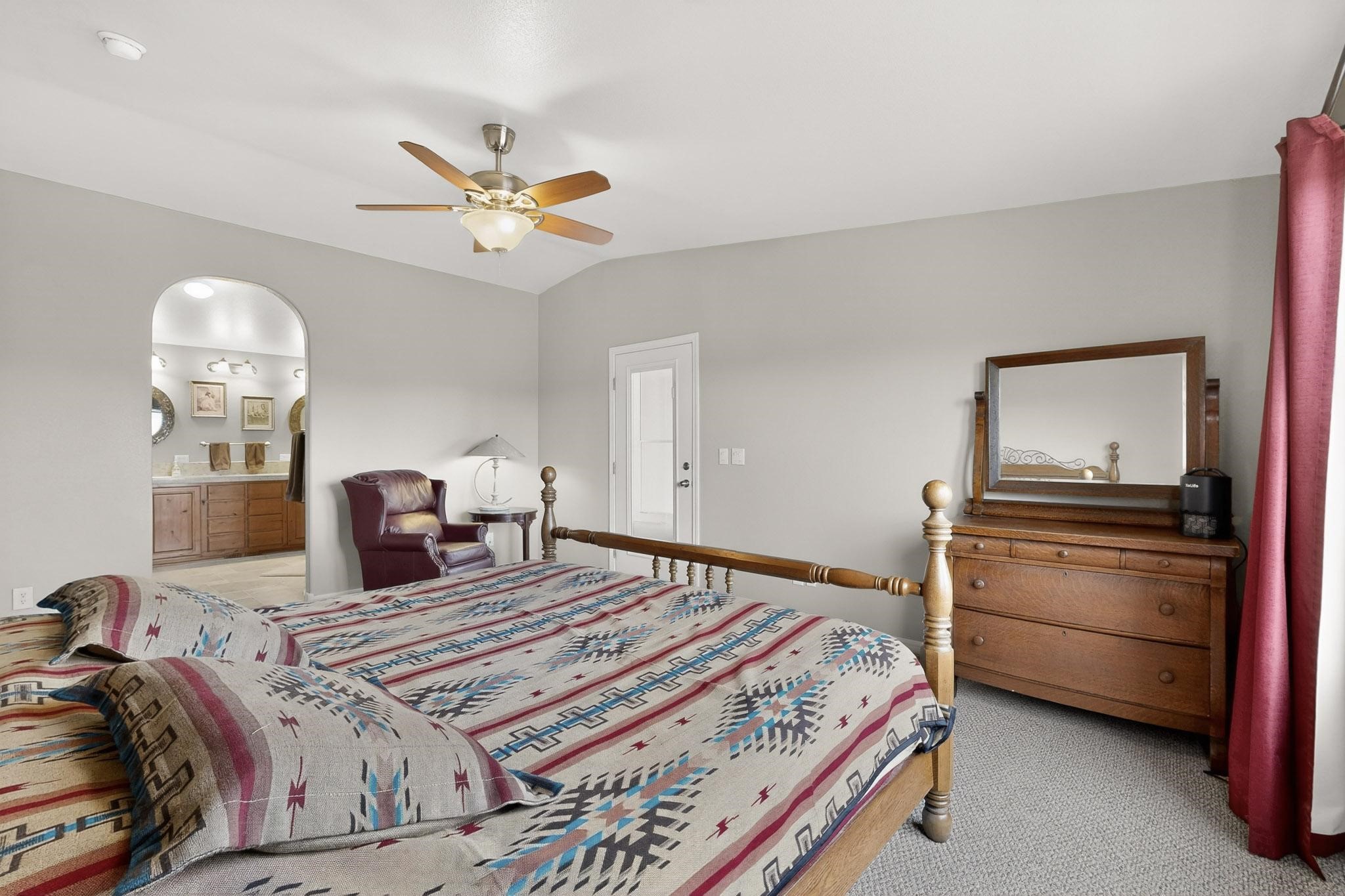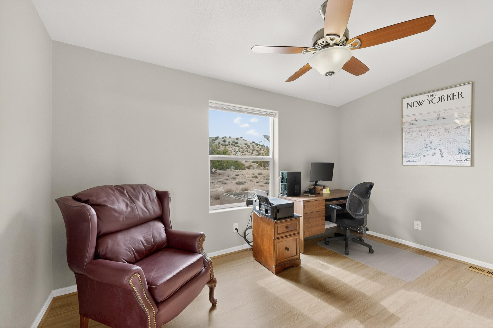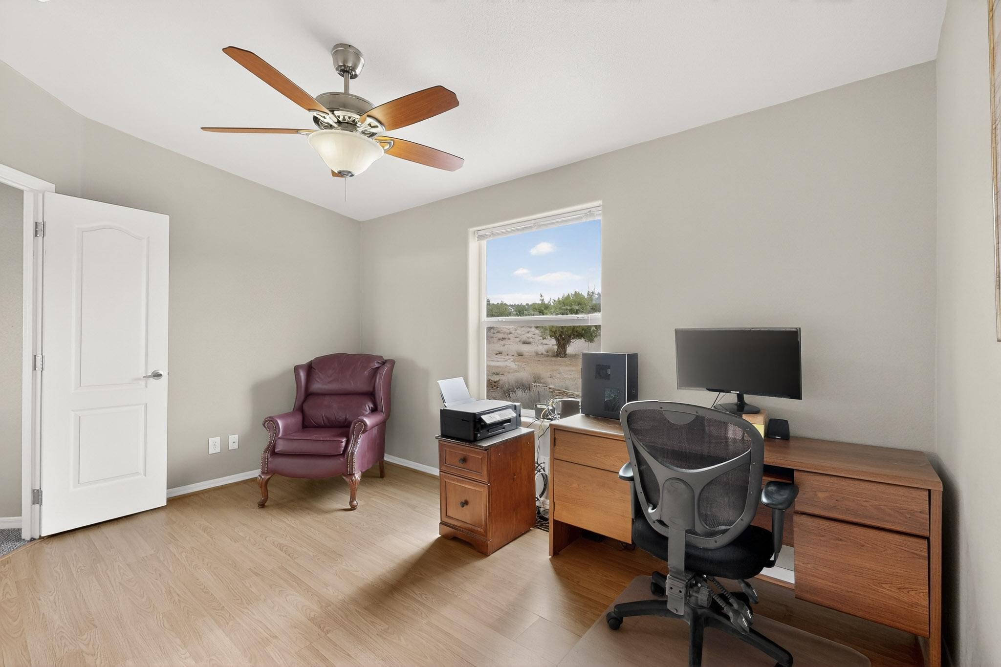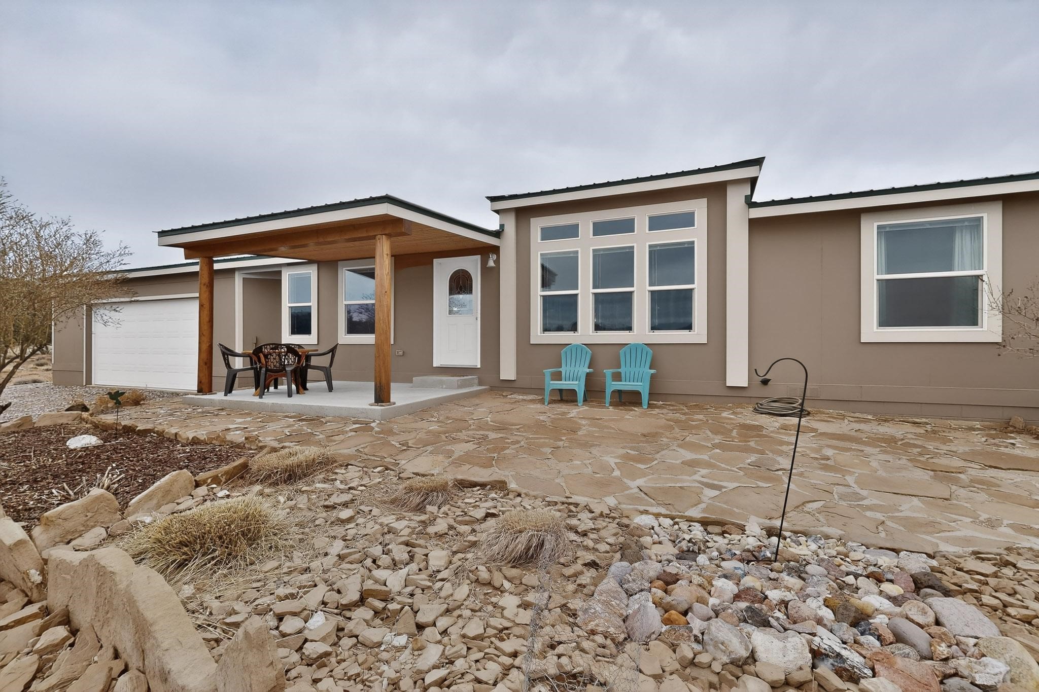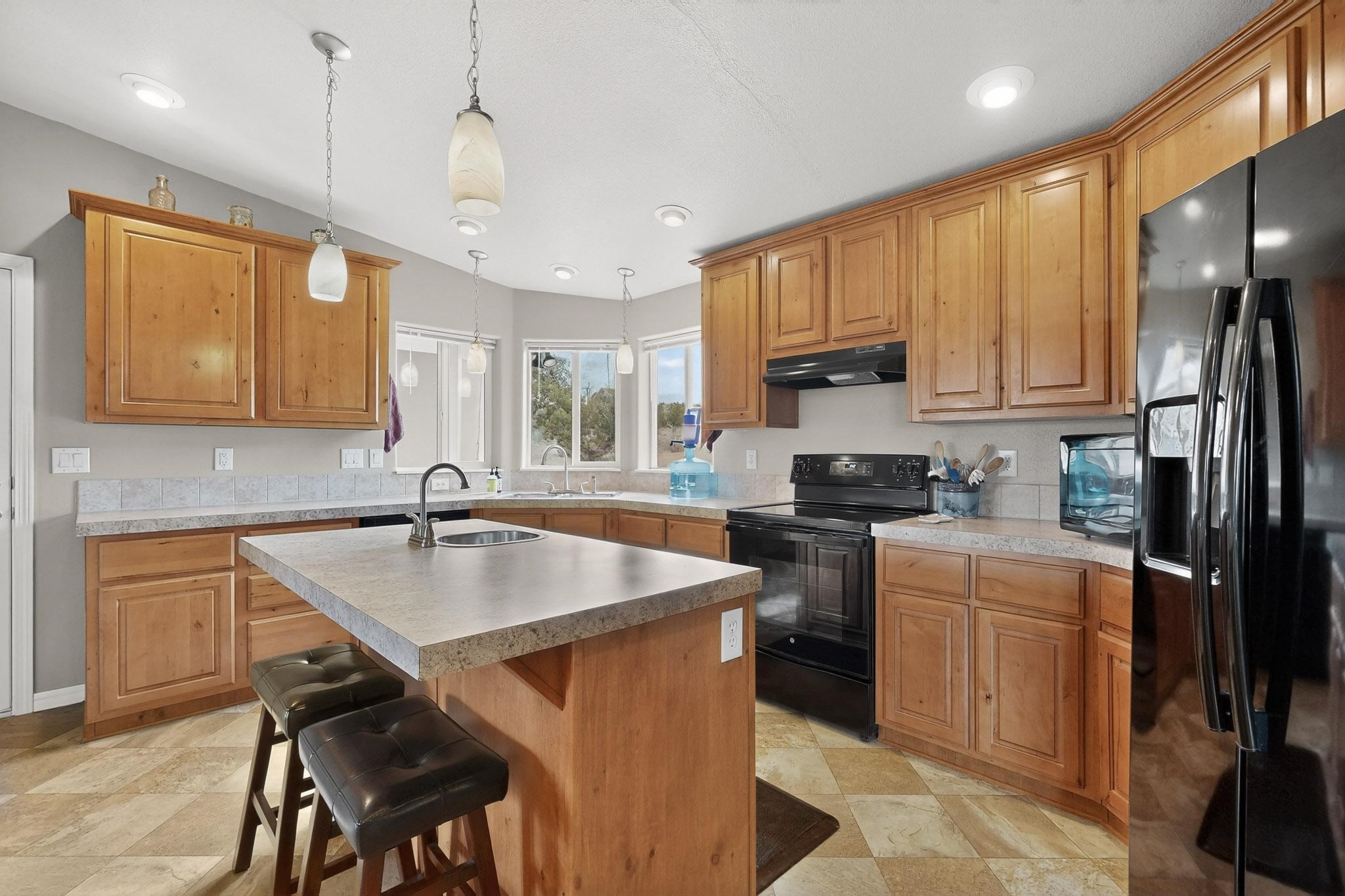 Discover unparalleled tranquility and magnificent scenery at this exceptional 9.43-acre property, offering quiet privacy and stunning lake and mountain vistas. This meticulously maintained acreage has about 3.5acres fenced, providing a secure and serene environment for the perfect New Mexico lifestyle. The full-featured, spacious 2,010 sq. ft. home is designed for comfortable living and practical functionality. Storage is ample, including an oversized laundry room and an impressive 30 ft. by 30 ft. garage. The heart of the home is the spacious, user-friendly kitchen, a culinary delight boasting high-quality finishes, a Bosch dishwasher, and a central island complete with a second sink and a convenient eating bar. The master suite is a true sanctuary, featuring its own private covered porch--an ideal spot for morning coffee or quiet reflection. The large ensuite bath is a luxurious space with a beautifully tiled walk-in shower and an expansive, huge closet. The second bedroom offers the same stunning views as the master and includes its own generous walk-in closet. A flexible office space features elegant built-in cabinetry and holds the potential to easily serve as a comfortable third bedroom. Throughout the home, you will find high-end architectural details and finishes, including soaring vaulted ceilings, solid stem walls, rich hickory cabinets, graceful arched doorways, and durable berber carpets. Allow yourself to be completely enchanted by the legendary sunrises and sunsets that grace this part of New Mexico, painting the sky with unforgettable colors. We invite you to experience this property in full detail. Read the narrative under the first two photos. Please watch the comprehensive 3D VIDEO and the SHOWCASE VIDEO to fully appreciate the unique beauty and quality of this extraordinary lake-view retreat.