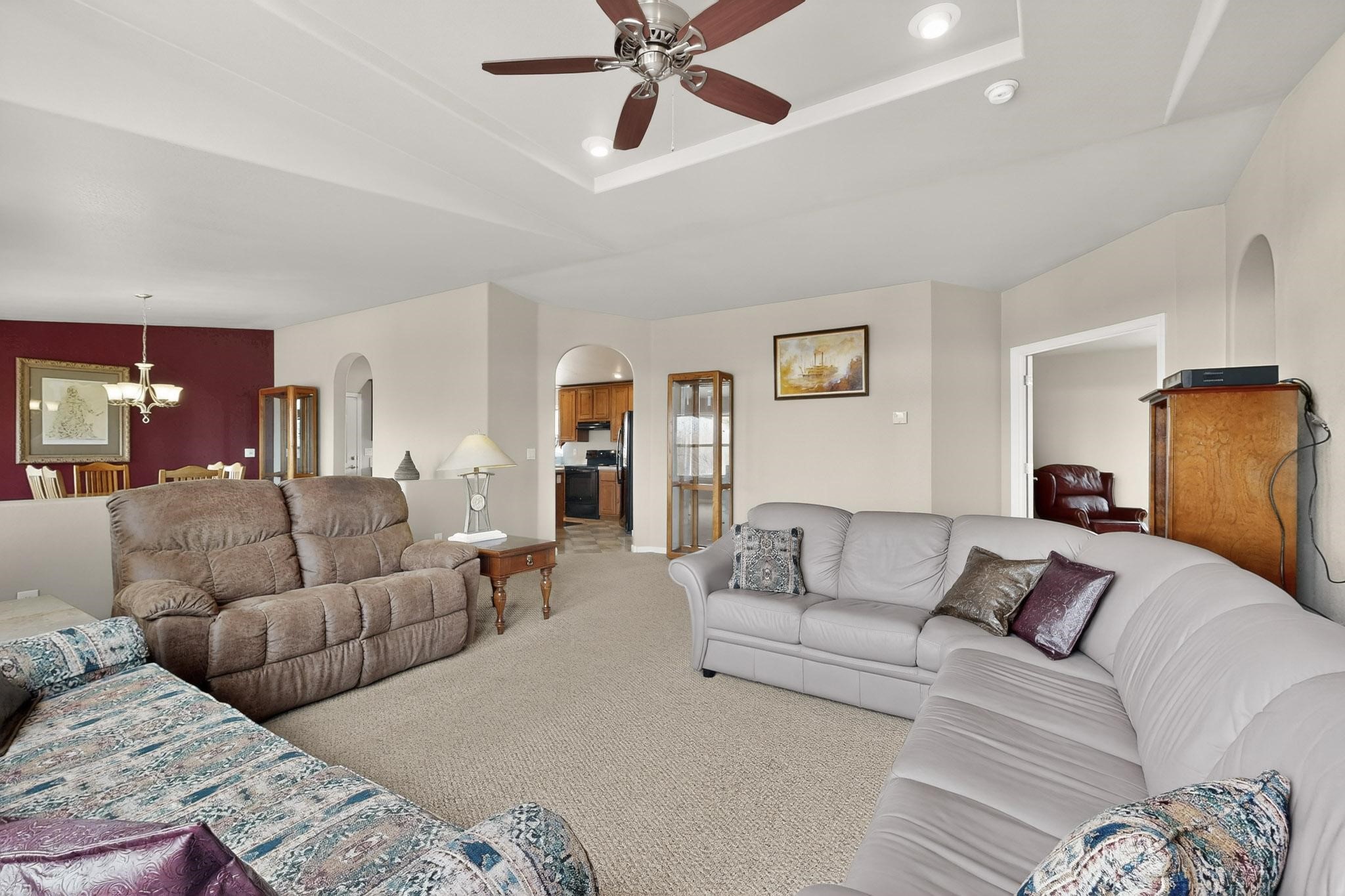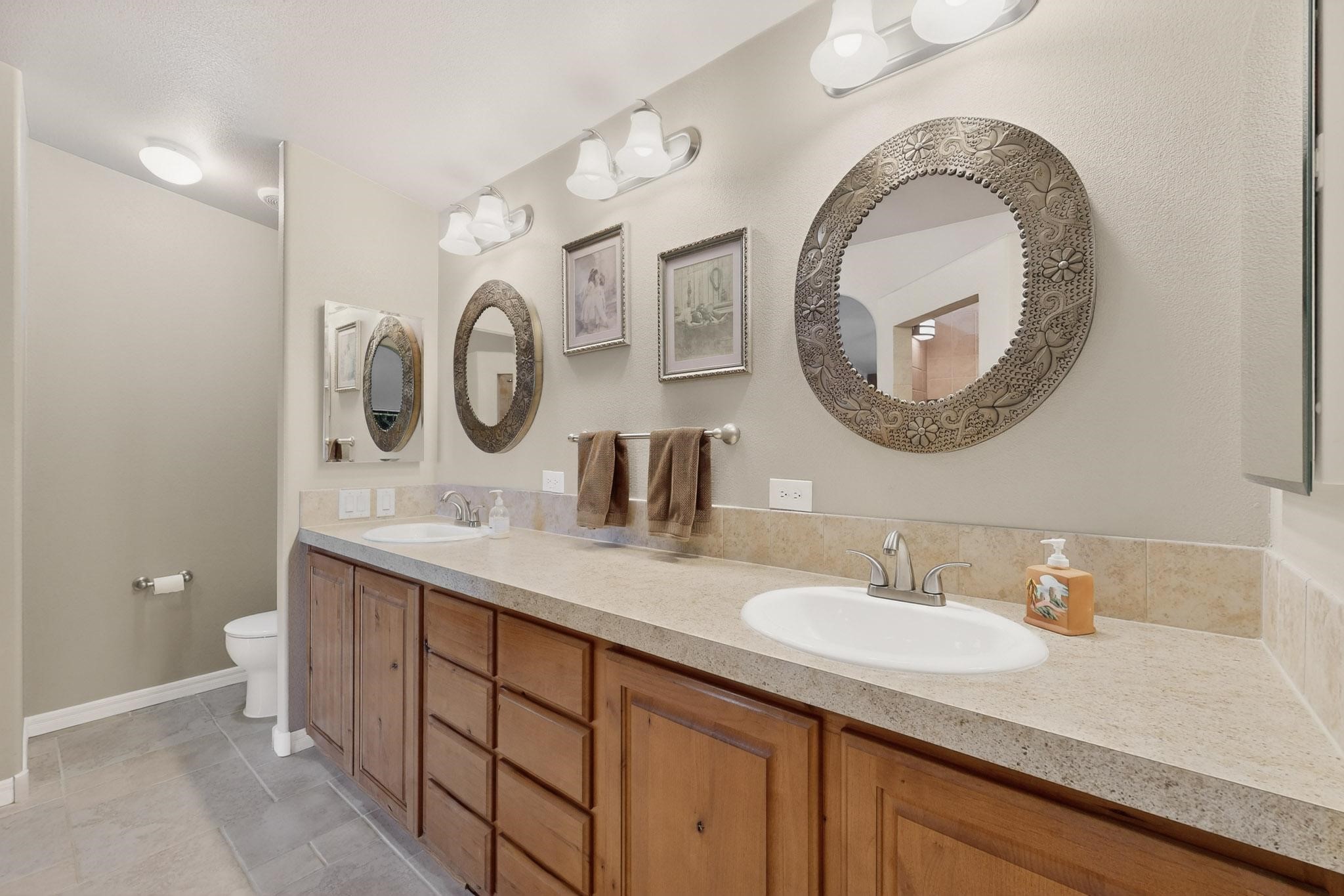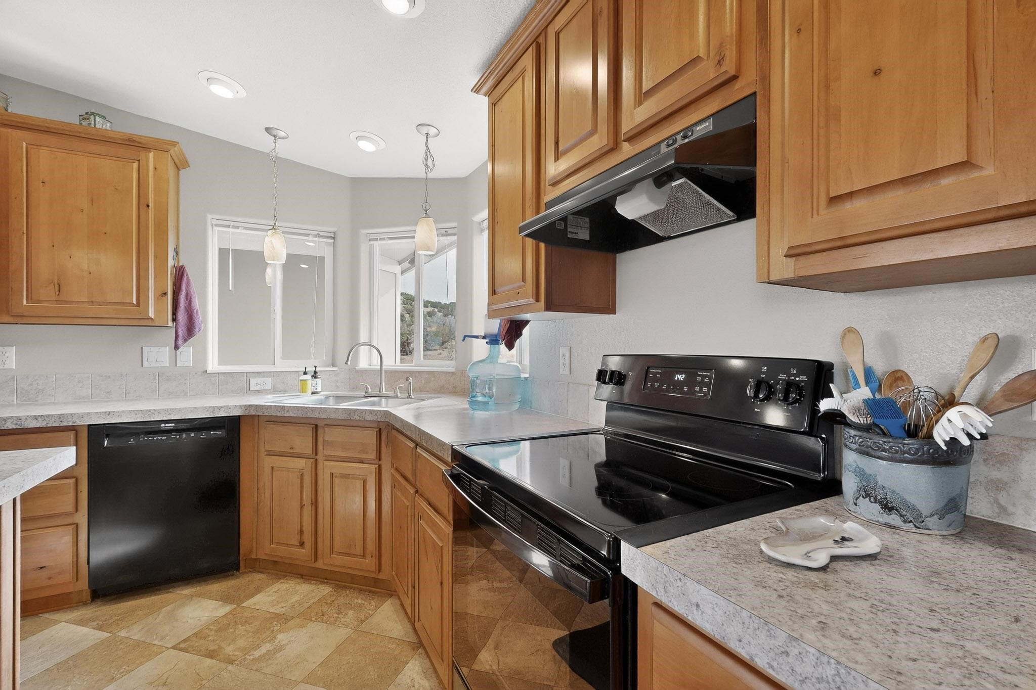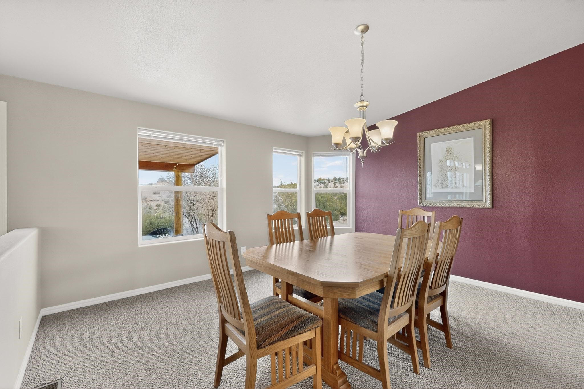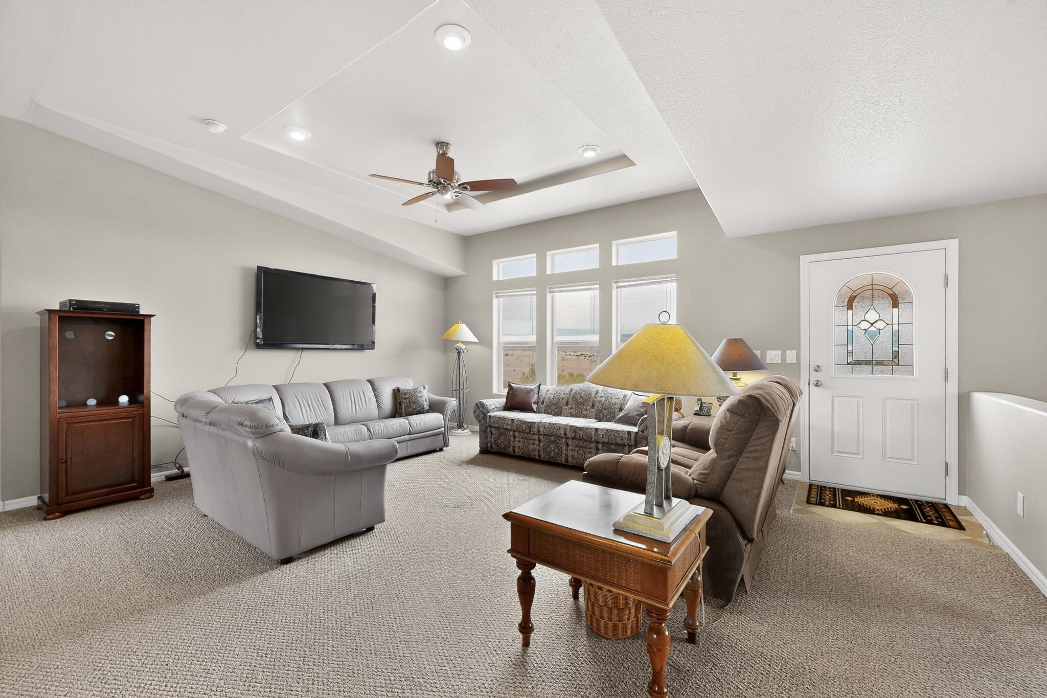 Discover unparalleled tranquility and magnificent scenery at this exceptional 9.43-acre property, offering quiet privacy and stunning lake and mountain vistas. This meticulously maintained acreage has about 3.5acres fenced, providing a secure and serene environment for the perfect New Mexico lifestyle. The full-featured, spacious 2,010 sq. ft. home is designed for comfortable living and practical functionality. Storage is ample, including an oversized laundry room and an impressive 30 ft. by 30 ft. garage. The heart of the home is the spacious, user-friendly kitchen, a culinary delight boasting high-quality finishes, a Bosch dishwasher, and a central island complete with a second sink and a convenient eating bar. The master suite is a true sanctuary, featuring its own private covered porch--an ideal spot for morning coffee or quiet reflection. The large ensuite bath is a luxurious space with a beautifully tiled walk-in shower and an expansive, huge closet. The second bedroom offers the same stunning views as the master and includes its own generous walk-in closet. A flexible office space features elegant built-in cabinetry and holds the potential to easily serve as a comfortable third bedroom. Throughout the home, you will find high-end architectural details and finishes, including soaring vaulted ceilings, solid stem walls, rich hickory cabinets, graceful arched doorways, and durable berber carpets. Allow yourself to be completely enchanted by the legendary sunrises and sunsets that grace this part of New Mexico, painting the sky with unforgettable colors. We invite you to experience this property in full detail. Read the narrative under the first two photos. Please watch the comprehensive 3D VIDEO and the SHOWCASE VIDEO to fully appreciate the unique beauty and quality of this extraordinary lake-view retreat.