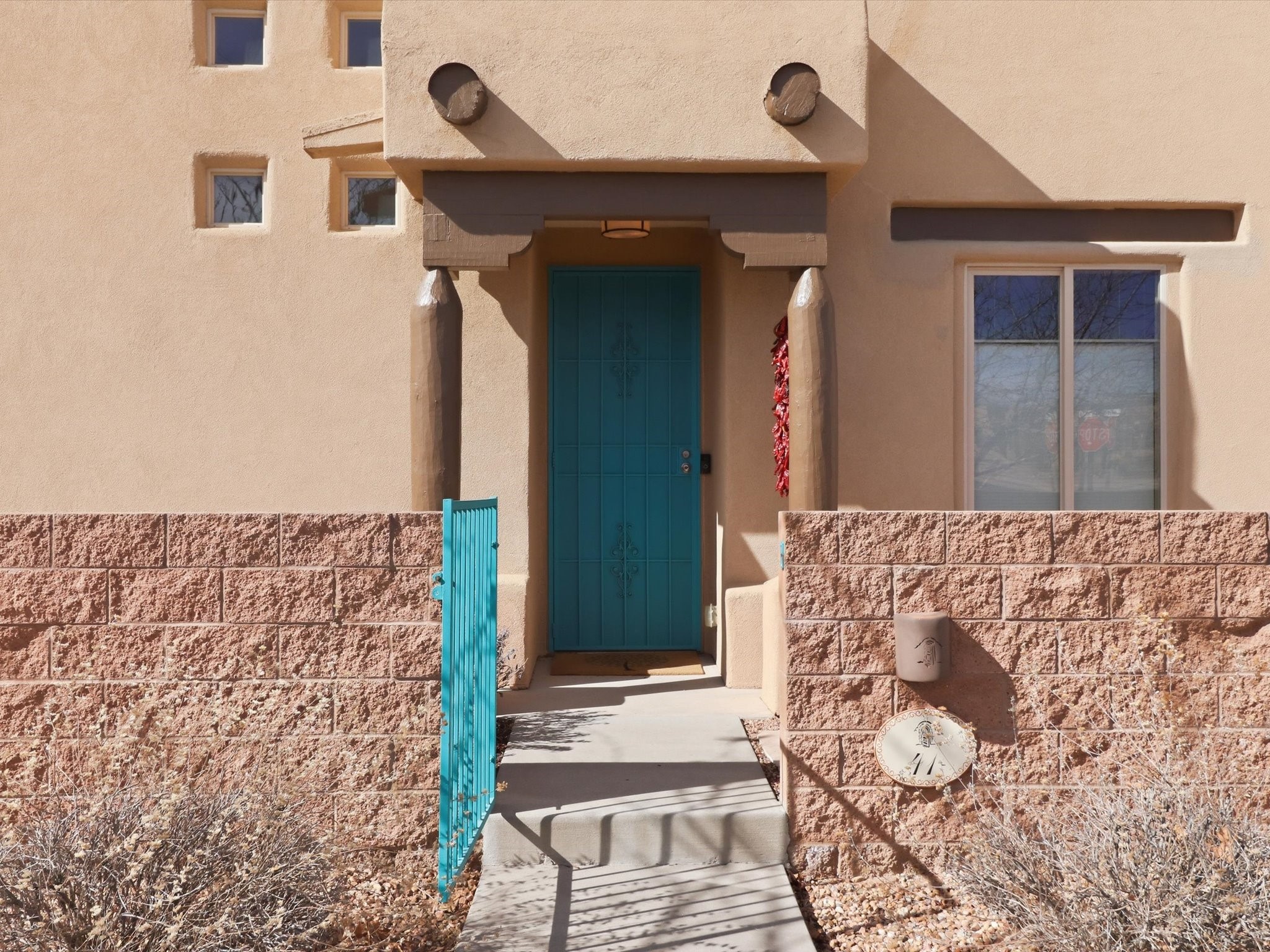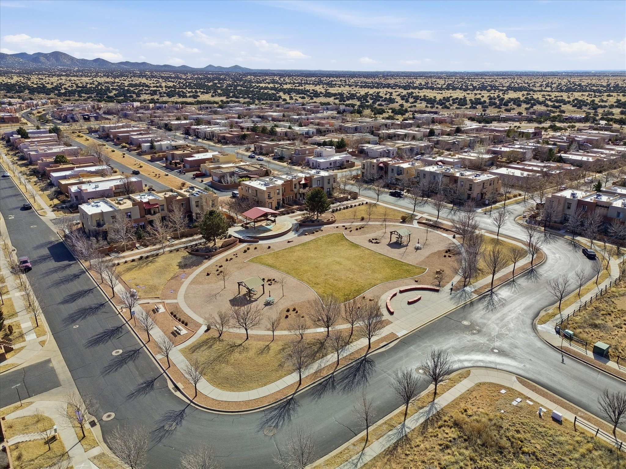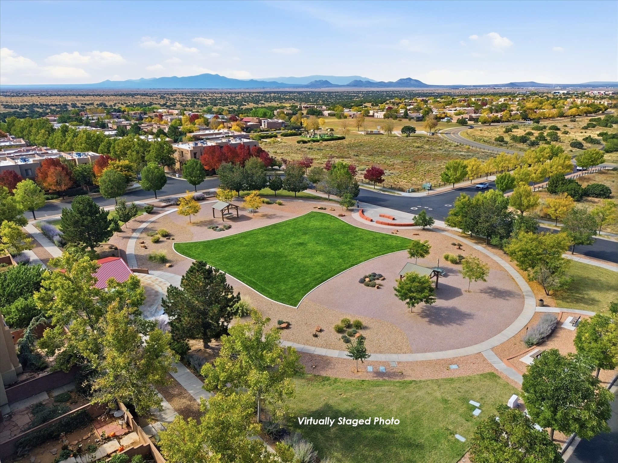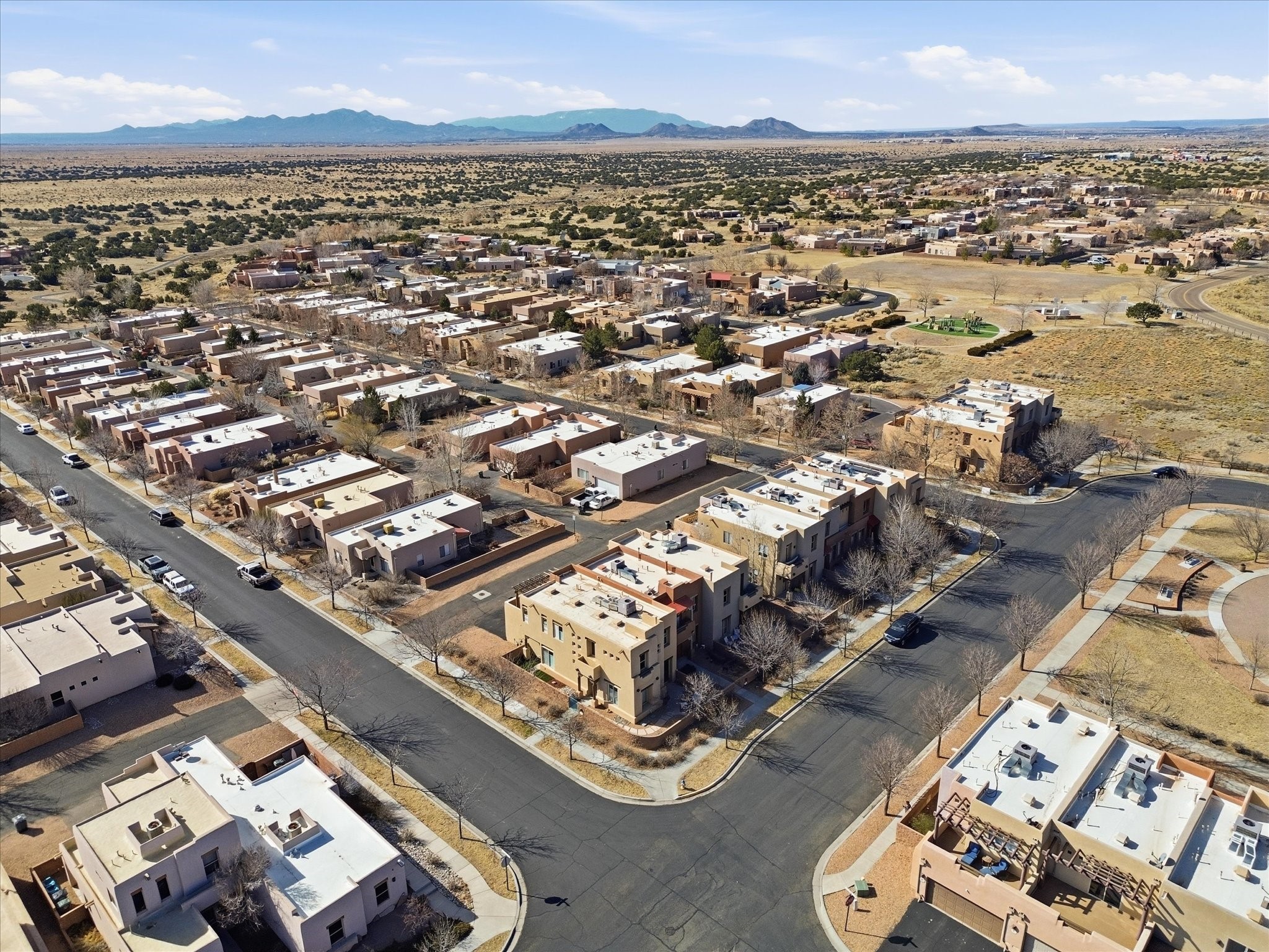 Elevate your lifestyle with this exceptional sun filled end-unit townhome in the desirable Rancho Viejo community. Combine modern comforts and Santa Fe charm in this elegant residence of +/-1700 sq. ft. thoughtfully designed living space with a versatile 3BR and 2 1/2 Bath. Step into a low maintenance wrap around courtyard on a flagstone patio with a sliding door to the tiled dining area. In the kitchen, you'll experience updated modern amenities including a new appliance package (2025) and a Kohler black stainless steel farmhouse sink. Convenient soft close cabinetry and Rev a shelf cabinet drawers for easy access. Enjoy filtered drinking water with the RO water filtration system.The living room is centered around a traditional Kiva gas fireplace and dramatic two-story ceiling adorned with classic vigas and clerestory windows. An efficient HVAC system with a Google Nest control panel allows remote monitoring while away or on the go. In-home and remote monitoring security features include Simplisafe security system and video ring doorbell.Follow the tiled hallway to the flex room appointed as an additional bedroom, office or media room with courtyard view and entry. Powder room (1/2 bath) is steps away. Upstairs, the primary bedroom ensuite offers a private retreat complete with sliding door to a generous deck to enjoy the remarkably quiet neighborhood with views to the East, South, and West. Your walk-in closet is set adjacent to the double vanity, bathtub and water closet.A loft area and second bedroom with reading nook and full bath completes the upper floor. All rooms adorned with custom Graber cellular shades. Entire interior repainted (2023) with custom accent walls. Solid wood door package complements the warm color palette.Additional upgrades include dimmer switches in every room with new flush mount overhead lighting and replaced lighting fixtures throughout.Ample storage with ground floor closet below stairway, double door linen closet off of loft and custom floor to ceiling cabinets in the attached 2-car garage.With Santa Fe's 320+ days of sunshine a year, the surrounding miles and miles of (paved) walking/biking trails are the perfect place for your sunrise and sunset strolls.