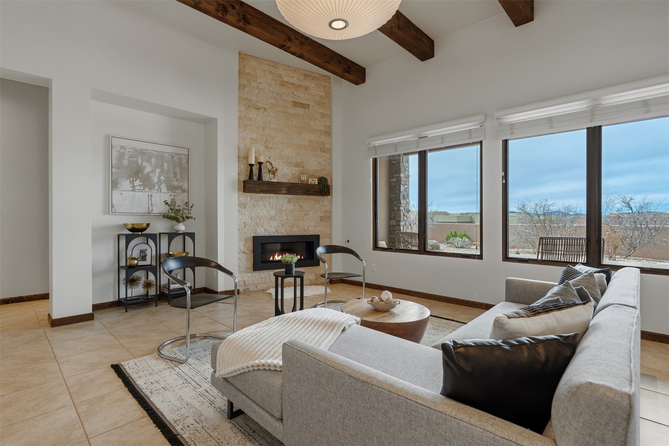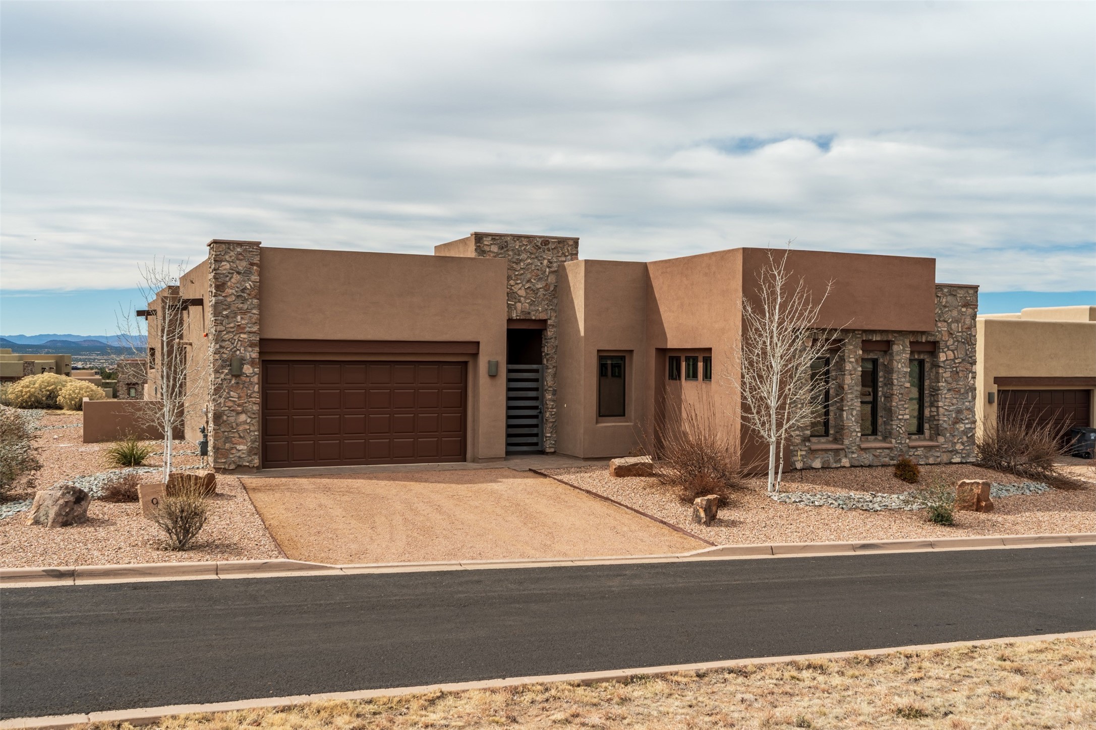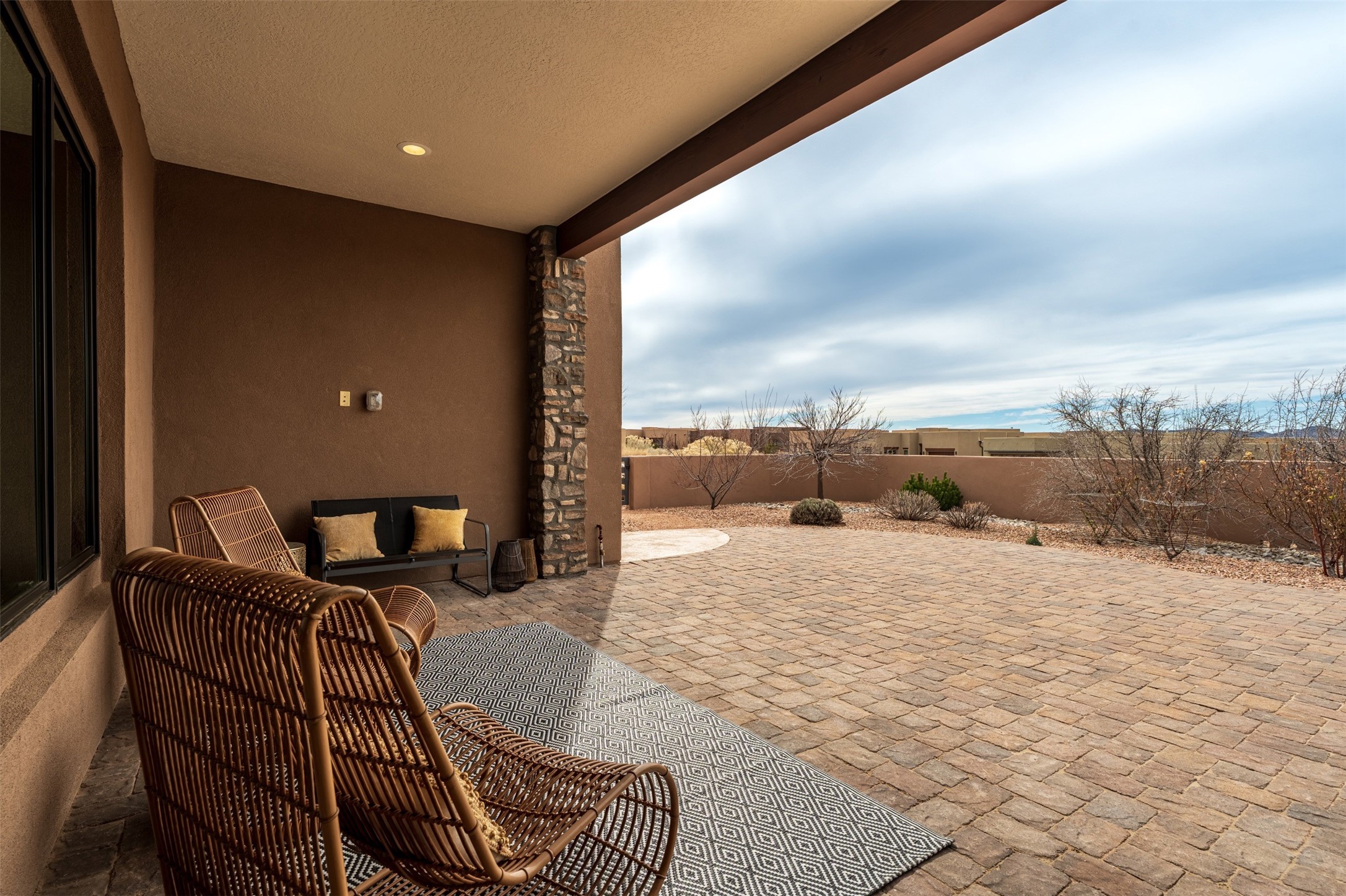 Built in 2019 and impeccably maintained, this 3,111-square-foot residence in the Las Terrazas enclave of Las Campanas offers refined, single-level living with expansive western views. Designed for everyday comfort and elegant entertaining, the home blends clean contemporary lines with the warmth and ease of Santa Fe living.The open-concept great room forms the heart of the home, flowing seamlessly to outdoor spaces and framing sweeping high-desert sunsets from the primary bedroom, kitchen, dining, and living rooms. With four bedrooms and four baths, the layout provides privacy and flexibility. A dedicated bonus room functions beautifully as an office, library, studio, or sitting room, while one of the secondary bedrooms includes a private adjoining living space--ideal for an art studio, fitness area, playroom, or a more expansive guest suite.There are no interior steps, creating effortless circulation throughout. Updated modern lighting enhances the home's clean aesthetic, and a spacious two-car garage with epoxy floors connects to the home via a mudroom, allowing for a seamless transition from the outdoors to your quiet sanctuary.Set within Santa Fe's premier gated club community, Las Campanas offers optional private membership (subject to approval) with access to championship golf, fitness facilities, dining venues, and spa amenities.Polished yet livable, contemporary yet timeless, this home delivers exceptional value within one of Santa Fe's most prestigious and amenity-rich neighborhoods.