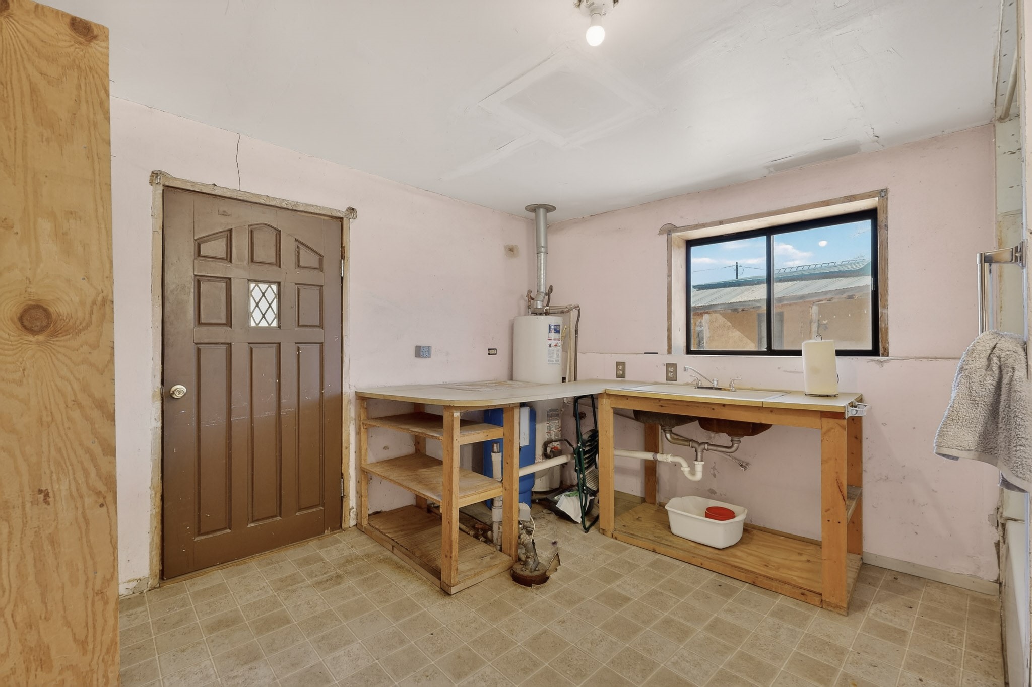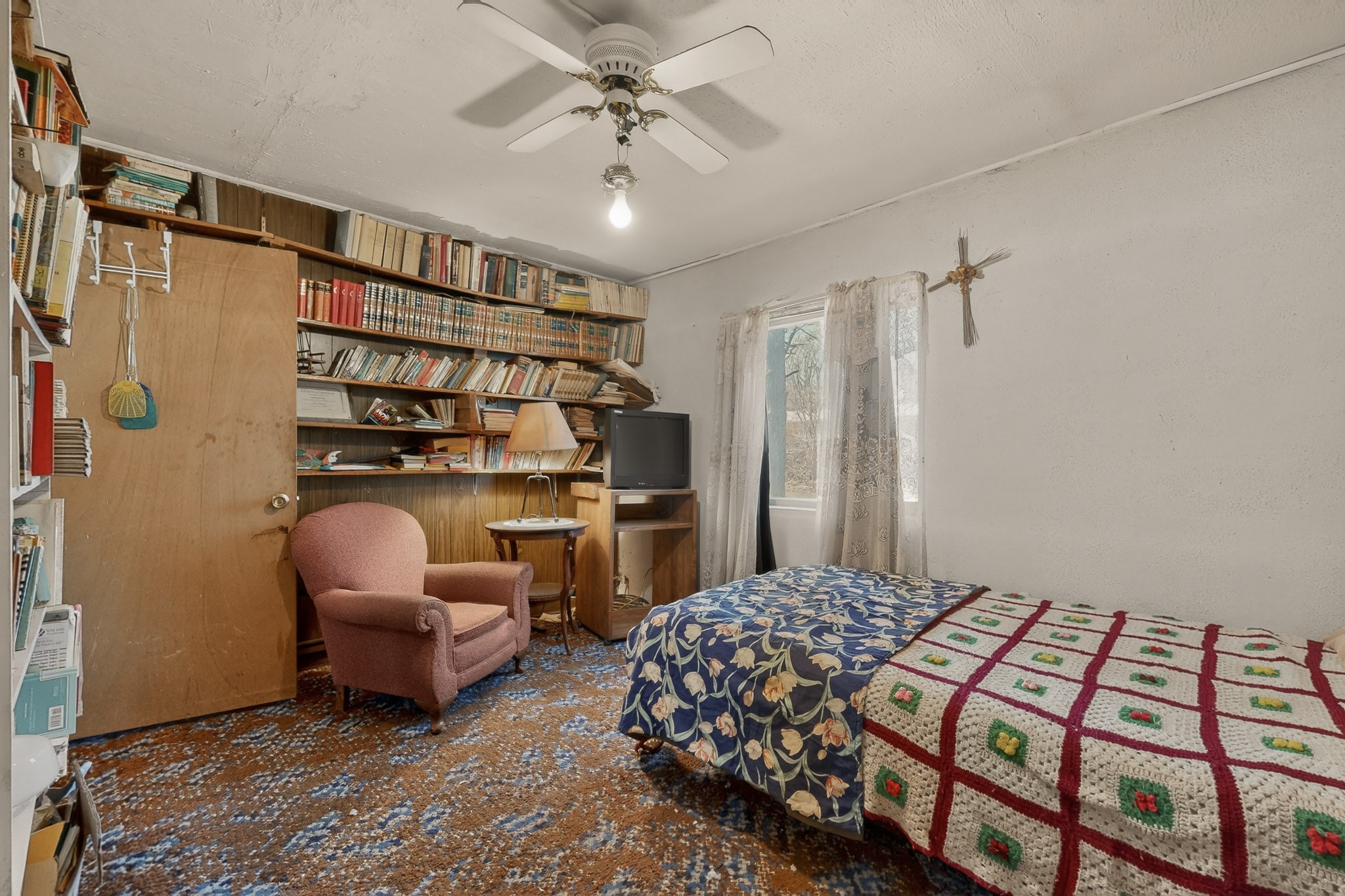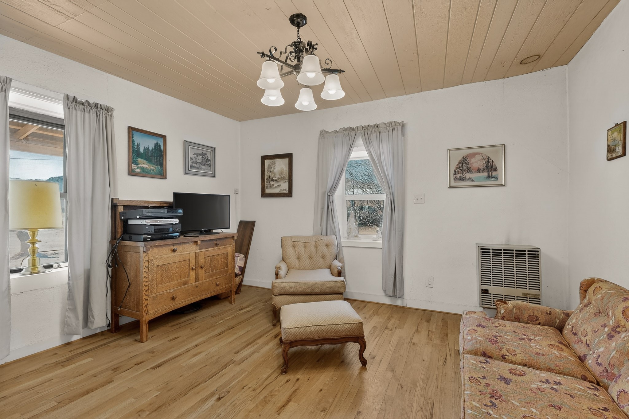 This wonderful adobe home is ready for its new owners. The main house features 2 bedrooms and 2 full baths, plus a sitting room that offers the potential for a third bedroom. A welcoming portal provides two accesses, one to the laundry room, the other access is to the living and dining area.The property also includes a small guest house with 1 bedroom and a full bath. This space, which was previously used as a kitchen, also houses the water well. A generously sized portal on the guest house is the perfect spot to sit and enjoy views of the Sangre de Cristo Mountains through the trees.The land, rich with history and opportunity, stretches out to the east. A walk across the bridge over the first acequia leads to a path past a barn with corrals on the left, and the historic remains of old adobe walls on the right, suggesting a storied past. An orchard with numerous fruit trees is also on the right. Continuing east, you'll find a field currently producing hay, a cattail "garden," the second acequia, and a final piece of land beyond it. The property is conveyed with valuable irrigation water rights.This unique property offers a multitude of options for the new owner, whether for gardening, raising farm animals, or other endeavors. The land surrounding both living spaces can be utilized at the owner's discretion. Its location is minutes away from Los Alamos, Santa Fe, Abiquiu, Taos, and Chimayo. Come look at the home, guest house, and land to dream and make those dreams a reality. Please note that the Seller will not make any repairs to the property.