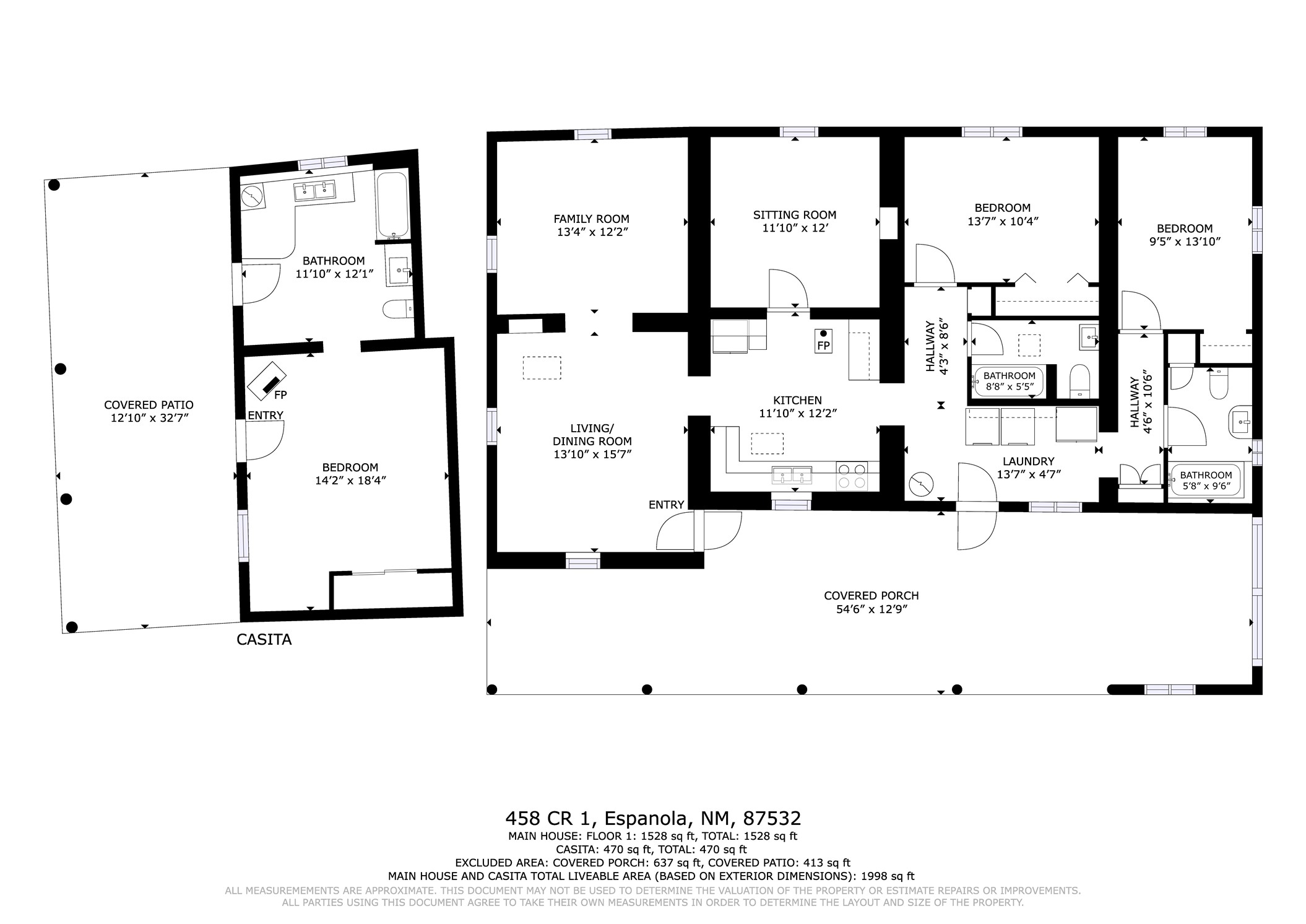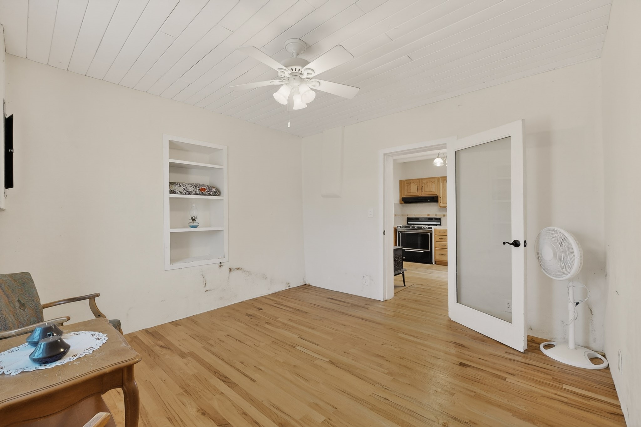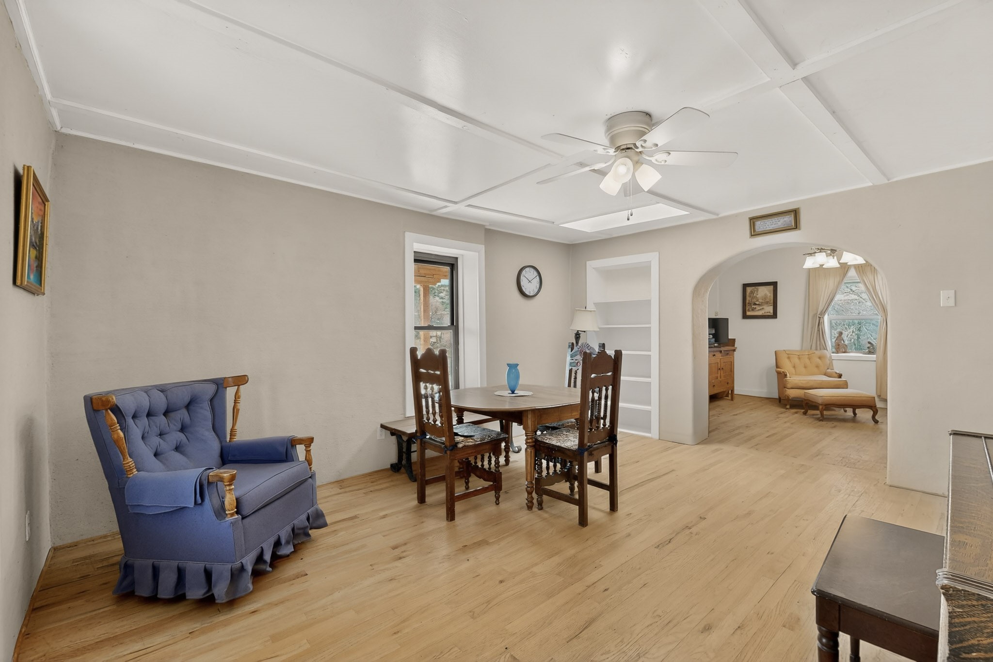 This wonderful adobe home is ready for its new owners. The main house features 2 bedrooms and 2 full baths, plus a sitting room that offers the potential for a third bedroom. A welcoming portal provides two accesses, one to the laundry room, the other access is to the living and dining area.The property also includes a small guest house with 1 bedroom and a full bath. This space, which was previously used as a kitchen, also houses the water well. A generously sized portal on the guest house is the perfect spot to sit and enjoy views of the Sangre de Cristo Mountains through the trees.The land, rich with history and opportunity, stretches out to the east. A walk across the bridge over the first acequia leads to a path past a barn with corrals on the left, and the historic remains of old adobe walls on the right, suggesting a storied past. An orchard with numerous fruit trees is also on the right. Continuing east, you'll find a field currently producing hay, a cattail "garden," the second acequia, and a final piece of land beyond it. The property is conveyed with valuable irrigation water rights.This unique property offers a multitude of options for the new owner, whether for gardening, raising farm animals, or other endeavors. The land surrounding both living spaces can be utilized at the owner's discretion. Its location is minutes away from Los Alamos, Santa Fe, Abiquiu, Taos, and Chimayo. Come look at the home, guest house, and land to dream and make those dreams a reality. Please note that the Seller will not make any repairs to the property.