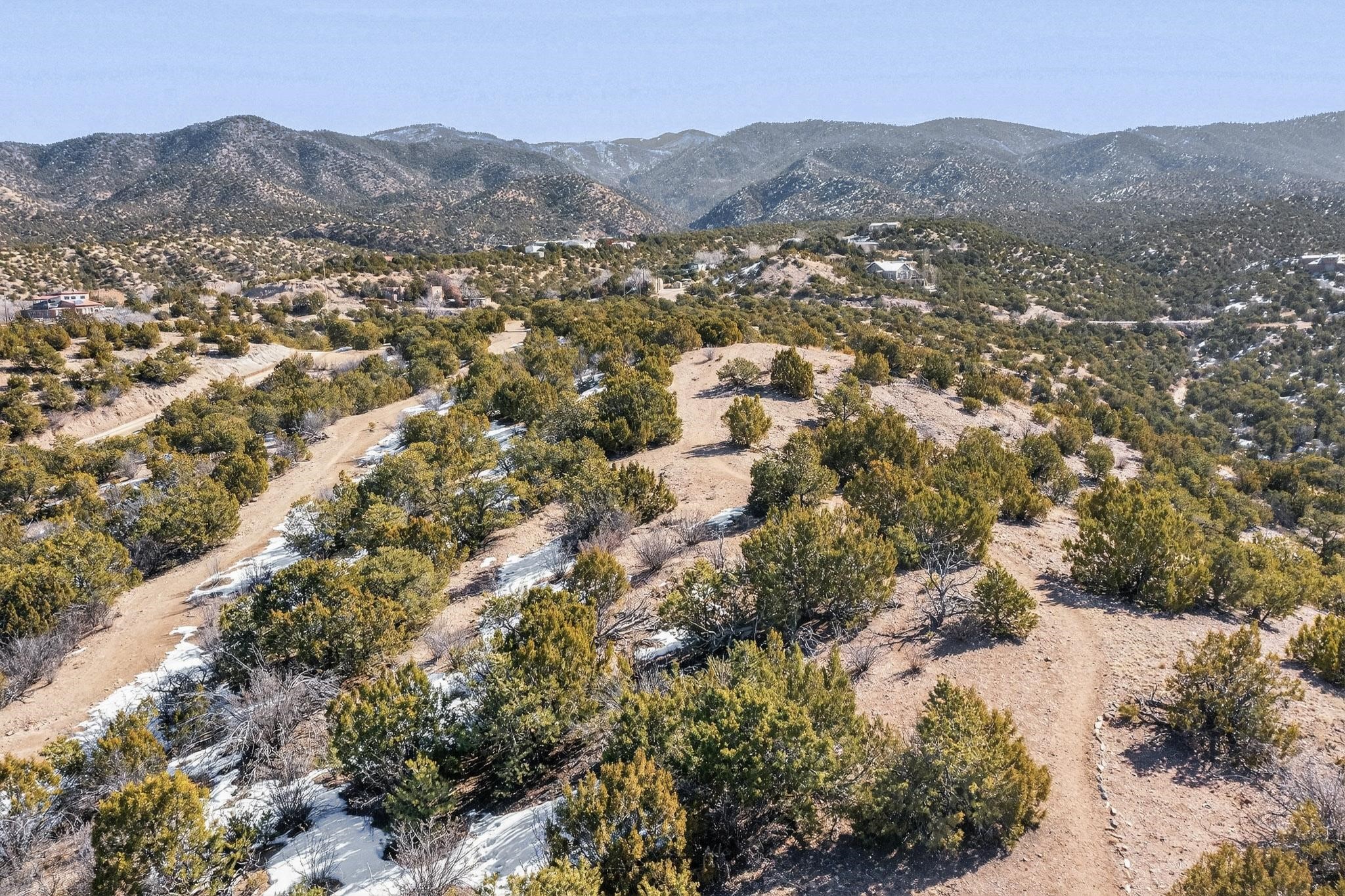 Breathtaking views from this astonishing 15 acre ridge top lot in a small private and gated subdivision moments from the village of Rio En Medio, which has access to a trail head into the mountains of the National Forest and a nearby waterfall. A deep, sandy bottomed, canyon cuts through the lot. Shared well and power available. Short, level and private access road (easement) off the main road. Minimal CC&Rs. All 5 lots can be purchased as a package. The buildable site offers spectacular views but will need expert construction and design flair for each terrain. Minutes to fine dining at the Four Seasons Encantado Resort.