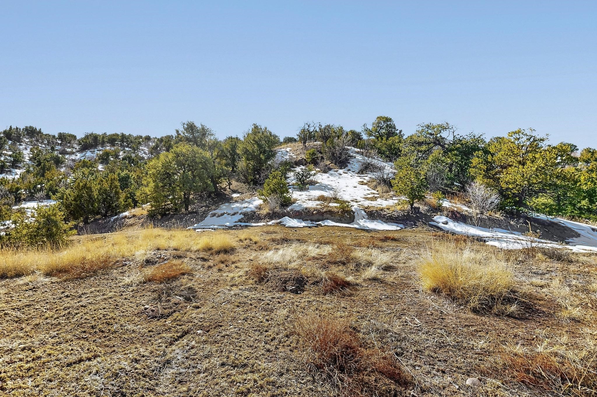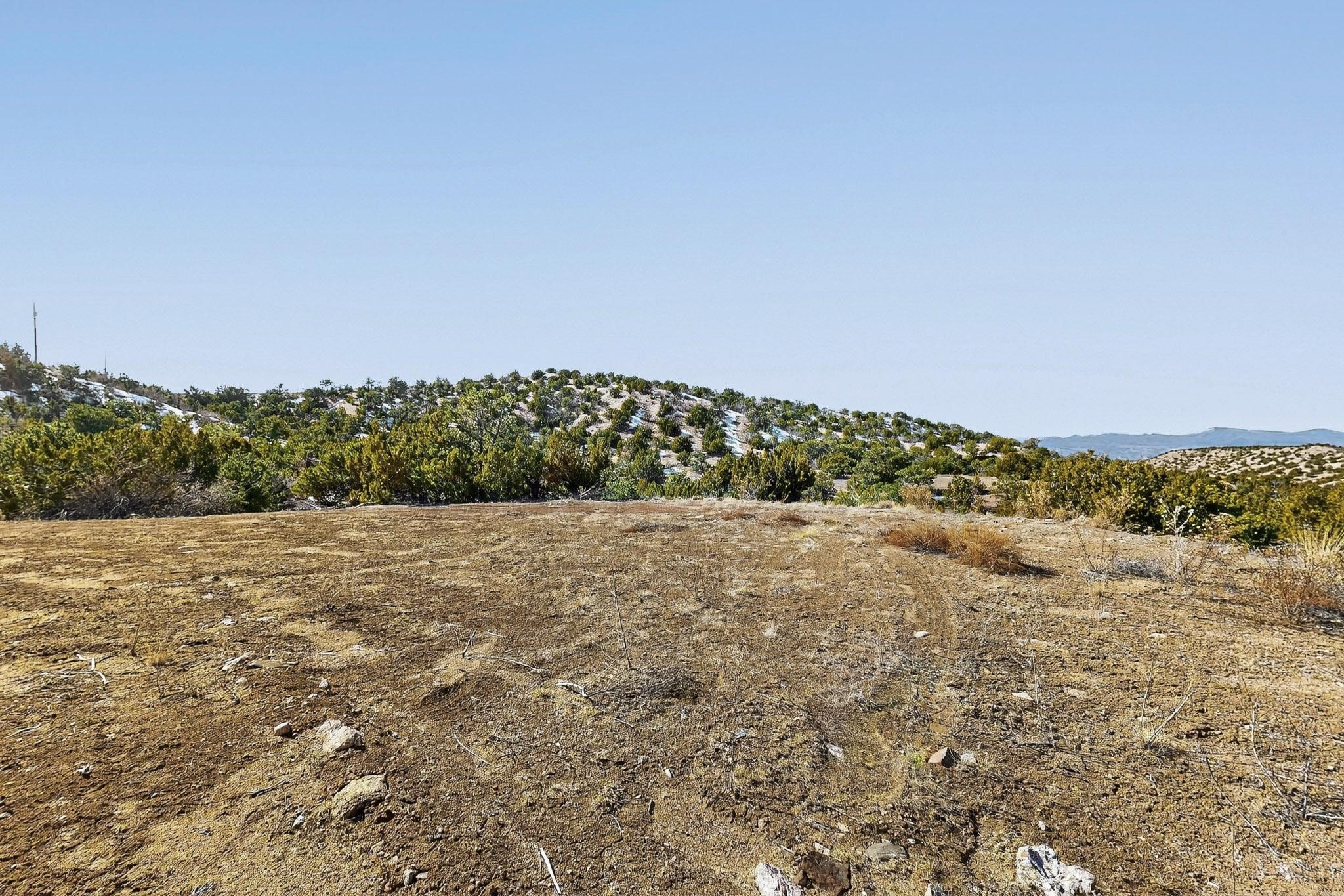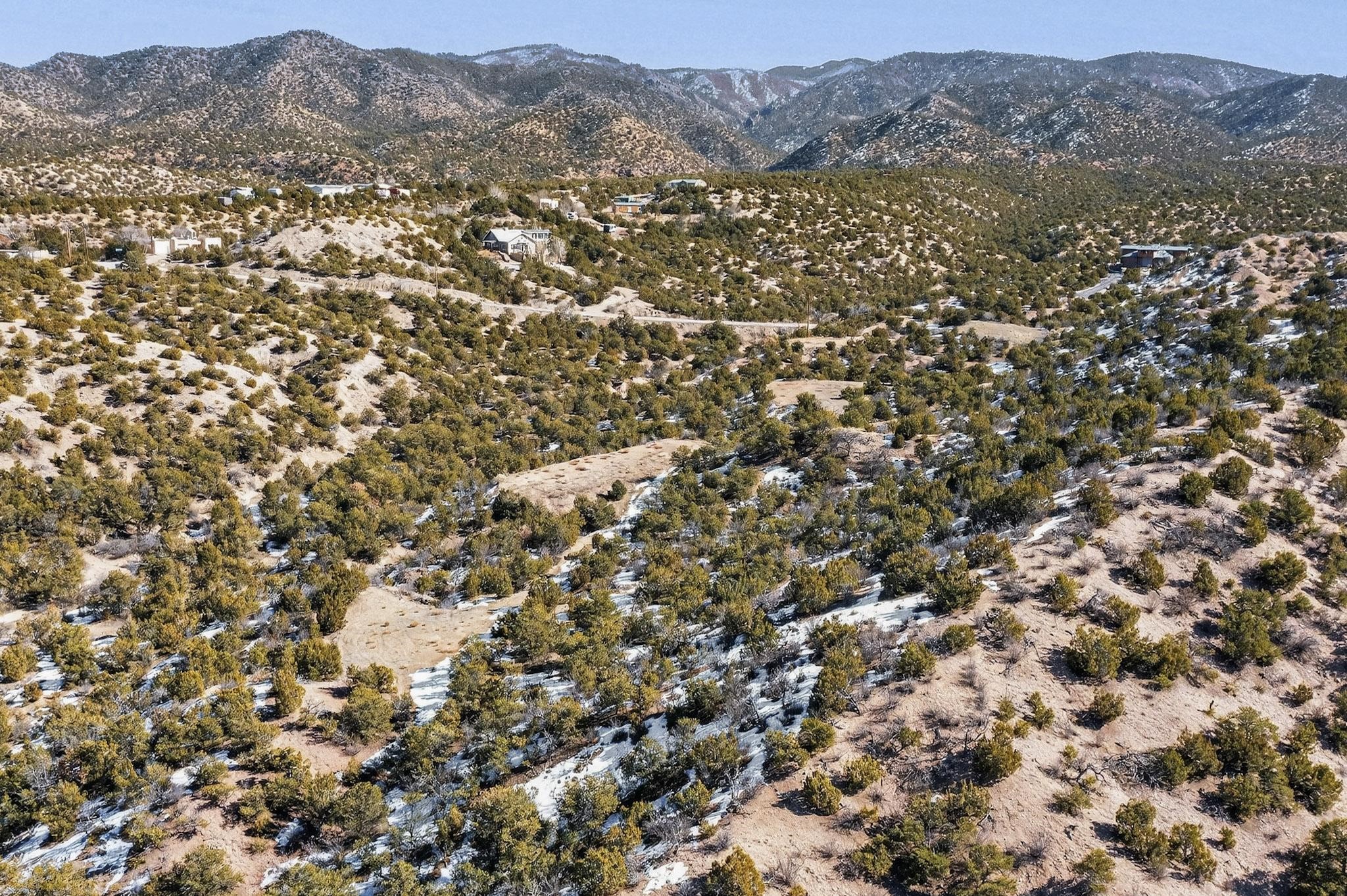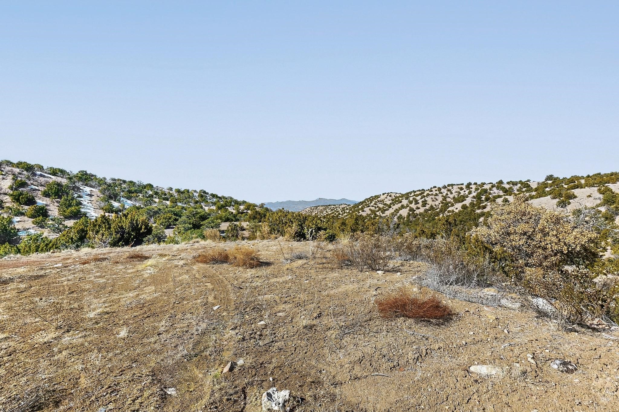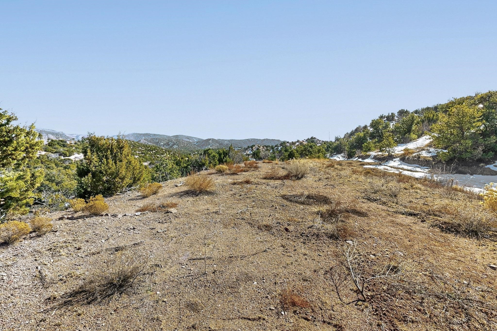 Easy build 15 acre lot with an expansive view through the steep sided canyon to the Jemez mountains to the west. Easy access off State Rd 592 and just a couple of minutes from the village of Rio En Medio, which offers access to a trail head into the mountains of the National Forest and a nearby waterfall. 3 easy and flat building sites. Private well. Power available with PNM drop from on site power line. Minimal CC&Rs. All 5 lots can be purchased as a package. Paved road from Santa Fe to reach this sheltered and privately situated lot. Two minutes drive to fine dining at the Four Seasons Encantado Resort. The Tesuque Village Market is 5 minutes and Santa Fe itself another 10.