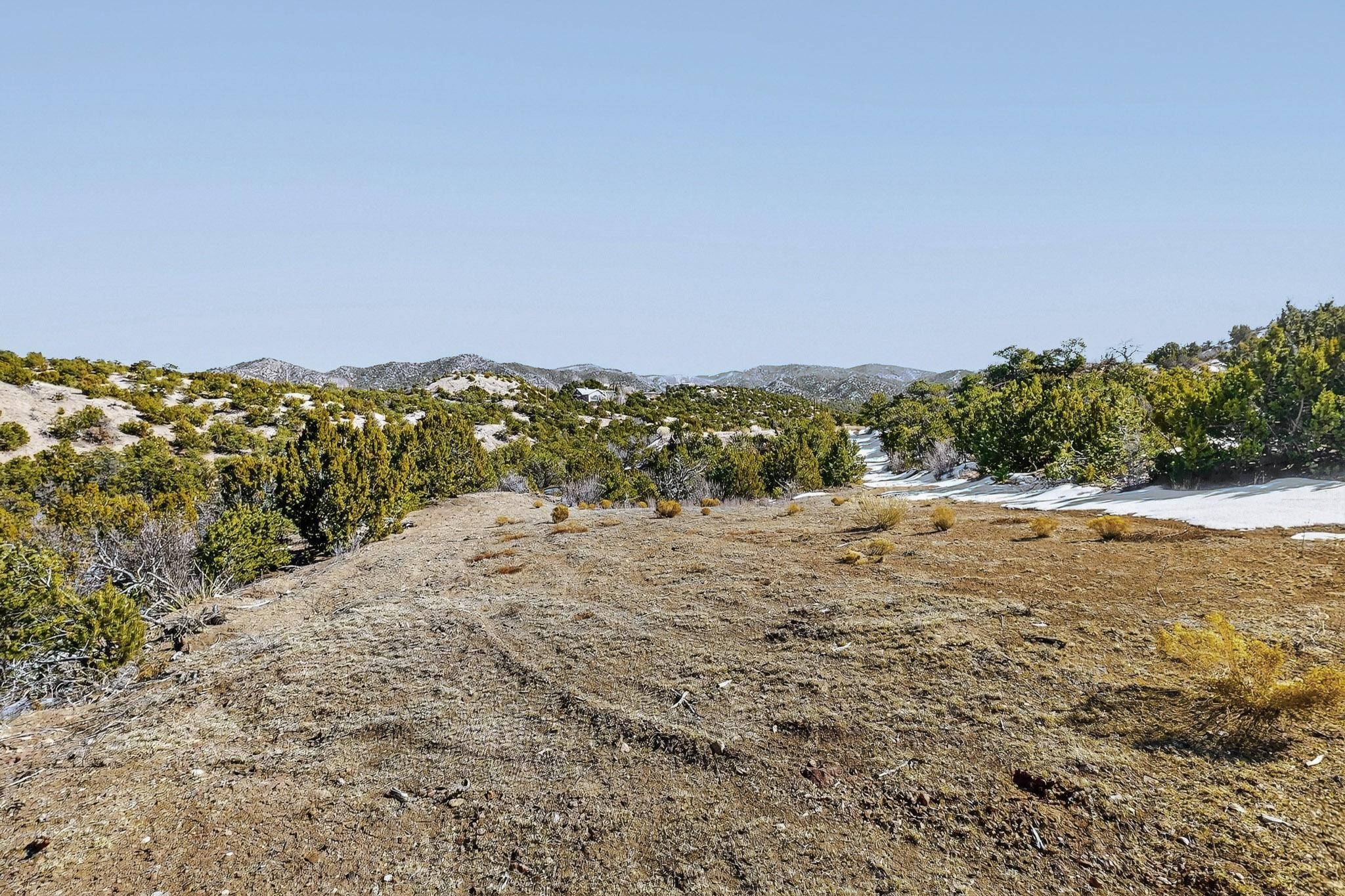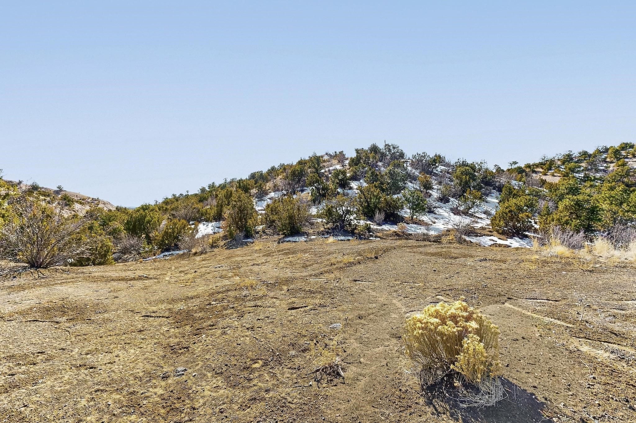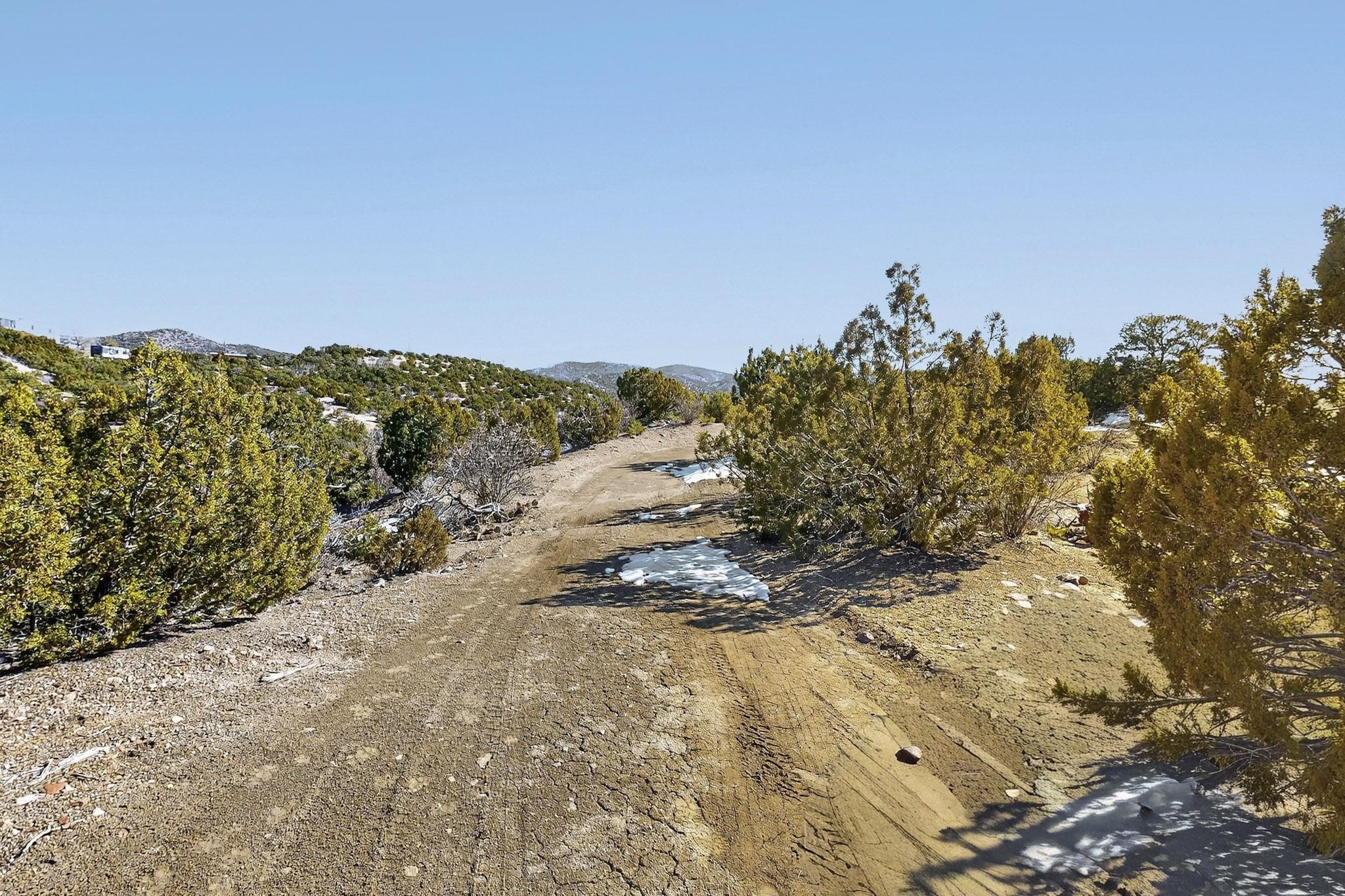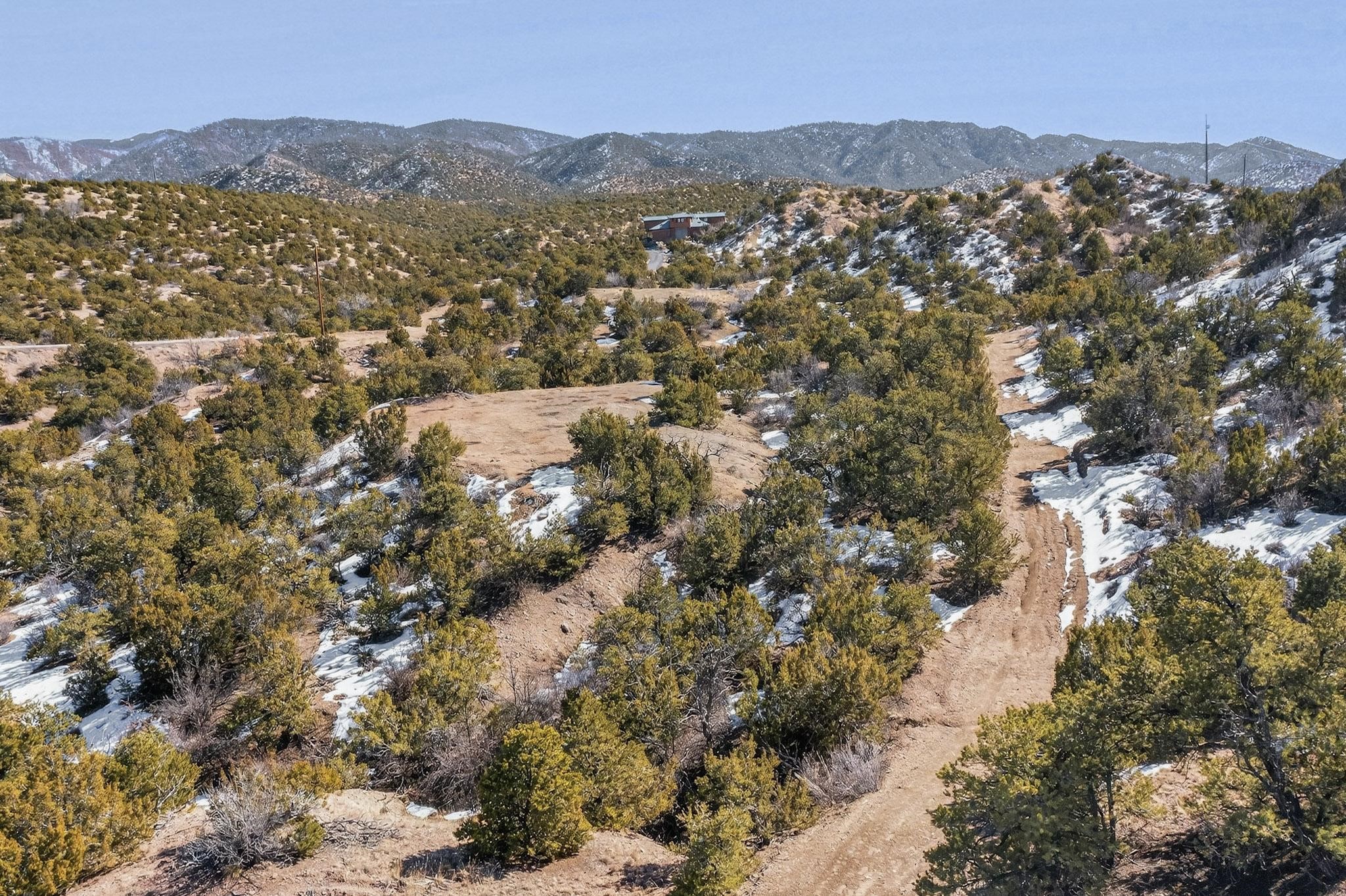 Easy build 15 acre lot with an expansive view through the steep sided canyon to the Jemez mountains to the west. Easy access off State Rd 592 and just a couple of minutes from the village of Rio En Medio, which offers access to a trail head into the mountains of the National Forest and a nearby waterfall. 3 easy and flat building sites. Private well. Power available with PNM drop from on site power line. Minimal CC&Rs. All 5 lots can be purchased as a package. Paved road from Santa Fe to reach this sheltered and privately situated lot. Two minutes drive to fine dining at the Four Seasons Encantado Resort. The Tesuque Village Market is 5 minutes and Santa Fe itself another 10.