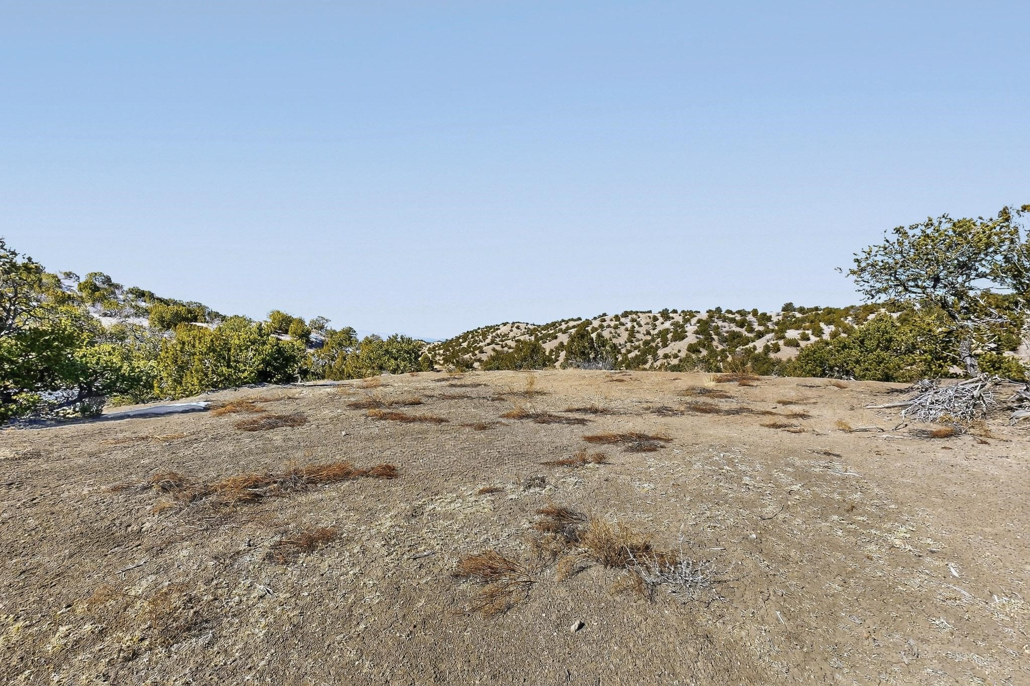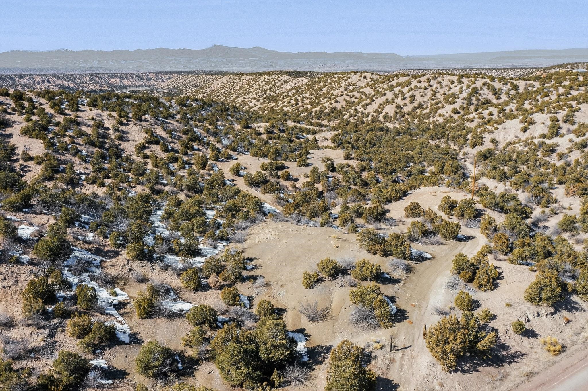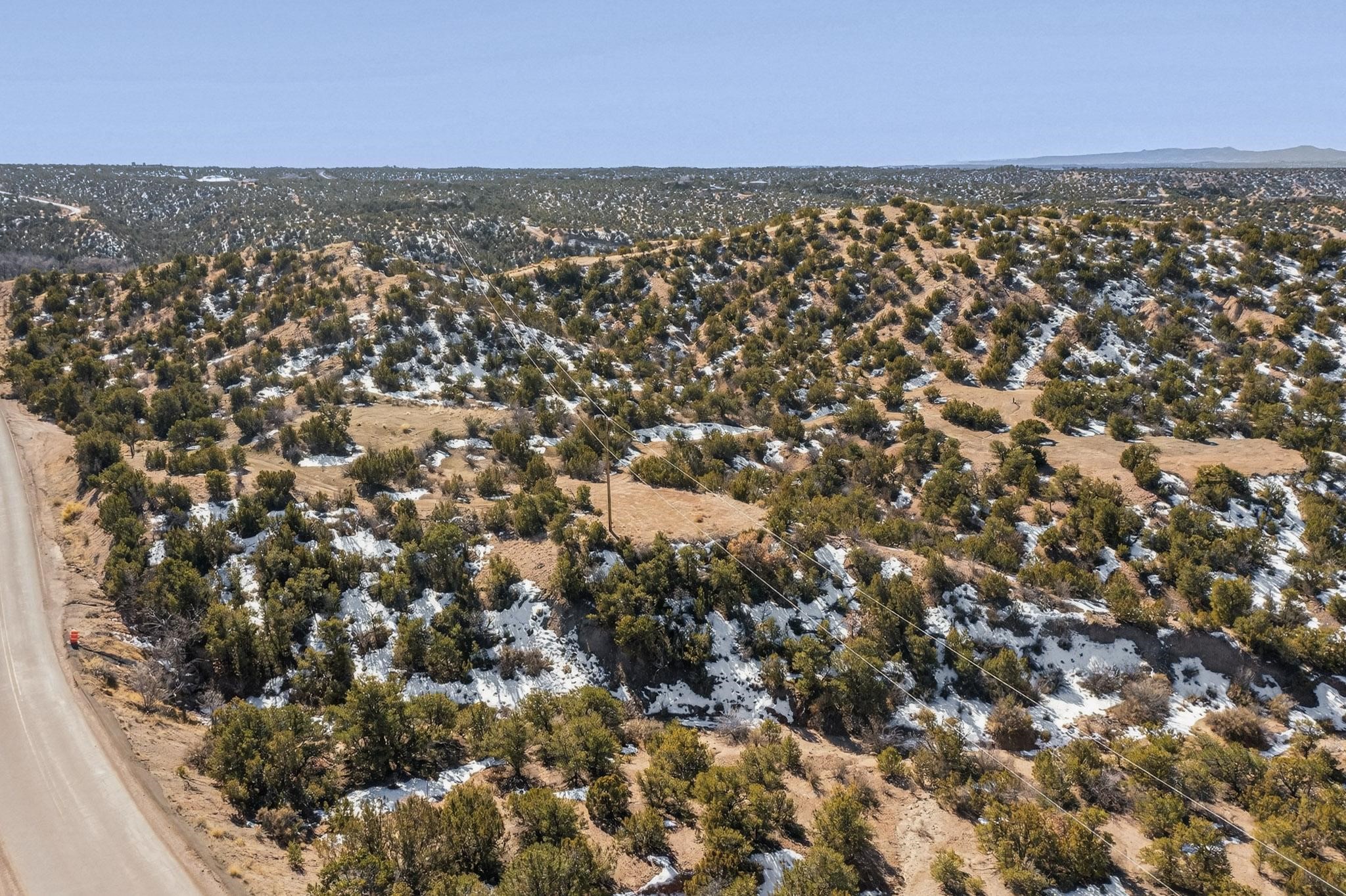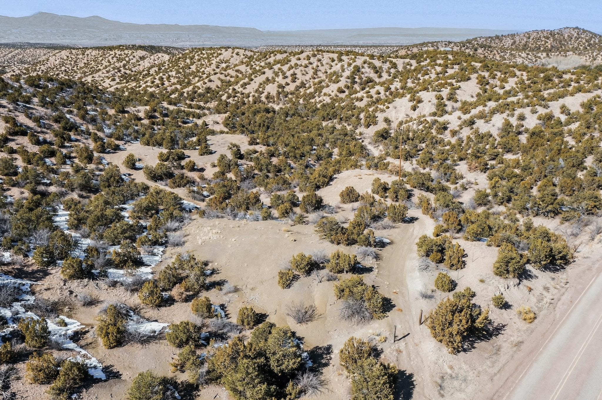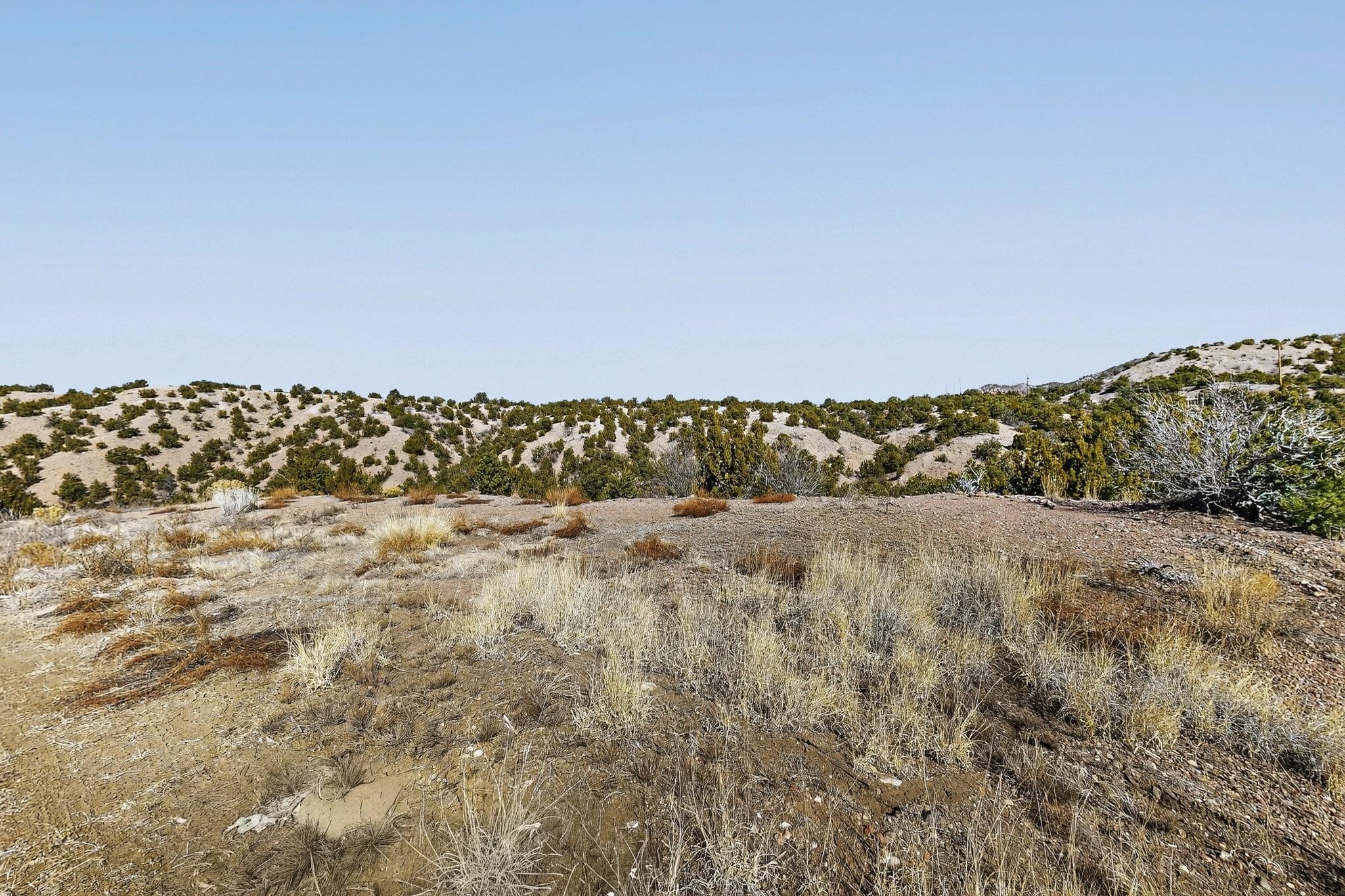 Easy build 15 acre lot with an expansive view through the steep sided canyon to the Jemez mountains to the west. Easy access off State Rd 592 and just a couple of minutes from the village of Rio En Medio, which offers access to a trail head into the mountains of the National Forest and a nearby waterfall. 3 easy and flat building sites. Private well. Power available with PNM drop from on site power line. Minimal CC&Rs. All 5 lots can be purchased as a package. Paved road from Santa Fe to reach this sheltered and privately situated lot. Two minutes drive to fine dining at the Four Seasons Encantado Resort. The Tesuque Village Market is 5 minutes and Santa Fe itself another 10.
