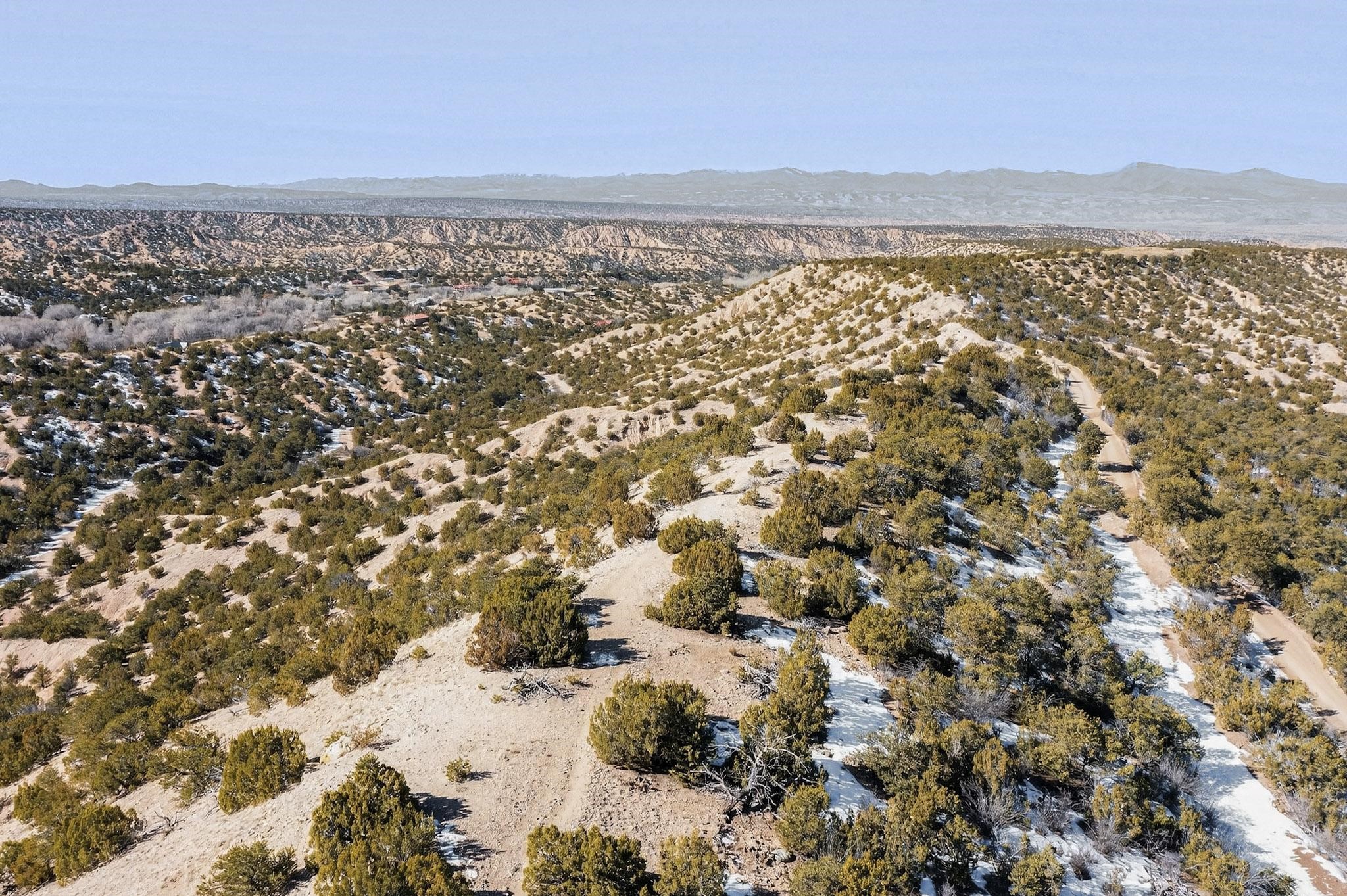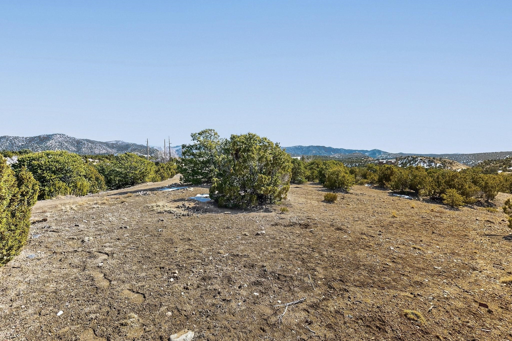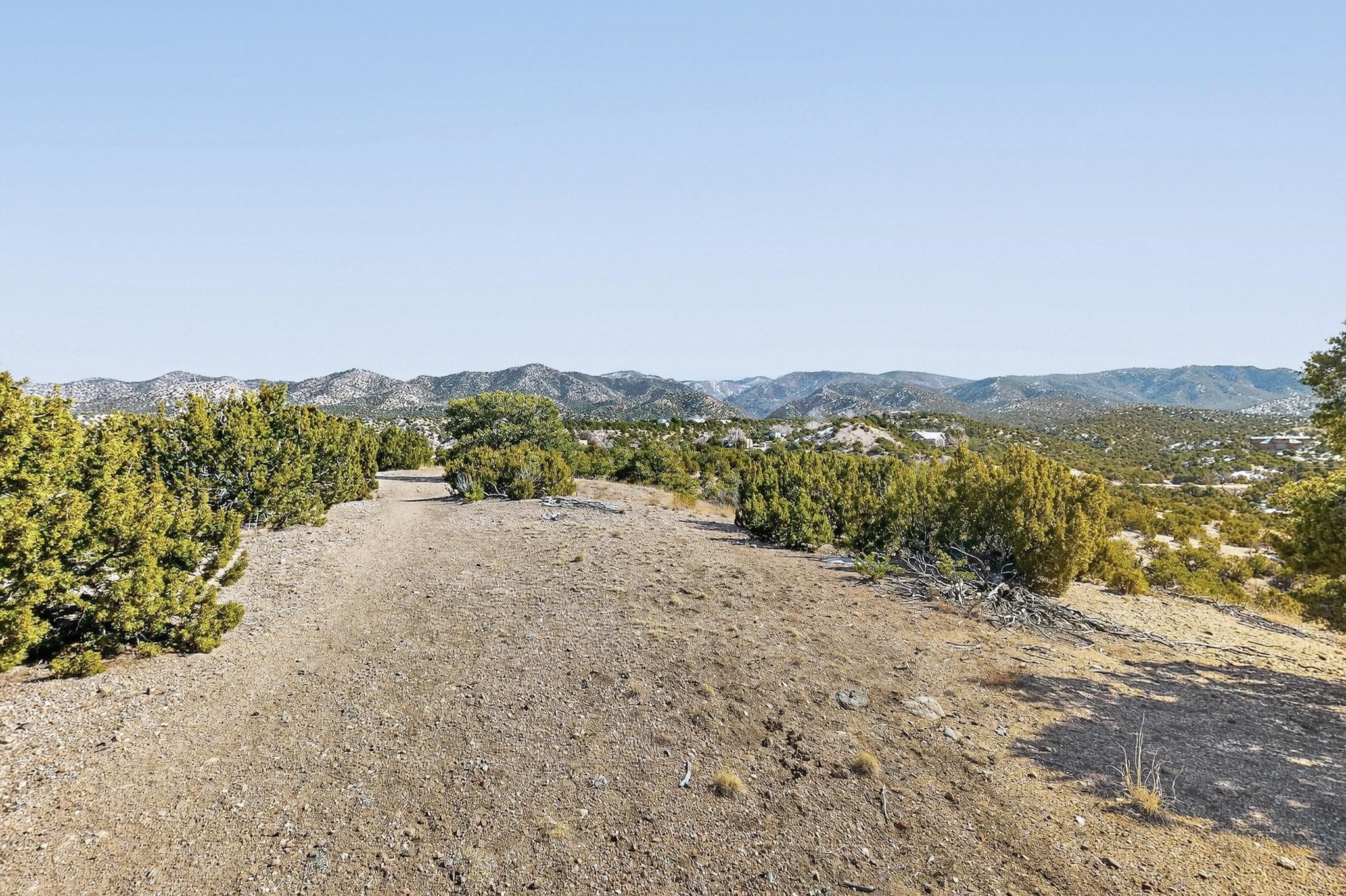 Breathtaking views from this astonishing 15 acre ridge top lot in a small private and gated subdivision moments from the village of Rio En Medio which has offers access to a trail head into the mountains of the National Forest and a nearby waterfall. A deep, sandy bottomed, canyon cuts through the lot. Shared well and power available. Short, level and private access road (easement) off the main road. Minimal CC&Rs. All 5 lots can be purchased as a package. The buildable site offers spectacular views but will need expert construction and design flair for each terrain. Two minutes drive to fine dining at the Four Seasons Encantado Resort. The Tesuque Village Market is 5 minutes and Santa Fe itself another 10.