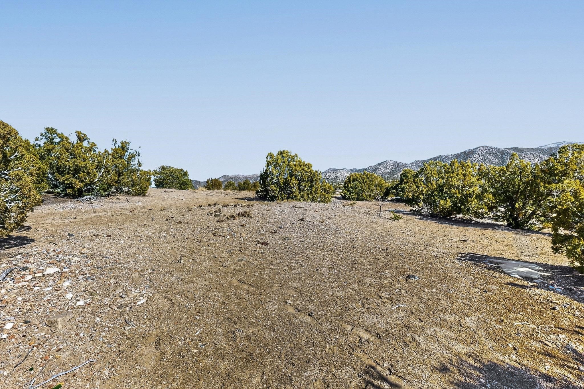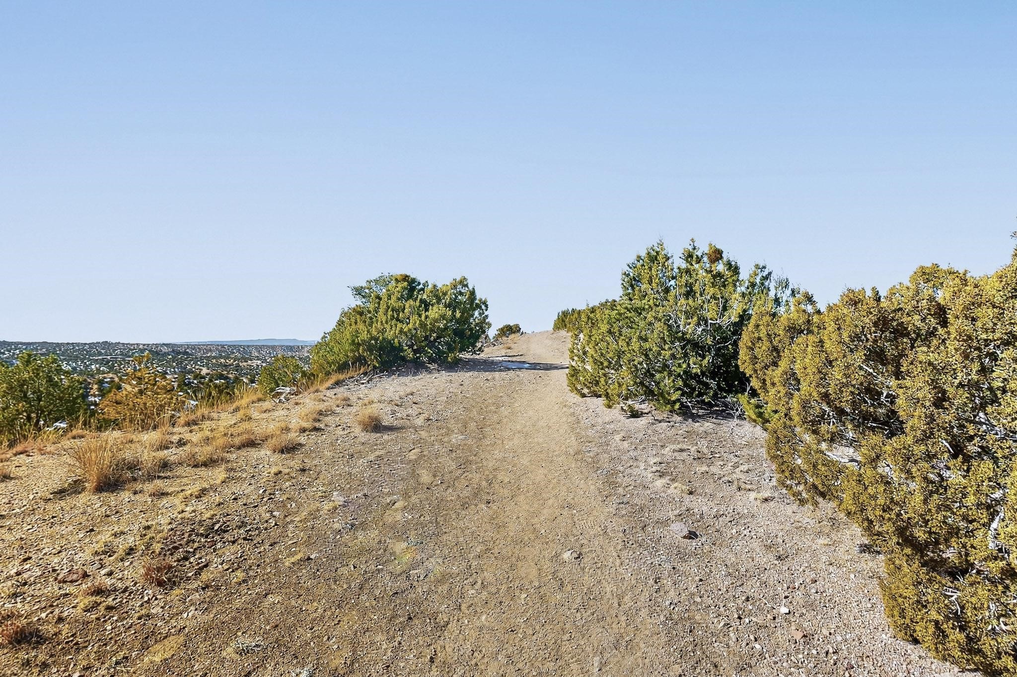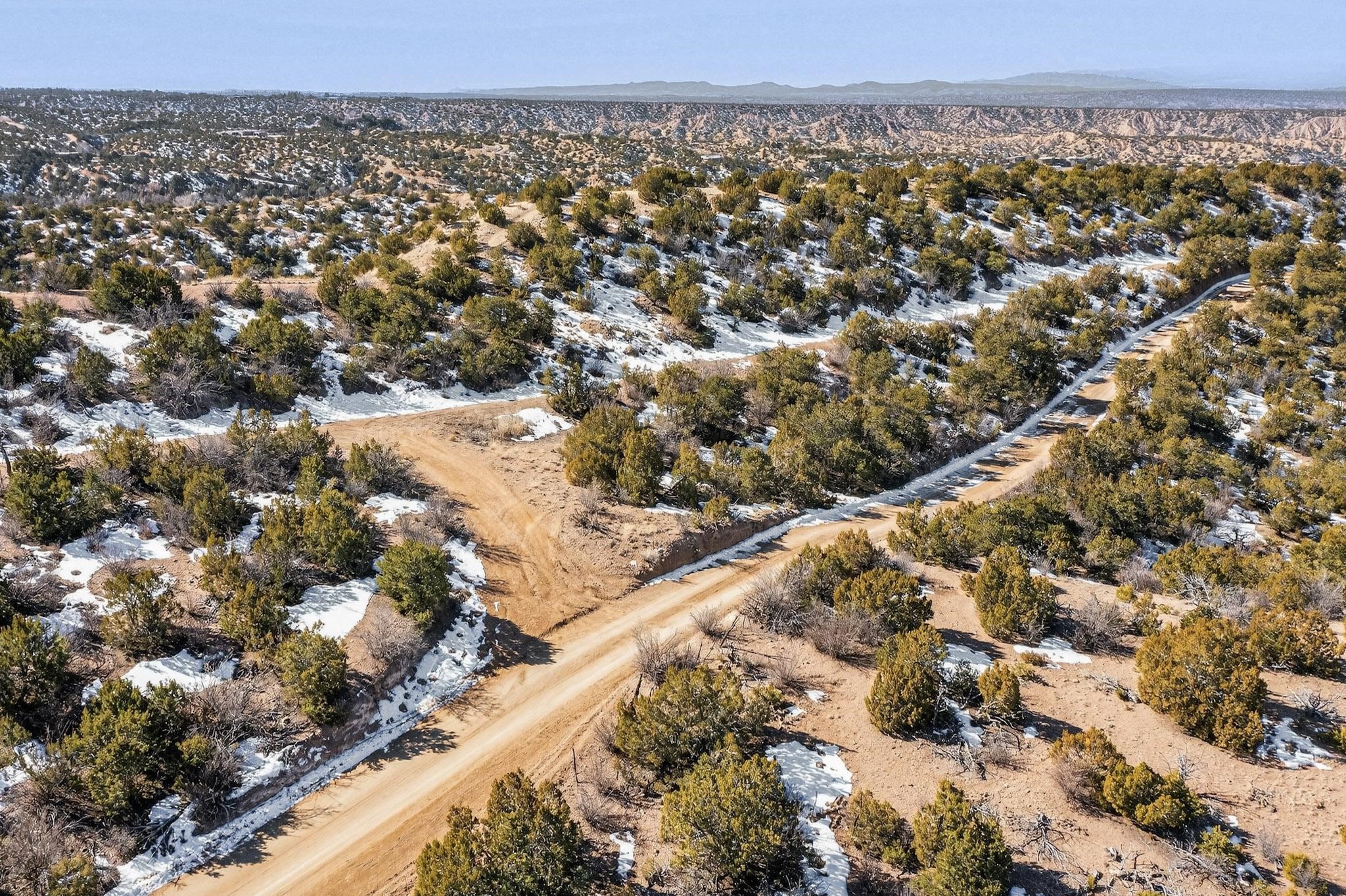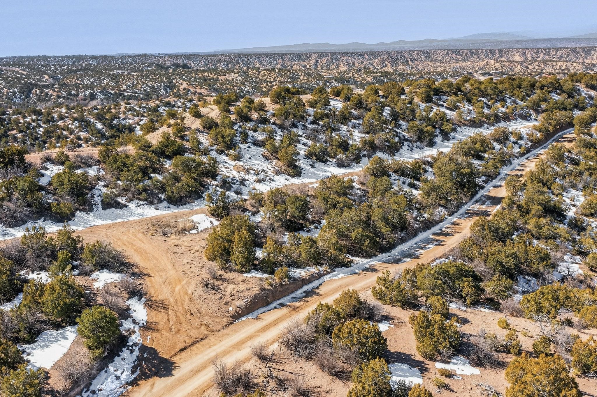 Breathtaking views from this astonishing 5.6 acre ridge top lot in a small private and gated subdivision moments from the village of Rio En Medio, which offers access to a trail head into the mountains of the National Forest and a nearby waterfall. A deep, sandy bottomed, canyon cuts through the lot. On Rio en medio community water. Power available. First lot inside the gate with a large flat building site . Minimal CC&Rs. All 5 lots can be purchased as a package. 2 minutes drive to fine dining at the Four Seasons Encantado Resort. Tesuque Village Market is 5 minutes and Santa Fe itself another 10.