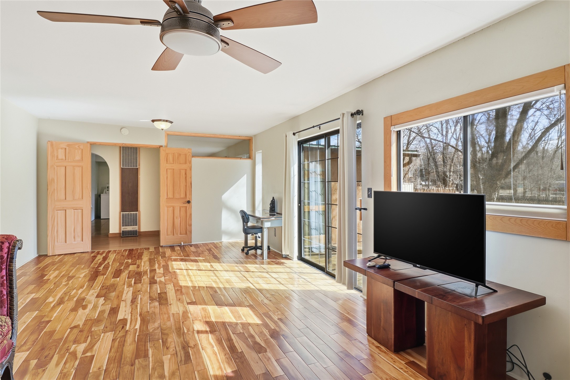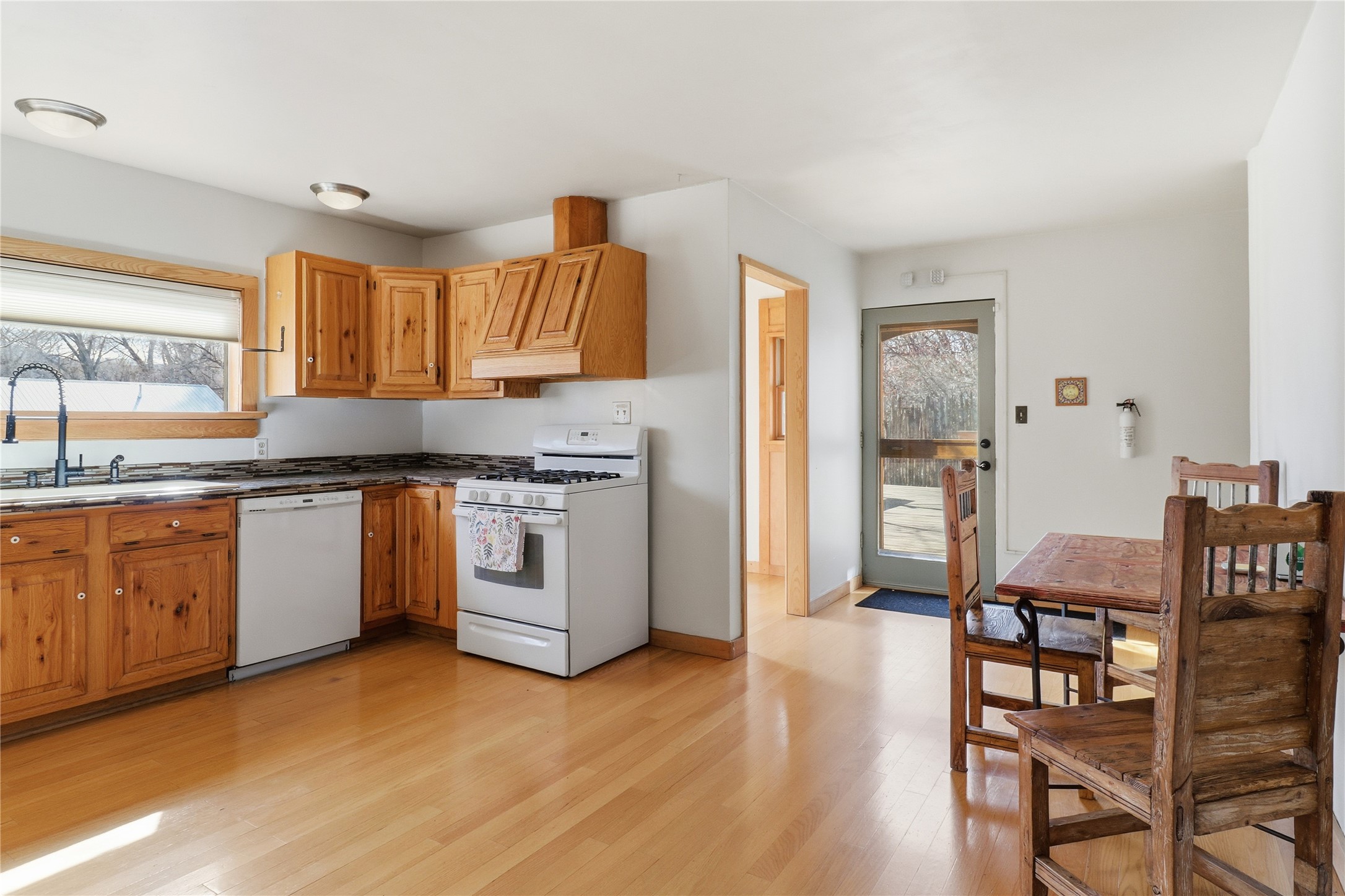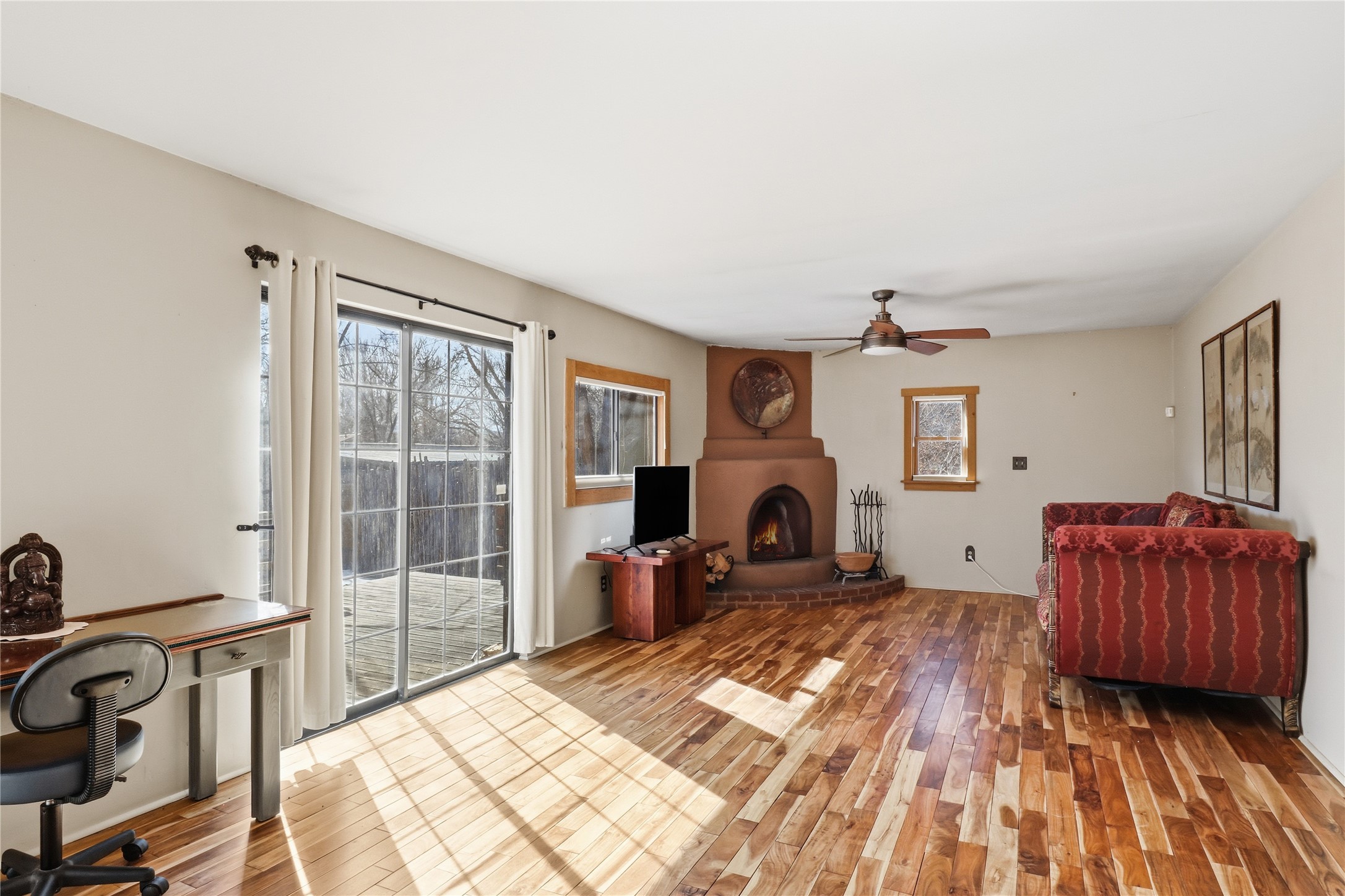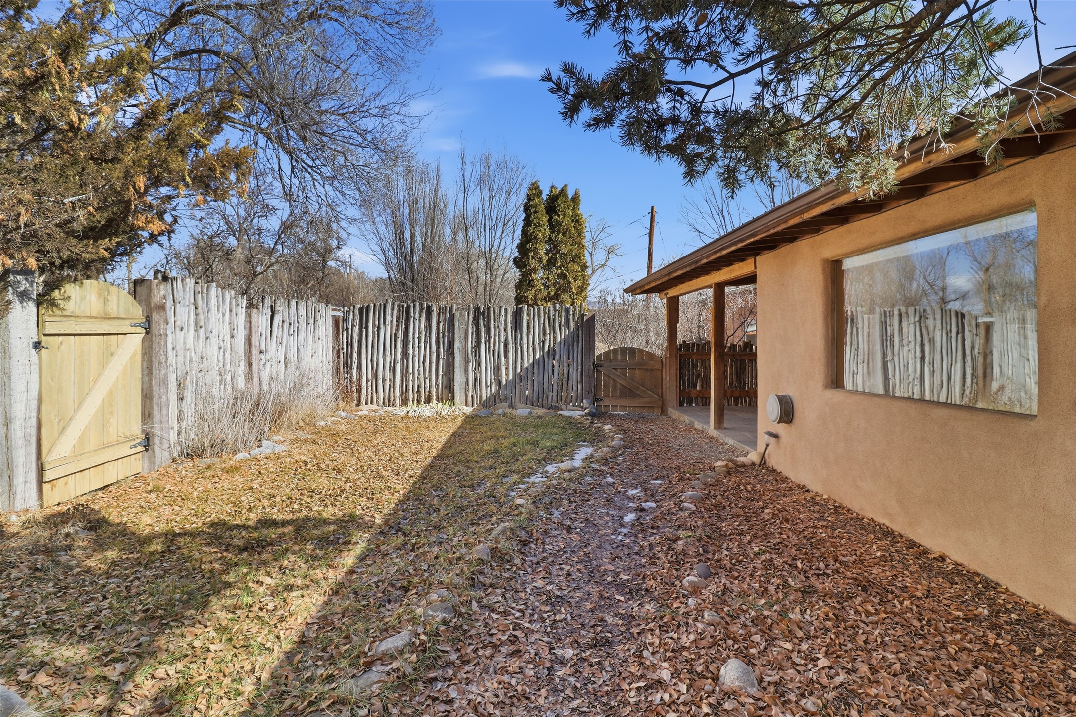 This charming DUPLEX at 104 Guthrie Lane #A & B, Taos, NM 87571 offers an exceptional opportunity for comfortable living with strong income-producing potential in a prime location just minutes from the center of Taos.The main house (#B) features a spacious eat-in kitchen with a separate pantry, lovely tile countertops, and serene garden views. The primary bedroom features cork flooring and an ensuite bathroom with beautiful tile accents. A second bedroom provides easy backyard access via a sliding glass door, a generous closet, and shares a full hall bath. The expansive living room showcases gorgeous wood floors and a cozy kiva fireplace, opening directly onto a large back deck perfect for relaxing or entertaining. An additional flexible living/multi-purpose room includes the washer/dryer and abundant space for a home office or studio.The attached guest house (#A) has proven itself as a reliable rental unit for years, delivering steady income. It features beautiful natural light, tile flooring, a fireplace, 2 bedrooms, a delightful 4-season sunroom, a fenced private courtyard, and its own storage shed--ideal for guests, long-term tenants, or vacation rentals.Outside, enjoy a large, fully fenced backyard--a gardener's dream with ample space for planting, outdoor activities, or pets. A large detached oversized 2-car garage provides plenty of room for vehicles, workshops, projects, or extra storage.Sited on a generous corner lot (approximately half a acre) in a peaceful cul-de-sac, this property offers tranquility while being conveniently close to Taos' shops, restaurants, galleries, and cultural attractions.Whether you're seeking a primary residence with guest/income suite, a multi-generational setup, or an investment property with built-in rental history, this property has it covered. Don't miss this rare combination of space, charm, and location!