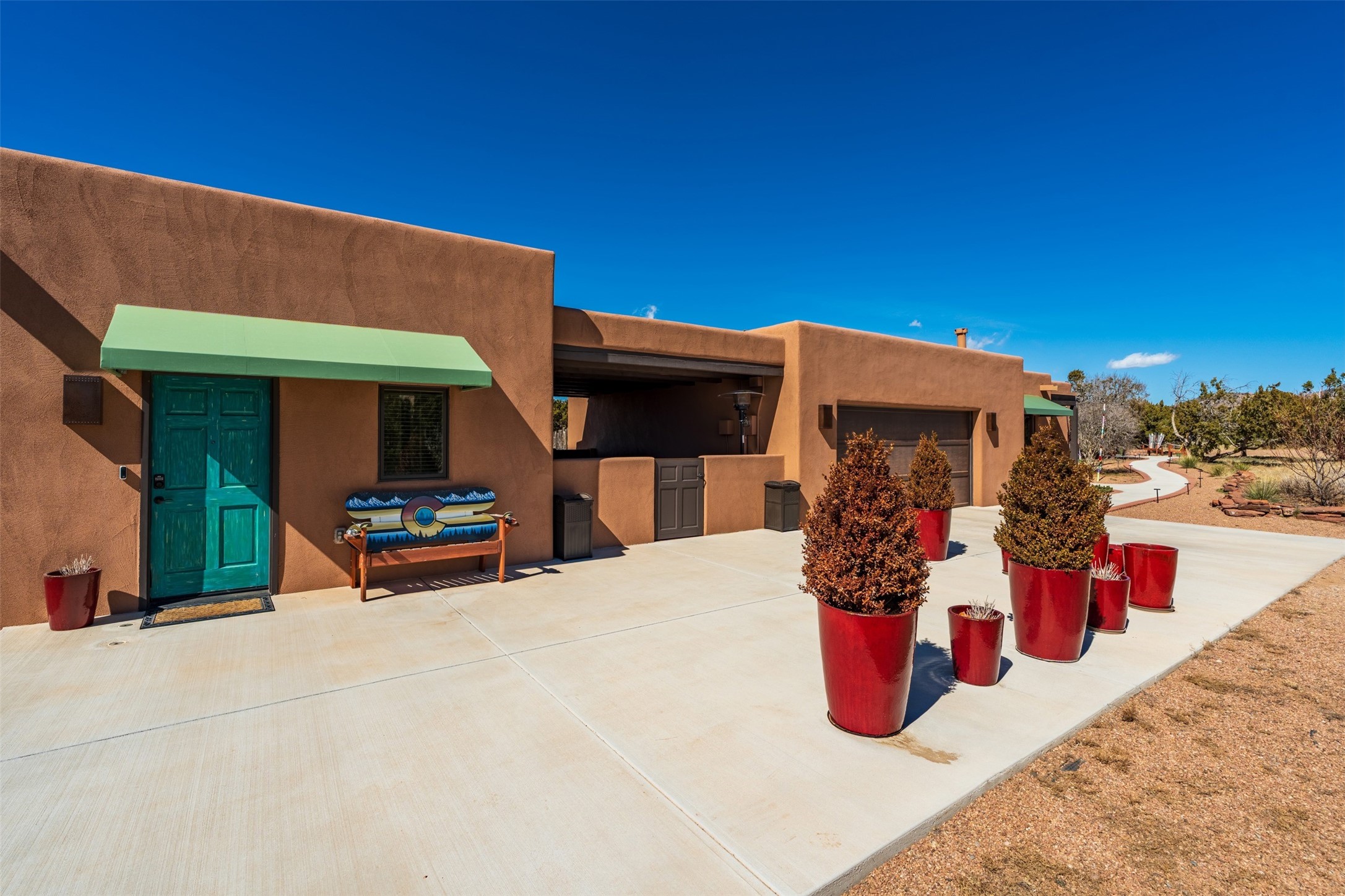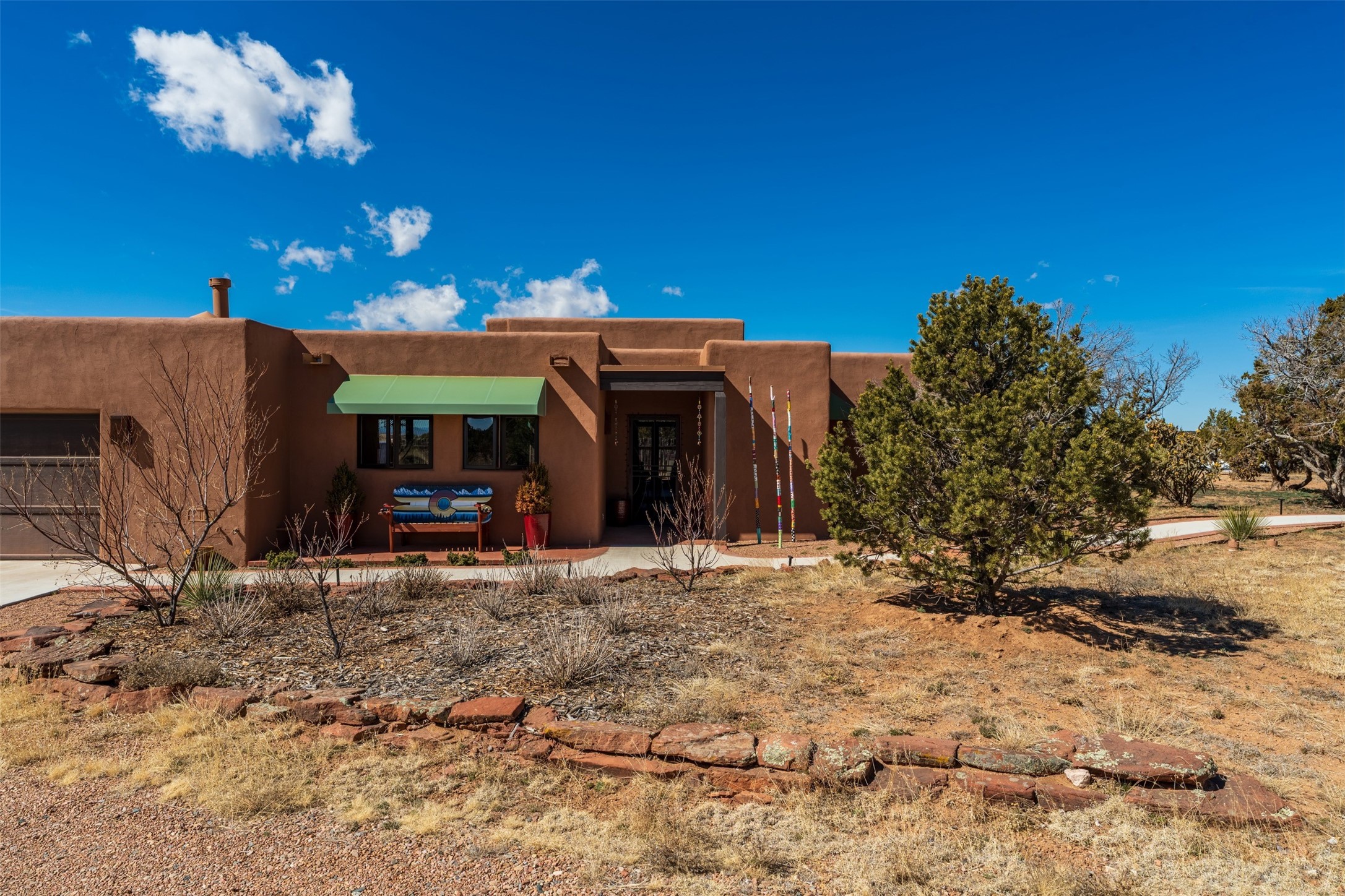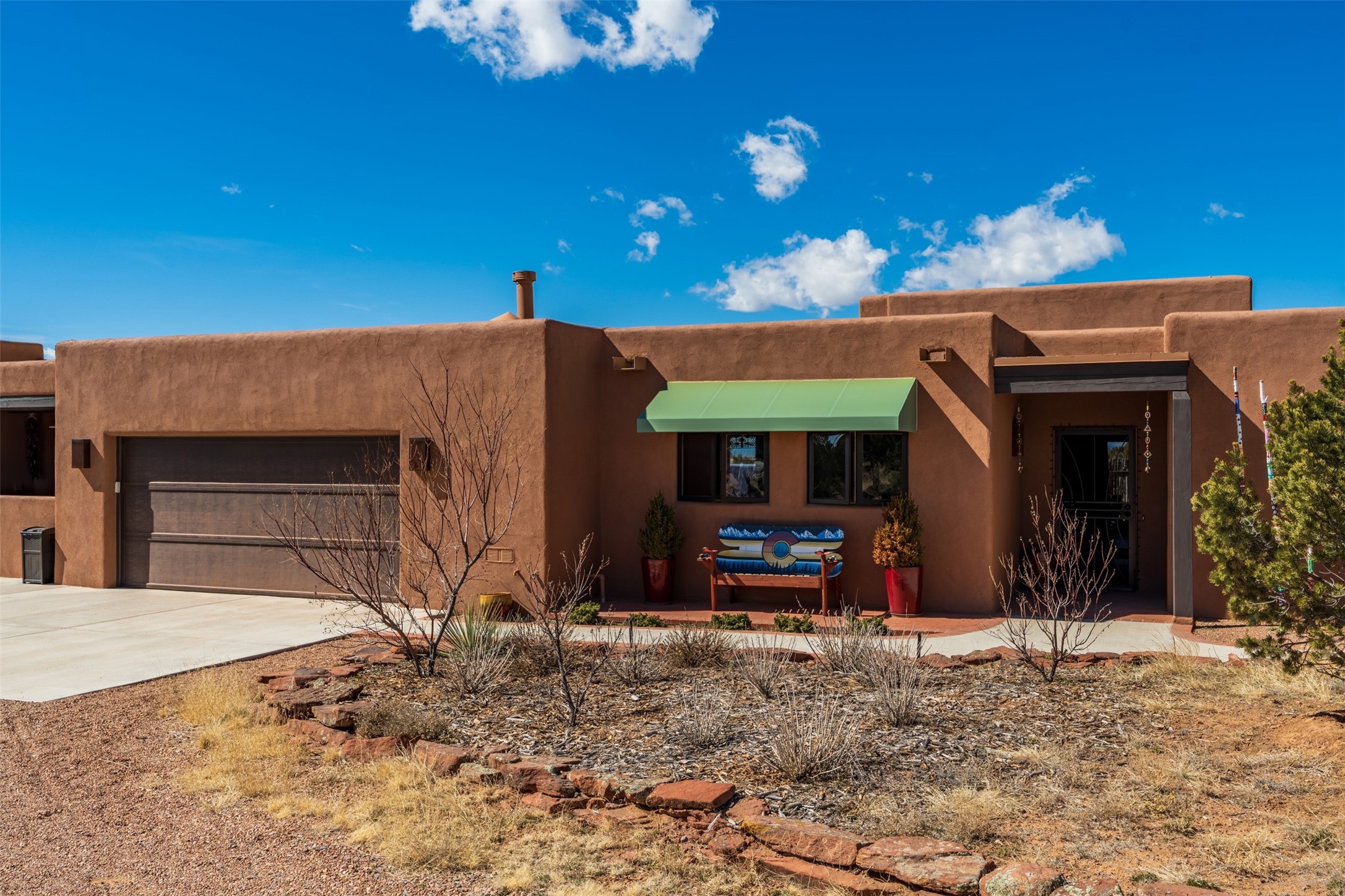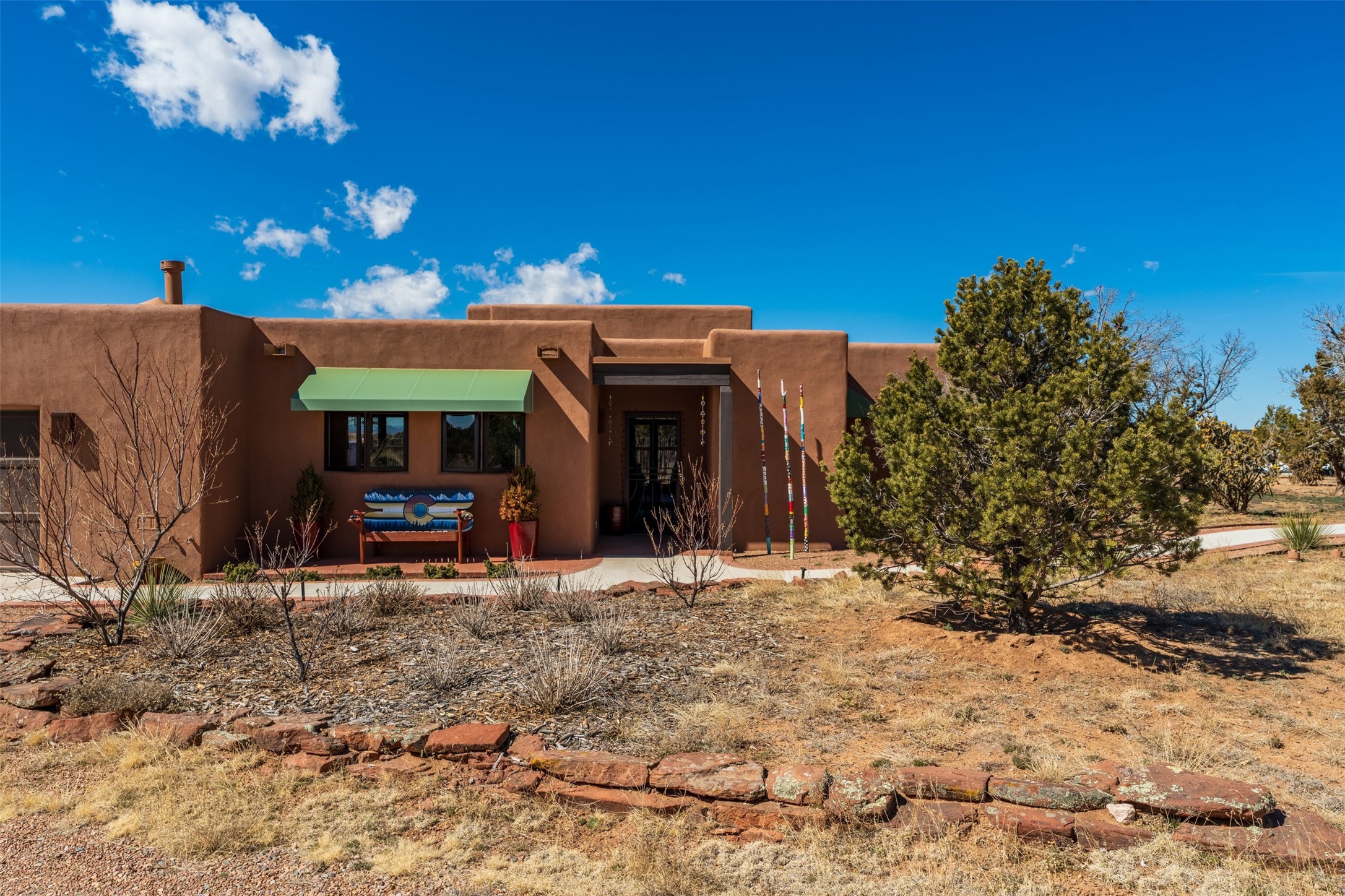 One-of-a-Kind Eldorado at Santa Fe Residence--Artistic, Versatile, with option to purchase Turn-Key. Discover one of Eldorado's most distinctive properties--a beautifully maintained, move-in-ready 5 bedroom, 3 bath home and guest house offer exceptional flexibility for artists, multi-generational living, or those seeking passive rental income. With only two owners, this special residence has been thoughtfully upgraded and lovingly cared for throughout. The fully remodeled main house showcases classic Santa Fe charm paired with modern comfort, featuring new stucco and refreshed hardscape. The newly constructed casita (2023) adds incredible versatility--ideal for guests, extended family, a studio, or income potential. Together, the property offers 2,335 square feet of interior living space, plus a 250-square-foot portal and multiple inviting patio areas designed for relaxed outdoor living. Additional highlights include an oversized two-car garage with built-in storage and workbench, fenced yard, private well with new soft water system and easy access to the Rail Trail. Only minutes to all Eldorado amenities, local shopping and services, close to historic Santa Fe.