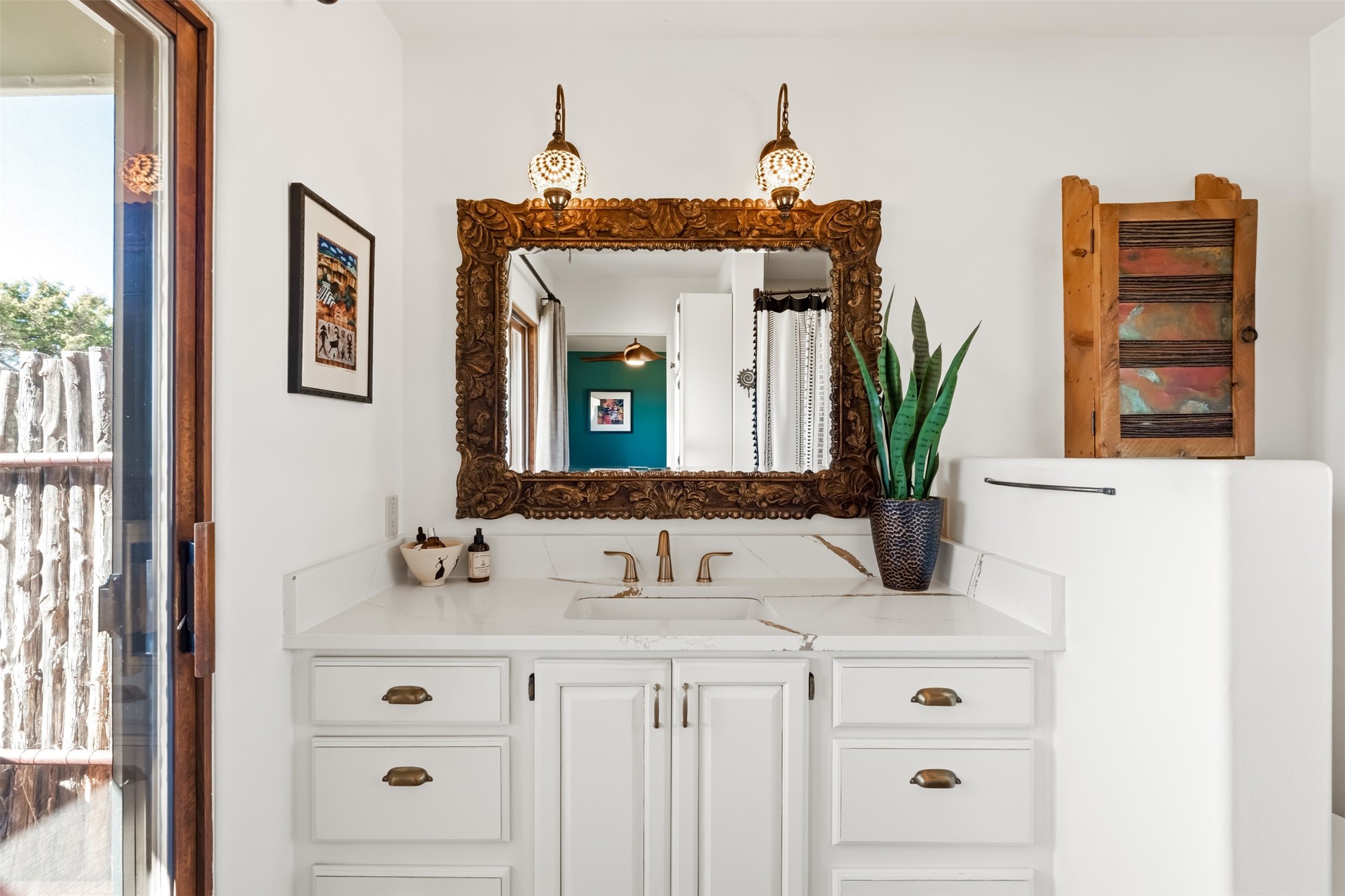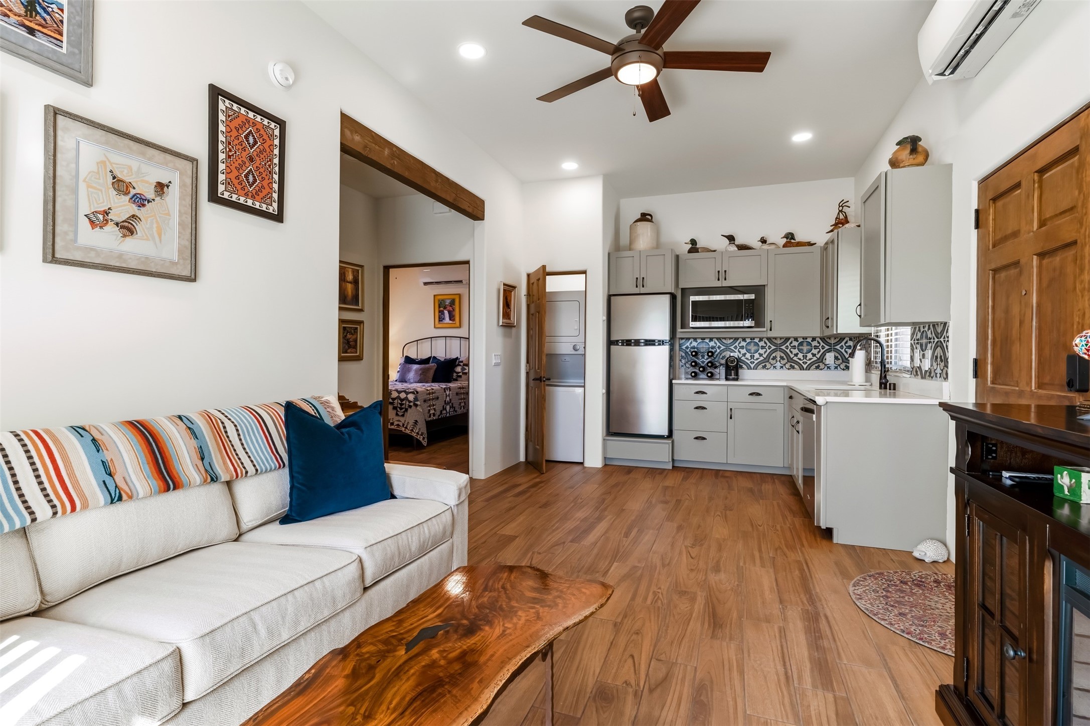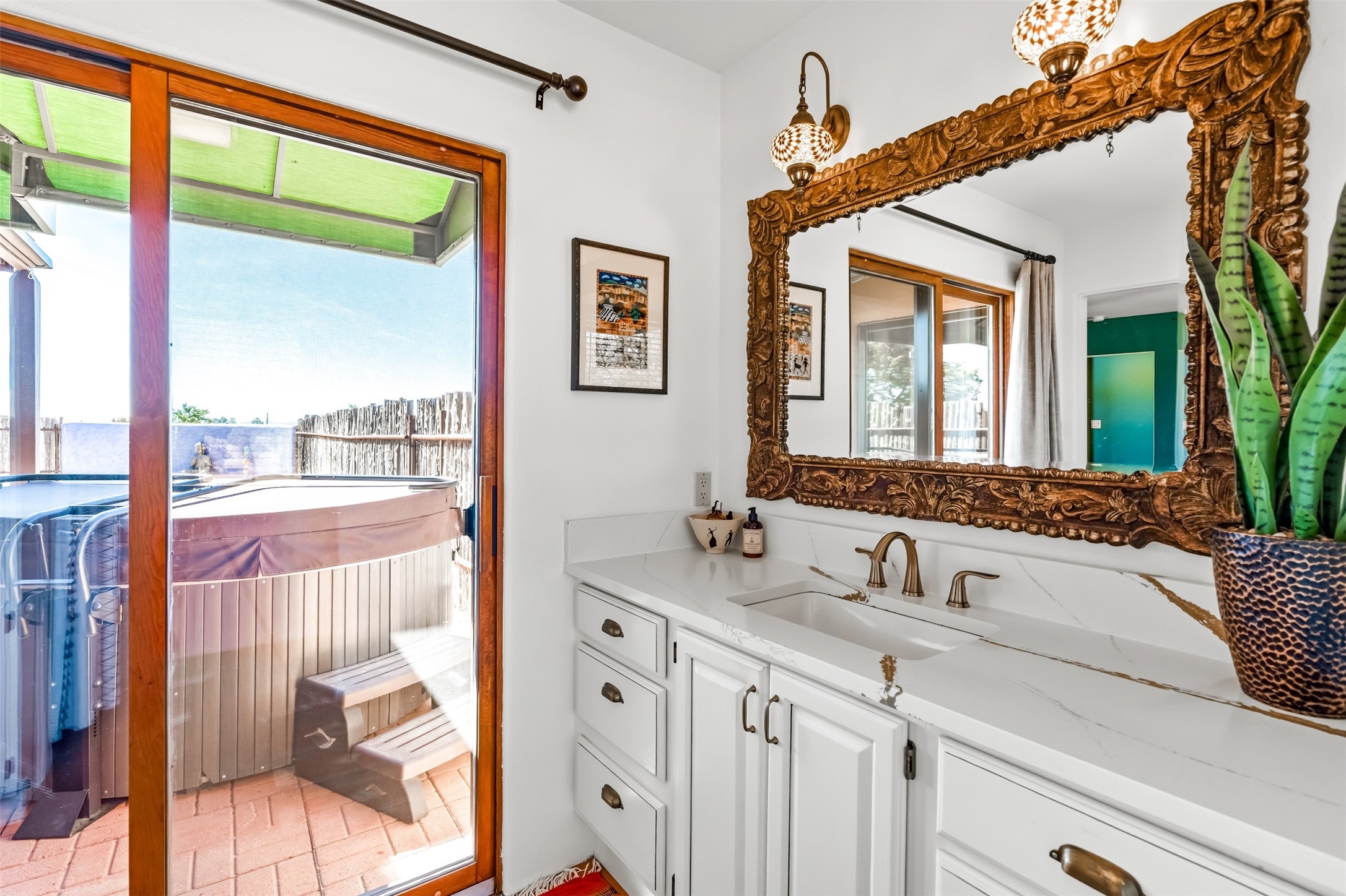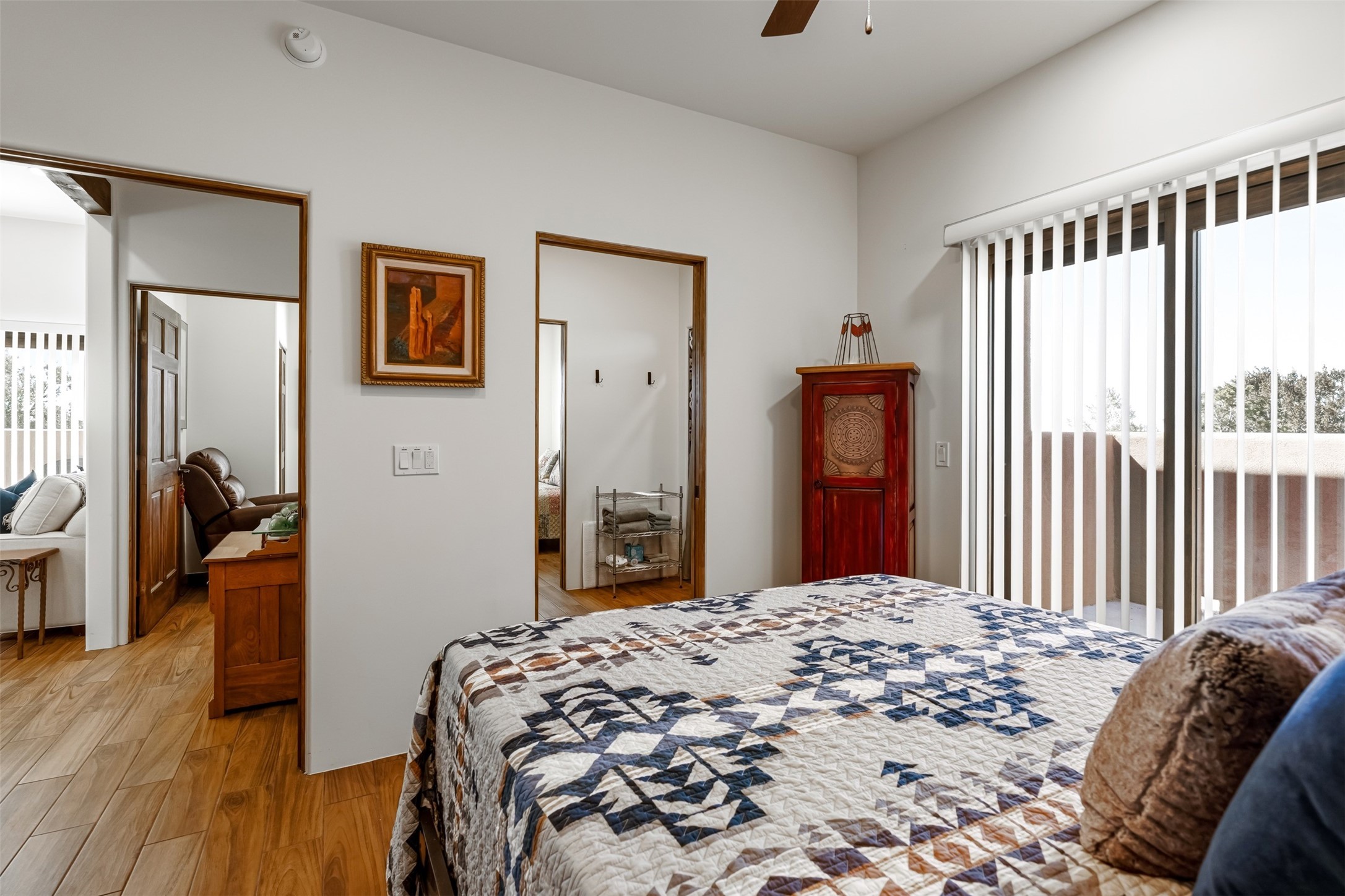 One-of-a-Kind Eldorado at Santa Fe Residence--Artistic, Versatile, with option to purchase Turn-Key. Discover one of Eldorado's most distinctive properties--a beautifully maintained, move-in-ready 5 bedroom, 3 bath home and guest house offer exceptional flexibility for artists, multi-generational living, or those seeking passive rental income. With only two owners, this special residence has been thoughtfully upgraded and lovingly cared for throughout. The fully remodeled main house showcases classic Santa Fe charm paired with modern comfort, featuring new stucco and refreshed hardscape. The newly constructed casita (2023) adds incredible versatility--ideal for guests, extended family, a studio, or income potential. Together, the property offers 2,335 square feet of interior living space, plus a 250-square-foot portal and multiple inviting patio areas designed for relaxed outdoor living. Additional highlights include an oversized two-car garage with built-in storage and workbench, fenced yard, private well with new soft water system and easy access to the Rail Trail. Only minutes to all Eldorado amenities, local shopping and services, close to historic Santa Fe.