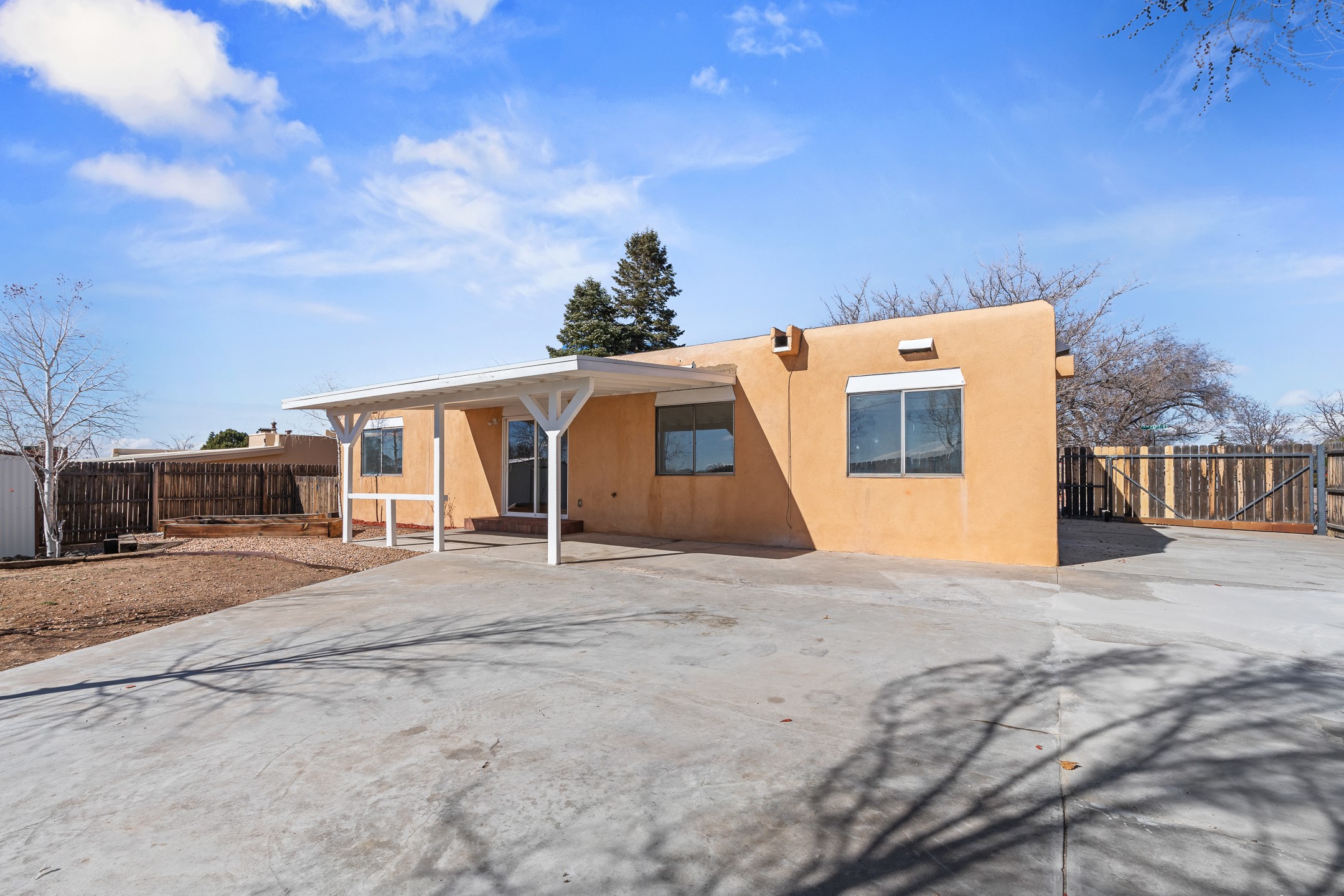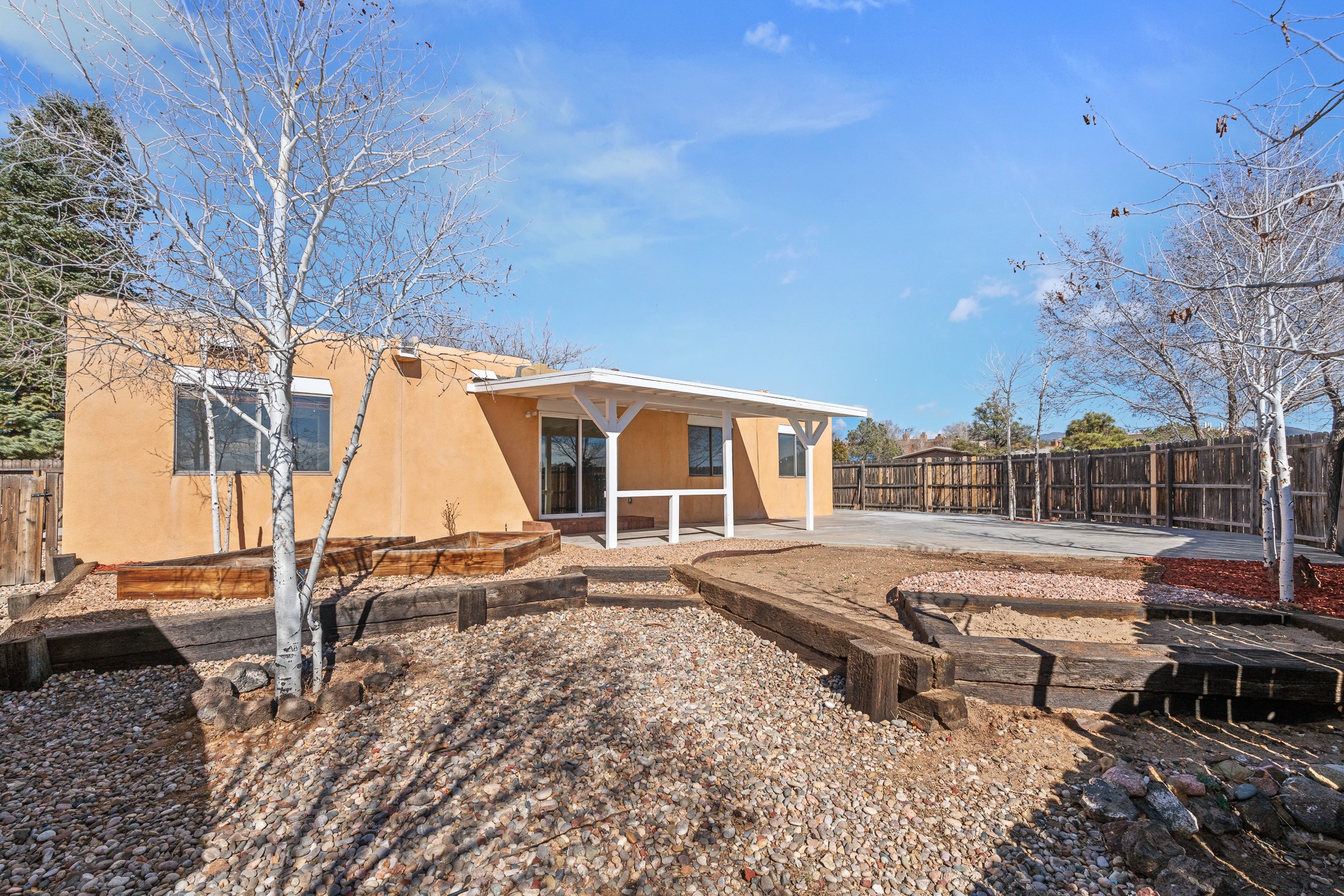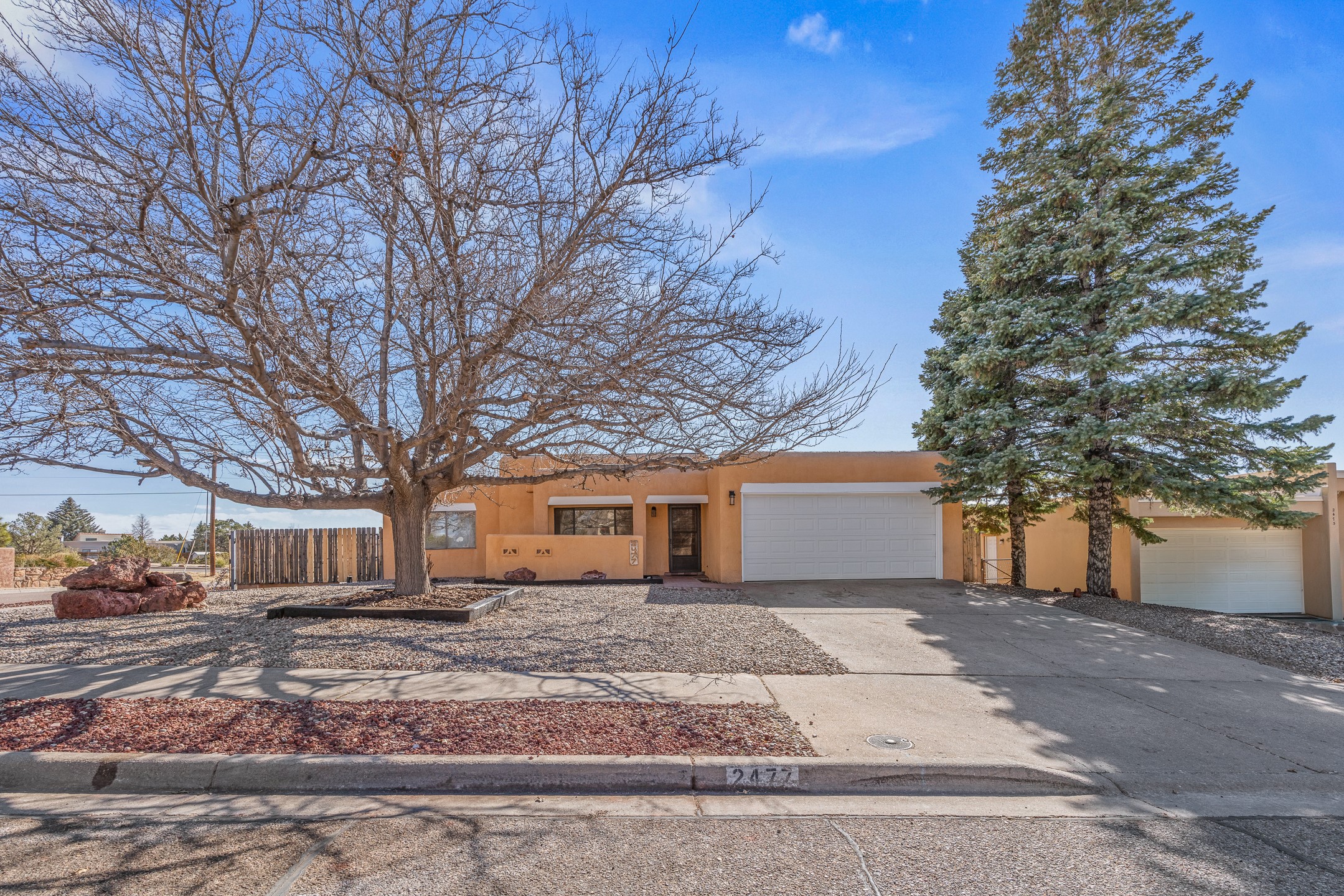 Welcome to 2477 Camino Capitan in the desirable La Paz II East community, centrally located just off Rodeo Road for easy access to shopping, dining, schools, and all that Santa Fe has to offer. This freshly painted 4-bedroom, 2-bath home offers a well-designed floor plan with excellent separation between the primary suite and guest bedrooms, providing both privacy and flexibility. The spacious living room features tall ceilings that create an open, airy feel, while tile flooring throughout ensures easy maintenance and a clean, cohesive look. The large eat-in kitchen offers plenty of space for gathering and includes a sliding glass door that opens to a covered portal and the expansive, fully fenced backyard perfect for entertaining, gardening, pets, or simply enjoying the outdoors. Situated on a generous corner lot, the property provides added space and privacy. Complete with an insulated and heated 2-car garage and a functional, comfortable layout, this home is a wonderful opportunity in a convenient, central location.