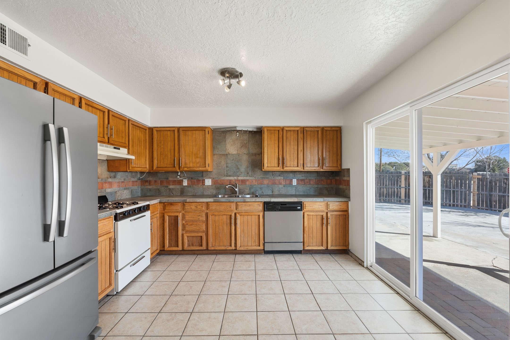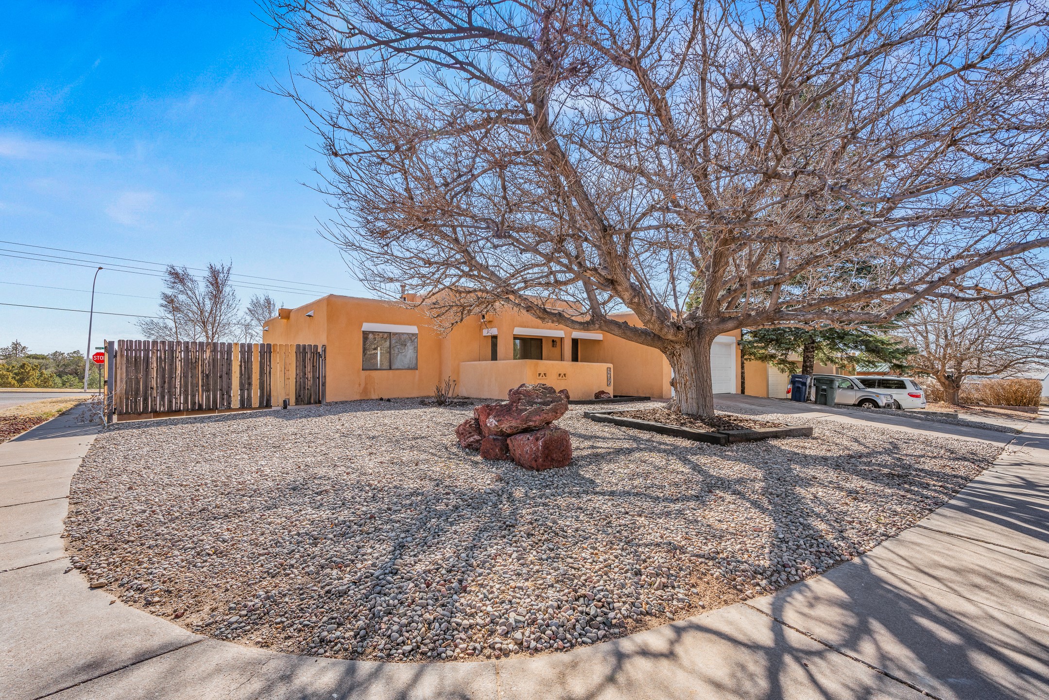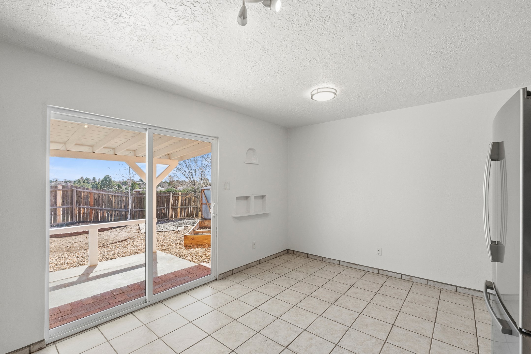Welcome to 2477 Camino Capitan in the desirable La Paz II East community, centrally located just off Rodeo Road for easy access to shopping, dining, schools, and all that Santa Fe has to offer. This freshly painted 4-bedroom, 2-bath home offers a well-designed floor plan with excellent separation between the primary suite and guest bedrooms, providing both privacy and flexibility. The spacious living room features tall ceilings that create an open, airy feel, while tile flooring throughout ensures easy maintenance and a clean, cohesive look. The large eat-in kitchen offers plenty of space for gathering and includes a sliding glass door that opens to a covered portal and the expansive, fully fenced backyard perfect for entertaining, gardening, pets, or simply enjoying the outdoors. Situated on a generous corner lot, the property provides added space and privacy. Complete with an insulated and heated 2-car garage and a functional, comfortable layout, this home is a wonderful opportunity in a convenient, central location.