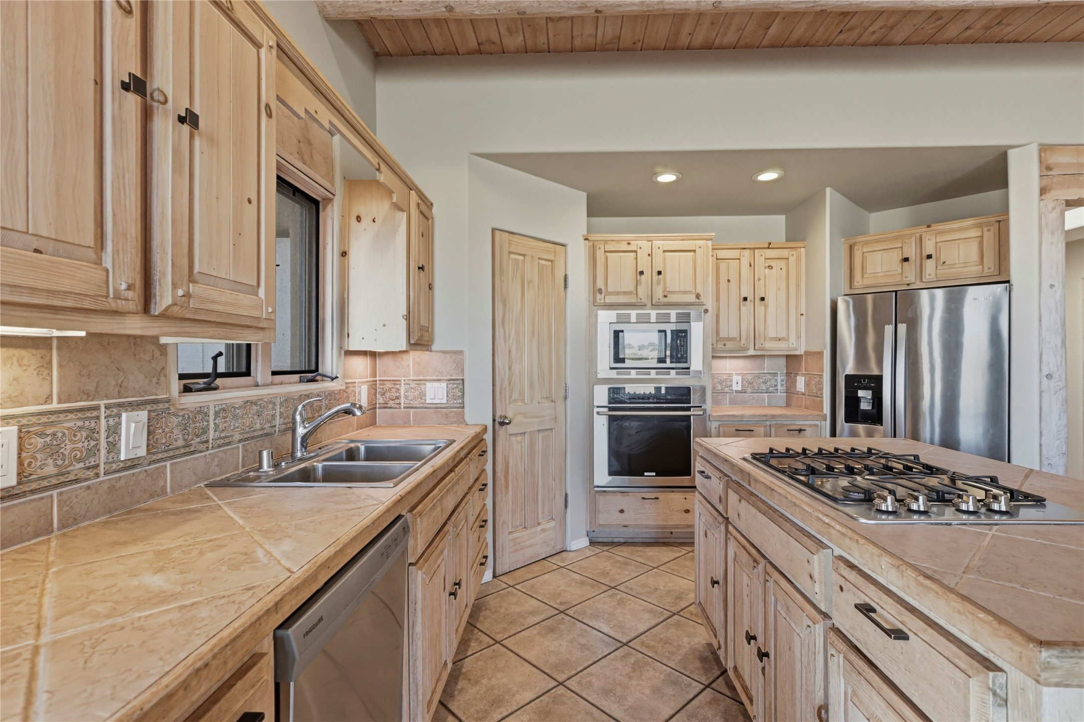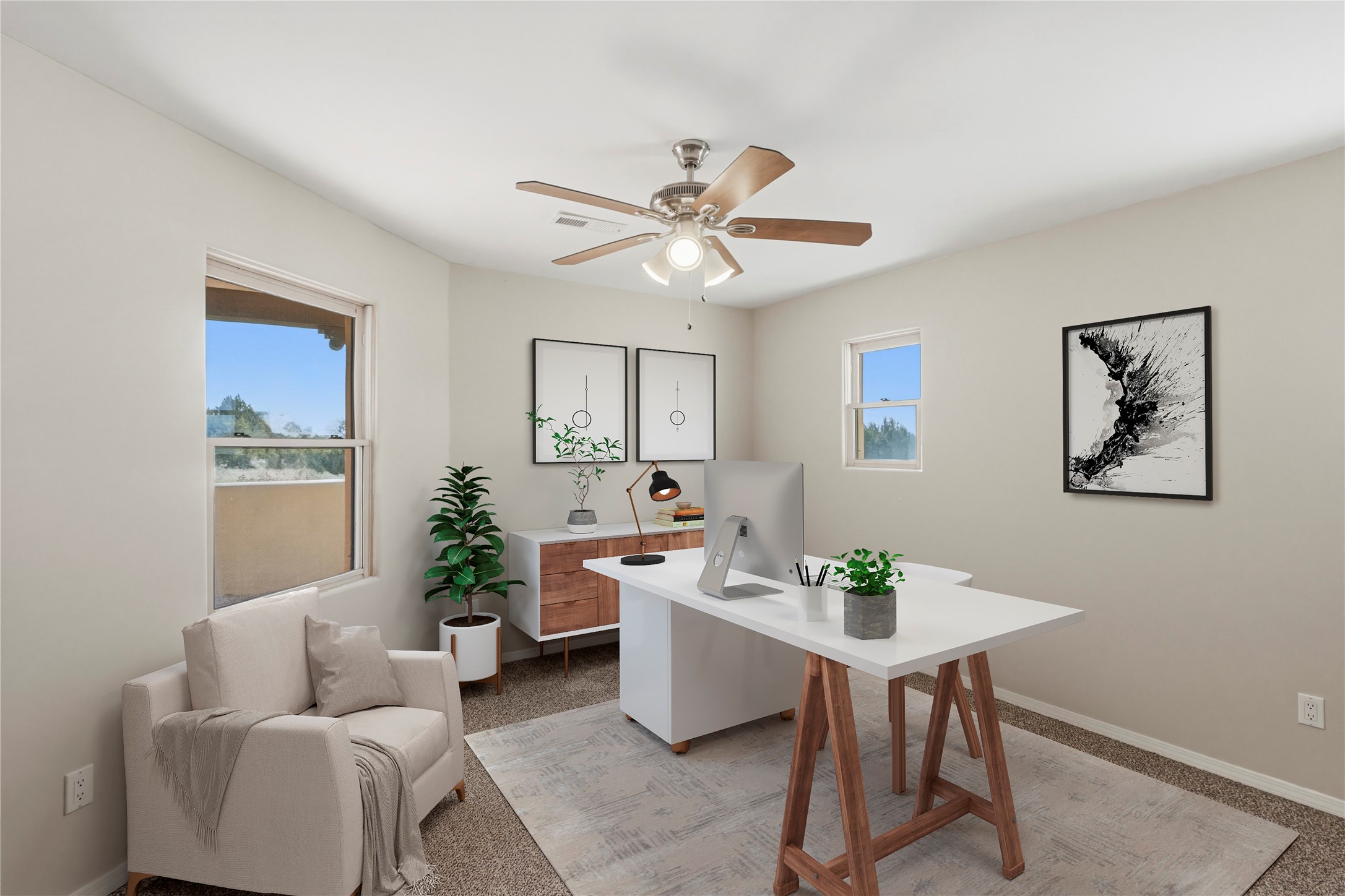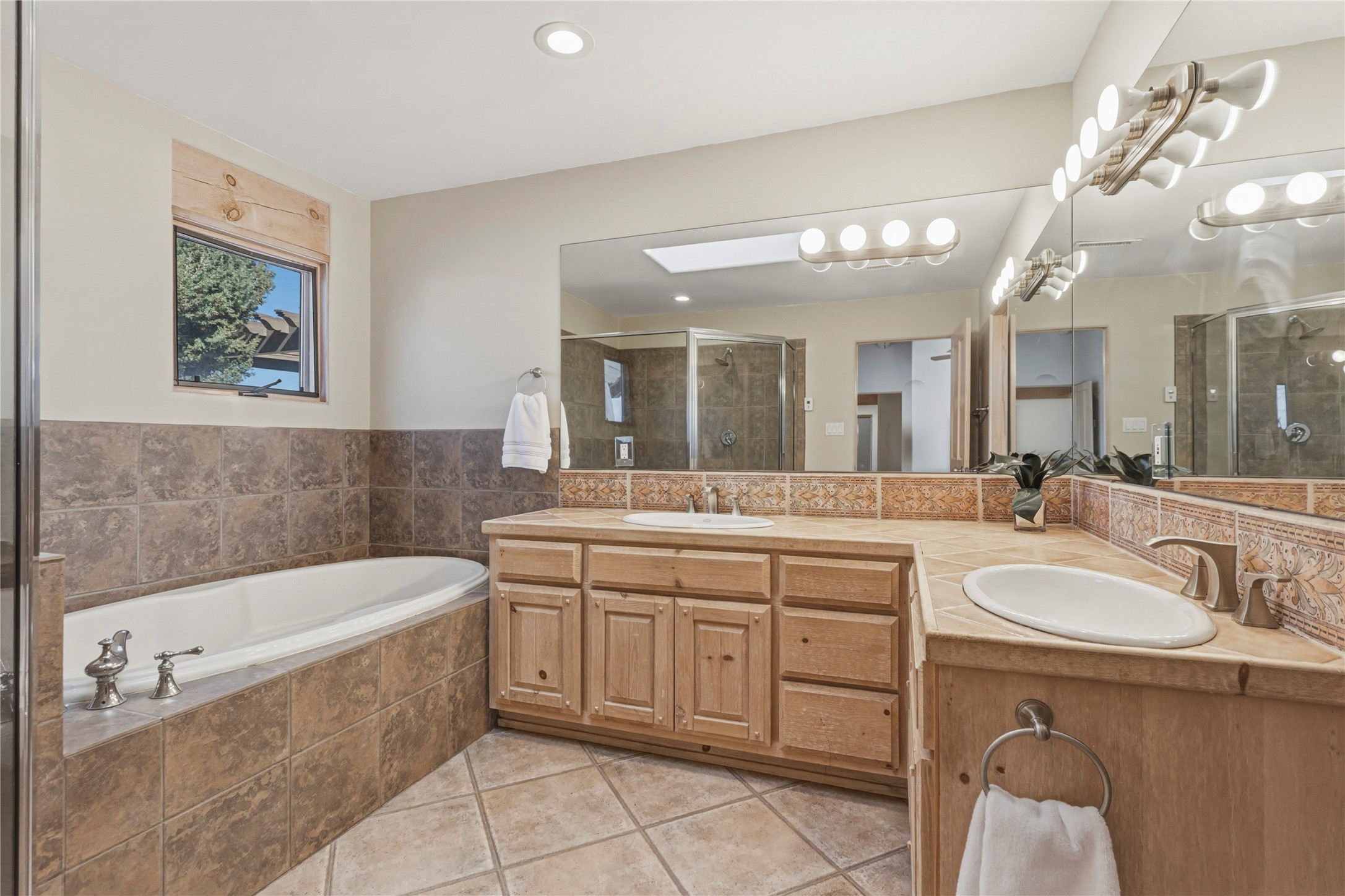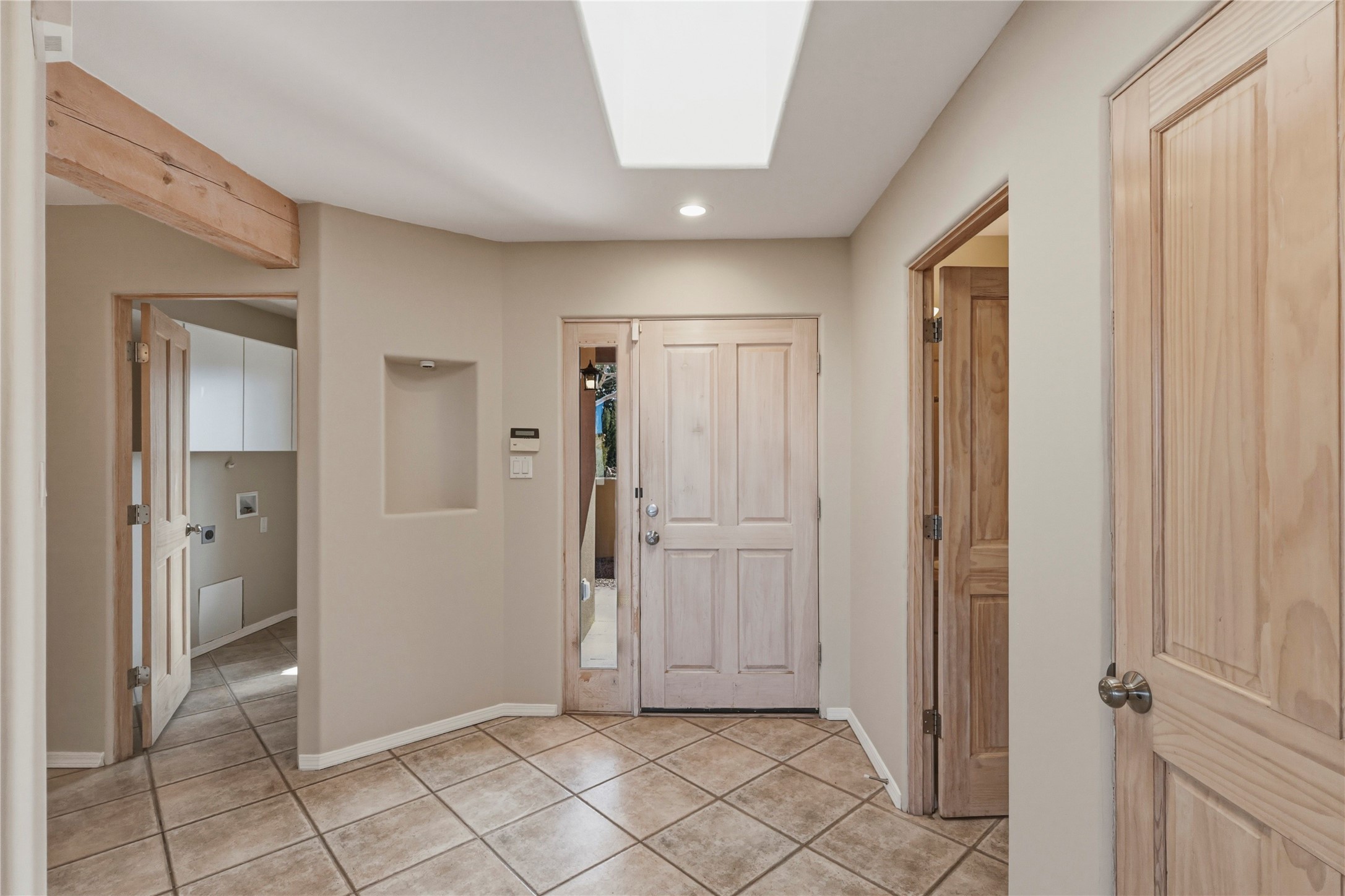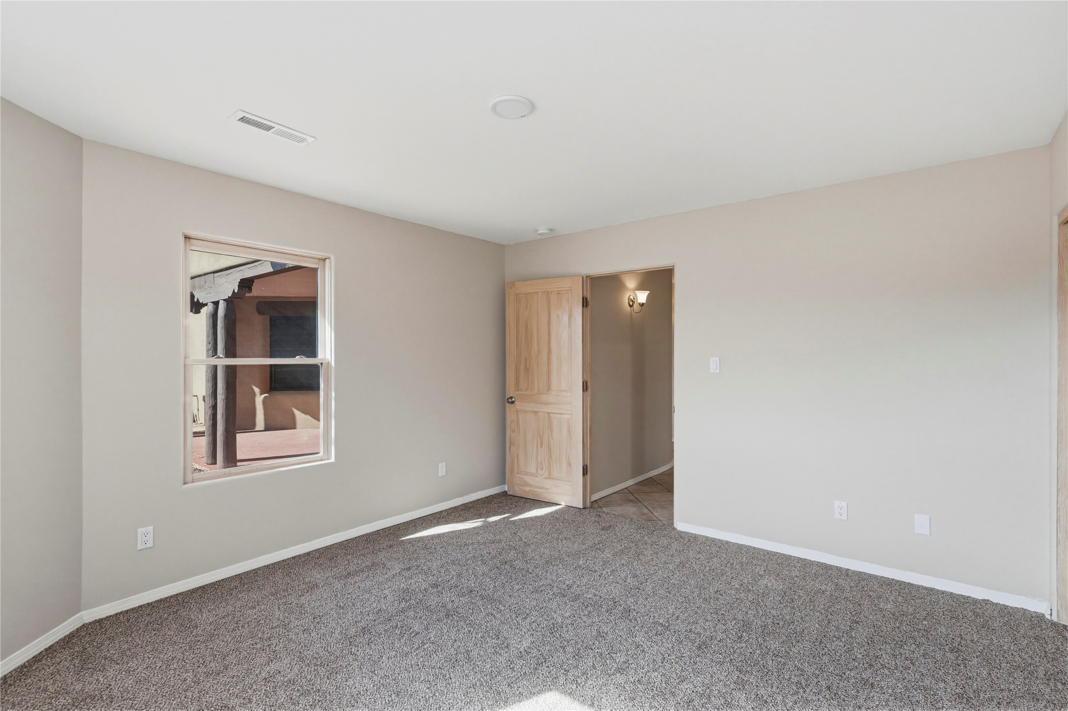 Spacious Southwestern retreat situated on a generous 1.3-acre lot, offering privacy and charm behind a classic stucco wall. The beautifully landscaped grounds create a serene setting, perfect for relaxing or entertaining on the expansive patio while taking in breathtaking New Mexico sunsets.Inside, the home blends warmth and character with modern updates. The expansive great room features a stunning tongue-and-groove ceiling, dramatic vigas, and a traditional kiva-style fireplace--creating a true Southwest ambiance. Fresh neutral paint and recently replaced carpet add a crisp, move-in-ready feel throughout.The primary suite offers a peaceful escape with an ensuite bath and walk-in closet. Two additional bedrooms provide ample space and generous closets. A well-appointed chef's kitchen flows seamlessly into the adjoining dining area, making it ideal for both everyday living and hosting gatherings.This private, beautifully maintained property captures the essence of Southwest living with space, style, and unforgettable sunsets.