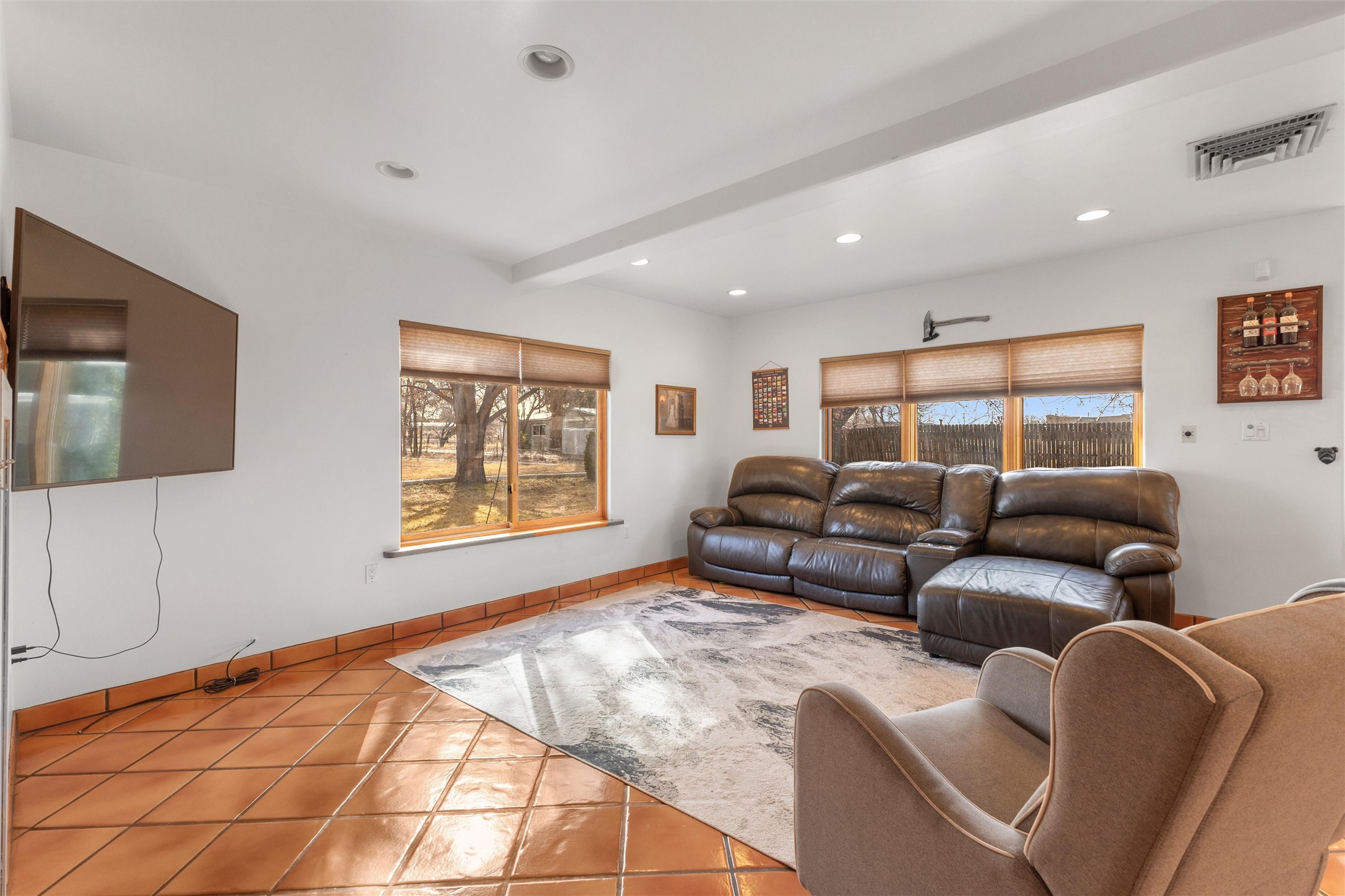 Experience elevated Northern New Mexico living at 299 NM-399 in La Mesilla--where refined comfort meets wide-open skies and river valley beauty. Set on 1.467 acres with valuable water rights, this exceptional 3-bedroom, 2.5-bath residence offers 3,093 square feet of thoughtfully curated living space, designed for both elegance and ease.Every detail reflects the charm and craftsmanship of Northern New Mexico homes, featuring Saltillo tile flooring, granite countertops, and radiant heated floors throughout, creating a warm and inviting atmosphere of timeless luxury. The expansive layout flows effortlessly, with generous living areas perfect for sophisticated entertaining or intimate gatherings. A large master suite with a private ensuite offers a serene retreat, while a spacious office provides an ideal work-from-home or executive setting.Outdoors, the property unfolds into a private sanctuary--complete with a personal well, manicured grounds, and a basketball court for recreation and leisure. Just a short stroll away, the legendary Rio Grande offers serene wildlife and breathtaking sunsets along its banks.For golf enthusiasts, the acclaimed Black Mesa Golf Club is less than a mile away, offering world-class play against dramatic high desert vistas.Perfectly positioned with convenient access to Taos, Los Alamos, and Santa Fe, this property delivers a rare combination of privacy, prestige, and connectivity.With a 2-car attached garage and expansive acreage, this home embodies the refined Northern New Mexico lifestyle in every detail.