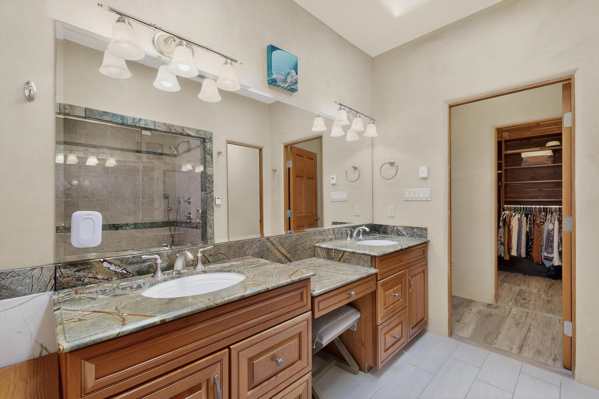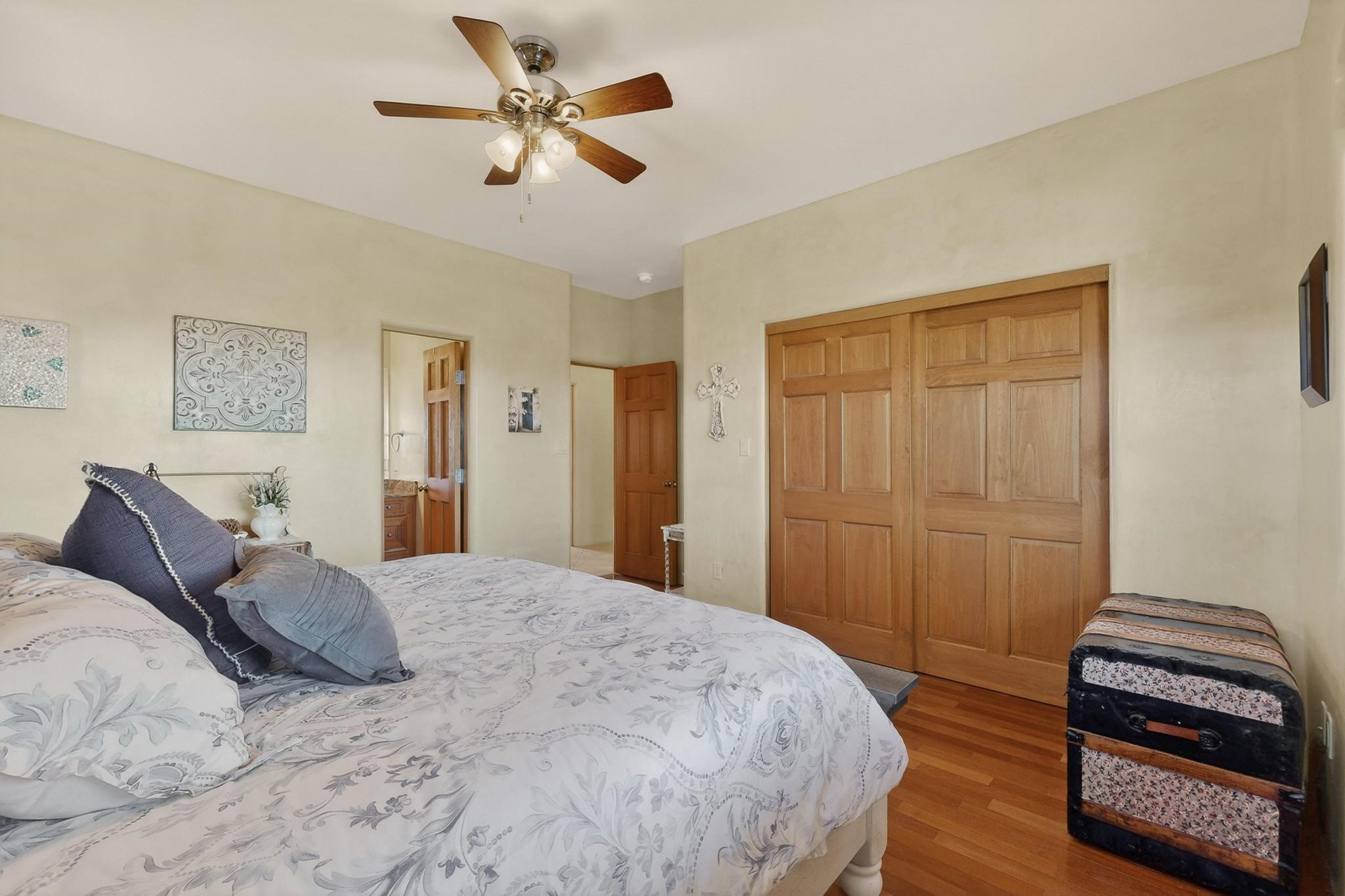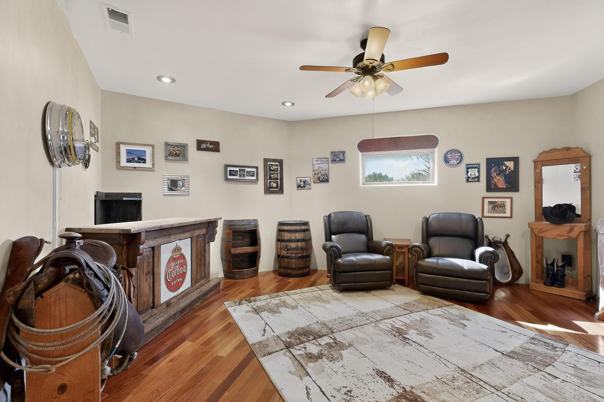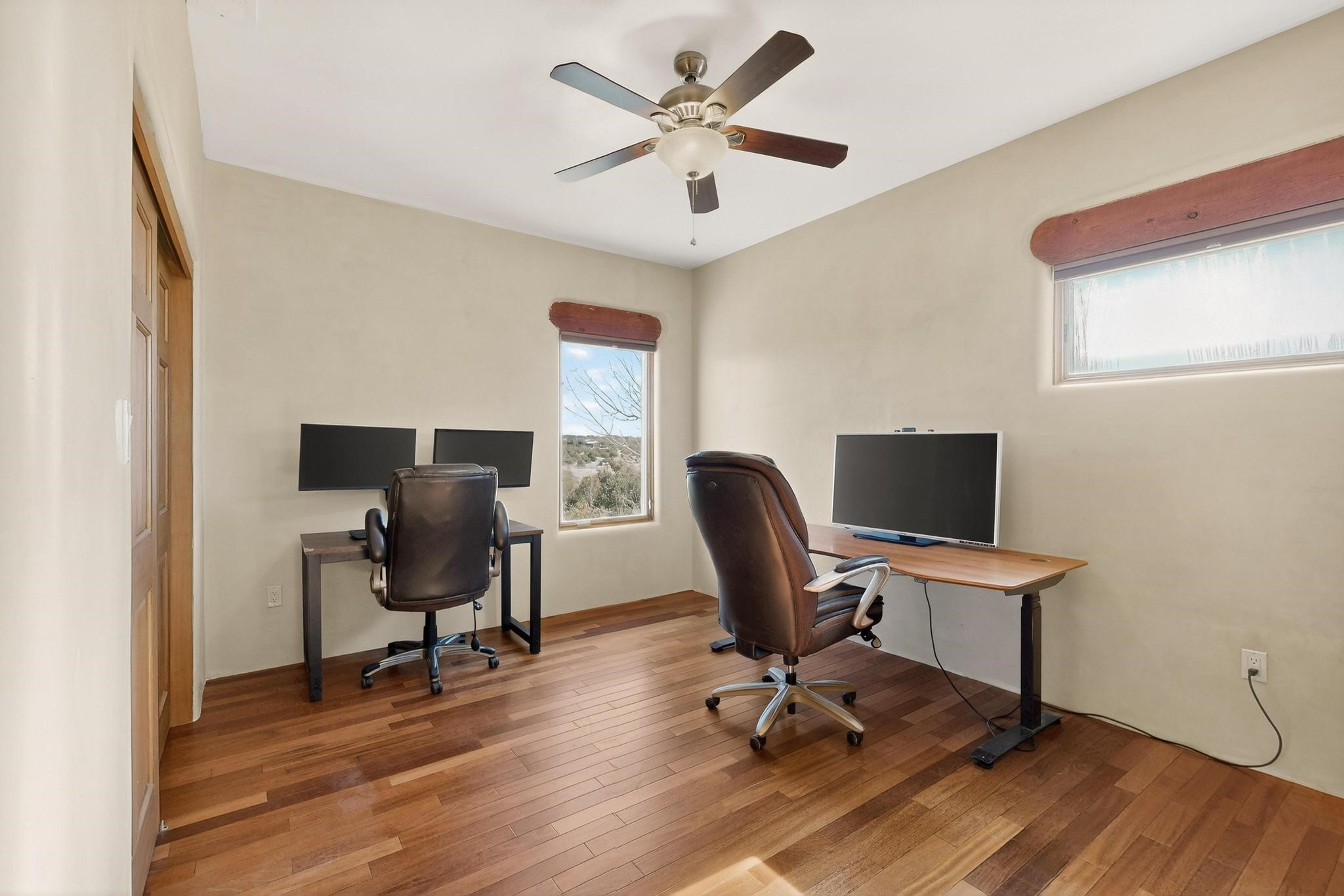 Welcome to 20 Vista Calabasas where Santa Fe style and luxury meet! This incredible home sitting on 5.5 acres of serene high desert landscape, offers 3491 square feet of elegance. Walk into the stunning front door to a grand great room with high ceilings and a direct view of mountain vistas. Continue down the hall enjoying exposed vigas, wood ceilings, diamond finished plaster walls, and tile and wood flooring throughout the home. You'll love preparing meals in the beautiful and large chefs kitchen, equipped with stunning granite countertops and an incredible Wolf range/oven that will make cooking a dream! This 4 bedroom home is cleverly designed with the primary suite on the other side of the home from the other bedrooms with a bonus/possible additional 5th bedroom. In the primary suite you will be charmed by a beautiful diamond finish plaster wood burning fireplace and a private patio door allowing for ample light and views of the Sangre de Cristo mountains. The primary bath has incredible finishes including a large free soaking tub, a large walk in steam shower, and beautiful and large granite countertops. The primary closet is cedar lined with ample space for all your belongings. This home is an entertainers delight! The large living room opens out onto a massive outdoor patio with wide open space stretching far into the distance with stunning views in all directions. This is the perfect place to hold all your upcoming summer gatherings on the cool Santa Fe evenings or wake up and enjoy the peaceful sound of the birds chirping while watching the sun rise in the distance. This home will not disappoint! Schedule your private showing today!