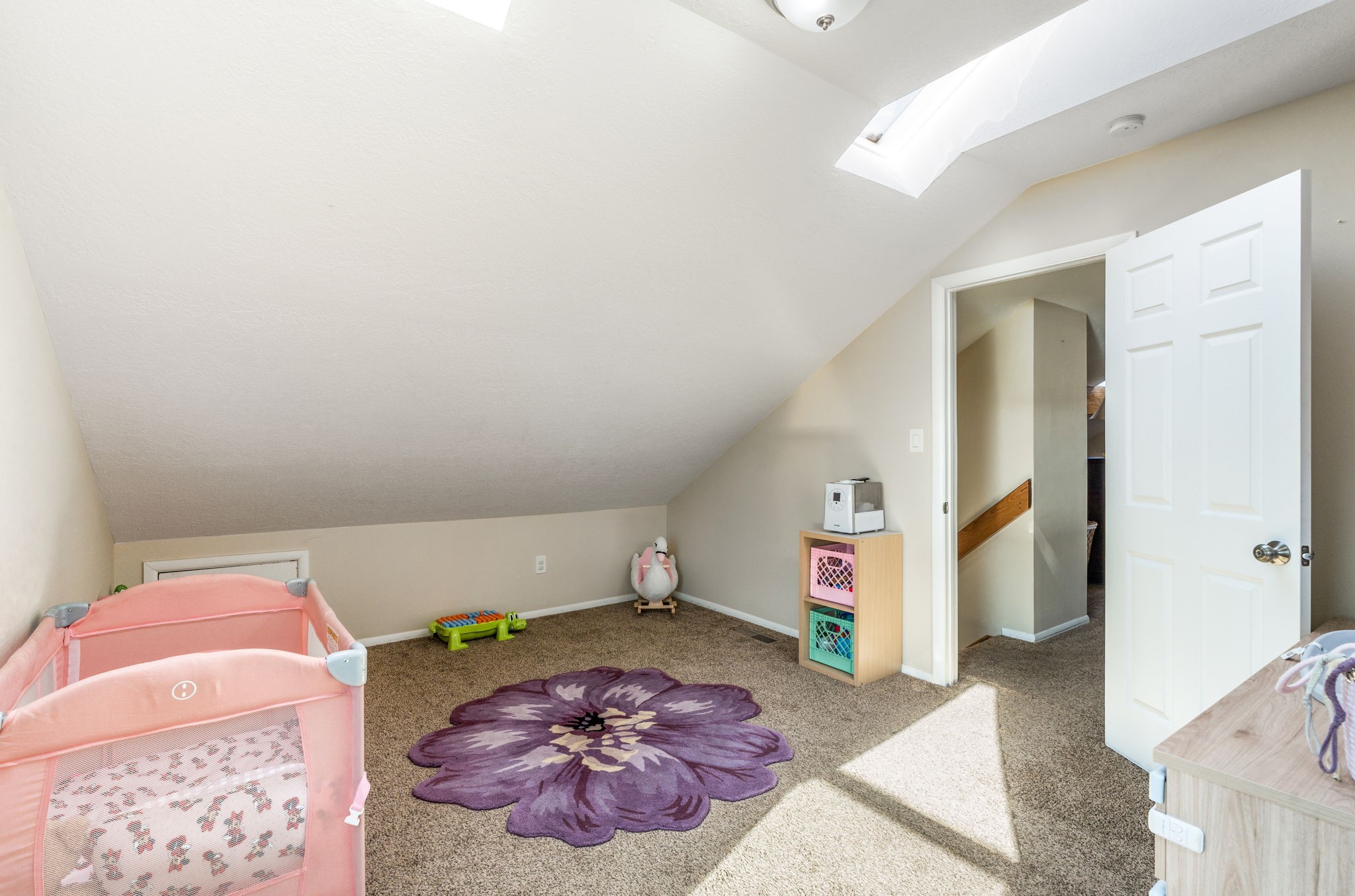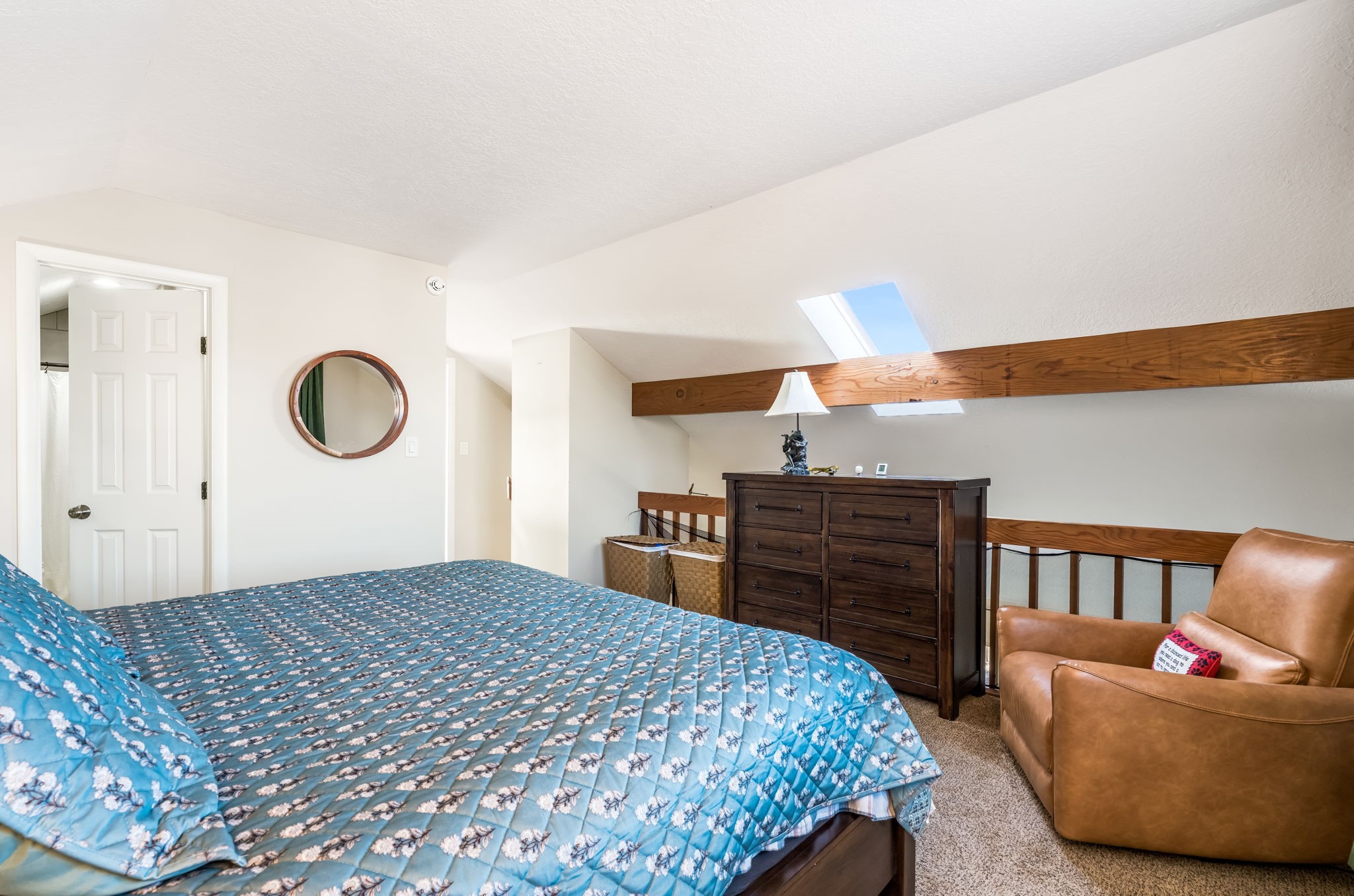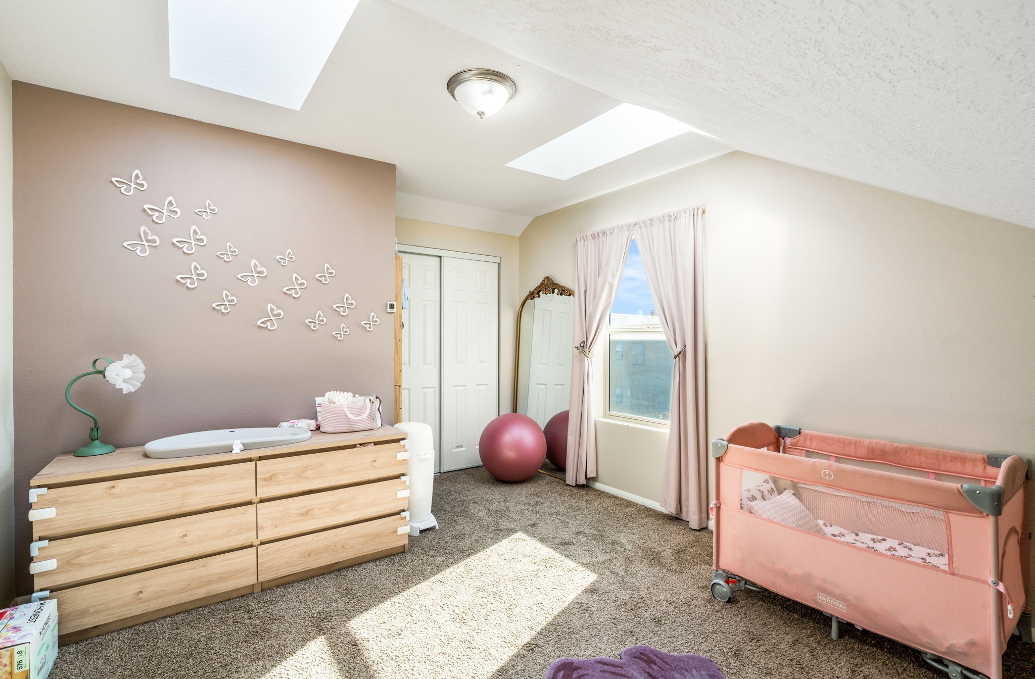 Situated in the Fairway Village community, this thoughtfully designed home offers comfort, functionality, and recent improvements throughout. The layout provides flexibility with a bedroom and full bath on the main level, while an additional bedroom and bathroom are privately positioned upstairs. The living space feels open and airy with elevated ceilings that enhance the sense of volume. Natural light filters in from above through upper level skylights, adding brightness to the interior. A spacious loft offers versatile use for a second living area, workspace, or hobby room. Outside, the generously sized enclosed backyard creates room for outdoor gatherings, pets, or quiet relaxation. Recent updates include upgraded windows, refreshed exterior stucco, updated kitchen appliances, granite countertops, and a newly installed roof(2021), offering added value and peace of mind. Conveniently located near parks, retail centers, schools, Interstate 25, and NM 599, this home combines neighborhood charm with easy access to daily essentials and commuting routes.