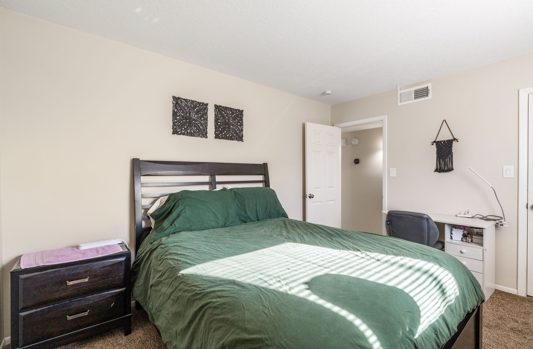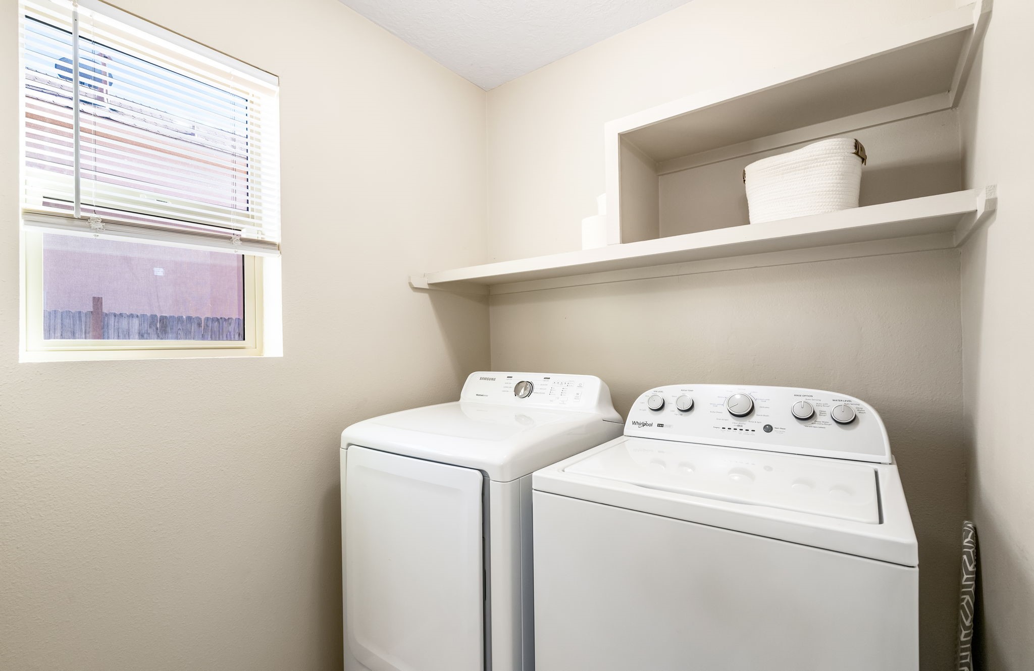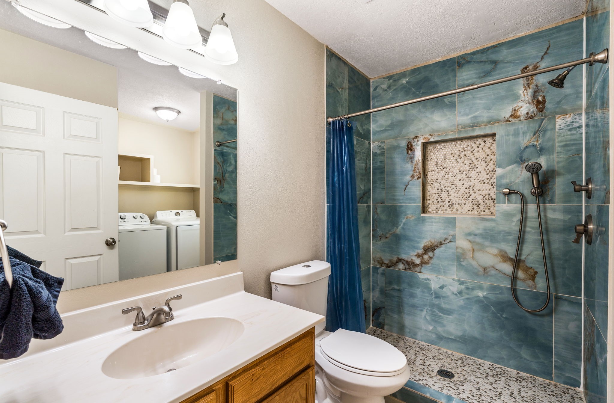 Situated in the Fairway Village community, this thoughtfully designed home offers comfort, functionality, and recent improvements throughout. The layout provides flexibility with a bedroom and full bath on the main level, while an additional bedroom and bathroom are privately positioned upstairs. The living space feels open and airy with elevated ceilings that enhance the sense of volume. Natural light filters in from above through upper level skylights, adding brightness to the interior. A spacious loft offers versatile use for a second living area, workspace, or hobby room. Outside, the generously sized enclosed backyard creates room for outdoor gatherings, pets, or quiet relaxation. Recent updates include upgraded windows, refreshed exterior stucco, updated kitchen appliances, granite countertops, and a newly installed roof(2021), offering added value and peace of mind. Conveniently located near parks, retail centers, schools, Interstate 25, and NM 599, this home combines neighborhood charm with easy access to daily essentials and commuting routes.