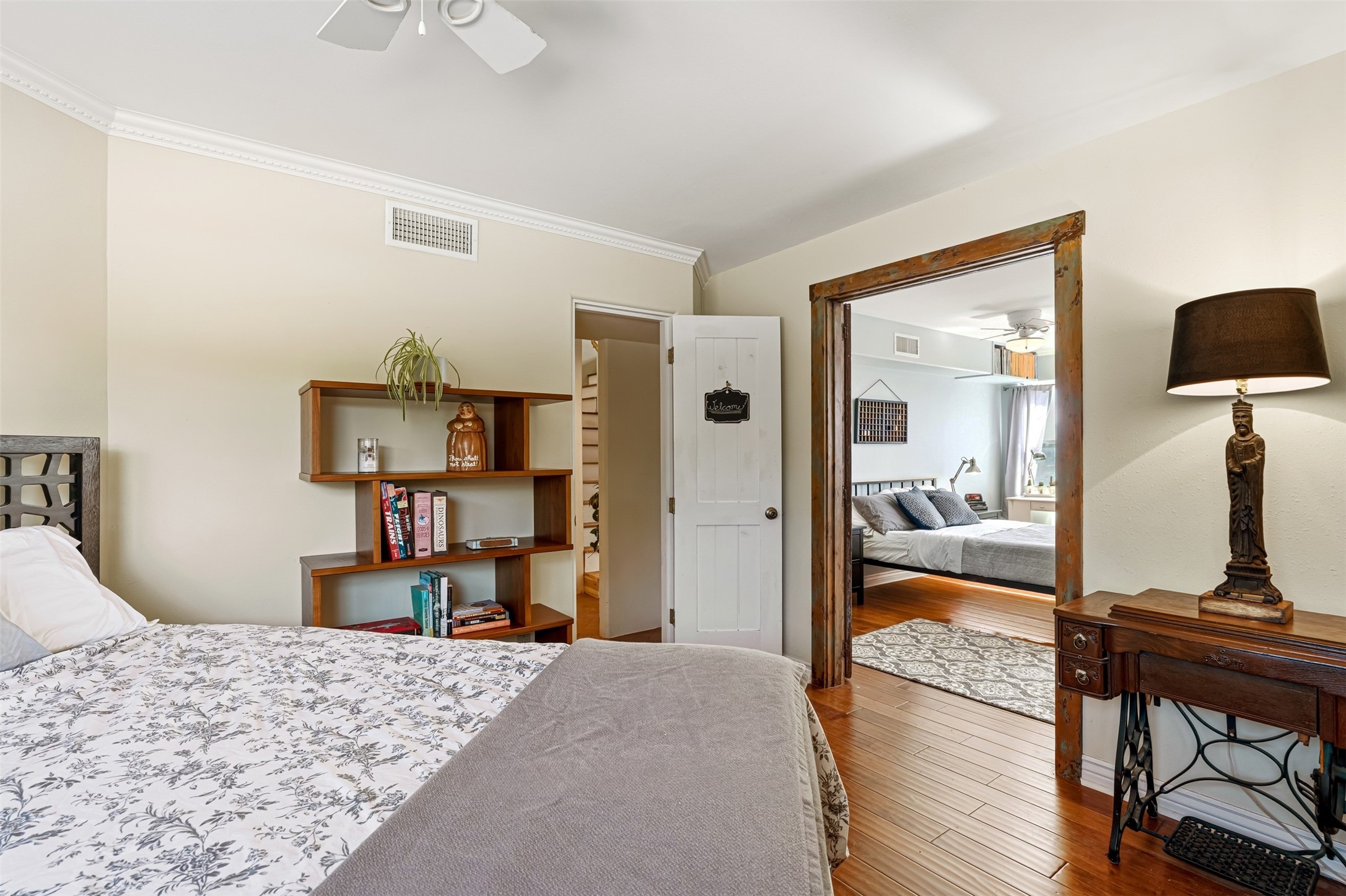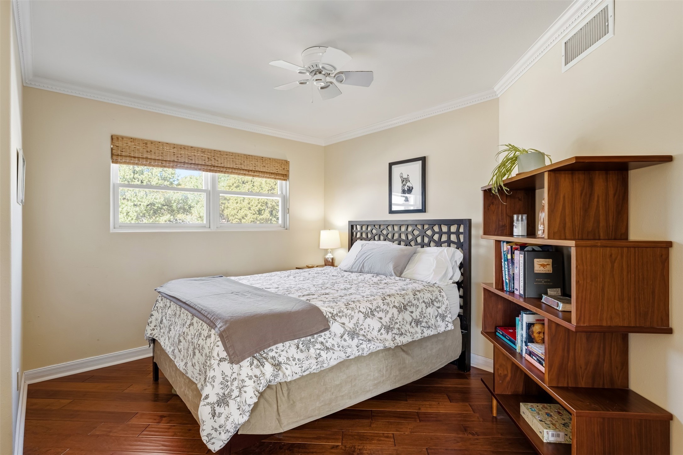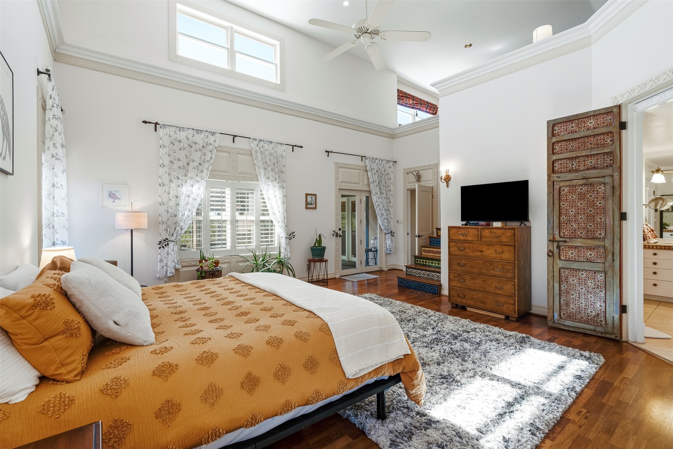 This beautiful custom home is nestled in the pinon foothills just 10 minutes from the Plaza and within close proximity to El Gancho Fitness Club surrounded by scenic open space. The home is embellished thought-out with craftsman features such as hand-painted doors and customtile treatments, and the layout offers two distinct bedroom wings, each with its own upstairs spaces, perfect for a media room, library, or gathering space or gallery. Natural light from panoramic windows fills the living room,where the kiva fireplace creates a cozy atmosphere. The property has multiple decks create lounging areas, for plenty of indoor and outdoor living. A bubbling hot tub built into one of the decks that makes for amazing stargazing! The primary bedroom has a 17-foot ceiling and resort-like touches and lighting. The home is located in the county so no millionaire tax. Ample storage fills the home throughout, and aprivate well serves all water and irrigation needs. Central air and Nest thermostats ensure comfort for the live/work needs. This property is a bird and wildlife paradise.
