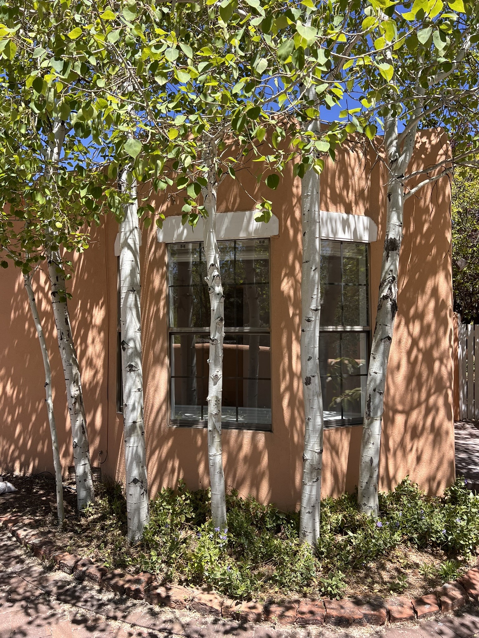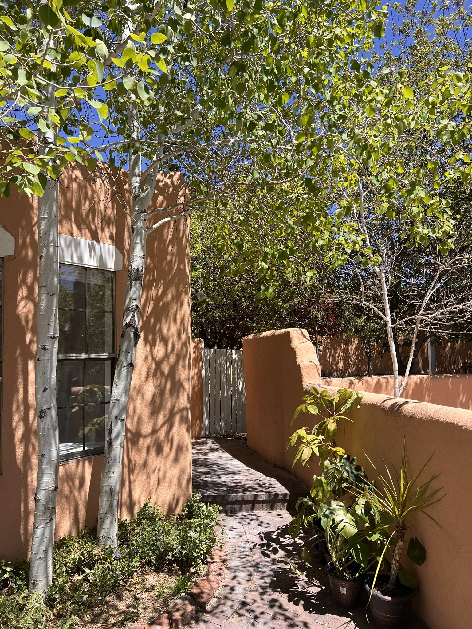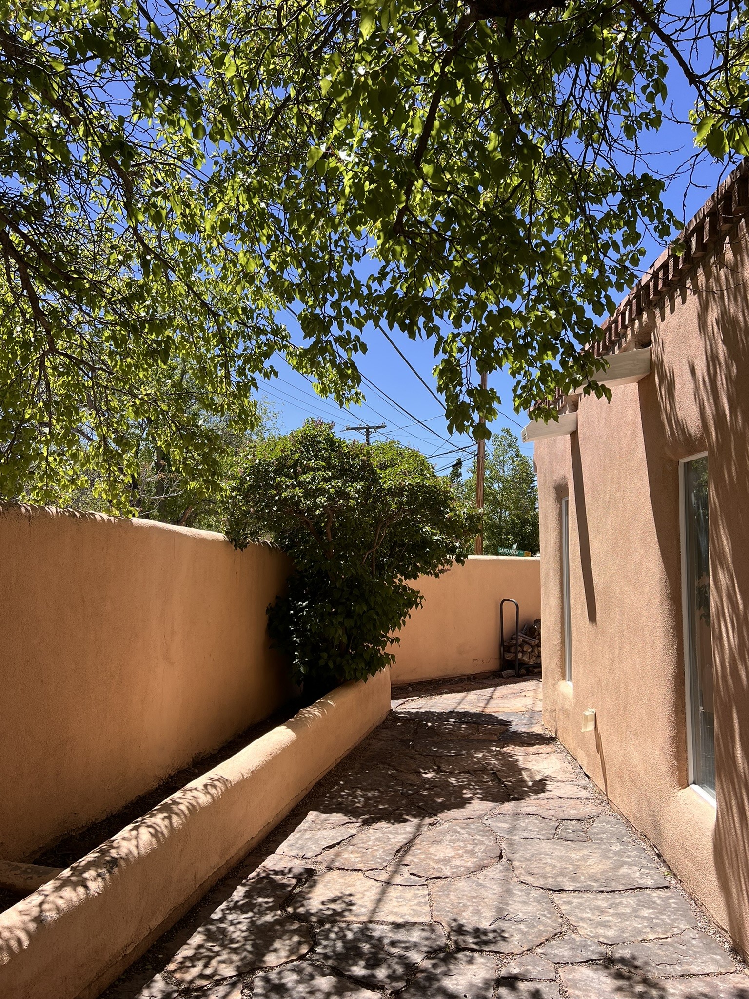 Charming Historic Adobe Home in Santa Fe's East Side Nestled in the heart of Santa Fe's coveted historic Eastside, this classic territorial style, all-adobe home, built in the 1900s, offers timeless character and exceptional location. Just a short stroll from iconic Canyon Road, this unique property includes a beautifully maintained main residence and a detached casita, large basement with bathroom and 5 parking spaces. Coming back on market Feb 2026. Main house is two bedrooms, 2 baths with kiva fireplace, original wood floors, plaster walls and traditional viga ceilings that exudes Santa Fe style. The brick-floored portal and multiple patios with adobe walls offer lovely options for outdoor living areas. Main house also features an 885 sq ft basement with separate exterior entrance, bathroom and multiple rooms for added possibilities for studio, office or remodel into living space. Property also includes a detached two-bedroom, one-bath casita--perfect for guests or as a proven income-producing rental - with a remodeled contemporary kitchen and utilities separately metered. This rare find blends convenience with traditional Southwestern charm and is a truly special opportunity to own a piece of Santa Fe history with strong rental potential and unbeatable walkability. Price subject to existing lienholder for short sale.