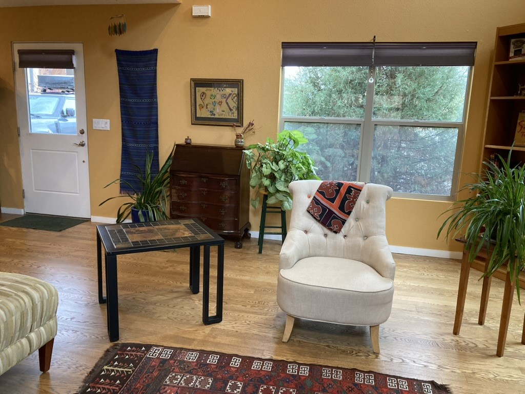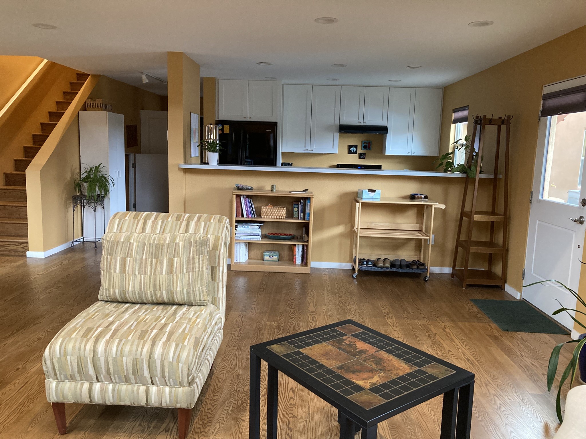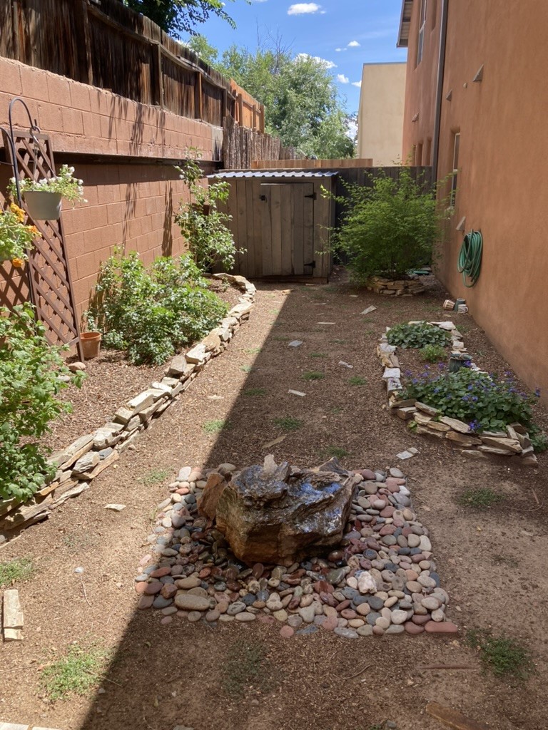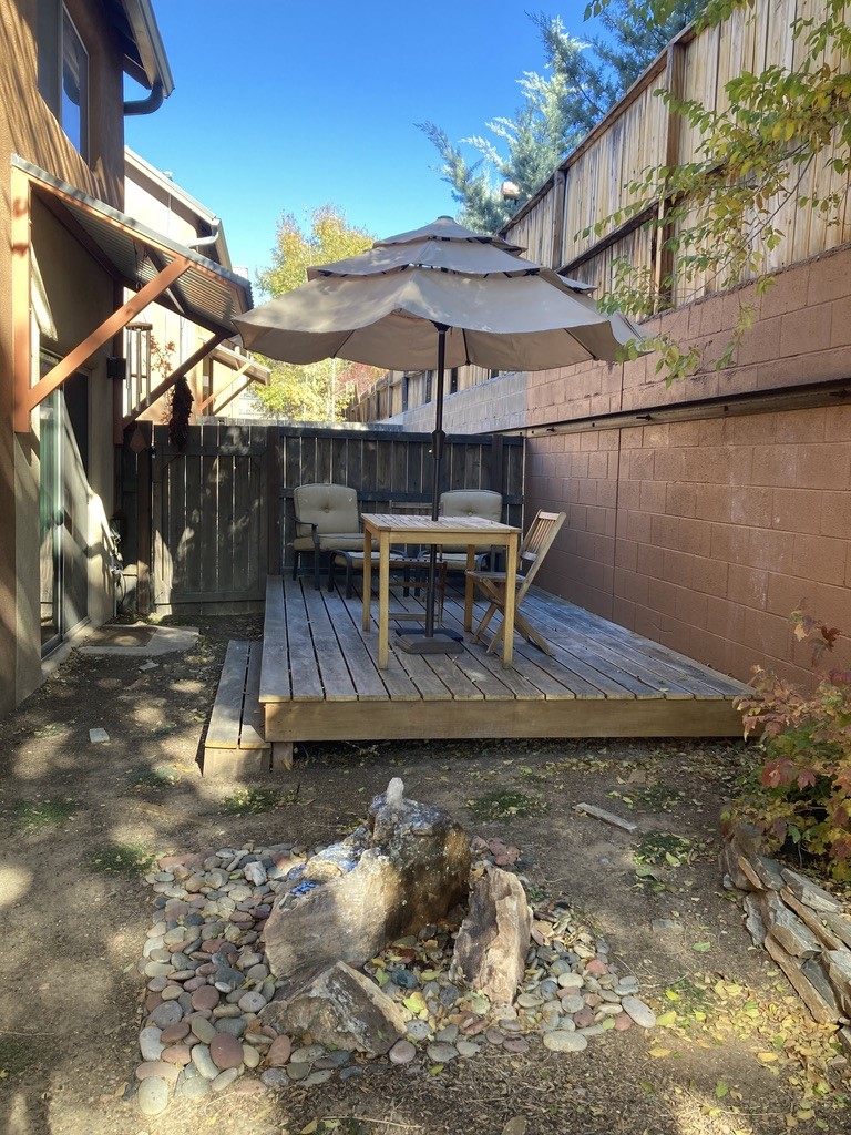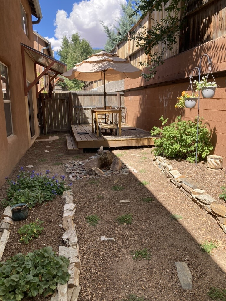 Discover an exceptional blend of comfort, style, and location at this beautifully upgraded 4 bed, 2 bath residence in River Trail Lofts. With direct access to the Santa Fe River Trail from your front door, this lightly used 1,877+/- sq ft home offers bright, inviting living spaces and a thoughtful two-story layout. Interior features include radiant heat, real red oak flooring, high and vaulted ceilings, deep closets, upgraded kitchen appliances, ceiling fans, and top down bottom up cellular blinds throughout. The kitchen and baths feature padded gym flooring for added comfort, with tile in the laundry room. The private backyard has been transformed into a serene outdoor retreat with a custom hardwood deck, fountain, custom storage shed, flower beds, new ground coverings, shrubs, and automated irrigation. It feels like a true extension of the living space and works well for quiet enjoyment or outdoor dining. Ample parking adds to the convenience. River Trail Lofts is tucked below Alameda with no through street, offering a peaceful setting with minimal traffic while still being minutes from downtown, the Railyard, shopping, and the airport.