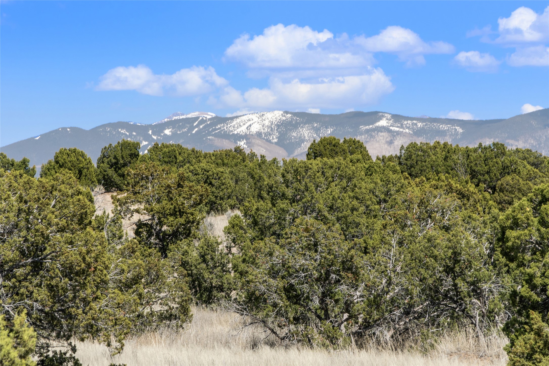 Build your dream home in the quintessential New Mexico landscape at Las Campanas. Easy access to Santa Fe. The large 2.38 acre property contains mature cedar and pinon with two arroyos merging to form a seasonal wetland creating a biodiverse landscape for plants and animals. The building site, clearly marked, is private and secluded with views of the Sangre de Cristo Mountains and only minutes from the Clubhouse and Equestrian Center. Community utilities are onsite, access roads are paved and maintained. The Club at Las Campanas offers two Jack Nicklaus signature golf courses, tennis courts, and athletic facilities. Membership is available, but not required. HOA fees provide gated entrances, 24-hour onsite security, EMT services, and vacation watch. This is a unique property.