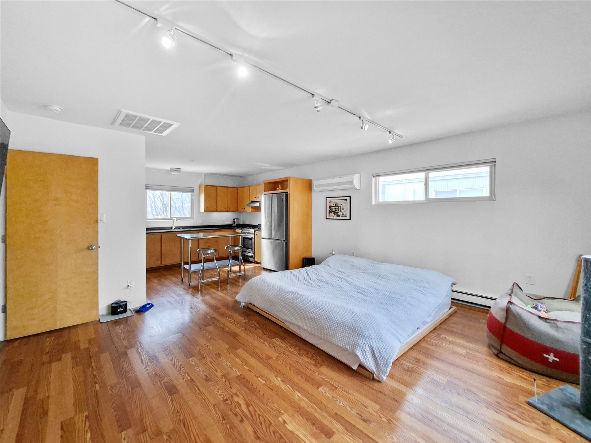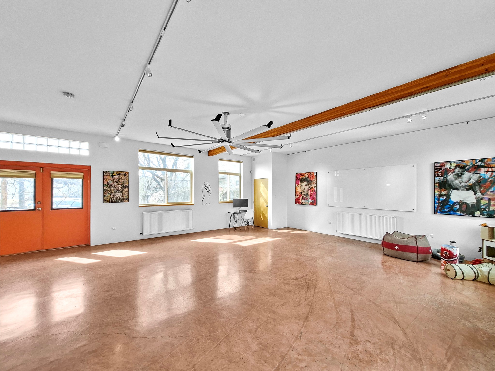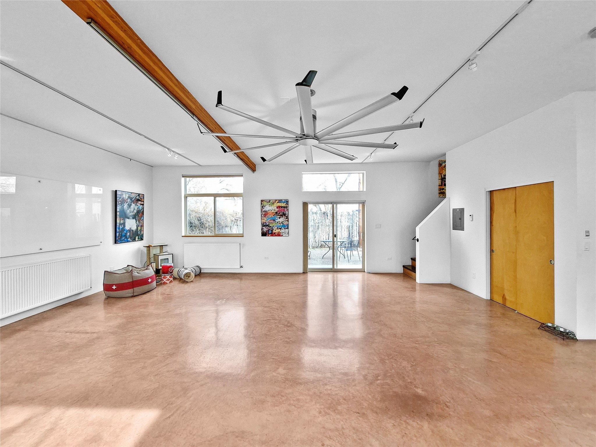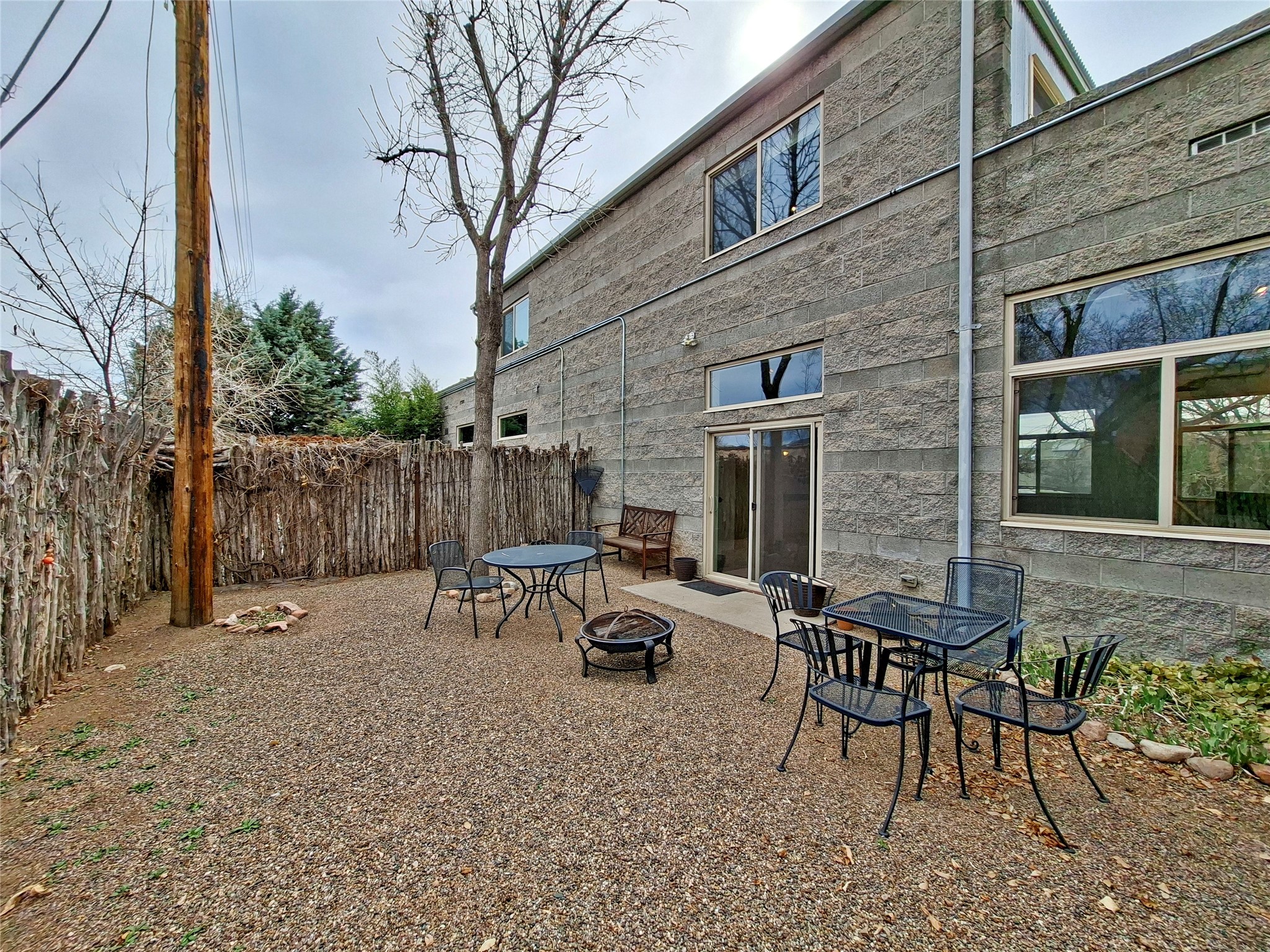 This lovely condo is minutes from the plaza and has easy access everything Santa Fe has to offer. The versatile open floor plan gives free reign for the new owner to set up in any configuration they might need. Plenty of windows let large amounts of natural light in that highlight the beautiful concrete floors downstairs and open space upstairs. The secluded backyard has a tall coyote fencing all around for private relaxation and the front shared courtyard has large established plants that provide a green oasis in the spring and summer time.