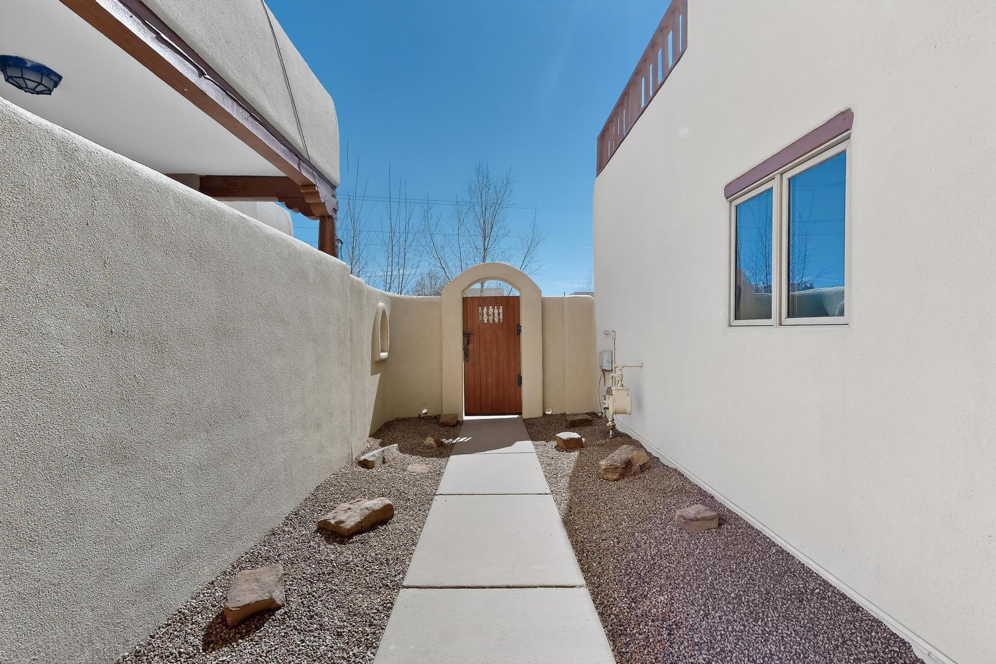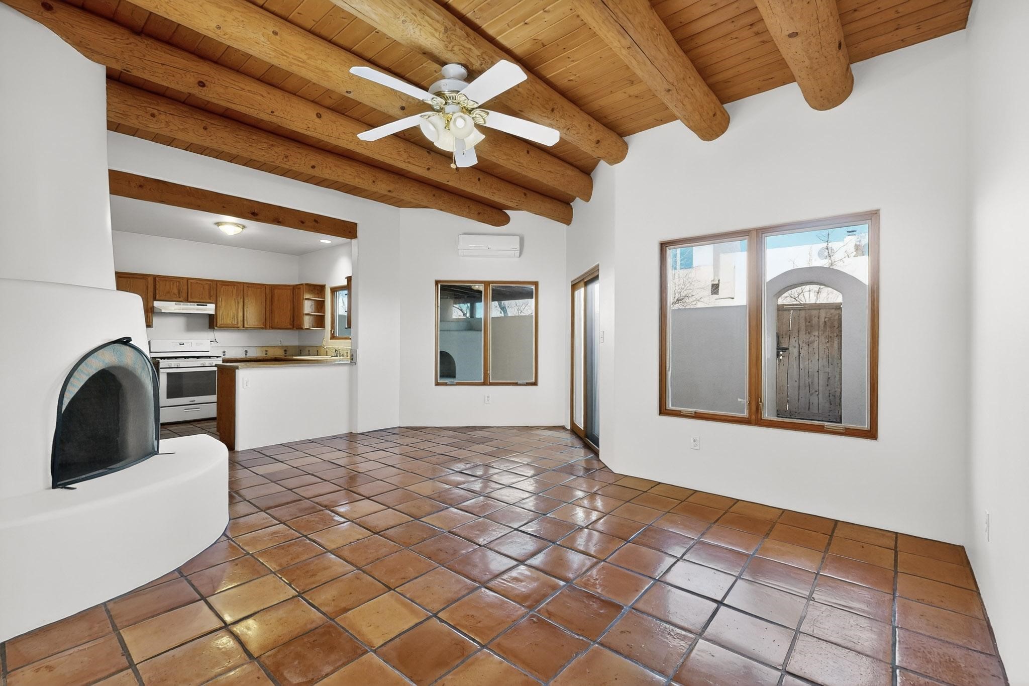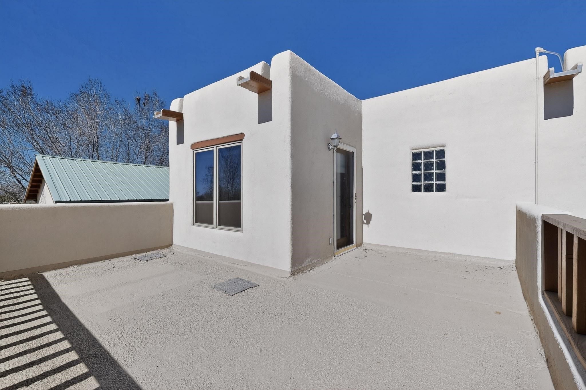 Welcome to this charming move-in ready 3 bedroom, 2 bath condominium in La Paz. With high ceilings and exposed vigas, you step into a light filled space, with a private walled patio in front and another in back. There are 2 balconies upstairs for lots of private outdoor spaces that are perfect for relaxation and views. This unit comes with a new roof with a 10 year trransferable warranty, with annual inspections, and the seller has installed a new mini-split heating and air conditioning system, with a 10 year warranty. There is a beautiful wood burning kiva fireplace in the living area, and another kiva fireplace for ornamentation on the back patio.The seller has also replaced the kitchen counter tops and the kitchen range. This condominium is centrally located for dining and shopping.