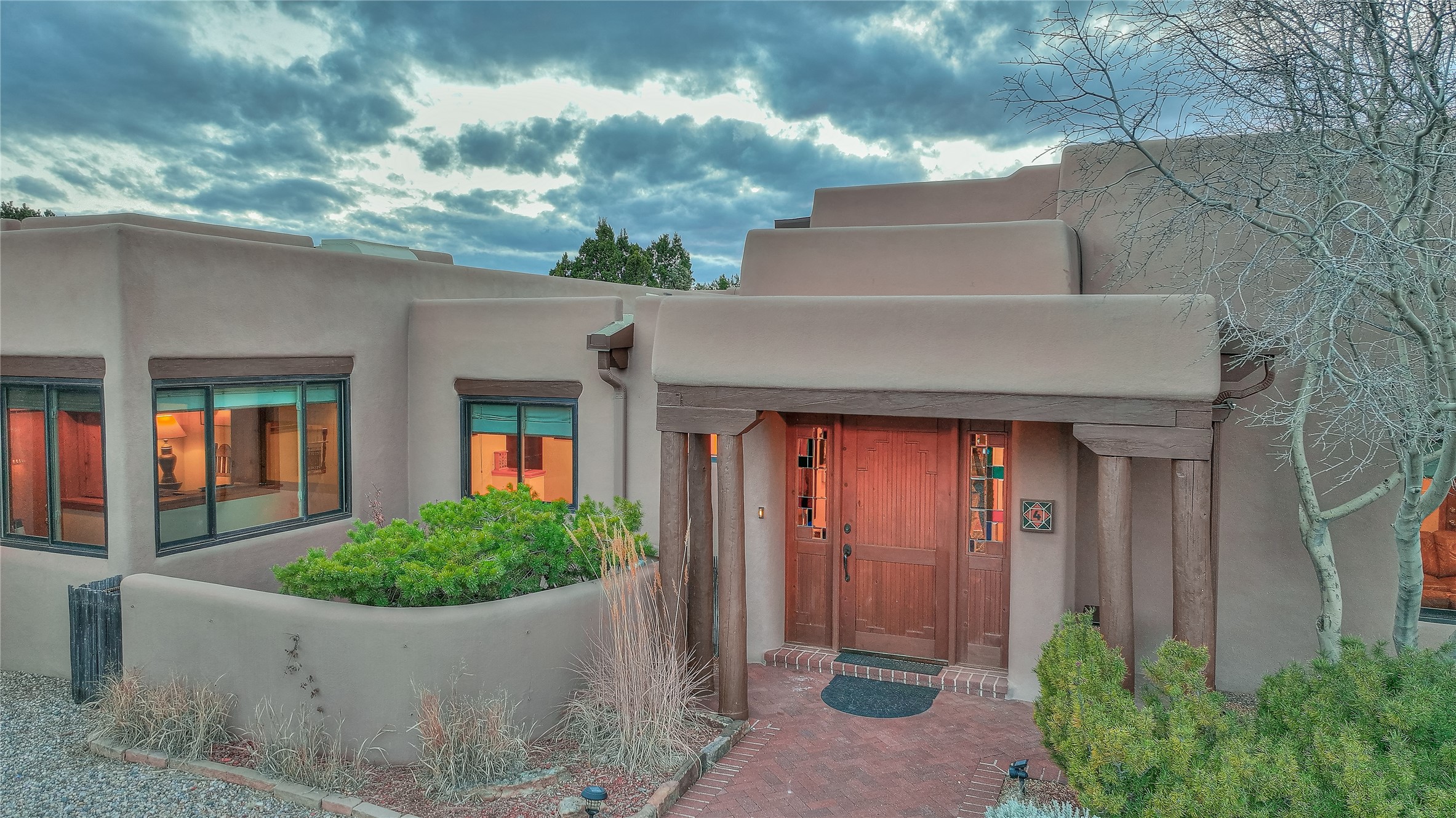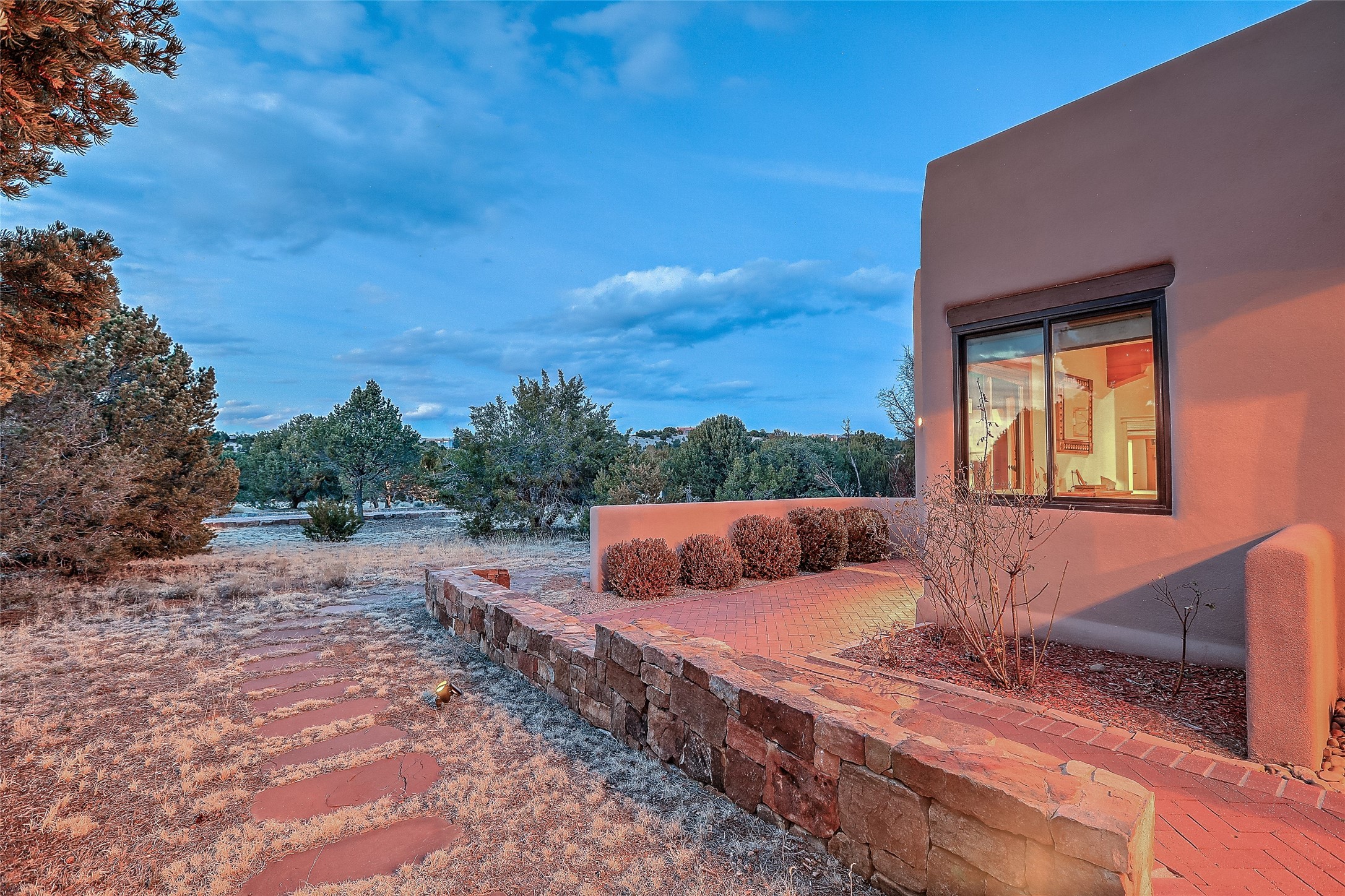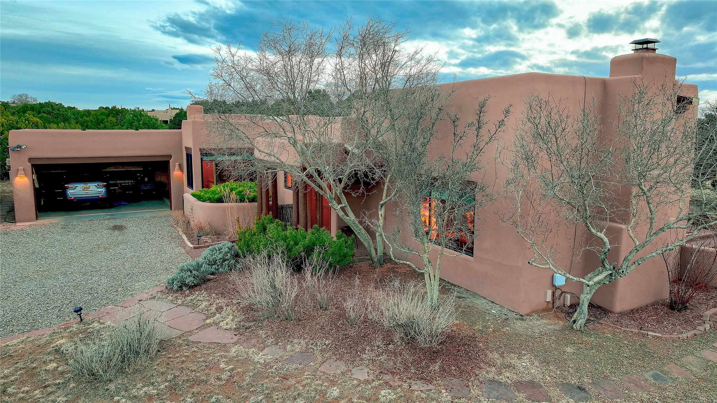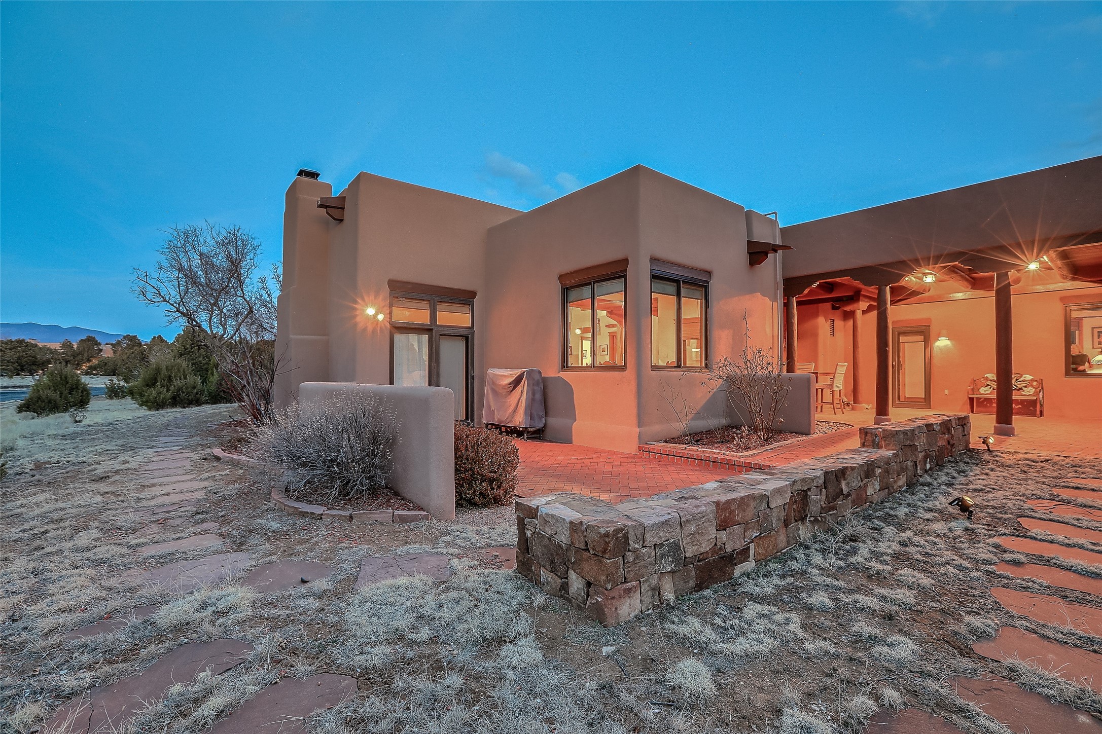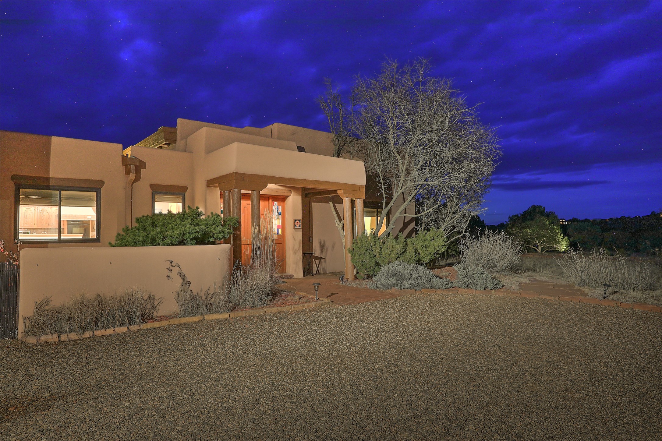 Welcome to lovely 4 Morning Glory! Salva Tierra home with Sangre views and sunset beauty. This is a SHOWCASE HOME. Thoughtful architectural custom design and handcrafted woodwork throughout with lots of natural light, this single level home (two steps to living room) is in absolutely pristine condition. Spacious master suite with kiva fireplace and sparkly custom bathroom near well planned powder room and walk in closet. Love to cook? This is a great space for entertaining! The kitchen is more than a kitchen... it is a welcoming place to spend time with loved ones, with a wonderful layout and is cozy yet also has generous counter and cabinet space plus an eat-in breakfast nook that is a favorite spot. Formal dining area too with a walk out dining area under the back portal. Private and quiet third bedroom with fireplace, has great natural light & can also be a bright office or studio space with a walk out door to access the back portal. Beautifully landscaped & low maintenance gardens. Multiple outdoor patio spaces; with a back sunset portal and a walled master bedroom patio that also has garage access and access to the yard. All rooms have outside access. This makes indoor/outdoor living truly accessible and enjoyable! Forced air heating system + AIR CONDITIONING. Newer Andersen windows & newer roof coating. Dream 2 car garage with lots of built-in storage keeps everything neat & organized. Sonos sound system stays too!