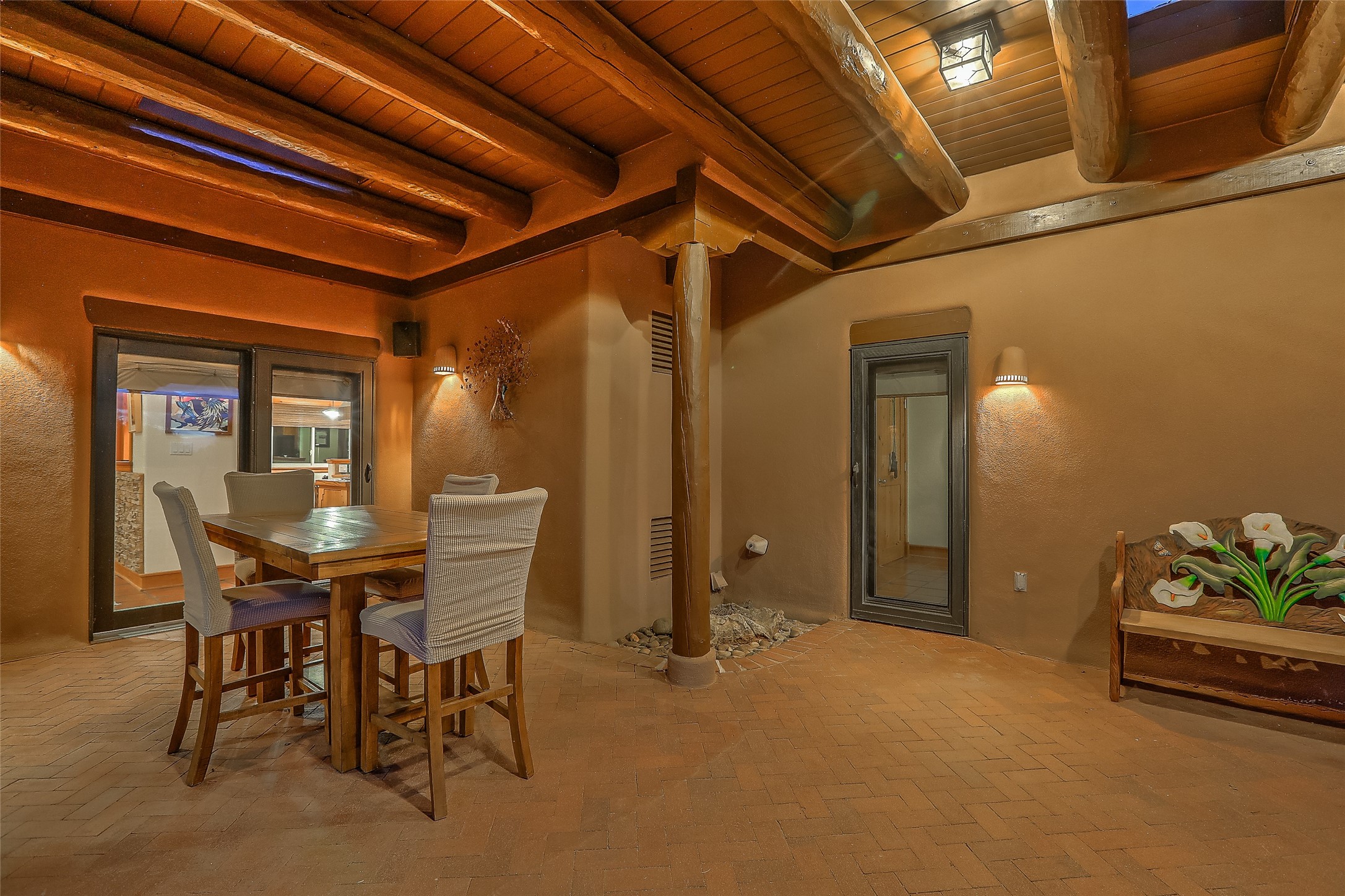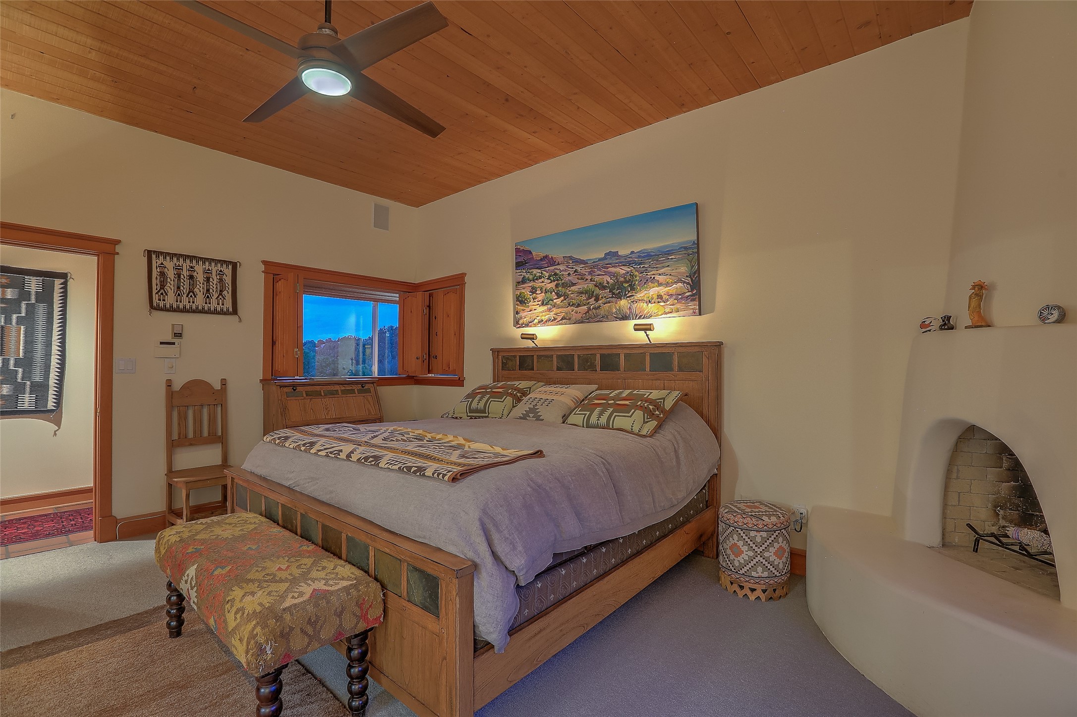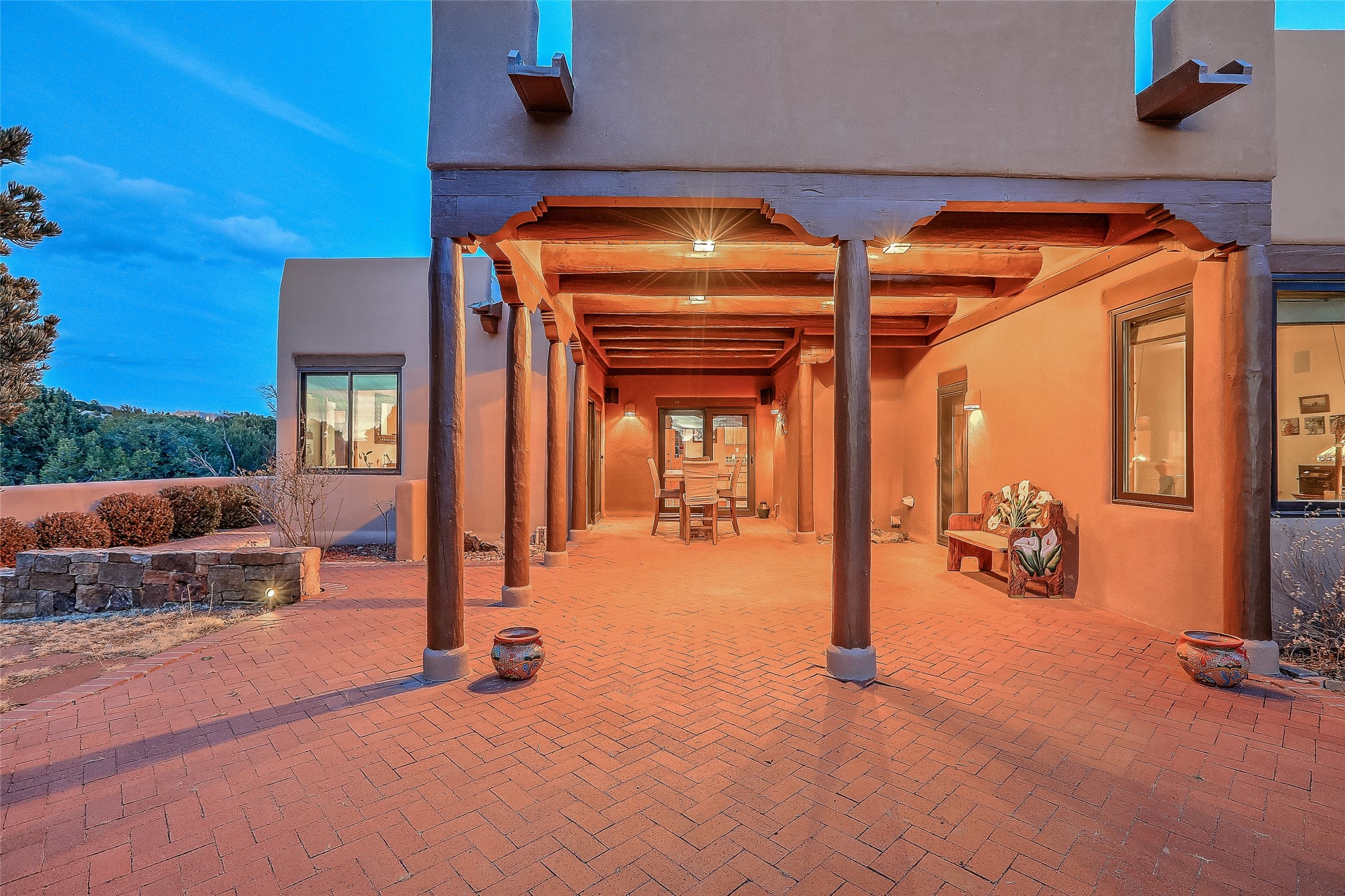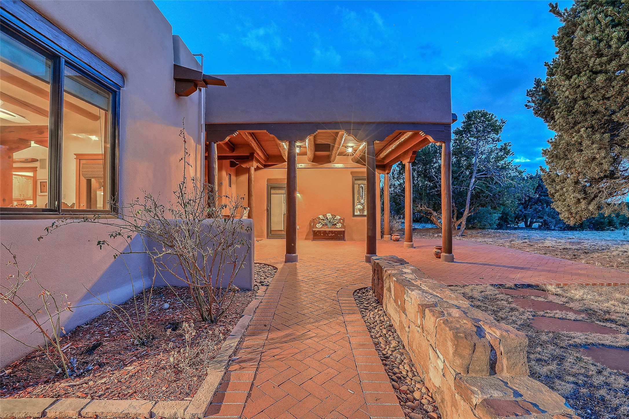 Welcome to lovely 4 Morning Glory! Salva Tierra home with Sangre views and sunset beauty. This is a SHOWCASE HOME. Thoughtful architectural custom design and handcrafted woodwork throughout with lots of natural light, this single level home (two steps to living room) is in absolutely pristine condition. Spacious master suite with kiva fireplace and sparkly custom bathroom near well planned powder room and walk in closet. Love to cook? This is a great space for entertaining! The kitchen is more than a kitchen... it is a welcoming place to spend time with loved ones, with a wonderful layout and is cozy yet also has generous counter and cabinet space plus an eat-in breakfast nook that is a favorite spot. Formal dining area too with a walk out dining area under the back portal. Private and quiet third bedroom with fireplace, has great natural light & can also be a bright office or studio space with a walk out door to access the back portal. Beautifully landscaped & low maintenance gardens. Multiple outdoor patio spaces; with a back sunset portal and a walled master bedroom patio that also has garage access and access to the yard. All rooms have outside access. This makes indoor/outdoor living truly accessible and enjoyable! Forced air heating system + AIR CONDITIONING. Newer Andersen windows & newer roof coating. Dream 2 car garage with lots of built-in storage keeps everything neat & organized. Sonos sound system stays too!