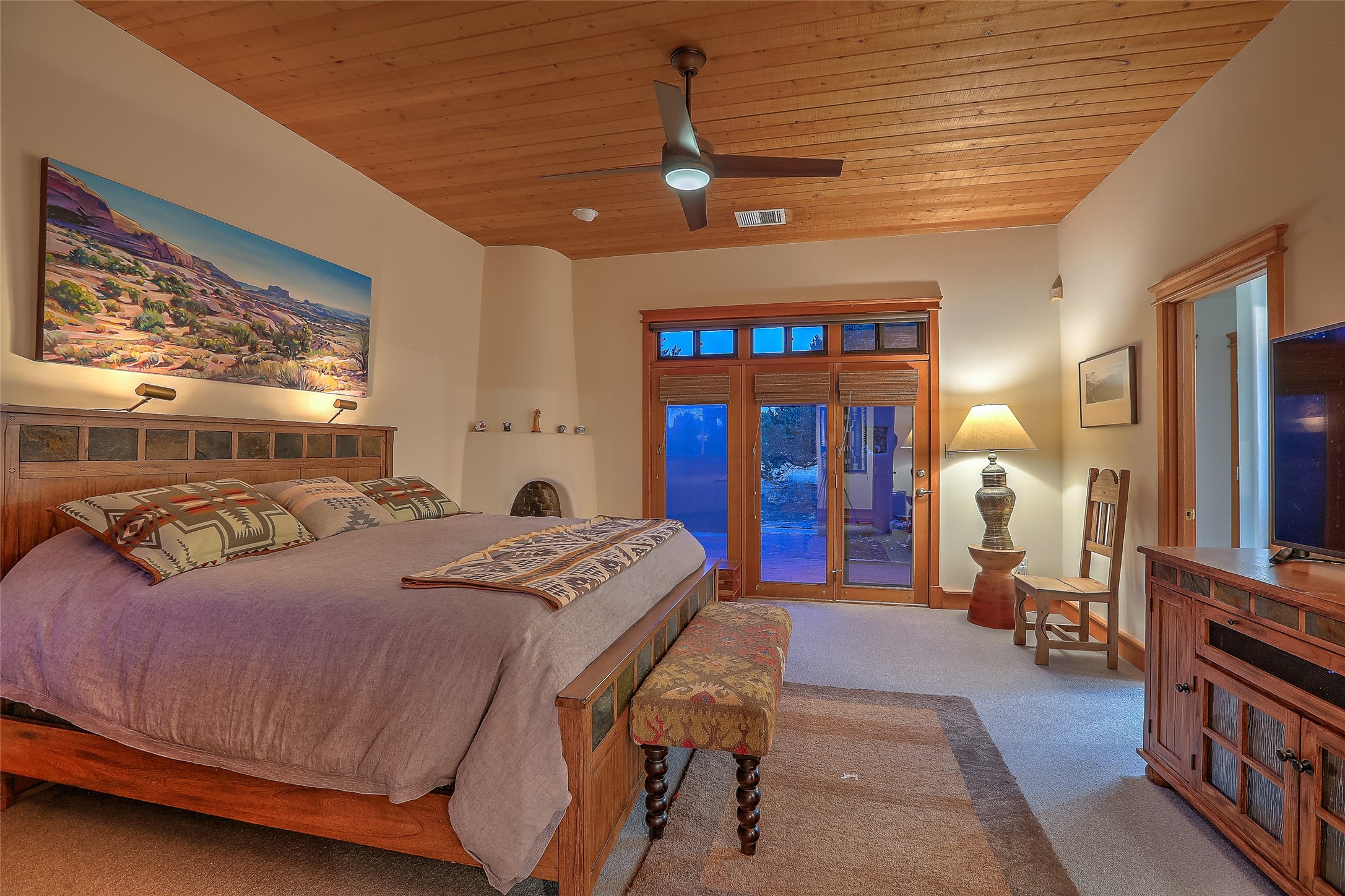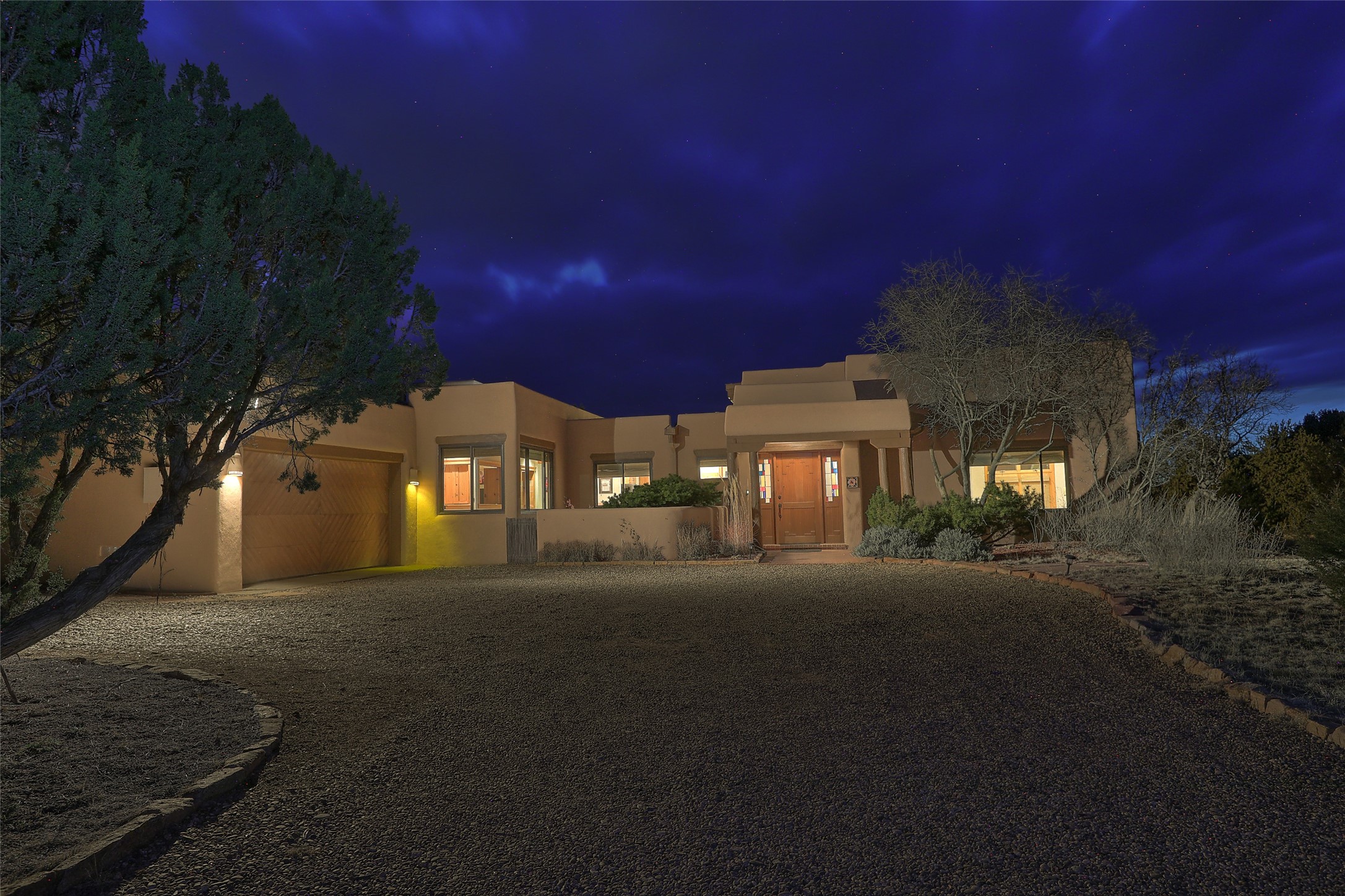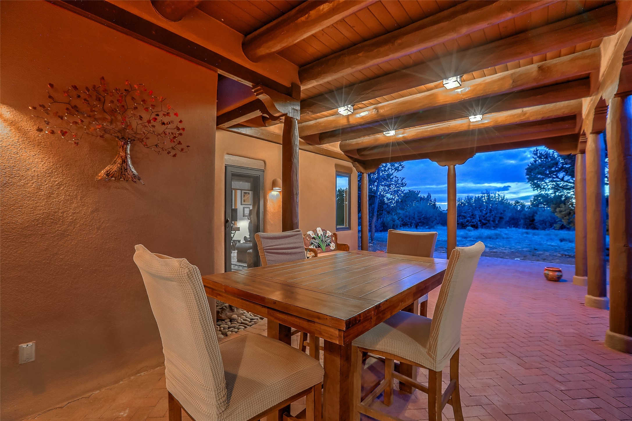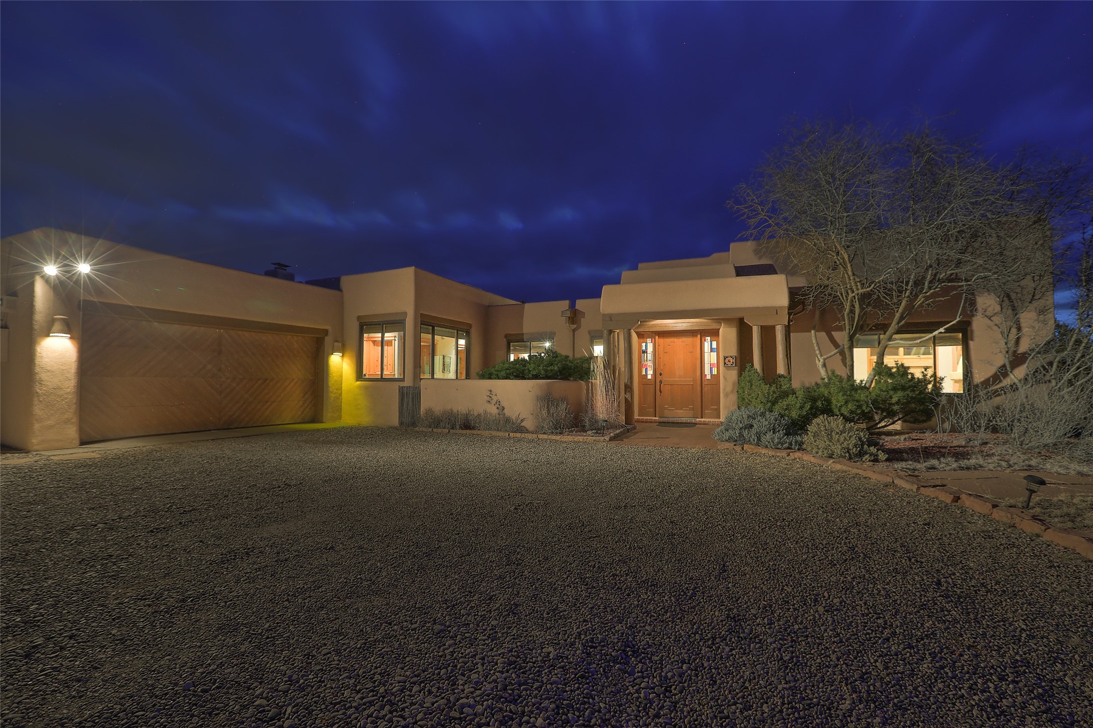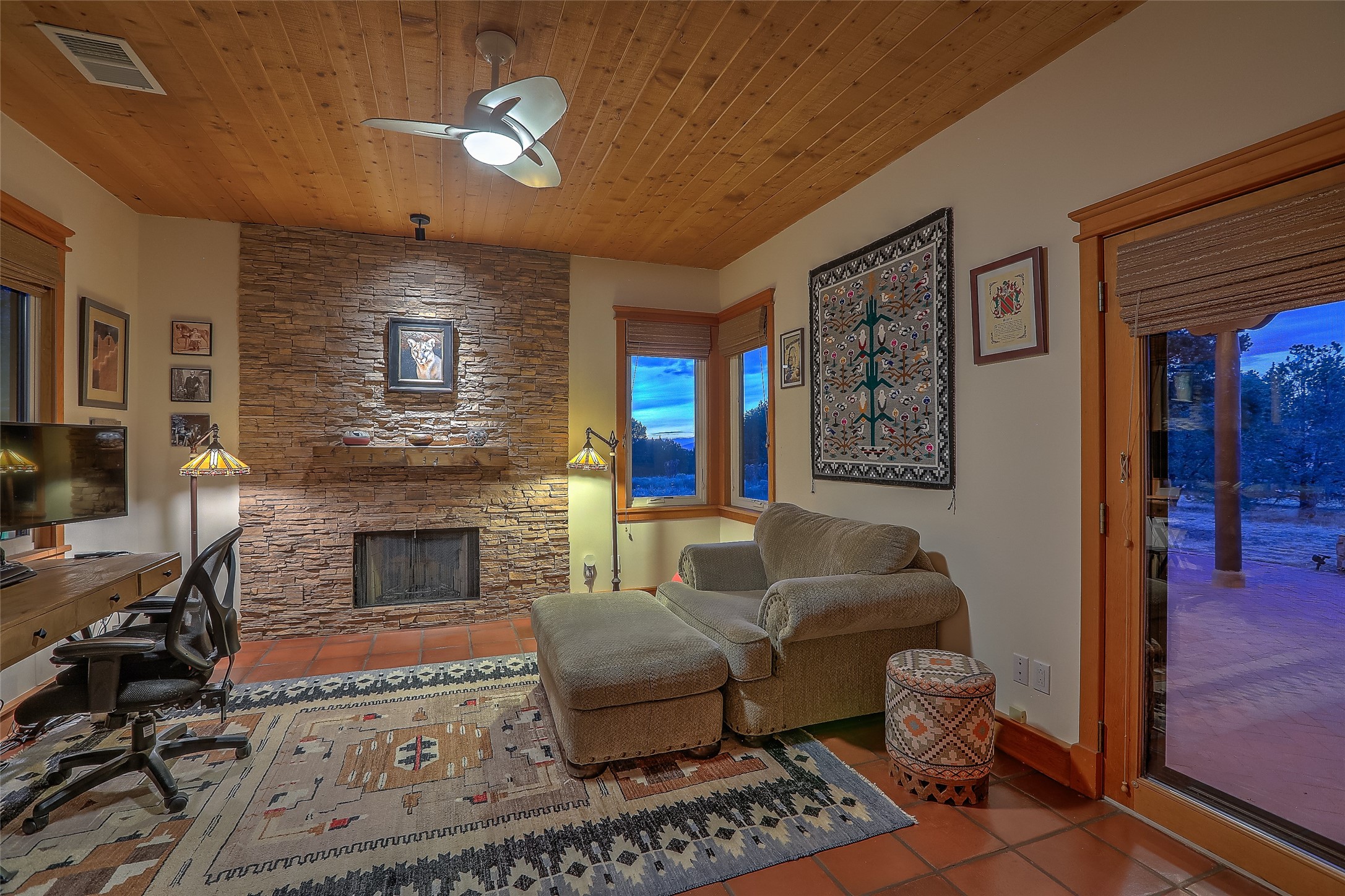 Welcome to lovely 4 Morning Glory! Salva Tierra home with Sangre views and sunset beauty. This is a SHOWCASE HOME. Thoughtful architectural custom design and handcrafted woodwork throughout with lots of natural light, this single level home (two steps to living room) is in absolutely pristine condition. Spacious master suite with kiva fireplace and sparkly custom bathroom near well planned powder room and walk in closet. Love to cook? This is a great space for entertaining! The kitchen is more than a kitchen... it is a welcoming place to spend time with loved ones, with a wonderful layout and is cozy yet also has generous counter and cabinet space plus an eat-in breakfast nook that is a favorite spot. Formal dining area too with a walk out dining area under the back portal. Private and quiet third bedroom with fireplace, has great natural light & can also be a bright office or studio space with a walk out door to access the back portal. Beautifully landscaped & low maintenance gardens. Multiple outdoor patio spaces; with a back sunset portal and a walled master bedroom patio that also has garage access and access to the yard. All rooms have outside access. This makes indoor/outdoor living truly accessible and enjoyable! Forced air heating system + AIR CONDITIONING. Newer Andersen windows & newer roof coating. Dream 2 car garage with lots of built-in storage keeps everything neat & organized. Sonos sound system stays too!
