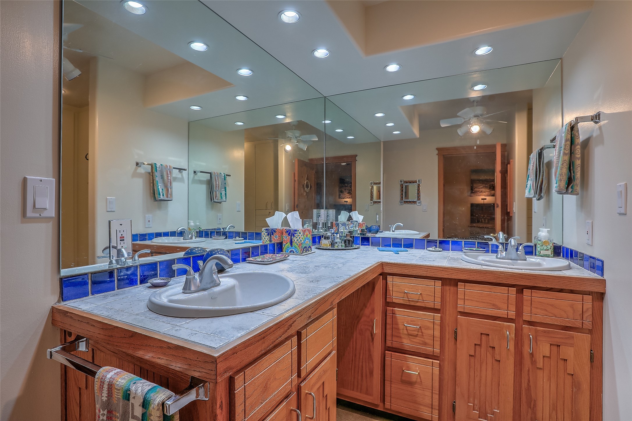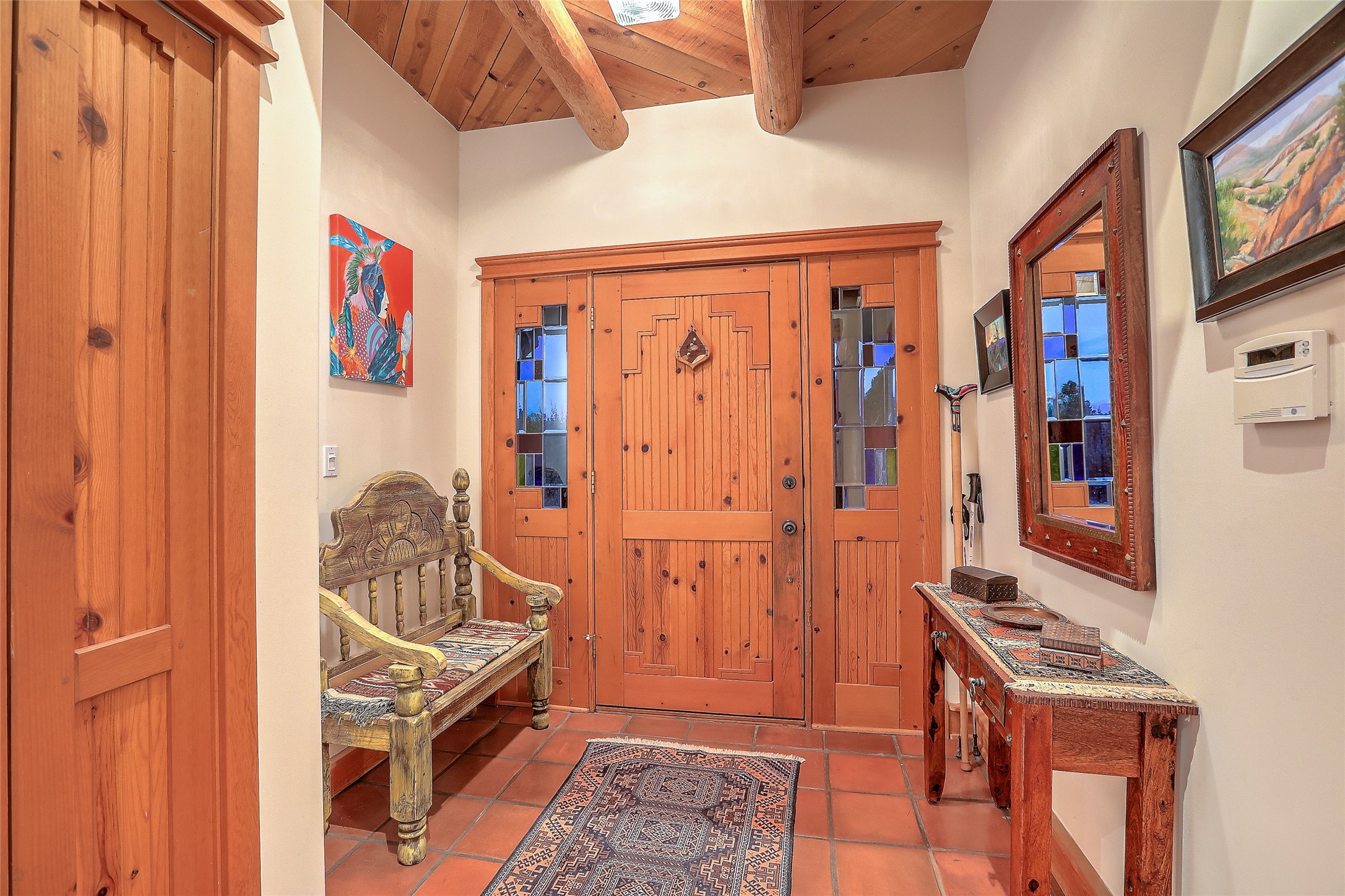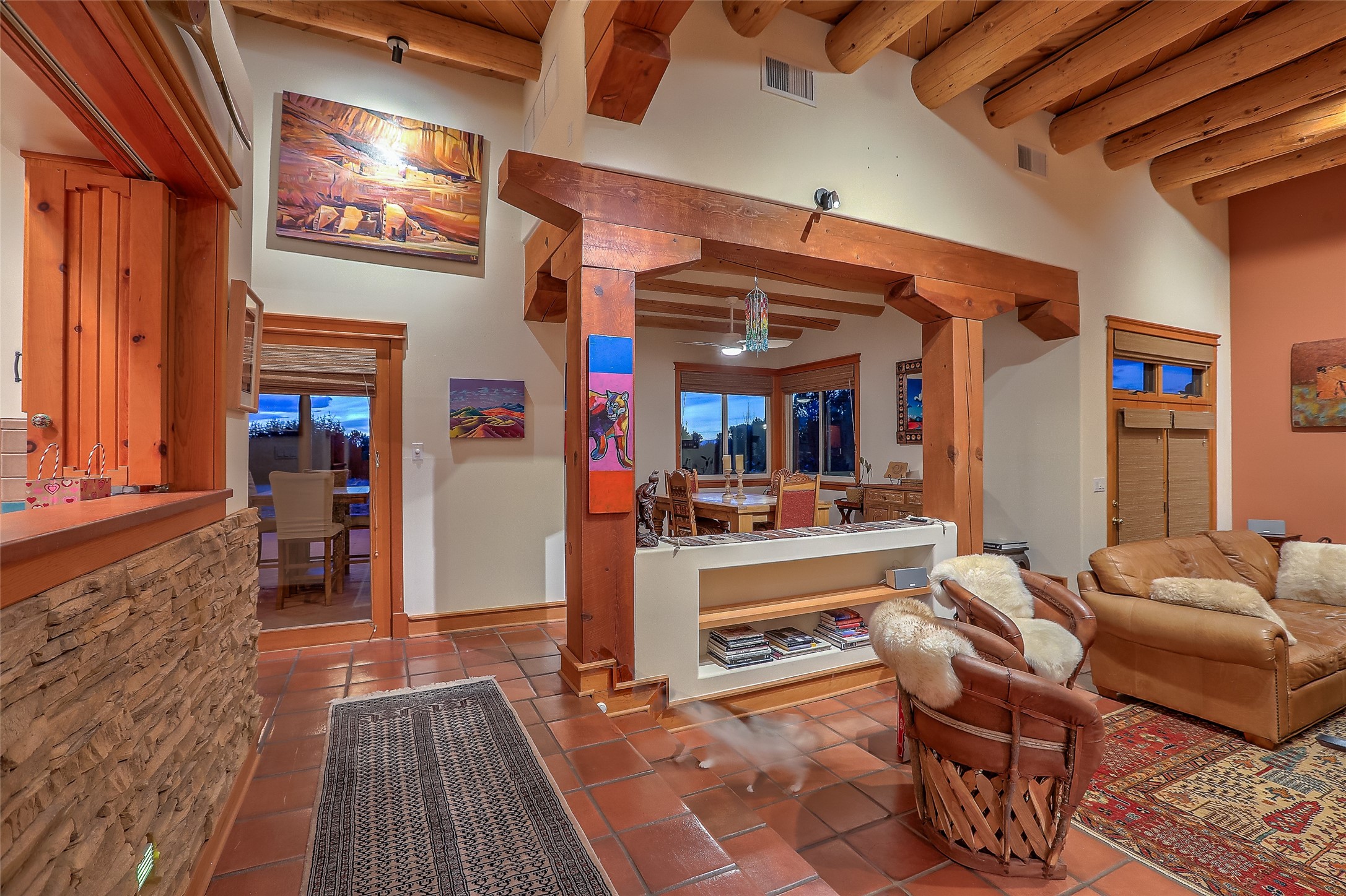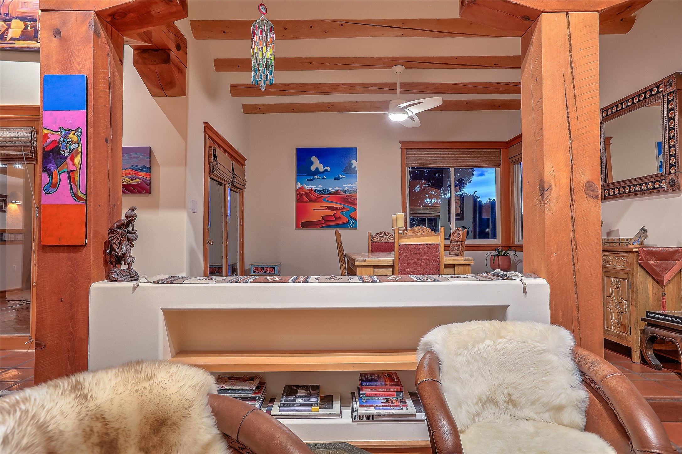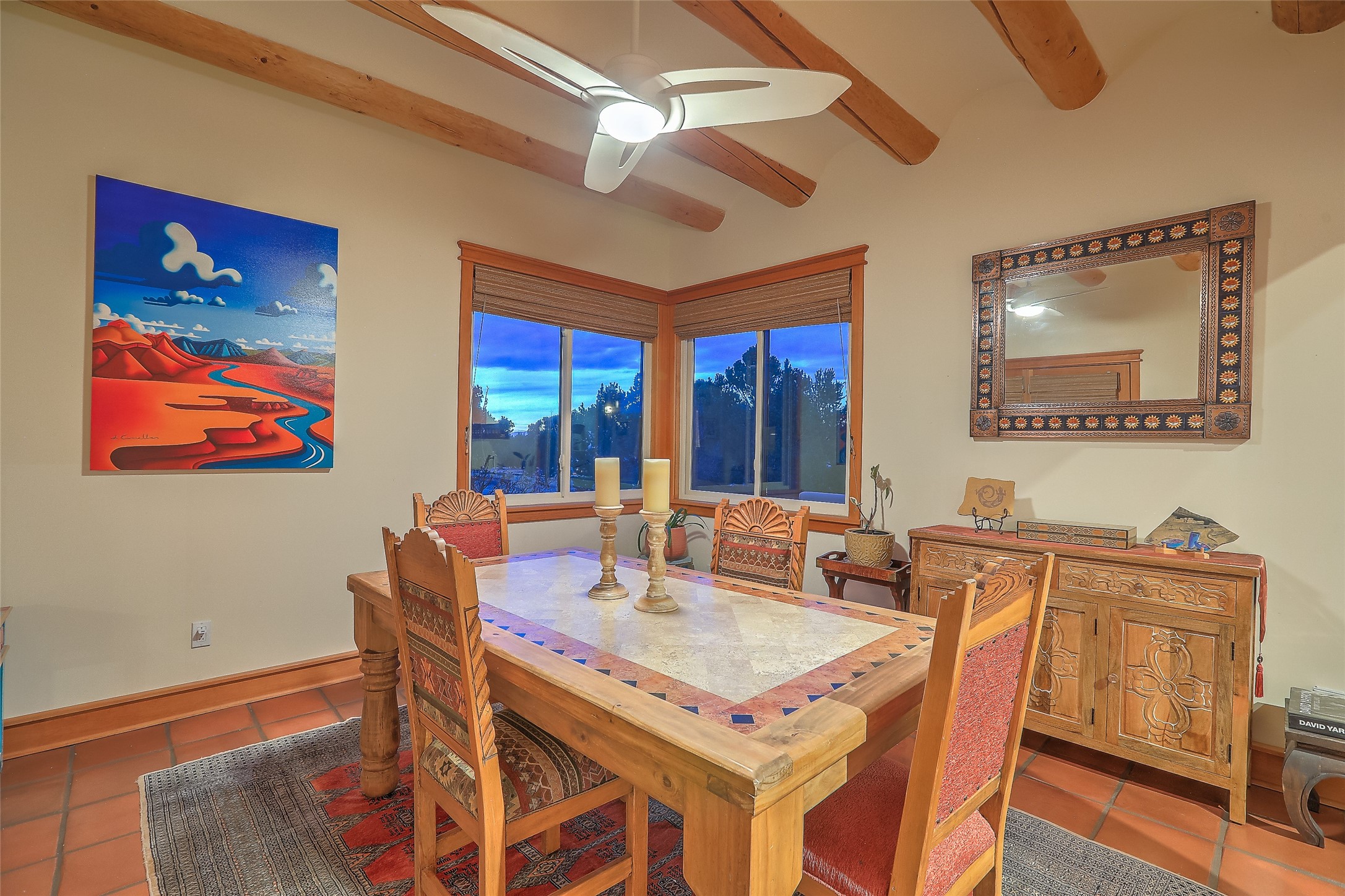 Welcome to lovely 4 Morning Glory! Salva Tierra home with Sangre views and sunset beauty. This is a SHOWCASE HOME. Thoughtful architectural custom design and handcrafted woodwork throughout with lots of natural light, this single level home (two steps to living room) is in absolutely pristine condition. Spacious master suite with kiva fireplace and sparkly custom bathroom near well planned powder room and walk in closet. Love to cook? This is a great space for entertaining! The kitchen is more than a kitchen... it is a welcoming place to spend time with loved ones, with a wonderful layout and is cozy yet also has generous counter and cabinet space plus an eat-in breakfast nook that is a favorite spot. Formal dining area too with a walk out dining area under the back portal. Private and quiet third bedroom with fireplace, has great natural light & can also be a bright office or studio space with a walk out door to access the back portal. Beautifully landscaped & low maintenance gardens. Multiple outdoor patio spaces; with a back sunset portal and a walled master bedroom patio that also has garage access and access to the yard. All rooms have outside access. This makes indoor/outdoor living truly accessible and enjoyable! Forced air heating system + AIR CONDITIONING. Newer Andersen windows & newer roof coating. Dream 2 car garage with lots of built-in storage keeps everything neat & organized. Sonos sound system stays too!
