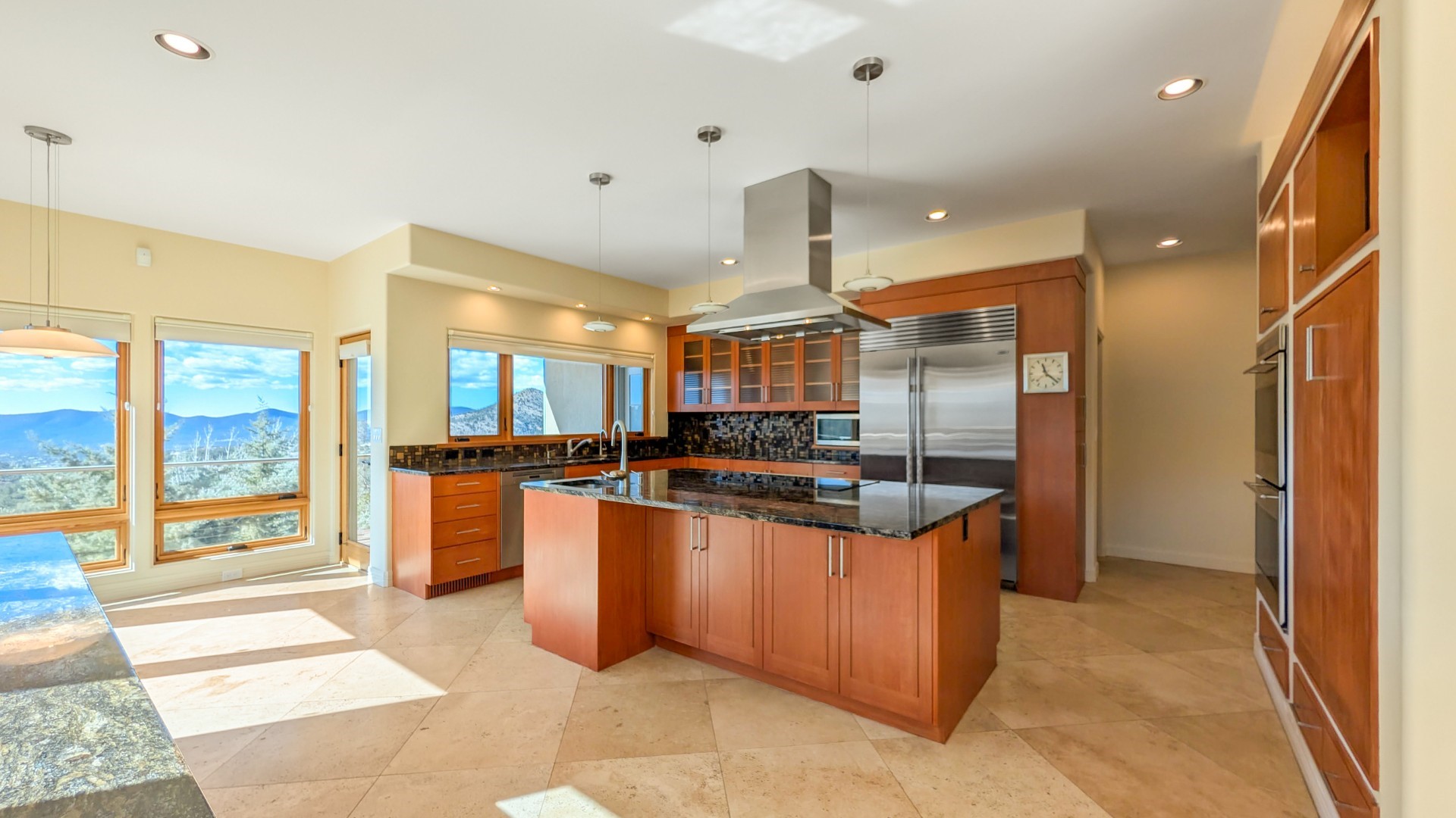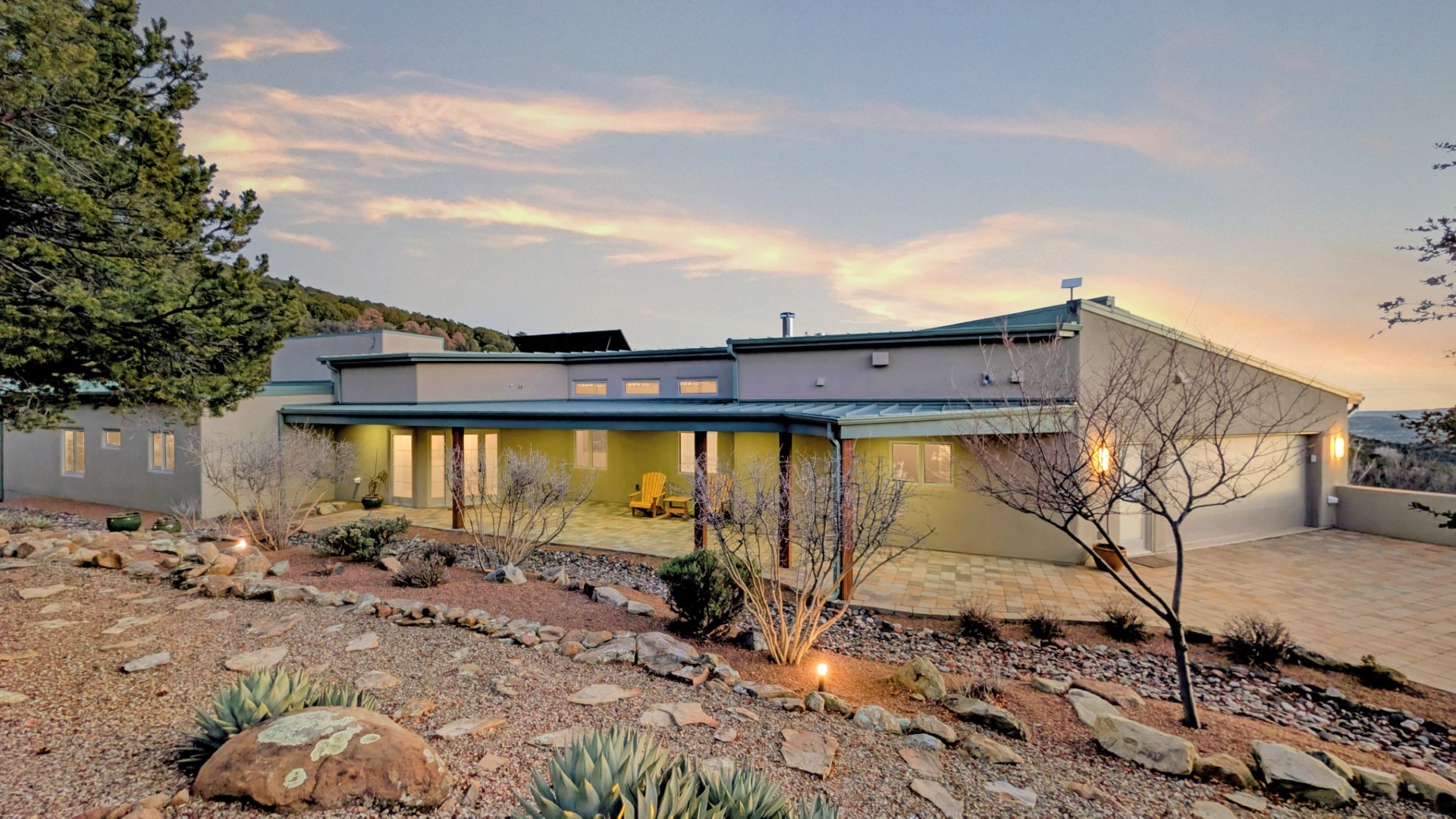This luxury home will exceed your every expectation; the main level features single floor living with a spacious living room (the earth tone travertine stone provides a timeless elegance), dining room, kitchen, powder room, laundry, office (with two work stations) and primary suite boasting two private baths with dressing area and each with walk in closets, gas fireplace, and a private patio. The lower level (great southern exposure and natural light) is serviced by a hotel-quality elevator. The lower level has a sauna, fitness center, woodworking shop/studio, two separate guest suites with private bathrooms and ample storage. There are several decks on both levels to enjoy the stunning mountain views. The 9.5 kW solar PV system will handle all your electric, heating, and cooling needs. Beautiful mountain views, adjacent to green space, quiet and secluded and only a few miles from town.