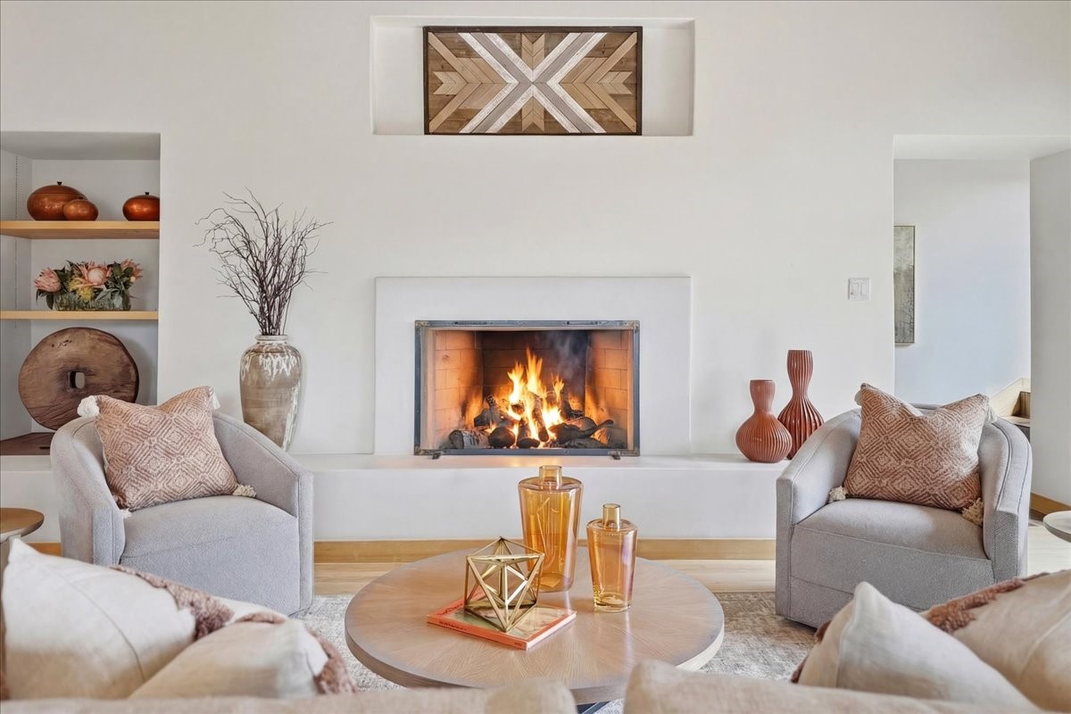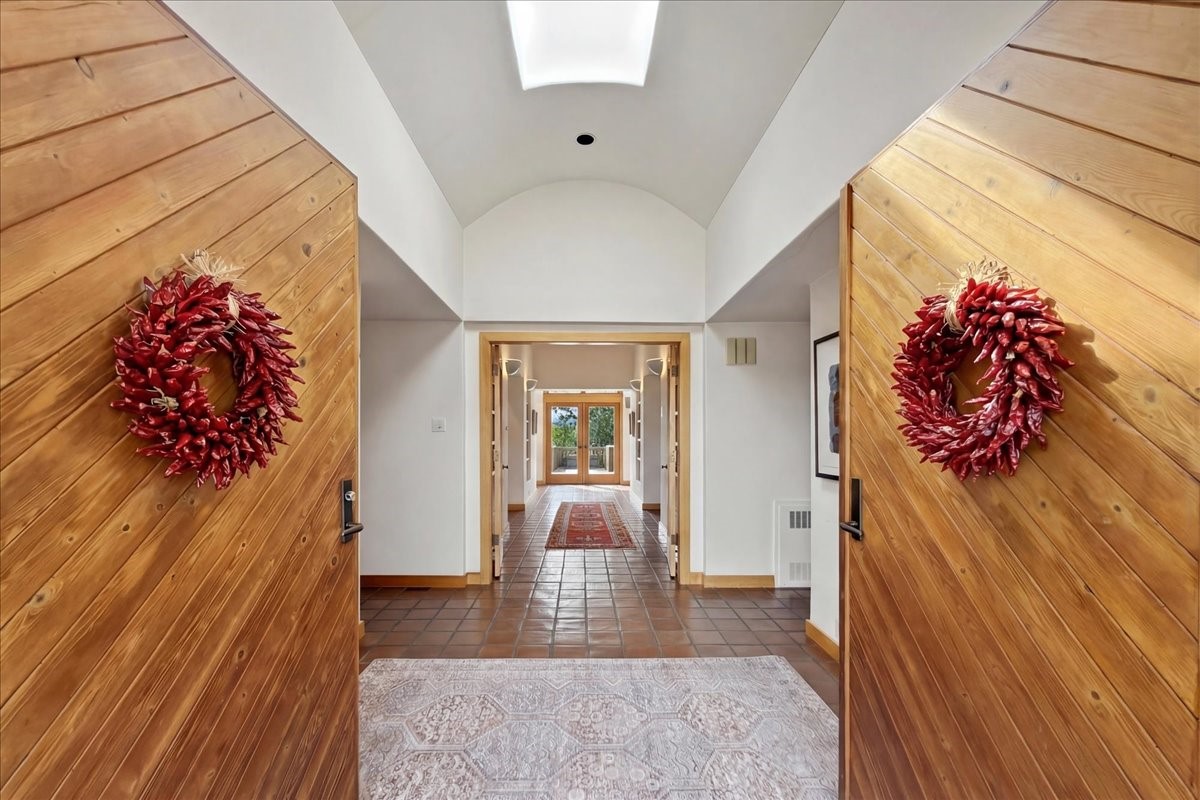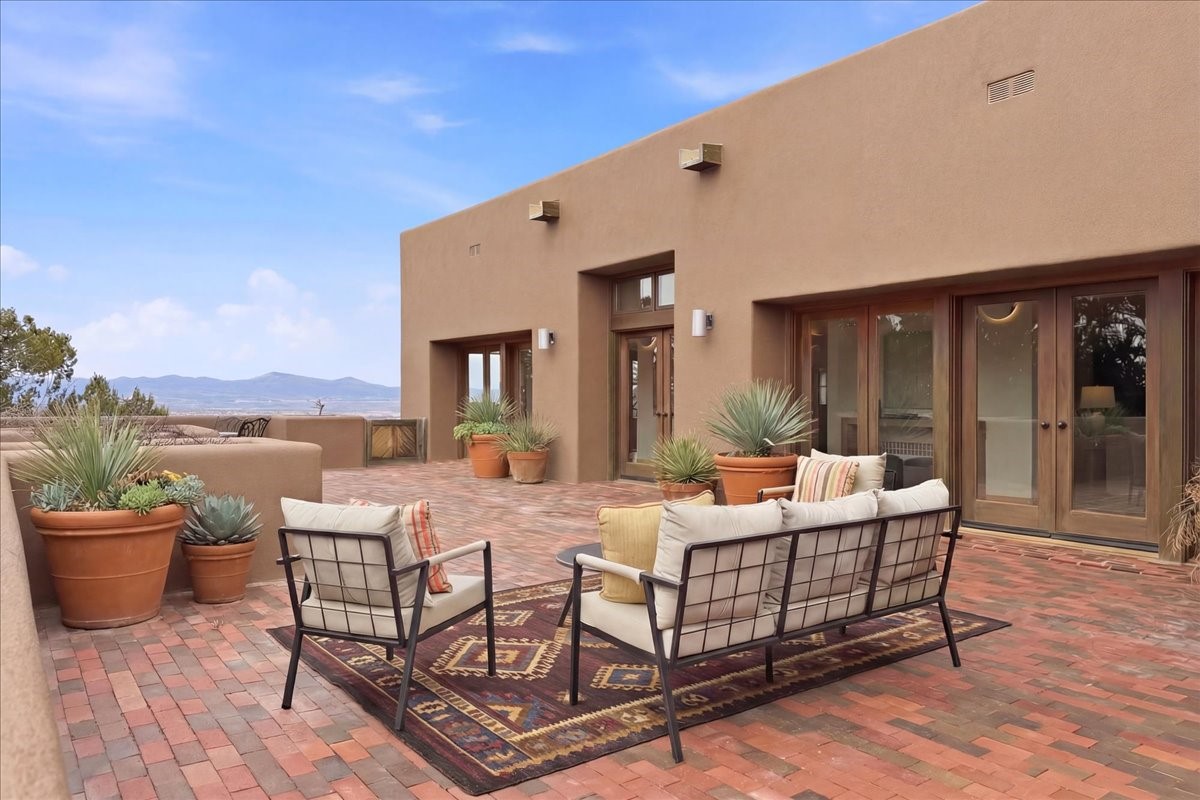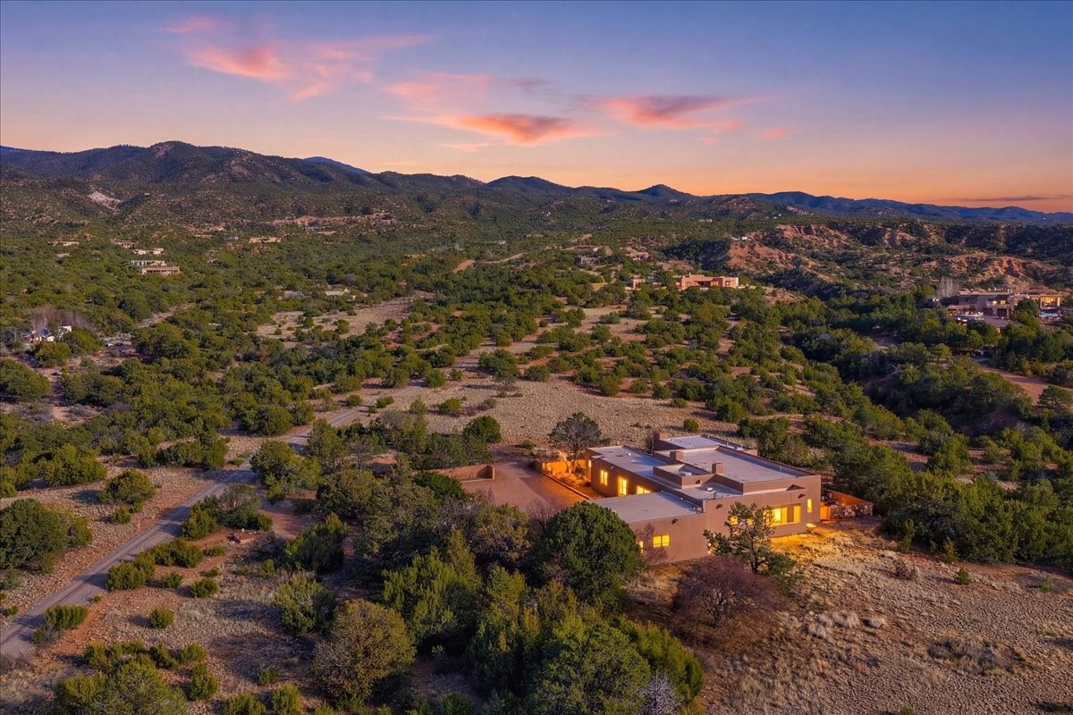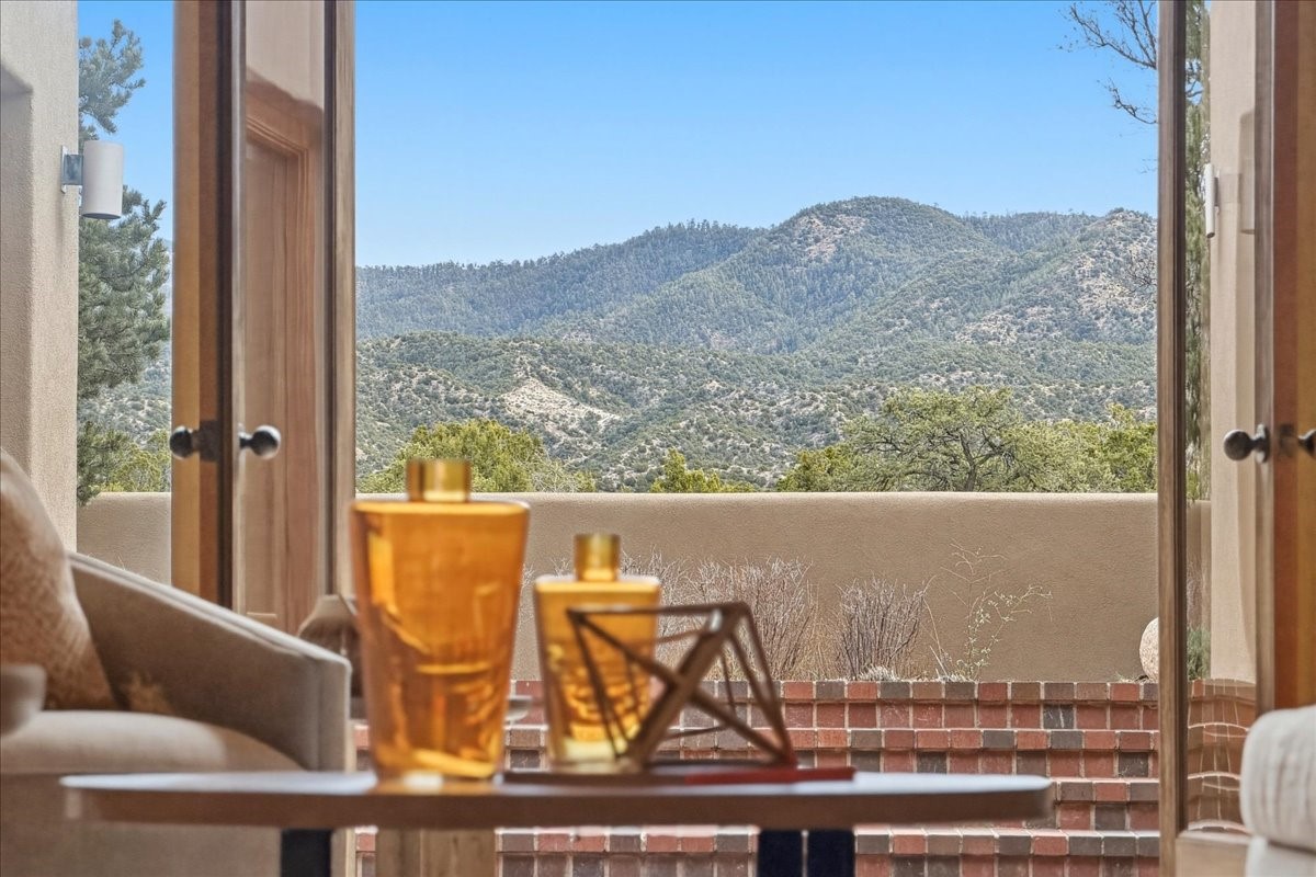 This inviting, primarily single-level residence was built by the developer of Los Caminitos in Tesuque and sits on over 6 acres of land, offering sweeping Sangre and Jemez views from multiple patios and rooms. A rare combination of seclusion and convenience -- just 15 minutes from downtown Santa Fe -- this home is on the market for the first time ever. At 3,800 plus square feet, the home has 4 bedrooms and 2.5 baths, a gracious central hall that leads to the spacious living room with high ceilings, a grand fireplace, and a large eastern-facing patio framed by Sangre Mountain views. A large dining room opens to a well-appointed kitchen and a patio area with Jemez views. Large southern and eastern patios offer dramatic vistas, creating ideal spaces for al fresco entertaining and quiet morning coffee. The primary suite features a traditional Kiva fireplace, a large ensuite bathroom, and a well-appointed dressing area. Nicely separated from the primary, two additional well-sized guest rooms provide privacy and comfort for guests with a shared bath. The oversized two-car garage opens directly into the kitchen and utility room, enhancing everyday living and convenience with ample storage. The home has forced air heat and mini splits for cooling and supplemental heating, ensuring year-round comfort. Five minutes away is the five-star Four Seasons Encantado Resort and Tesuque Village is nearby. This property presents a compelling opportunity to own a private gated Tesuque retreat with expansive views and close proximity to Santa Fe's cultural heart. Los Caminitos is situated on 1,400 rolling acres. Visit their website at loscaminitos.com.