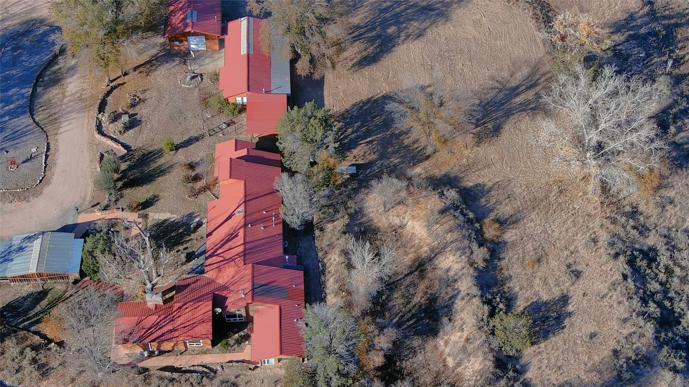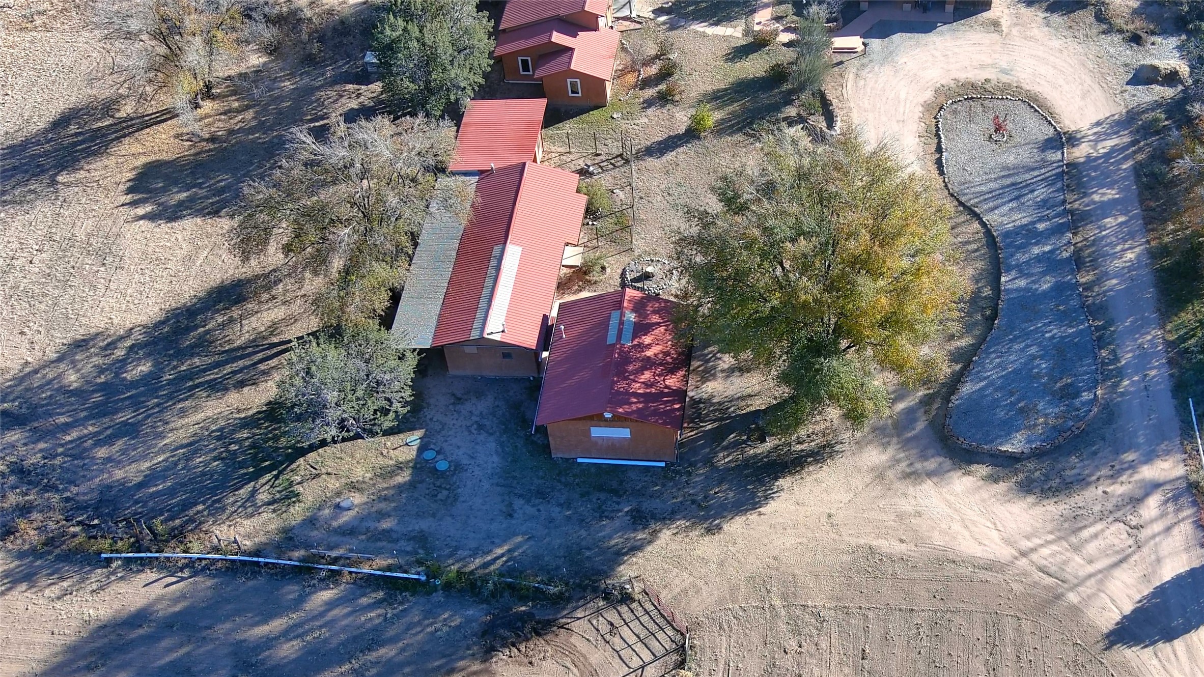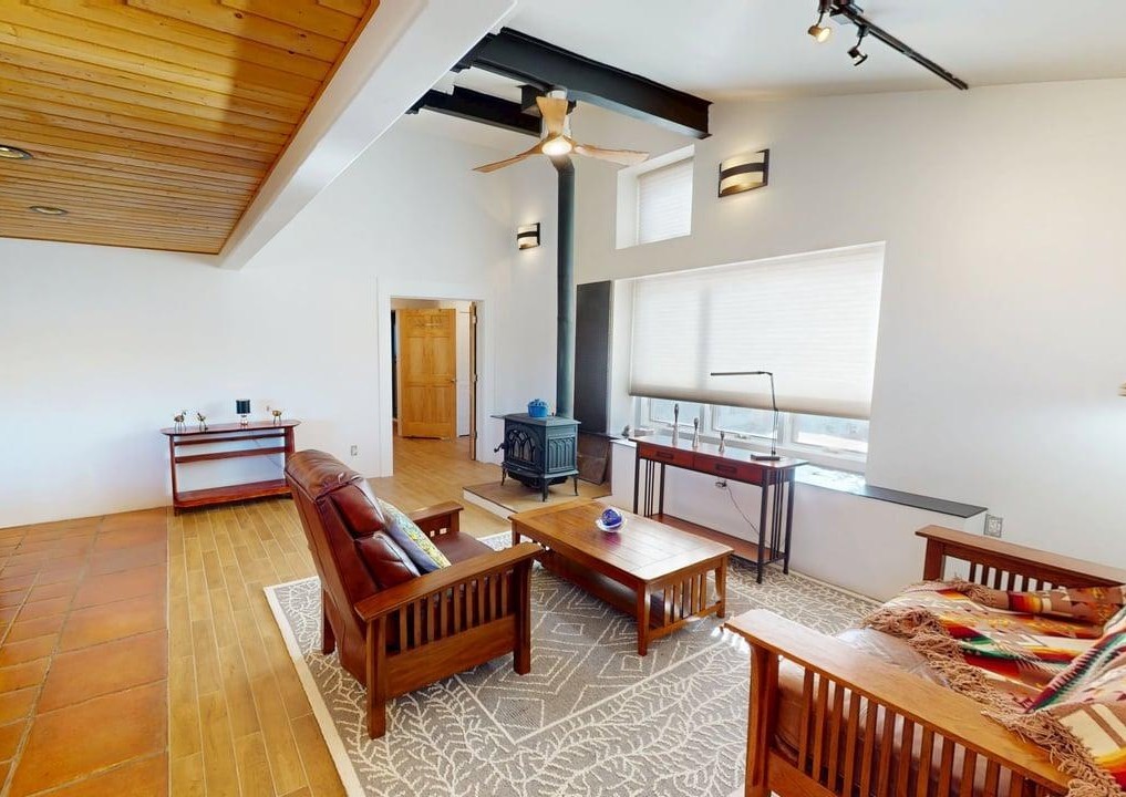 Experience the best of both worlds in this classic Northern New Mexico adobe, where timeless architecture meets a contemporary, light-filled interior. Spanning 3,237 sq. ft., the home offers 3 bedrooms, 2 baths, and an inviting upstairs loft with generous storage. The residence features a chef's kitchen, soaring ceilings, and a dining/family room warmed by a wood-burning stove. The large primary en-suite includes a spacious walk-in closet system, a luxurious soaking tub, and a separate shower. The bedroom's high ceilings and walk-out access to the garden create a private retreat. The expansive living room--anchored by a wood-burning fireplace--can be configured as both a living space and formal dining area. A 231 sq. ft. front patio provides an exceptional setting for entertaining or simply enjoying the outdoors. Several versatile outbuildings complement the main home: a 2-car carport, a 1,259 sq. ft. garage/workshop with an attached studio and office, and a 720 sq. ft. adobe garage with warehouse-style roll-up doors--ideal for artists, craftsmen, hobbyists, or a home-based business. Set on a sprawling 3.17-acre lot, the offering also includes an additional 2.52-acre parcel with its own water rights and an 840 sq. ft. garage/storage building--for a combined 5.69 acres. The property is a gardener's or farmer's dream, boasting 13.26 acre-feet of irrigation water rights across the two parcels, plus a private well with water rights. With boundless potential for future development--and room for horses--this unique property is located just 20 minutes from Los Alamos or Santa Fe. Don't miss the aerial video and 3D virtual tour!