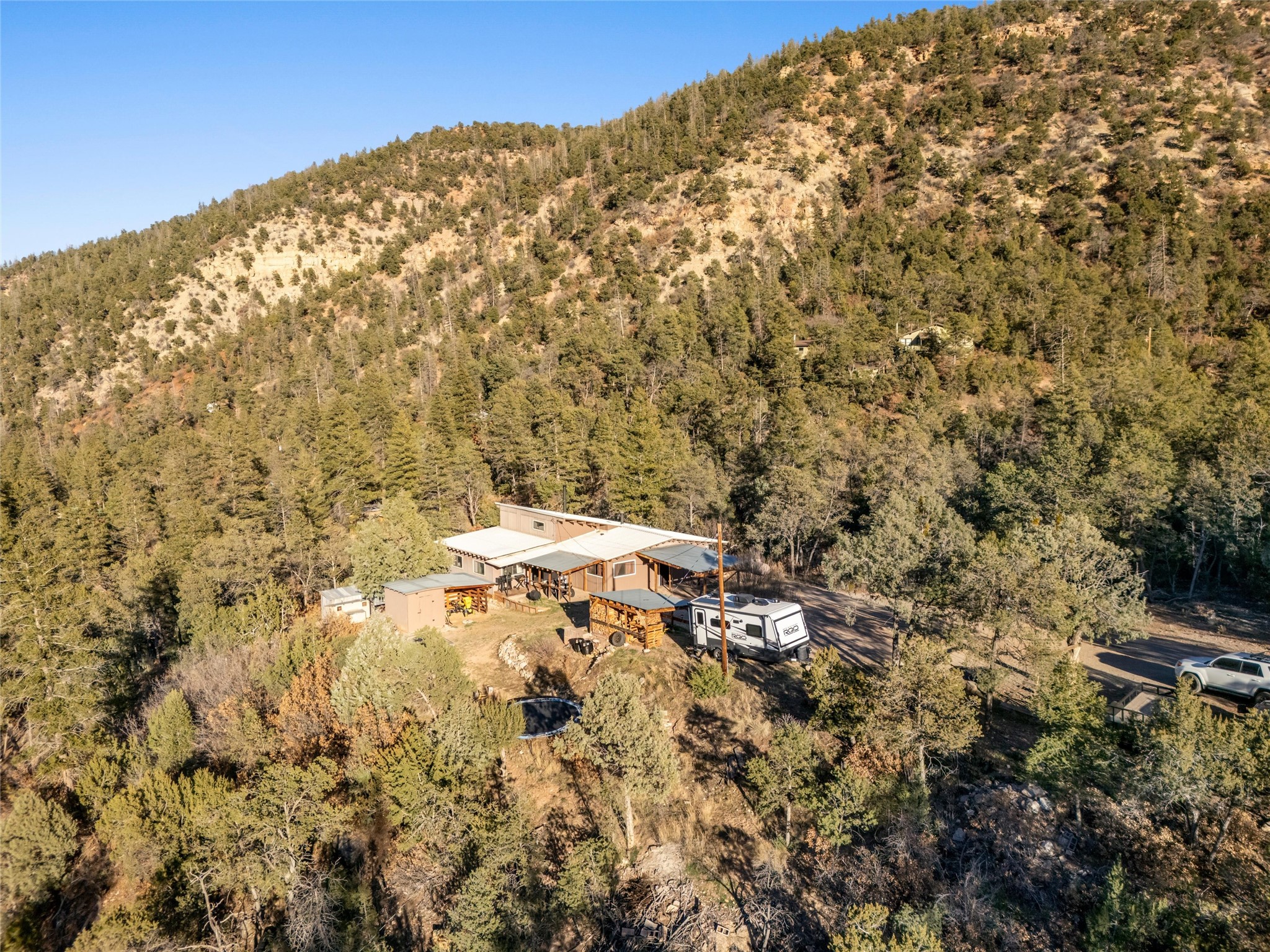 Perched on 1.22 acres in the heart of the Jemez Mountains, 750 San Diego Loop offers the space, flexibility, and scenery that make mountain living feel like a true escape, without giving up convenience. With over 2,800 square feet, this 3-bedroom, 2-bath home features a finished basement and an impressive variety of bonus spaces, including rooms ideal for an office, craft room, theater room, and a massive storage area. A flexible loft adds even more options for how you live and work.At the center of the home, you'll love the newly updated kitchen with quartz countertops, new cabinetry, refreshed appliances, and updated lighting. It is bright, modern, and ready for everyday life or entertaining.Head outside with your morning coffee and take in the breathtaking view down San Diego Canyon from the wraparound deck, where you can listen to the nearby Jemez River and watch the seasons change across the landscape. There's also plenty of covered space for vehicles and outdoor toys, along with sheds and a large chicken coop setup, perfect for those craving room to spread out and live a little more independently. With easy access to fishing, hiking trails, and the hot springs life will be a dream.Just 10 minutes from Jemez Springs and under an hour to Los Alamos or Albuquerque, this is a special mountain property you won't want to miss. **The listing also includes the adjacent Lot 33.**