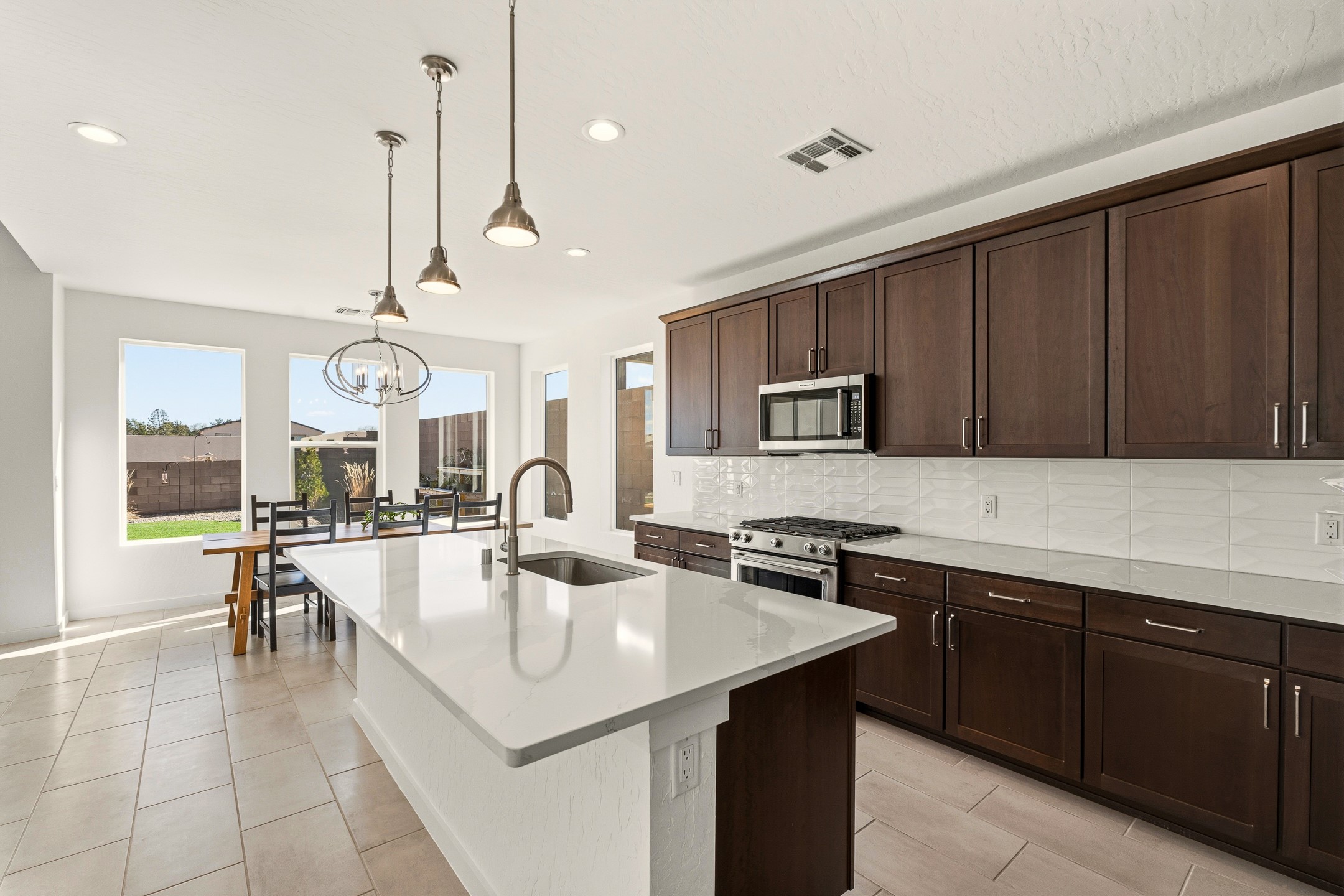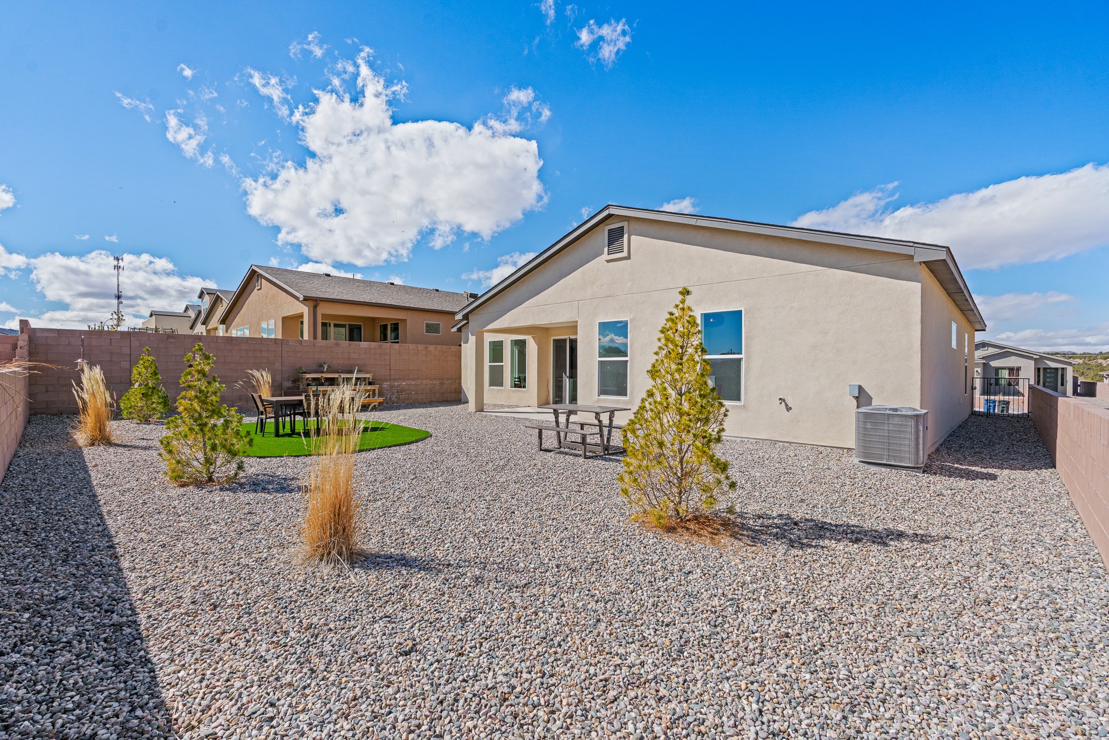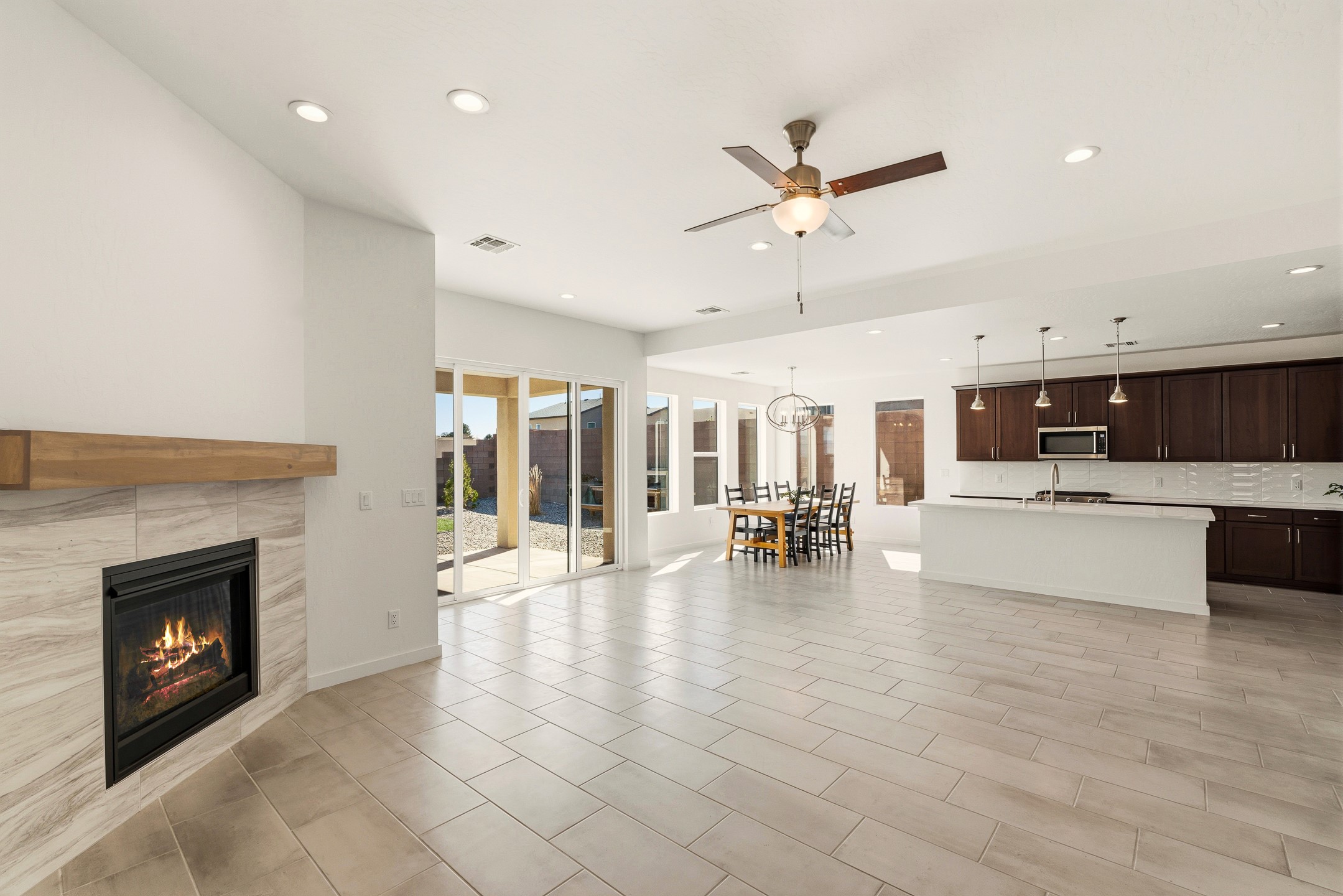 Imagine sitting in your backyard as the sun rises over the eastern horizon, the sky stretching wide above you and the quiet beauty of the landscape unfolding around you. Welcome to 142 Mirador Blvd. This beautifully designed 4-bedroom, single story home offers a bright, open layout with thoughtful finishes and inviting spaces both inside and out. The open-concept kitchen, living, and dining area is designed for comfortable everyday living and effortless entertaining. The kitchen features a large island, abundant cabinetry, beautiful Silestone® countertops, generous workspace, along with a spacious walk-in pantry providing excellent storage. Just off the kitchen you'll find a laundry room and a convenient half bath for guests. The living room is anchored by a gas fireplace, creating a warm and welcoming gathering space, while the large dining area is filled with natural light and offers plenty of room for hosting family and friends. A large sliding glass door leads to the landscaped backyard with a covered patio, perfect for outdoor dining, entertaining, and taking in the beautiful eastern views and incredible night skies. Upon entering the home, a versatile room to the left features glass French doors, making it an ideal home office, guest room, or fourth bedroom. Two additional bedrooms are located down the hallway and share a full bathroom with a double-sink vanity. The spacious primary suite offers a relaxing retreat with a large bathroom featuring a double vanity and oversized shower. The stunning primary walk-in closet is a standout feature, offering a sophisticated, boutique-style dressing experience designed for effortless organization and everyday luxury. Custom designed closet systems elevate storage in every bedroom with modern design and fully adjustable shelving for exceptional organization. The bedrooms feature Shaw luxury carpet, while the flooring throughout the main living areas and bathrooms is tile, creating a cohesive and durable finish. Additional features include 10' ceilings in the living room and primary bedroom, 9' ceilings in the kitchen and guest bedrooms, 8' doors throughout the home, a finished two-car garage, AC, and a landscaped front and back yard with drip irrigation. This home offers the perfect combination of comfort, functionality, and beautiful views, making it a wonderful place to call home. Schedule your showing today!