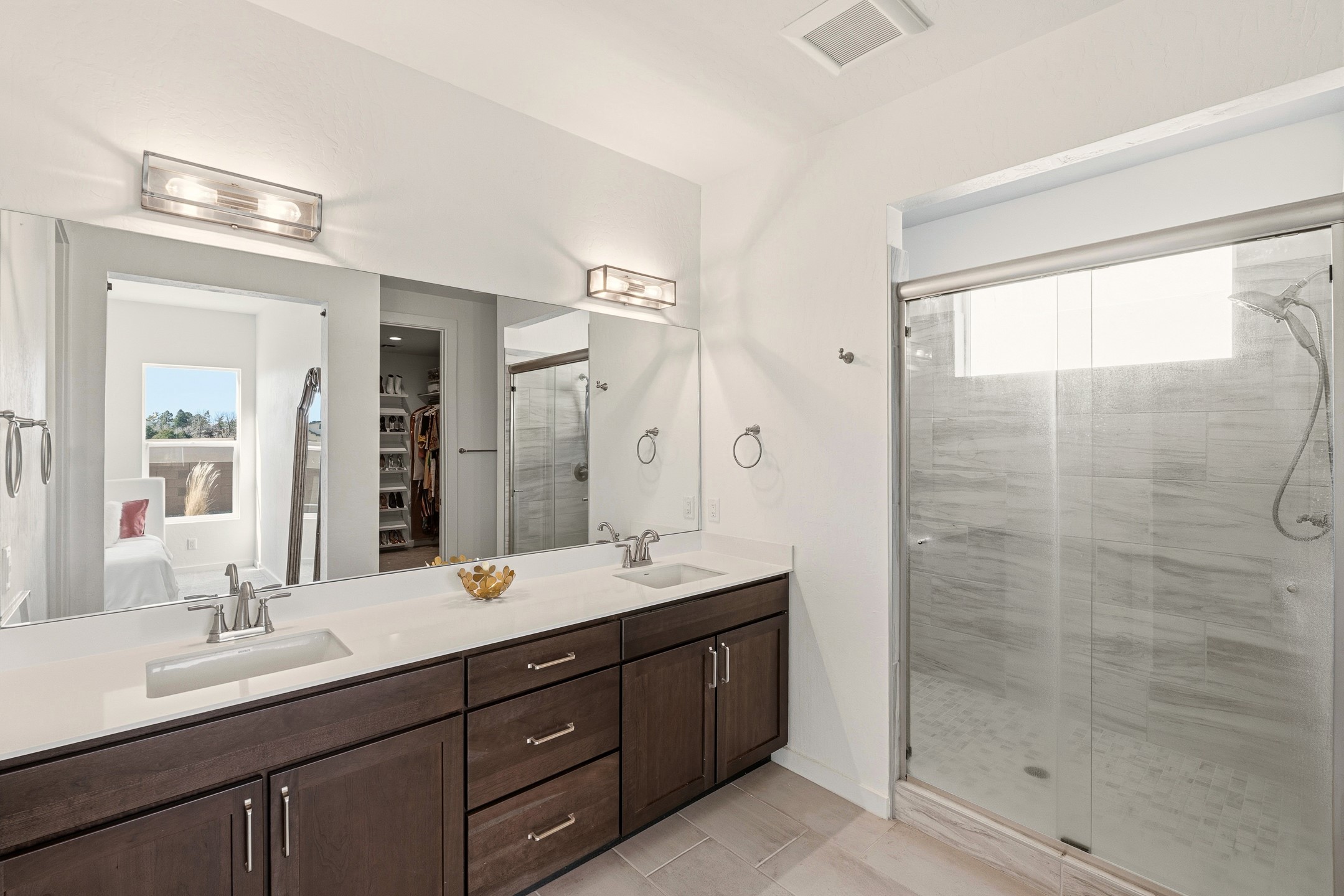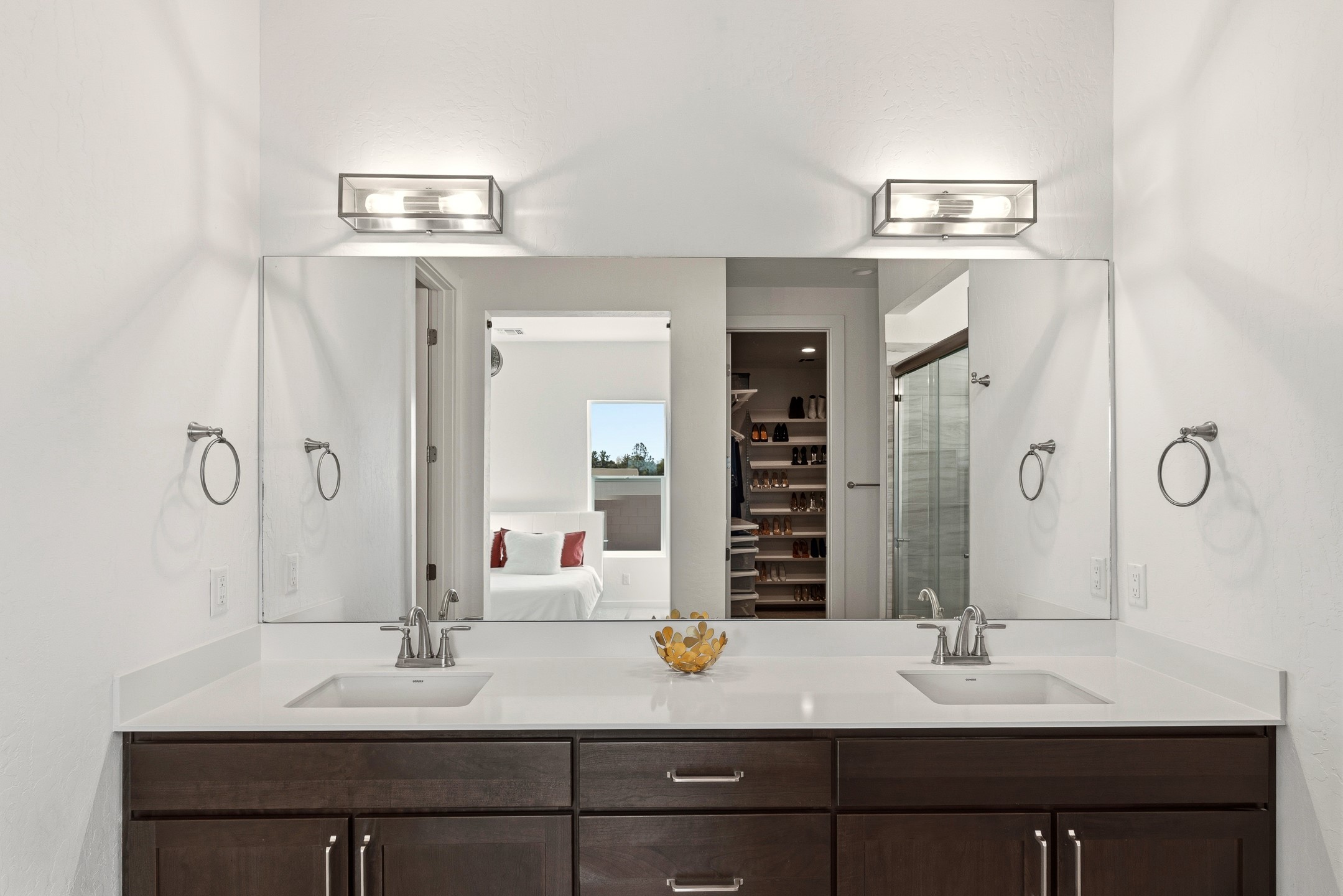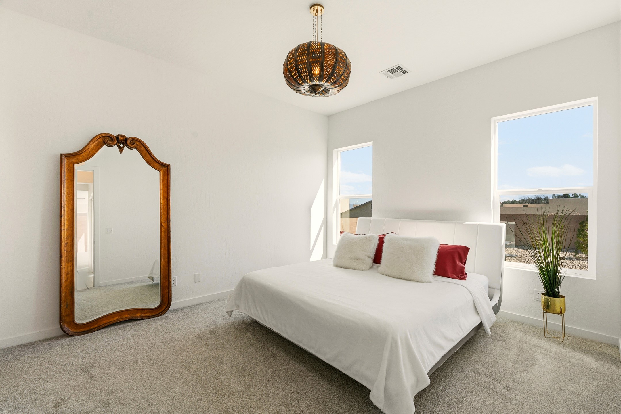 Imagine sitting in your backyard as the sun rises over the eastern horizon, the sky stretching wide above you and the quiet beauty of the landscape unfolding around you. Welcome to 142 Mirador Blvd. This beautifully designed 4-bedroom, single story home offers a bright, open layout with thoughtful finishes and inviting spaces both inside and out. The open-concept kitchen, living, and dining area is designed for comfortable everyday living and effortless entertaining. The kitchen features a large island, abundant cabinetry, beautiful Silestone® countertops, generous workspace, along with a spacious walk-in pantry providing excellent storage. Just off the kitchen you'll find a laundry room and a convenient half bath for guests. The living room is anchored by a gas fireplace, creating a warm and welcoming gathering space, while the large dining area is filled with natural light and offers plenty of room for hosting family and friends. A large sliding glass door leads to the landscaped backyard with a covered patio, perfect for outdoor dining, entertaining, and taking in the beautiful eastern views and incredible night skies. Upon entering the home, a versatile room to the left features glass French doors, making it an ideal home office, guest room, or fourth bedroom. Two additional bedrooms are located down the hallway and share a full bathroom with a double-sink vanity. The spacious primary suite offers a relaxing retreat with a large bathroom featuring a double vanity and oversized shower. The stunning primary walk-in closet is a standout feature, offering a sophisticated, boutique-style dressing experience designed for effortless organization and everyday luxury. Custom designed closet systems elevate storage in every bedroom with modern design and fully adjustable shelving for exceptional organization. The bedrooms feature Shaw luxury carpet, while the flooring throughout the main living areas and bathrooms is tile, creating a cohesive and durable finish. Additional features include 10' ceilings in the living room and primary bedroom, 9' ceilings in the kitchen and guest bedrooms, 8' doors throughout the home, a finished two-car garage, AC, and a landscaped front and back yard with drip irrigation. This home offers the perfect combination of comfort, functionality, and beautiful views, making it a wonderful place to call home. Schedule your showing today!