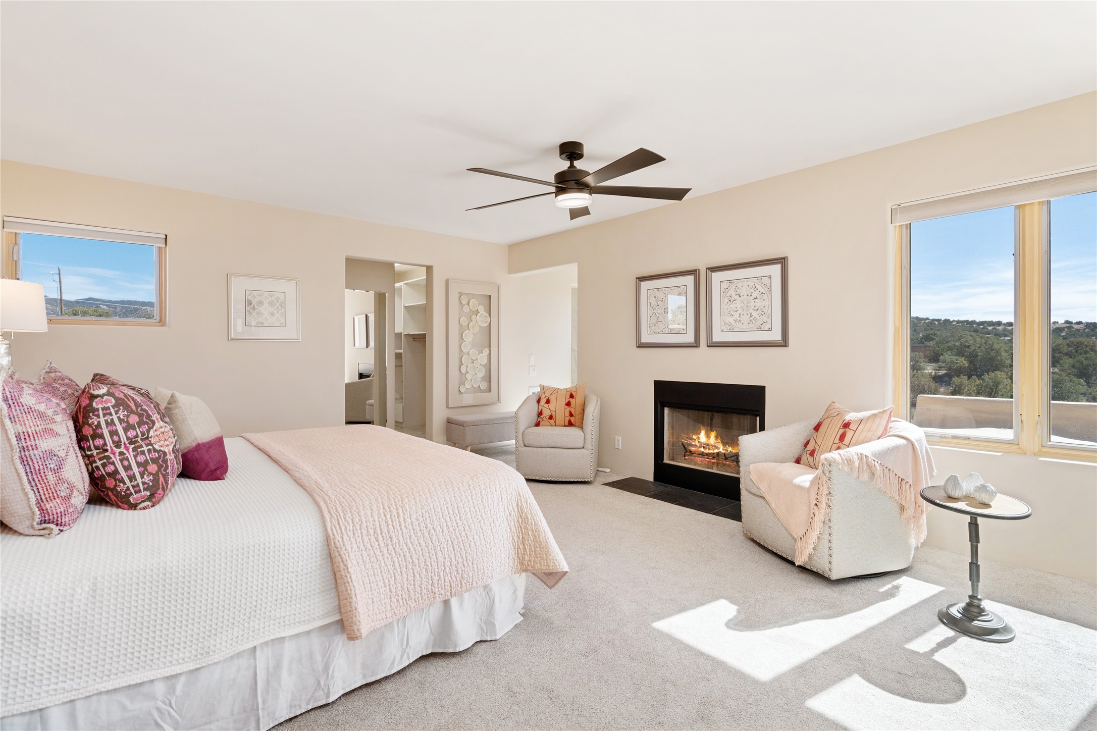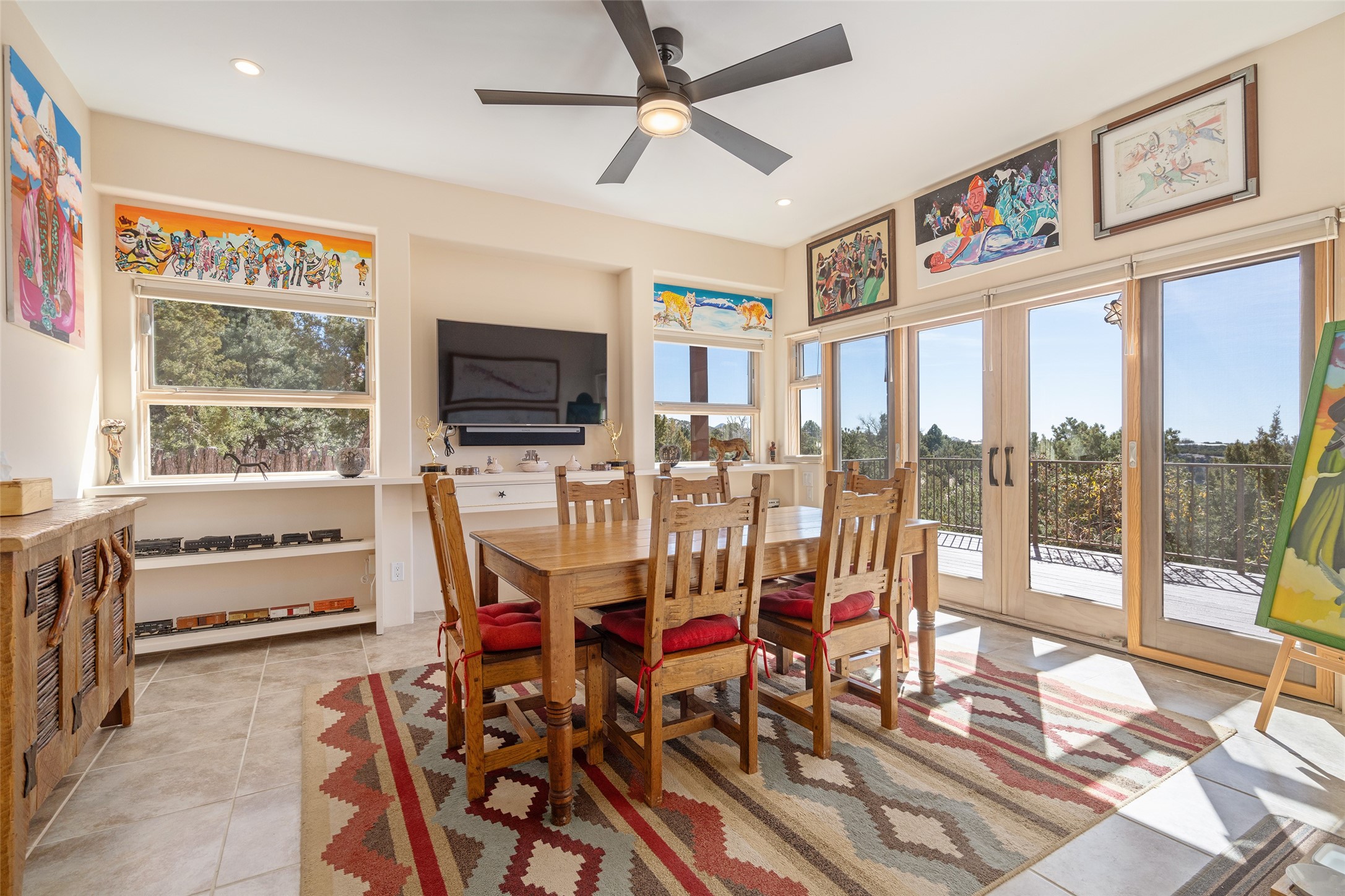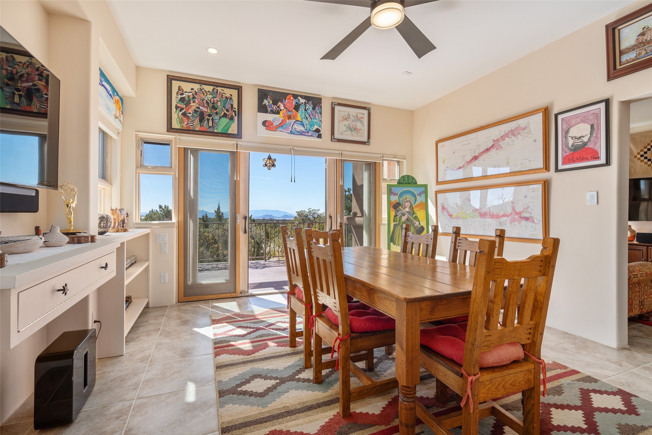 Santa Fe Compound Minutes From Plaza. This gated 8+ acre Santa Fe estate with two homes and sweeping southern views is tucked away along Old Agua Fria Road at the end of Old Pecos Trail and offers privacy and exceptional convenience. Located less than 5 miles from the Historic Santa Fe Plaza and moments from the I-25 Old Pecos Trail exit, this gated property feels peaceful and secluded while remaining incredibly accessible. The estate includes two residences with separate addresses, creating an ideal setup for multi-generational living, guests, rental potential, or a private retreat. Expansive views, big skies, and multiple outdoor living areas provide the perfect setting for entertaining or enjoying a beautiful sunset. The main residence (approx. 3,300 sq ft) features 3 bedrooms and 3.5 baths, with ensuite baths in every bedroom. The thoughtful layout includes a spacious main-level bedroom suite and two additional bedrooms upstairs, providing flexibility and privacy. The separate casita (approx. 1,200 sq ft) offers 2 bedrooms and 1.5 baths and opens to a large south-facing deck with panoramic views--an ideal space for gatherings, sunset dinners or relaxing under star-filled skies. Arroyo Hondo open space and archaeological easements run through the back of the property, which help to preserve the natural landscape, history of the area, and sight-lines. Recent improvements include new roofs with transferable warranties, a new boiler, and updated & repainted stucco. Experience the privacy, views, and convenience of this distinctive Santa Fe compound. Be sure to watch the drone video over the arroyo and property here https://youtu.be/qAOJMNmIgfY