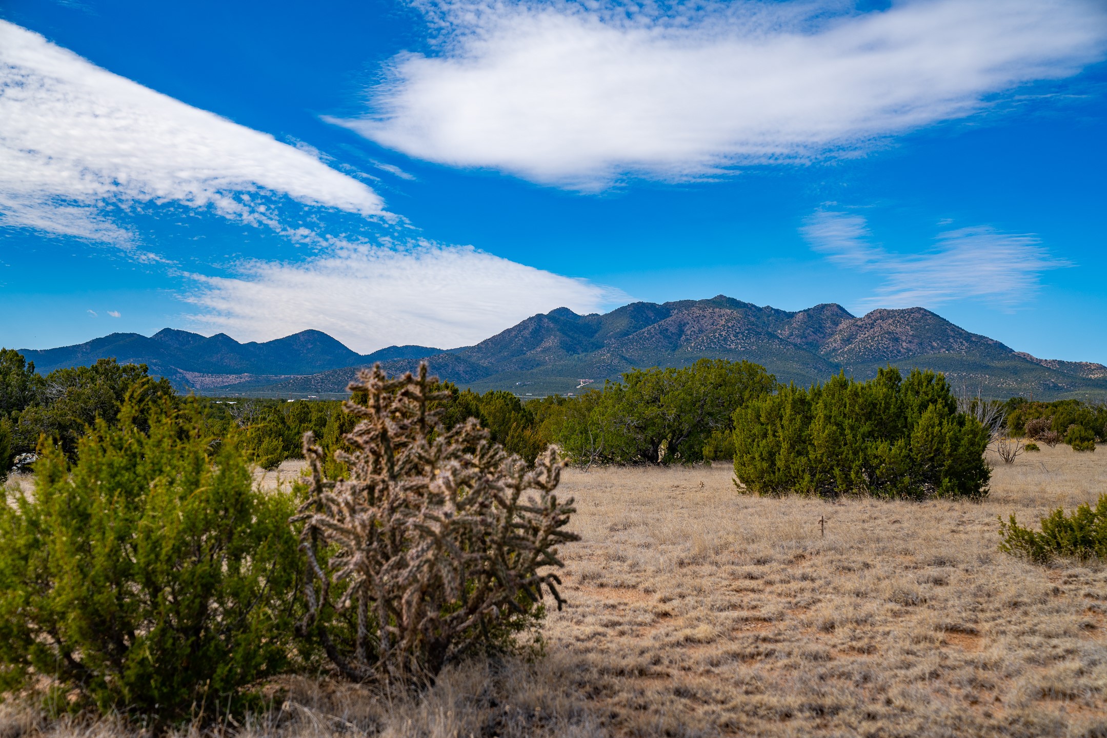 Modern home on forty acre lot with adjacent vacant forty acre lot with driveway and well. For those who want space to stretch out, or multiple lots to build a family compound on, this offering has it. Stretching 9/10's of a mile at its longest, there's room for on the property hiking, riding, or mountain biking. The home features contemporary style in a high-desert setting with breathtaking mountain views in the foothills of the Ortiz Mountains. Fully self-reliant, it boasts utilities provided by solar, wind, and water catchment, with public electric lines available on the street.The adjacent lot has a drilled and cased well, a roughed in driveway, and more of the spectacular views the area is known for. The location offers easy access to town on well-maintained roads within a gated community with no HOA. Located just 21 miles from Santa Fe and near dining and entertainment options in Madrid and Cerrillos, this offering provides perfect retreat with room for future development and a move in ready home. 49 Blue Agave (MLS 202502557) and 65 Grenfell Ranch (202600867) are also offered for sale separately.