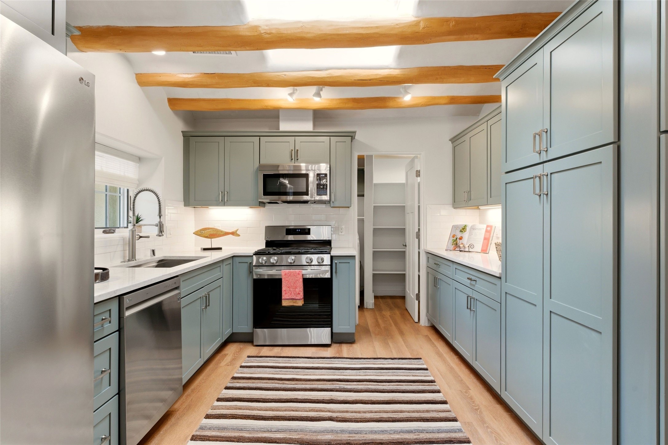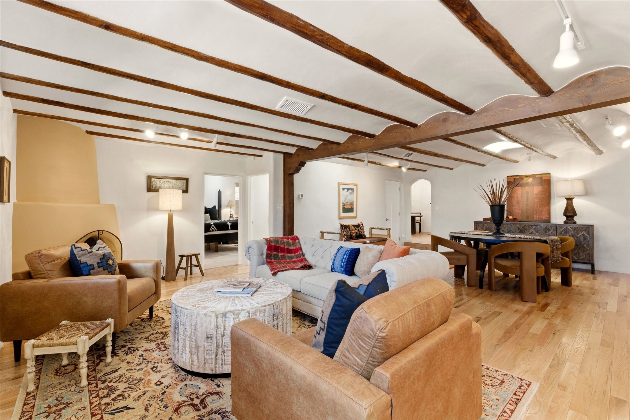 Put down your roots in the center of the historic Eastside of Santa Fe, where orchards once flourished and old-growth trees still dapple the sunlight. Cross over the famed Acequia Madre (Mother Irrigation Ditch), to a living history flowing past your residence, and walk only one block to restaurants and the world-renowned Canyon Road and the 80+ galleries. This charming adobe residence traces its roots to 1717 and was once a beloved general store that was a hub of the community. The property has been fully reimagined for modern living with an elegant fusion of heritage architecture and contemporary design. Extensively renovated and completed in 2023, the property boasts 2 bedrooms on the main level and 2 additional bedroom suites on the upper levels. The property is comprised of 2 condominiums that have been thoughtfully connected to live as a single residence. An easy modification to a single wall is all that would be needed to return the property to 2 separate residences. The property also includes a single vehicle garage. For the buyer who wants the charm and convenience of the historic Eastside and the benefits of a recently renovated property, this special property has it all. Unit A is approximately 2,000 sq. ft and Unit B is approximately 1,545 sq. ft.