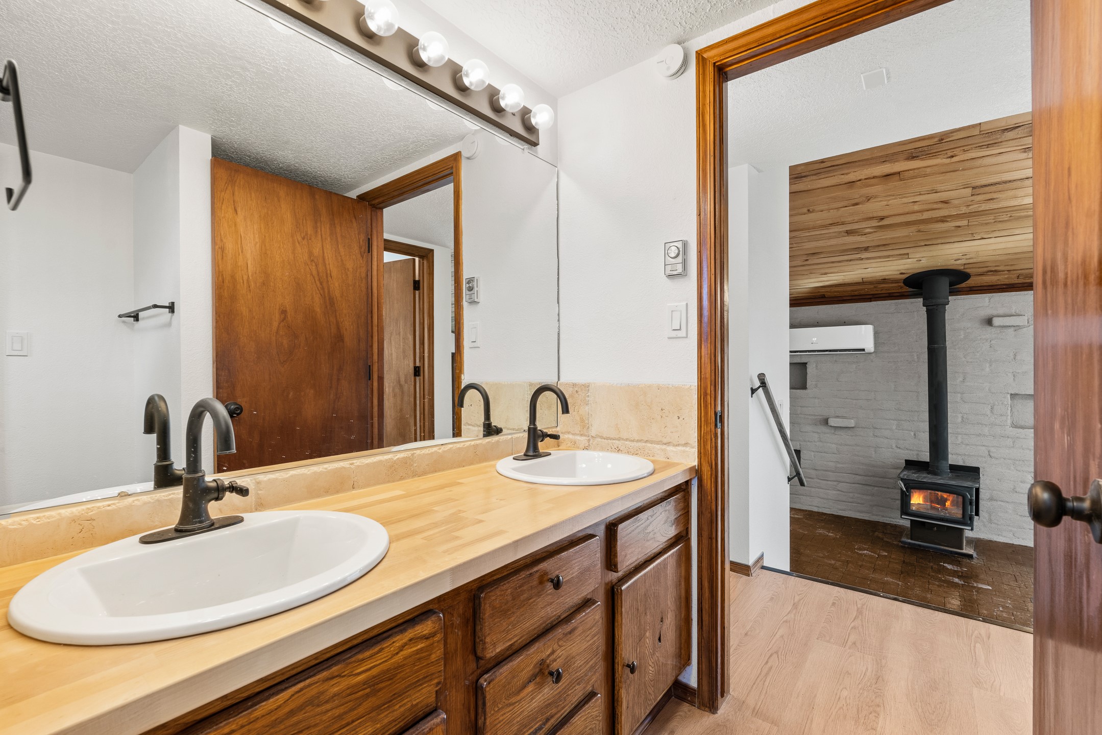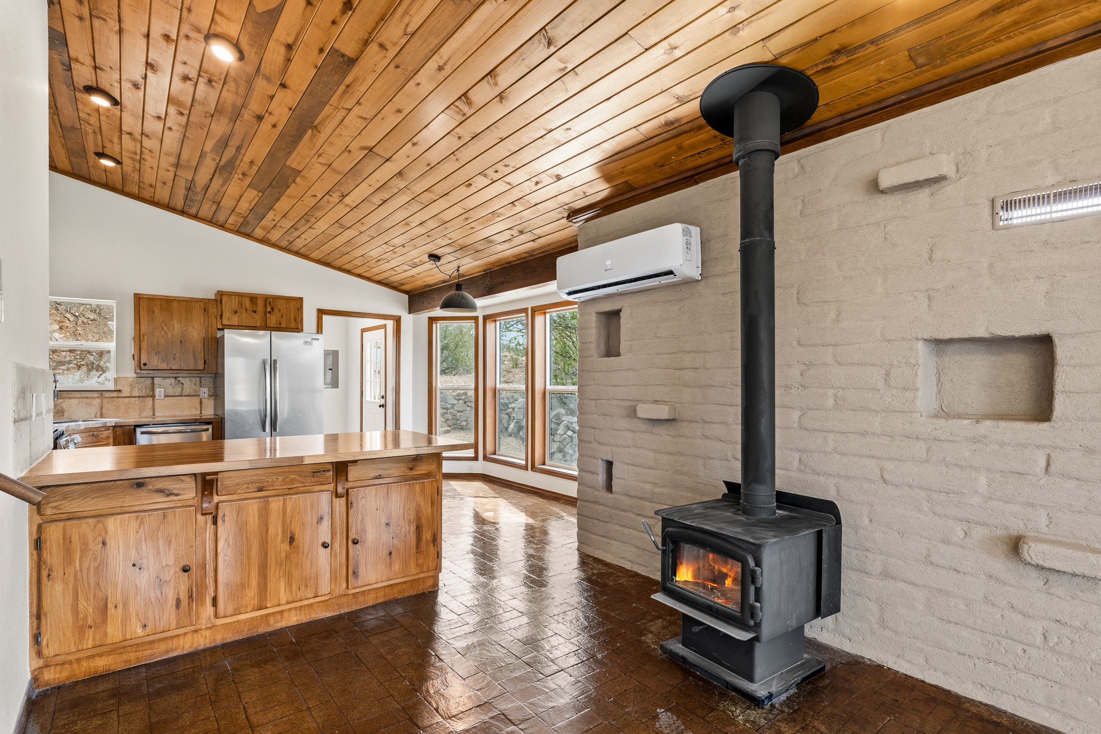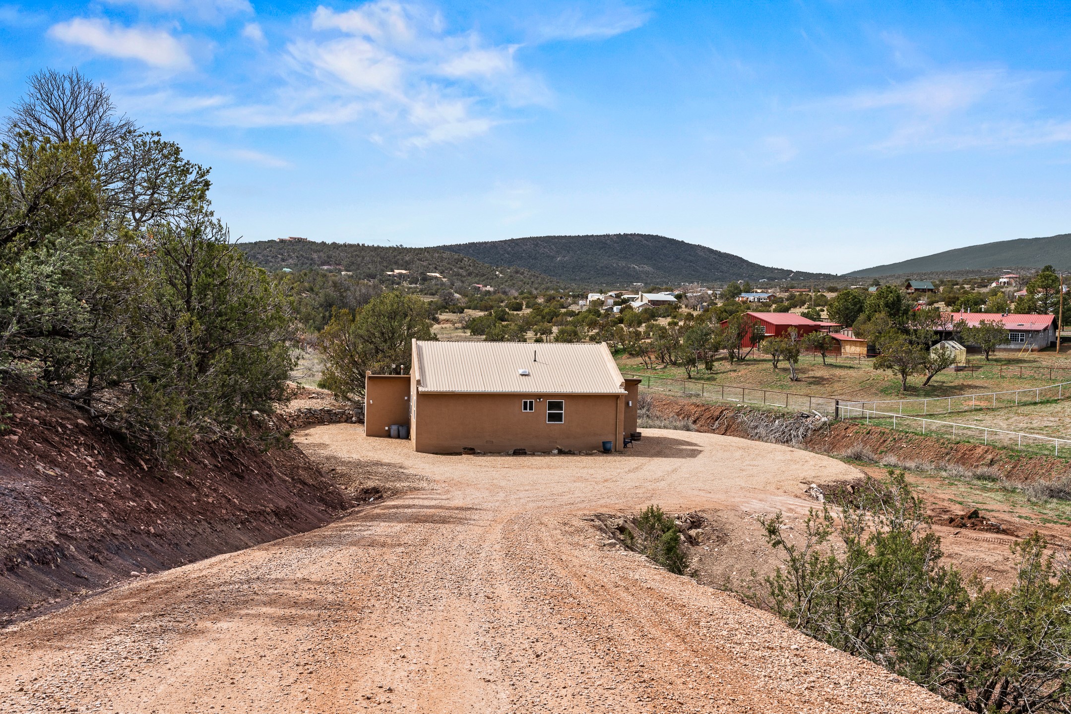 Just updated! Open floorpan, two bedroom, one bath home, sited on an elevated two acres twenty minutes from Albuquerque in Sandia Park. So much is new, including propanel roof, new windows, new kitchen appliances, kitchen counters, mini-split, updated bathroom, bedroom flooring. Designed for energy efficiency and passive solar, with a large south-facing window to take in views, a trombe wall to store heat, and a wood stove anchoring the high-ceilinged living areas. Move-in ready.